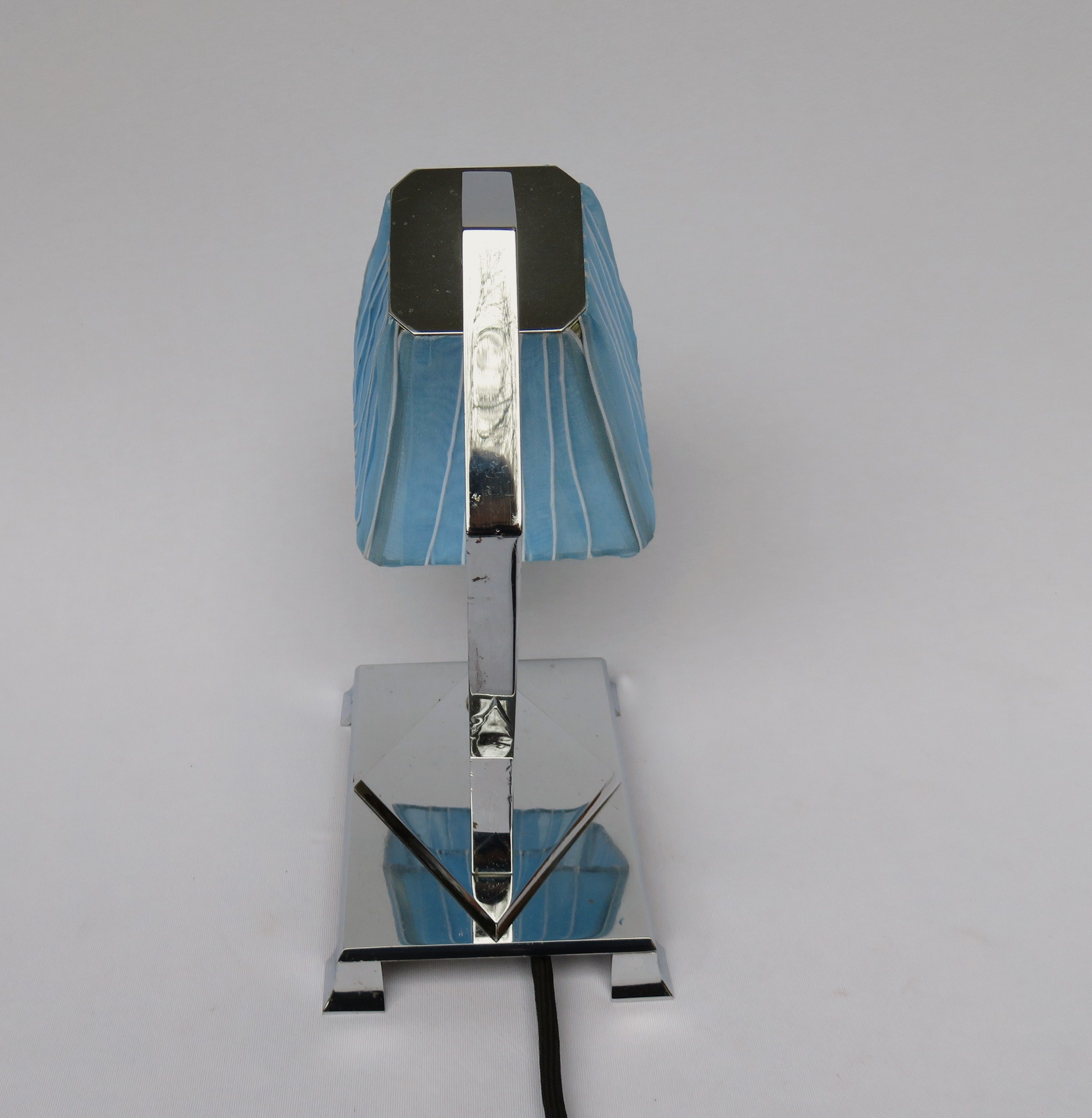 N86 – Nachttischleuchte, Art Deco, Machine Age, verchromt, Überfangglas