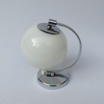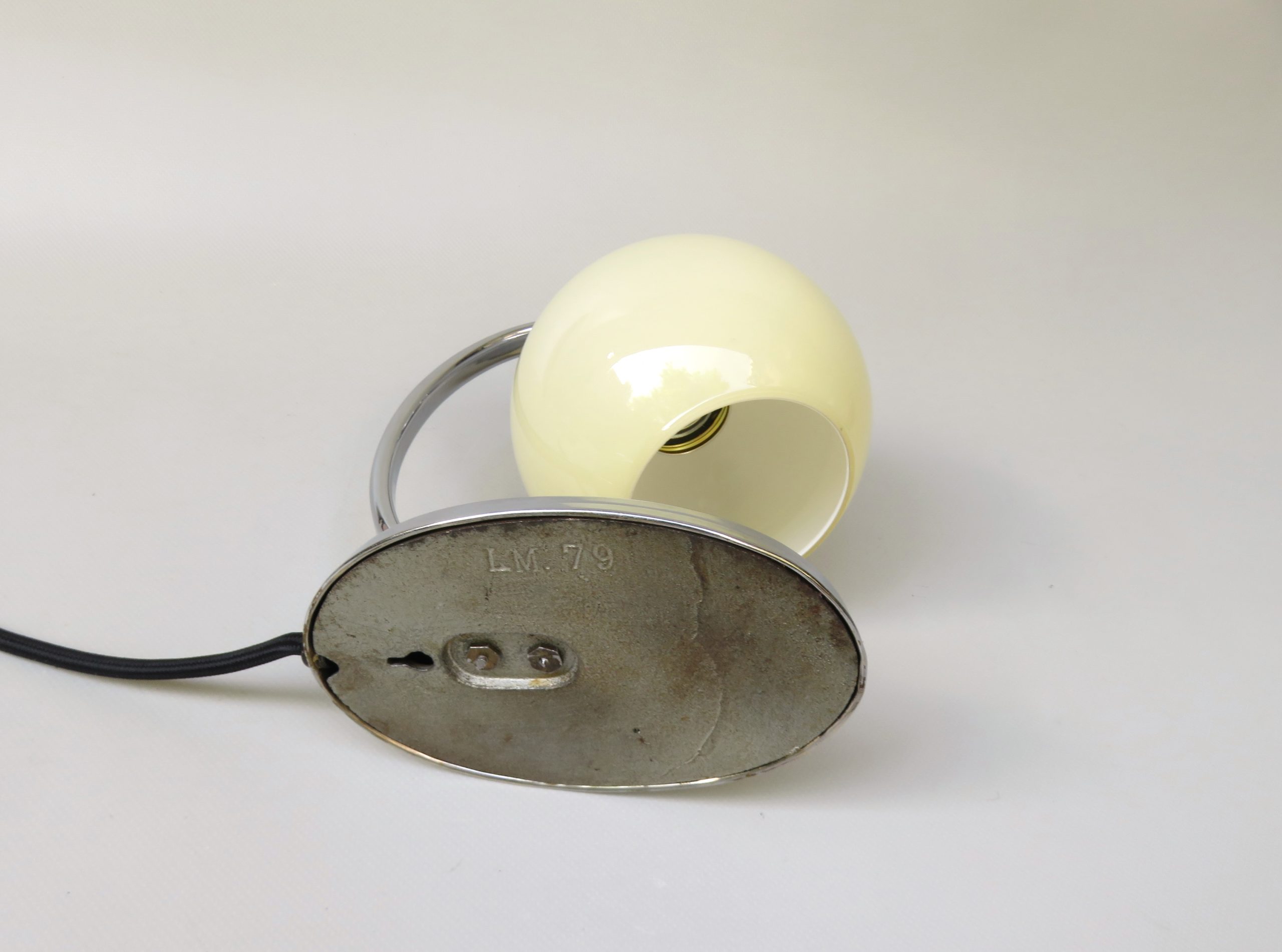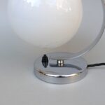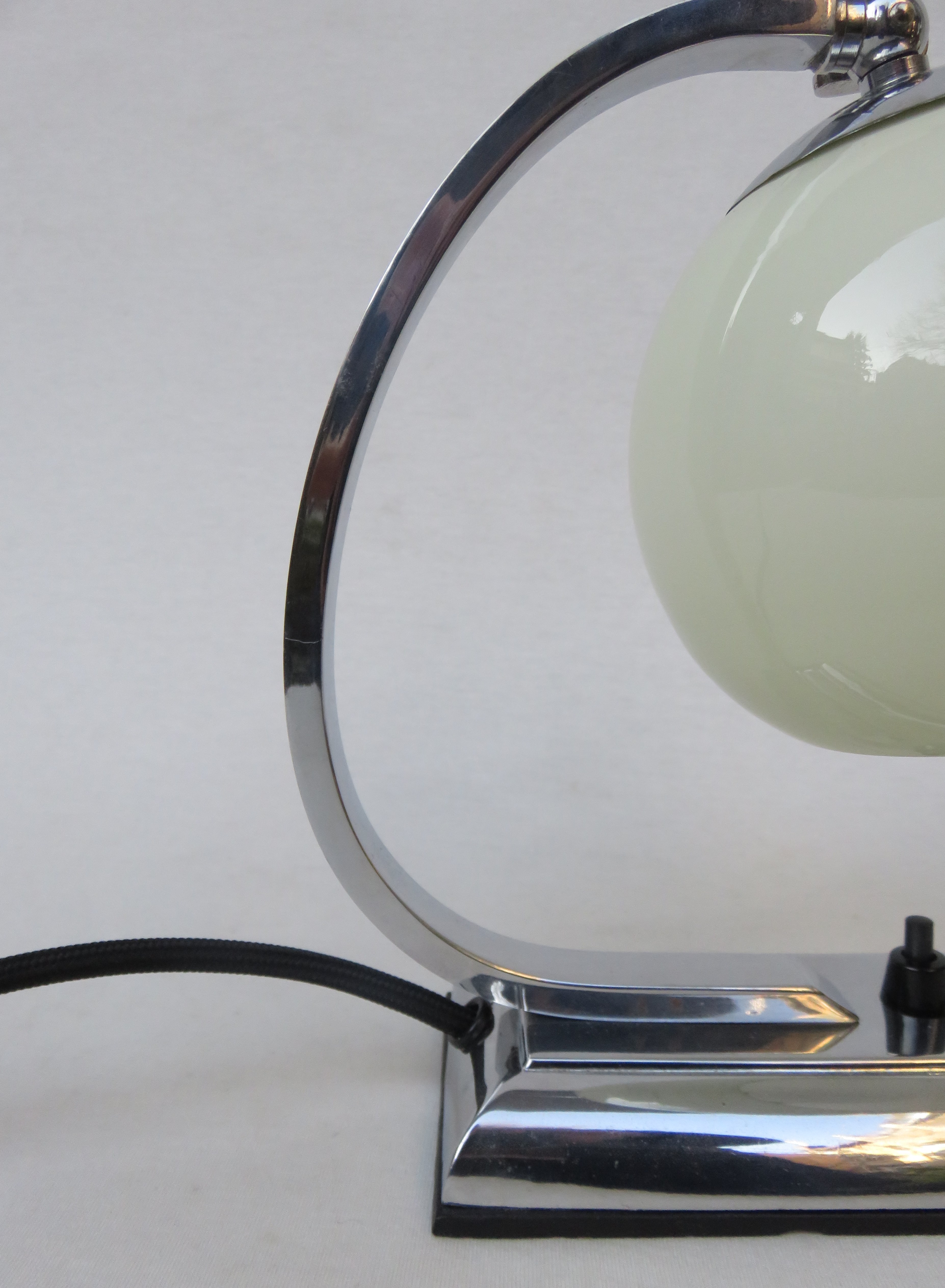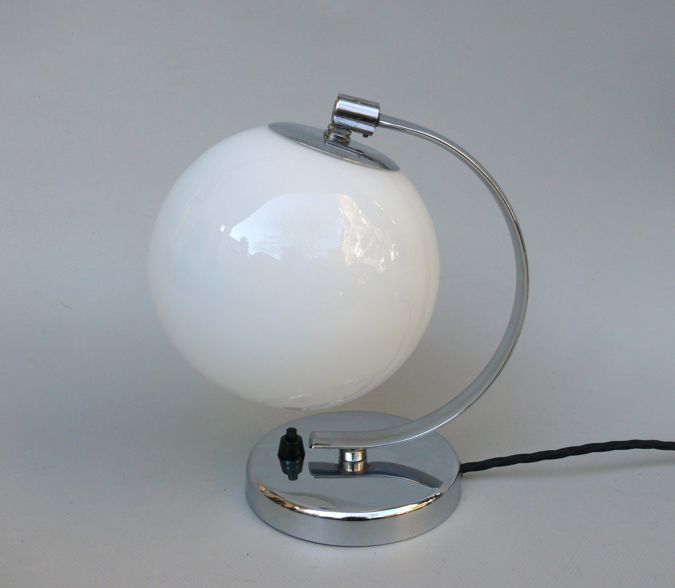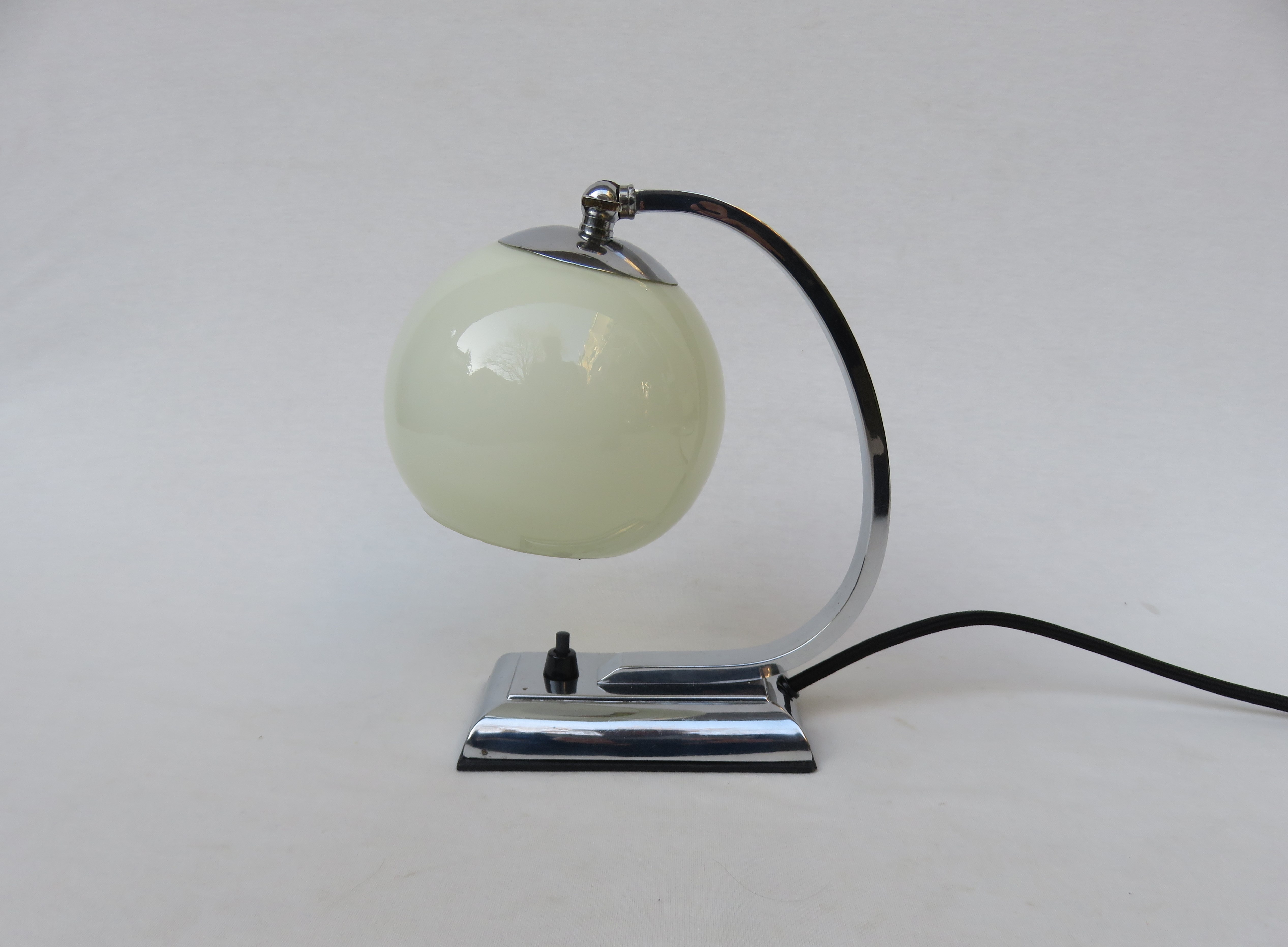 N7 – Nachttischleuchte, Art Deco, verchromt, seltener weißer Überfangglasschirm, Österreich