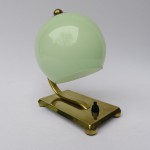 N89 – Nachttischleuchte, Art Deco, Messing poliert, Schirm grünes Überfangglas