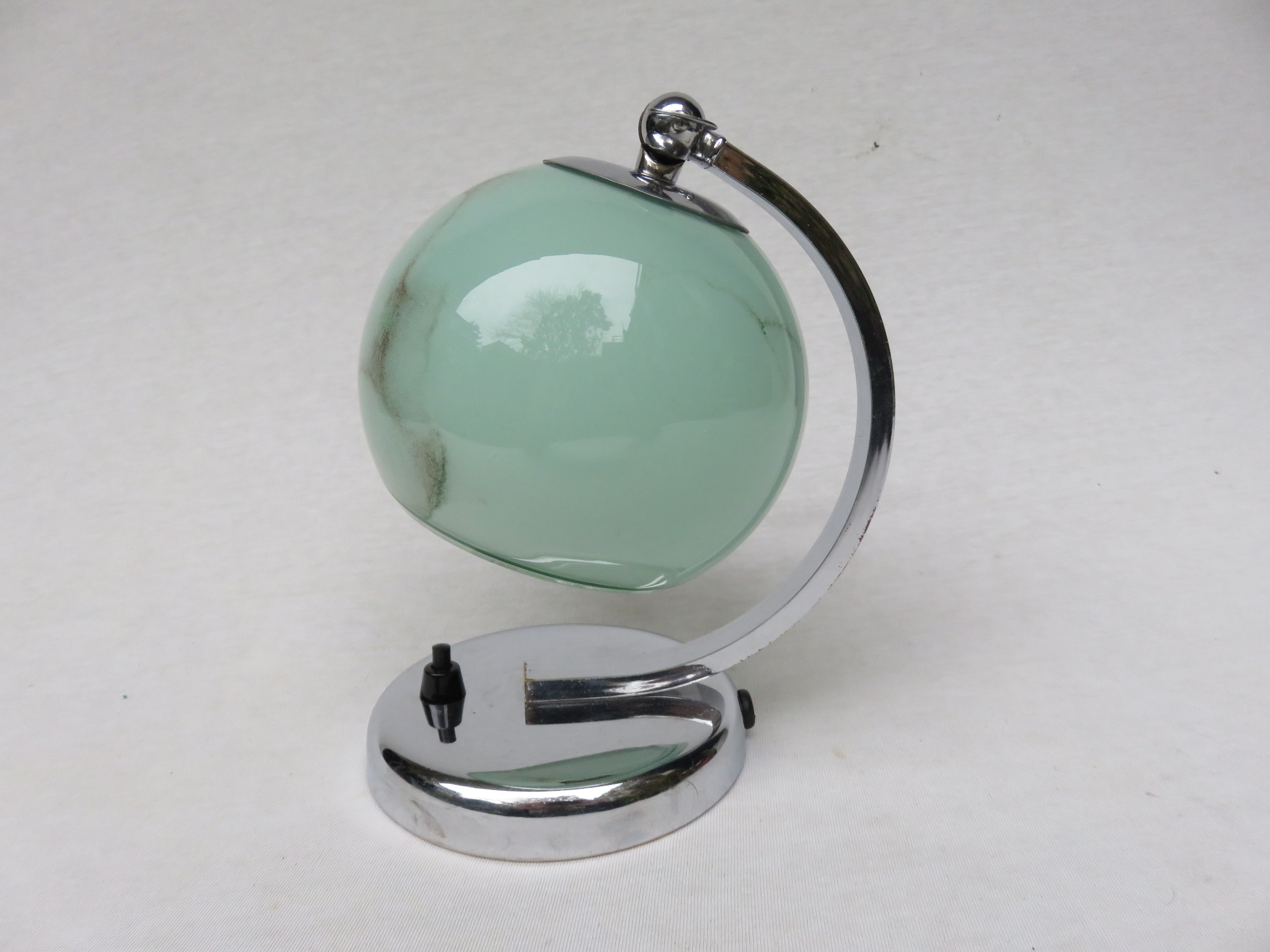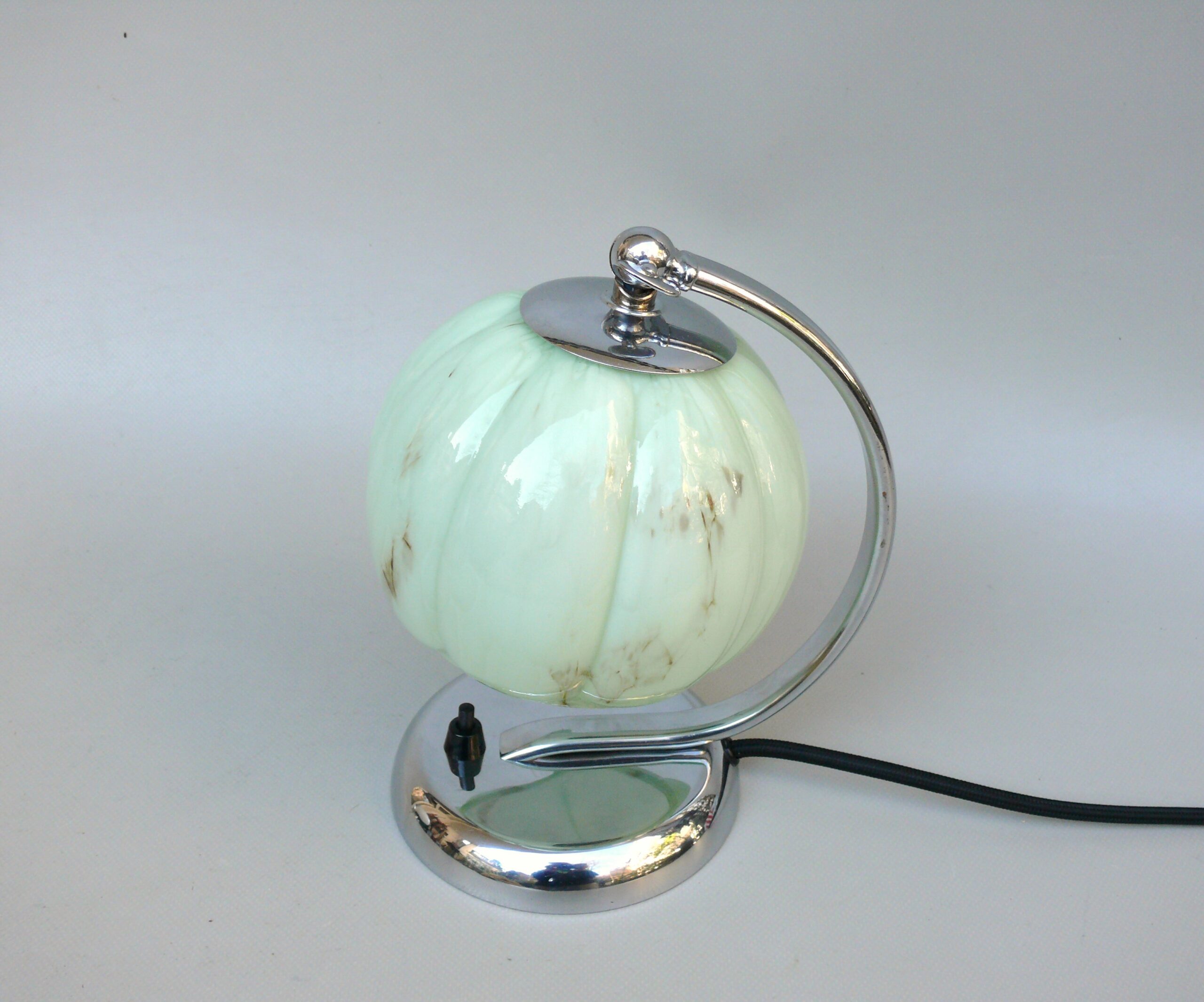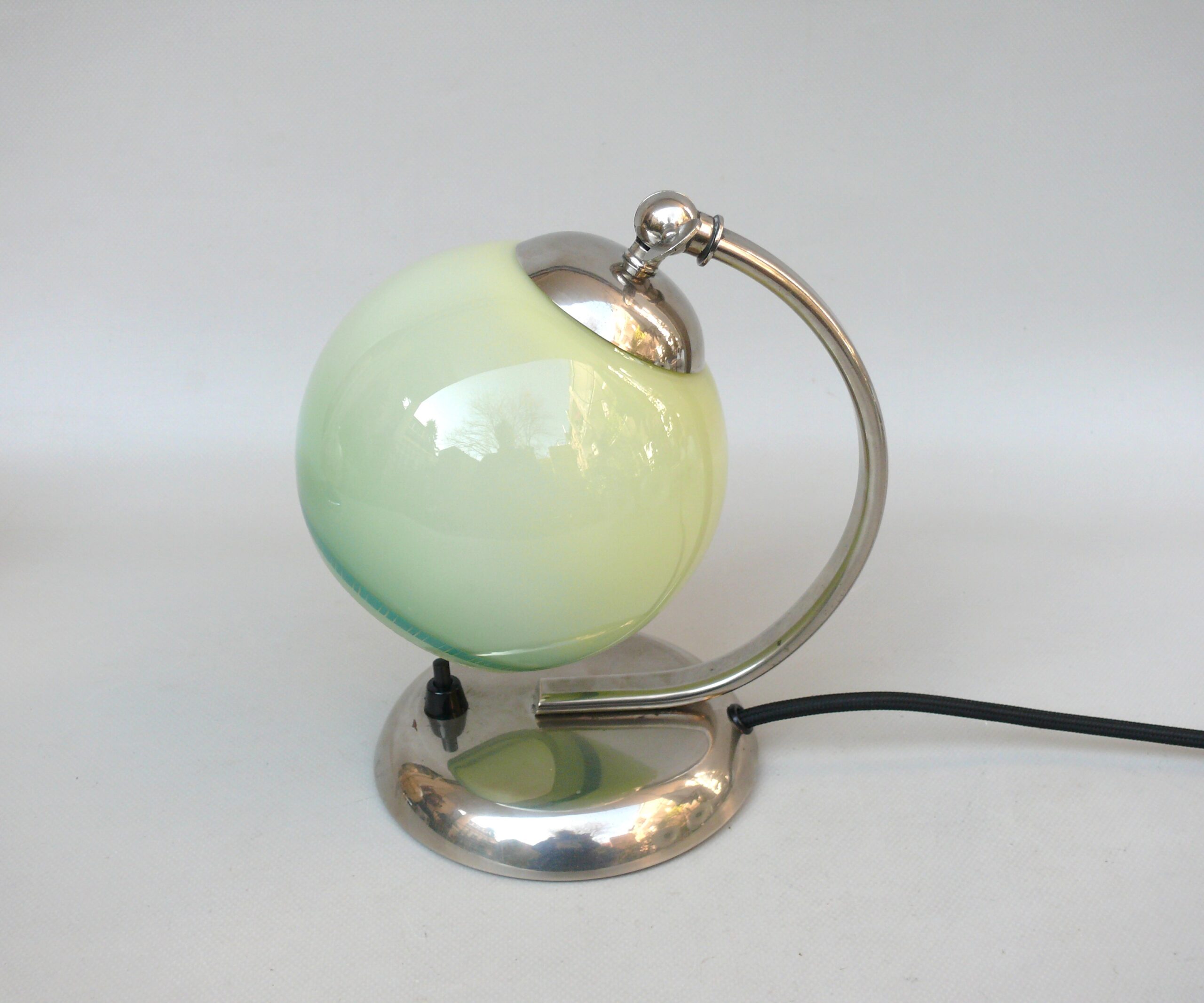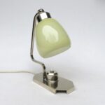 N12 – Nachttischleuchte Art Deco, verchromt, hellgrüner Überfanglasschirm