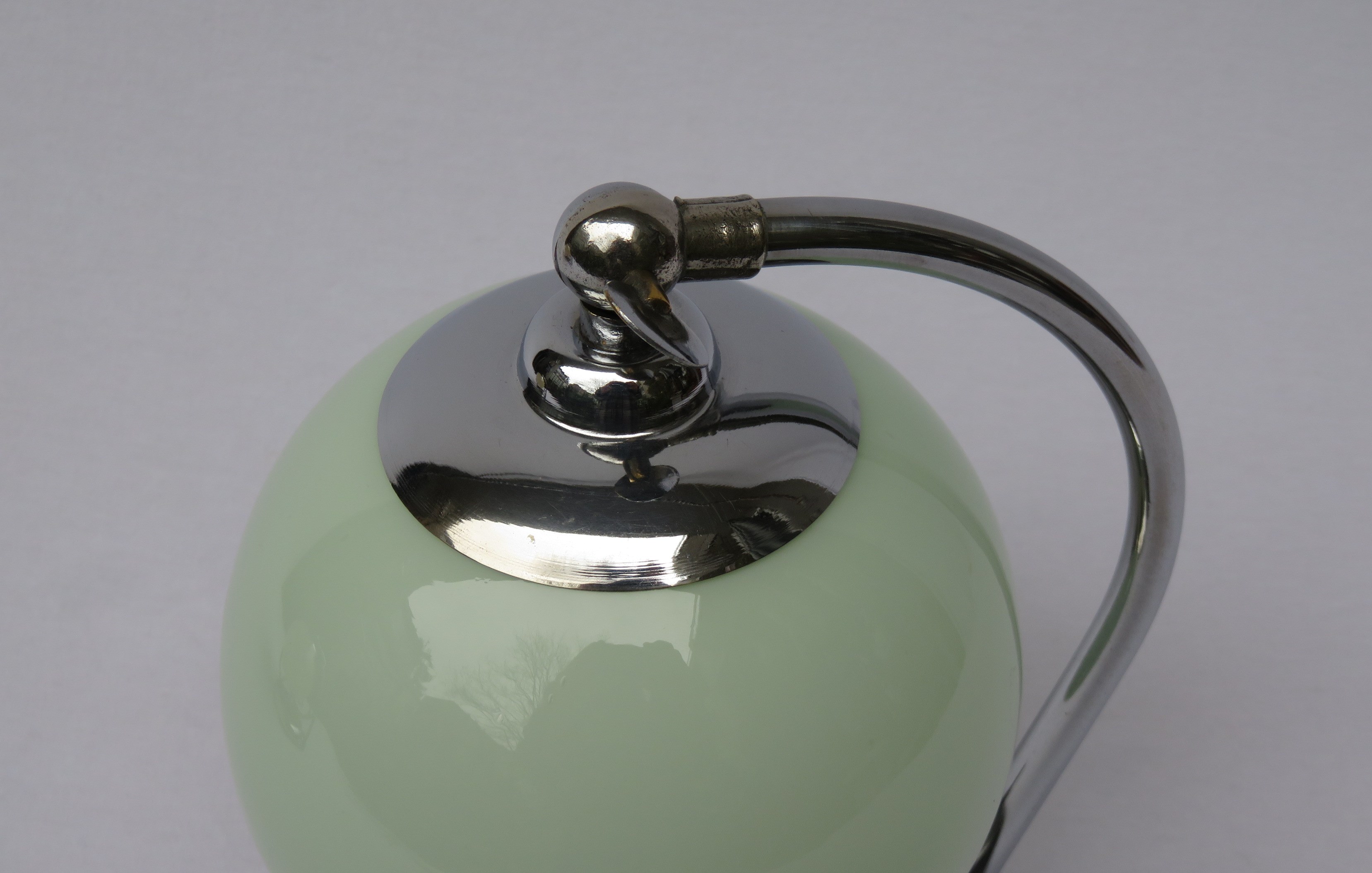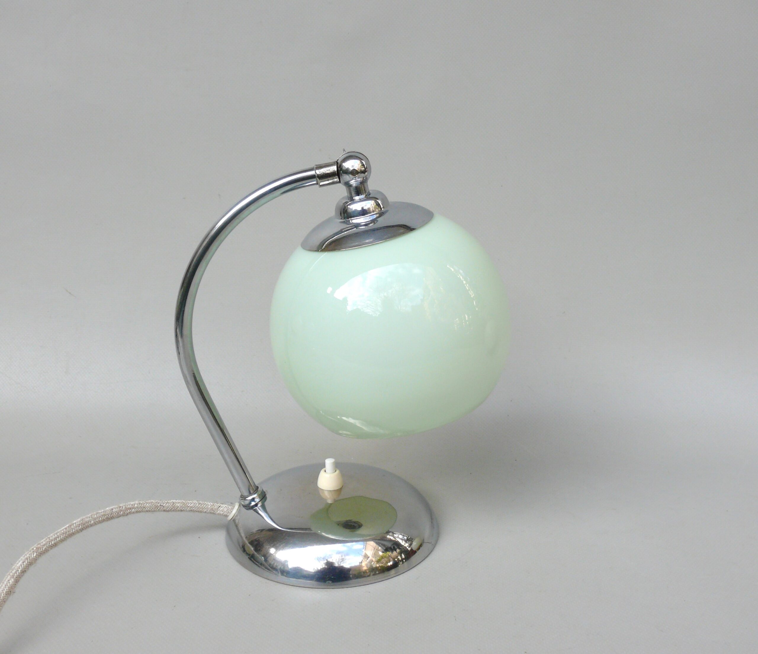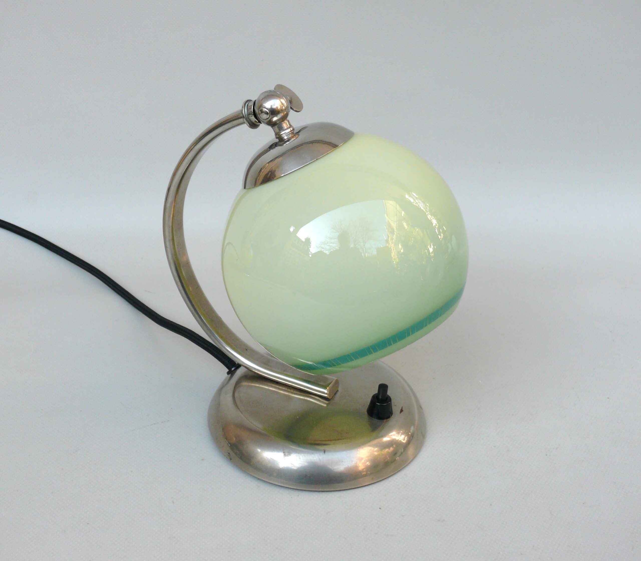 N12 – Nachttischleuchte Art Deco, verchromt, hellgrüner Überfanglasschirm