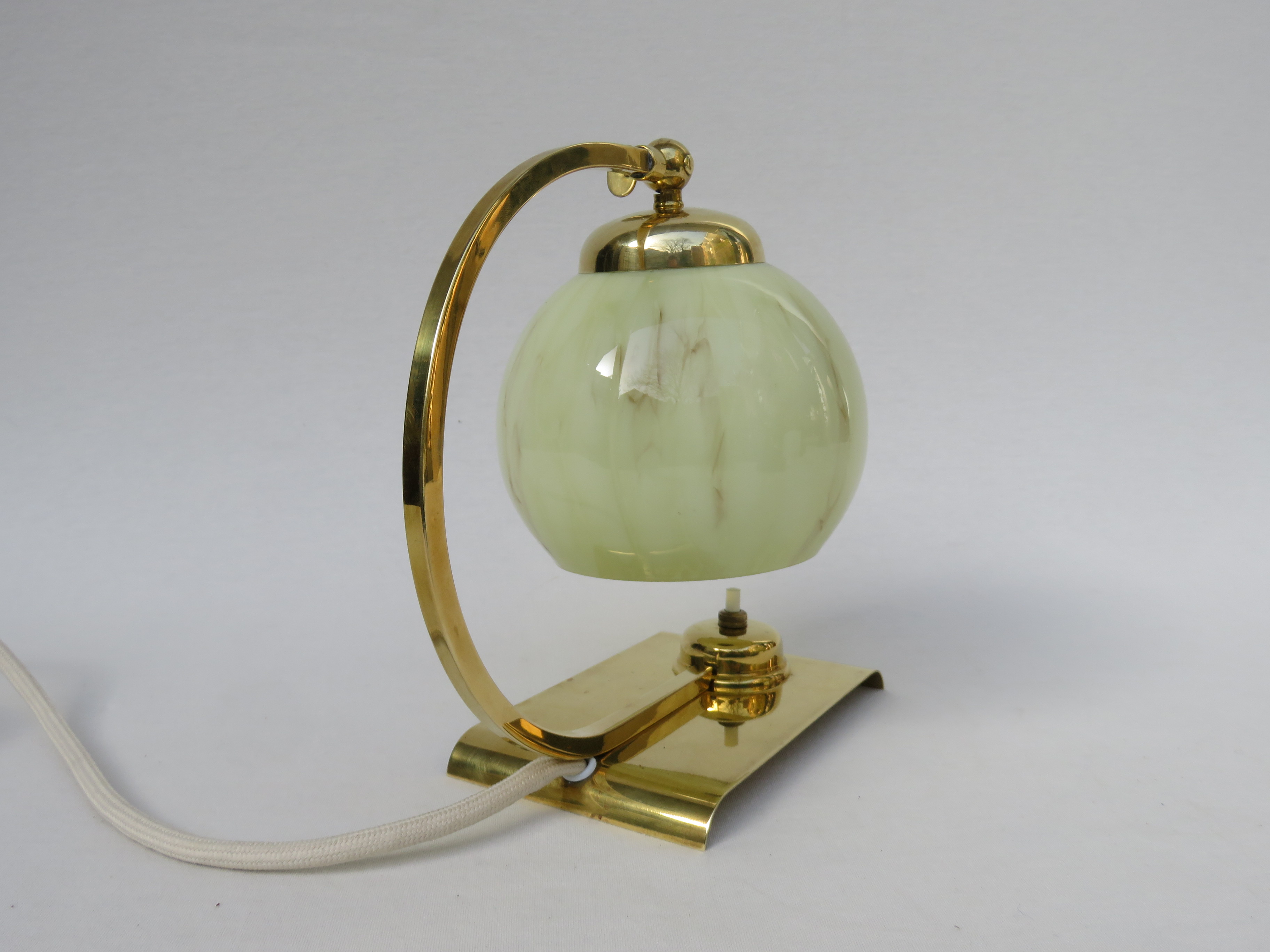N8 – Nachttischleuchte Art Deco, Messing, grüner Überfangglasschirm