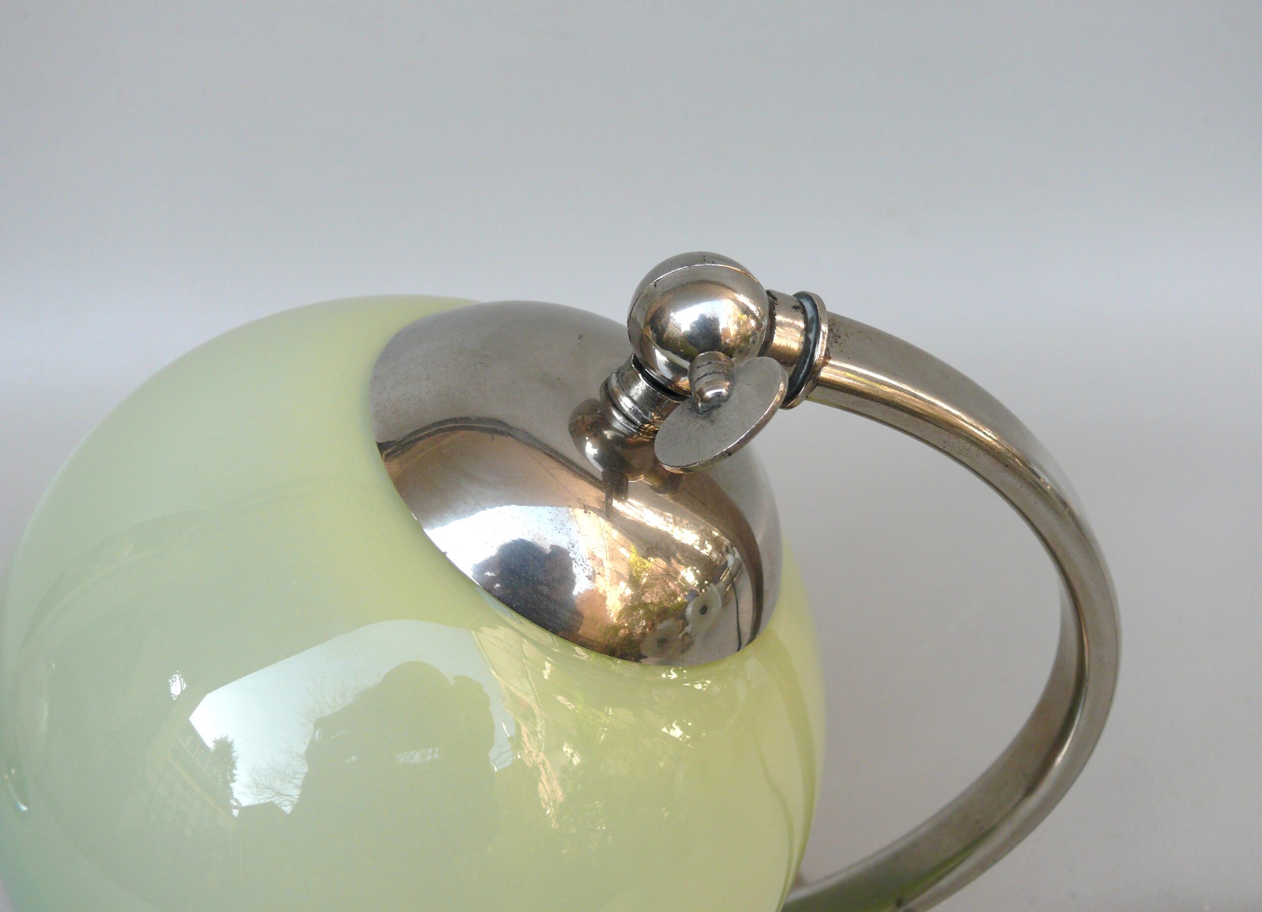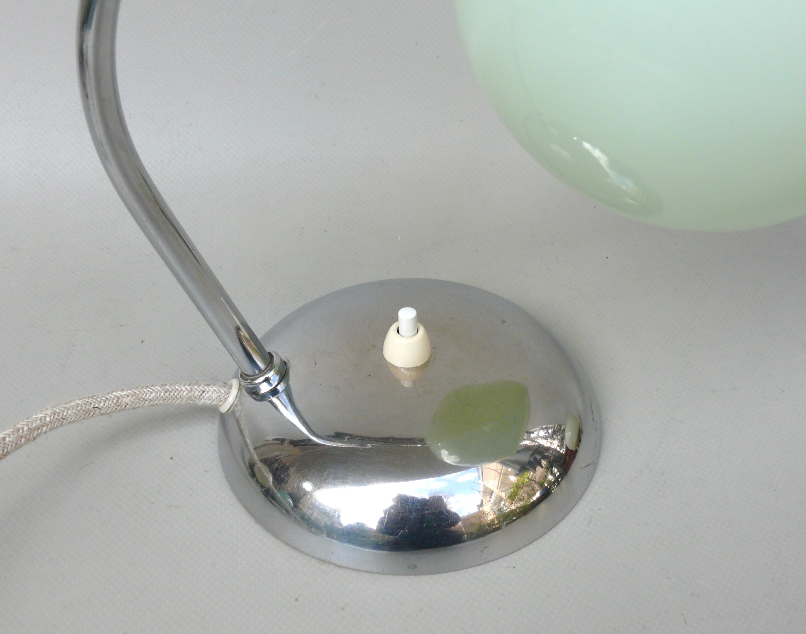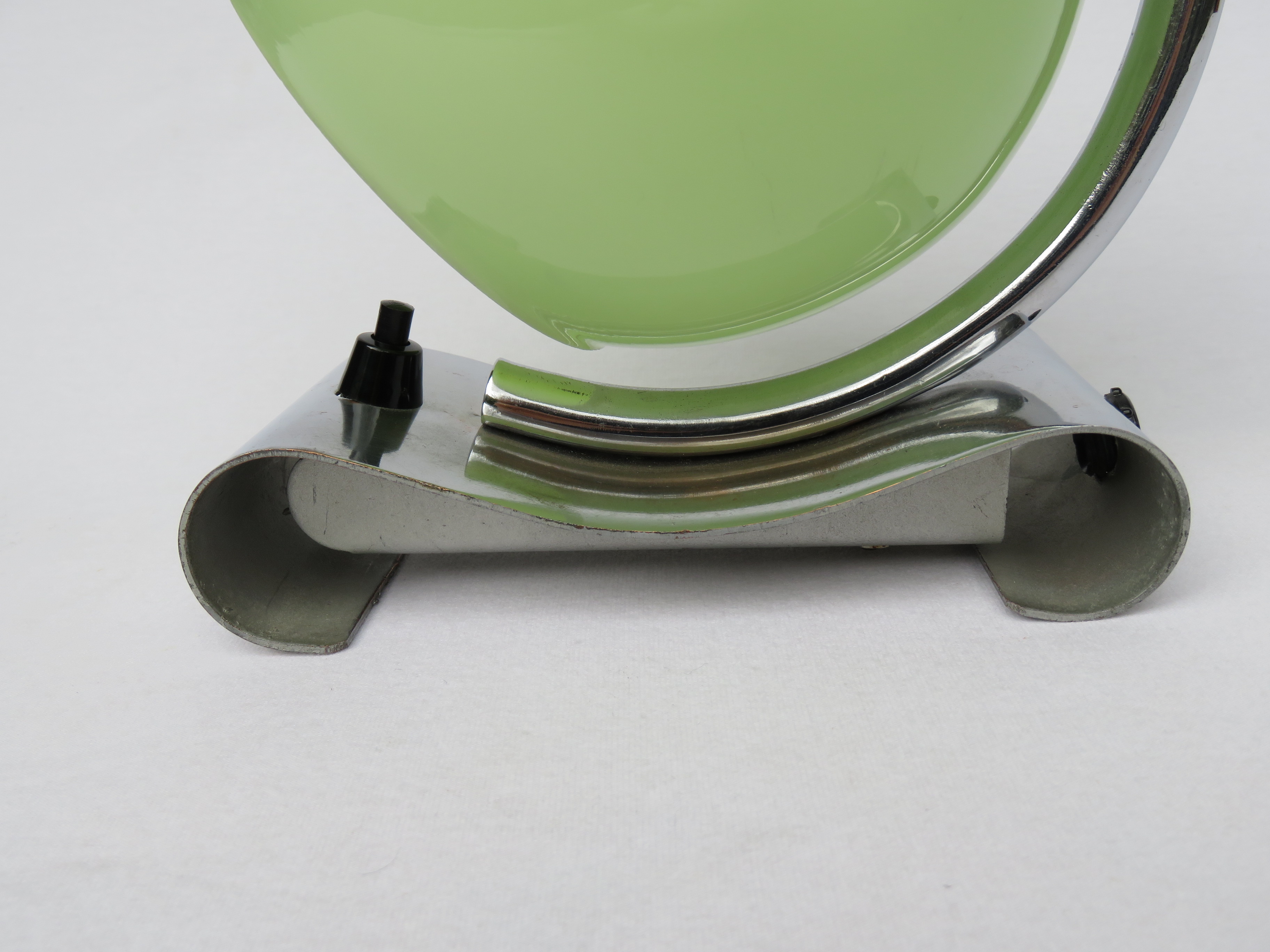 N17 – Nachttischleuchte, Bauhaus-Ära, Deutschland, verchromt, hellgrüner Überfangglas-Schirm