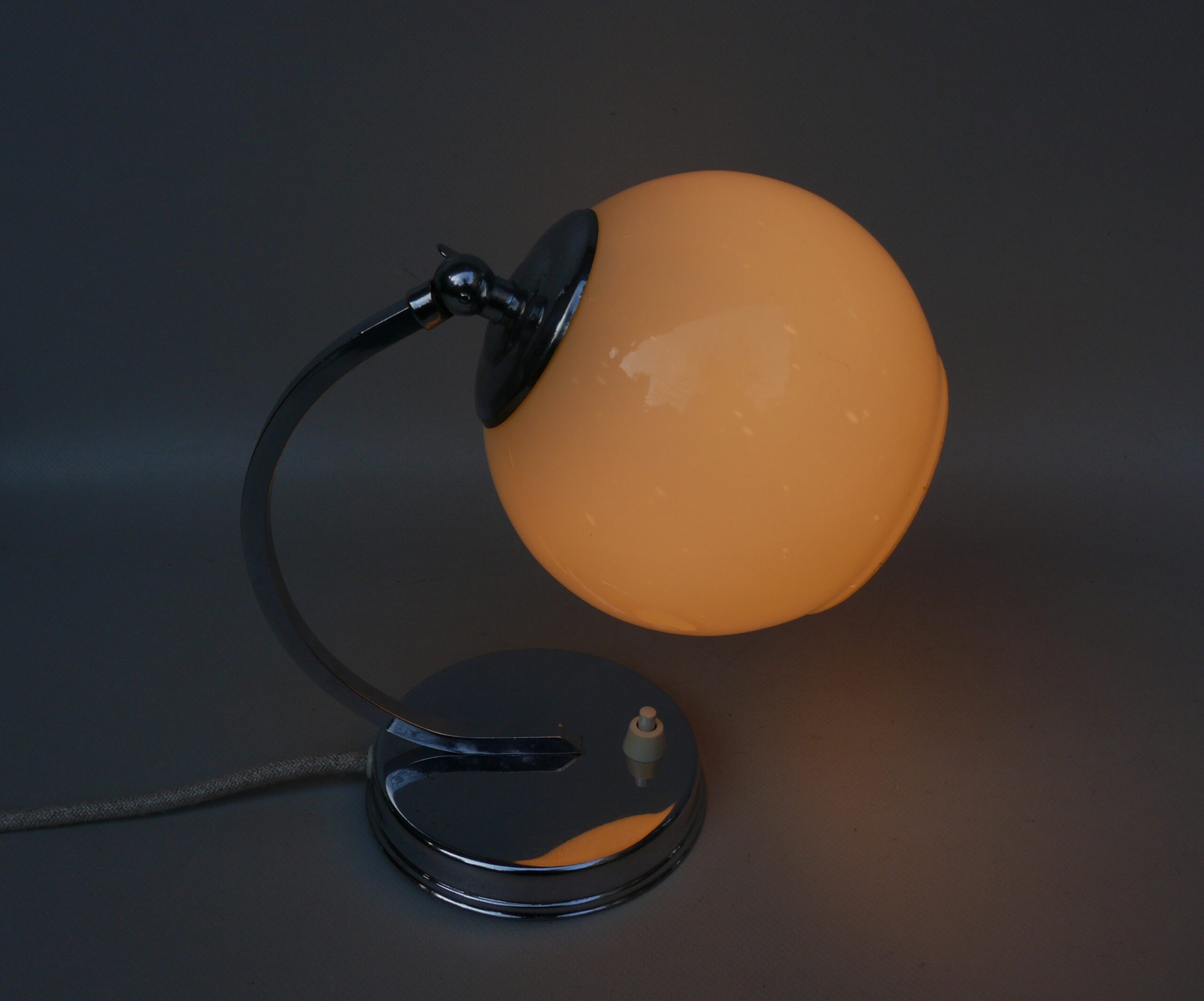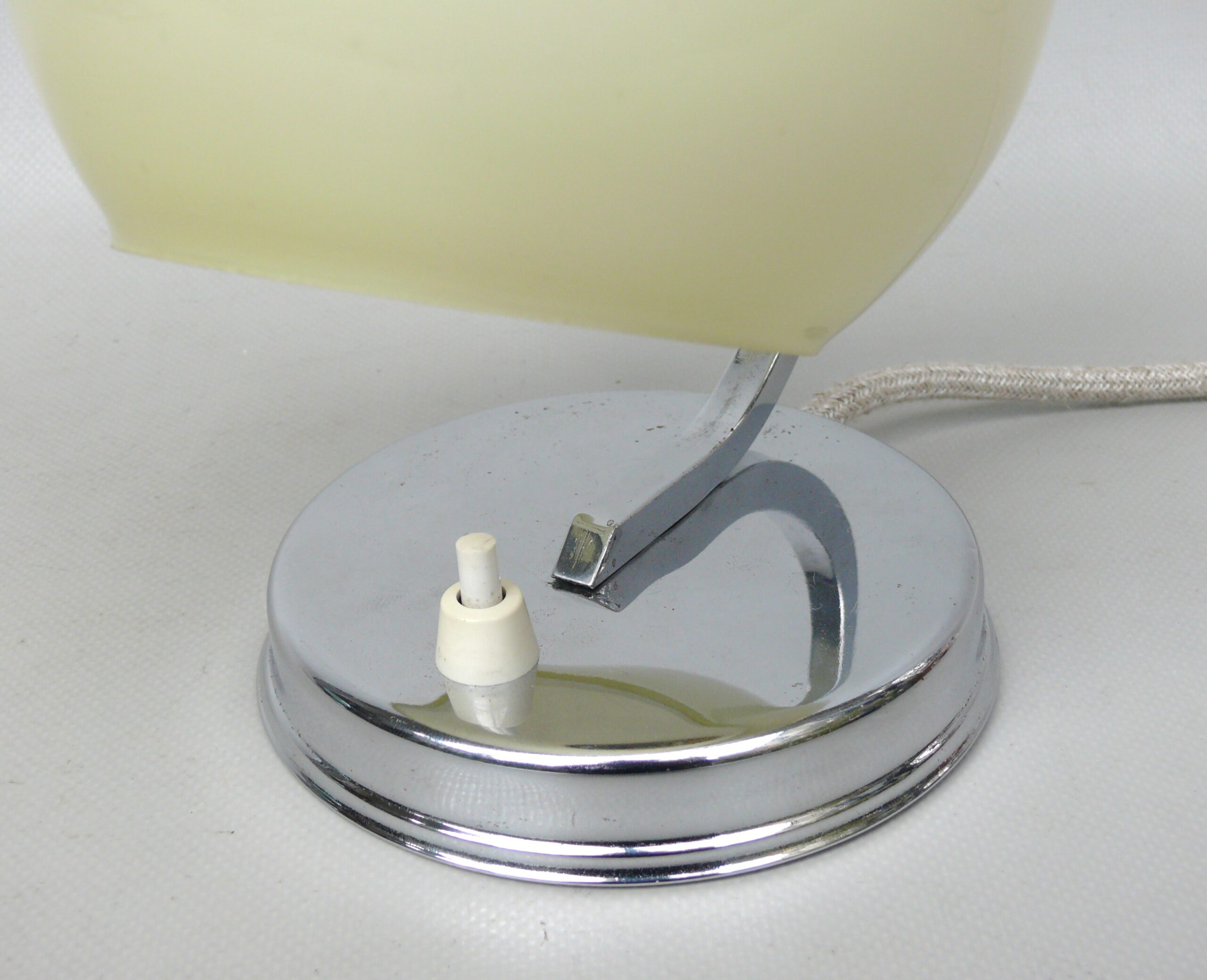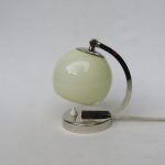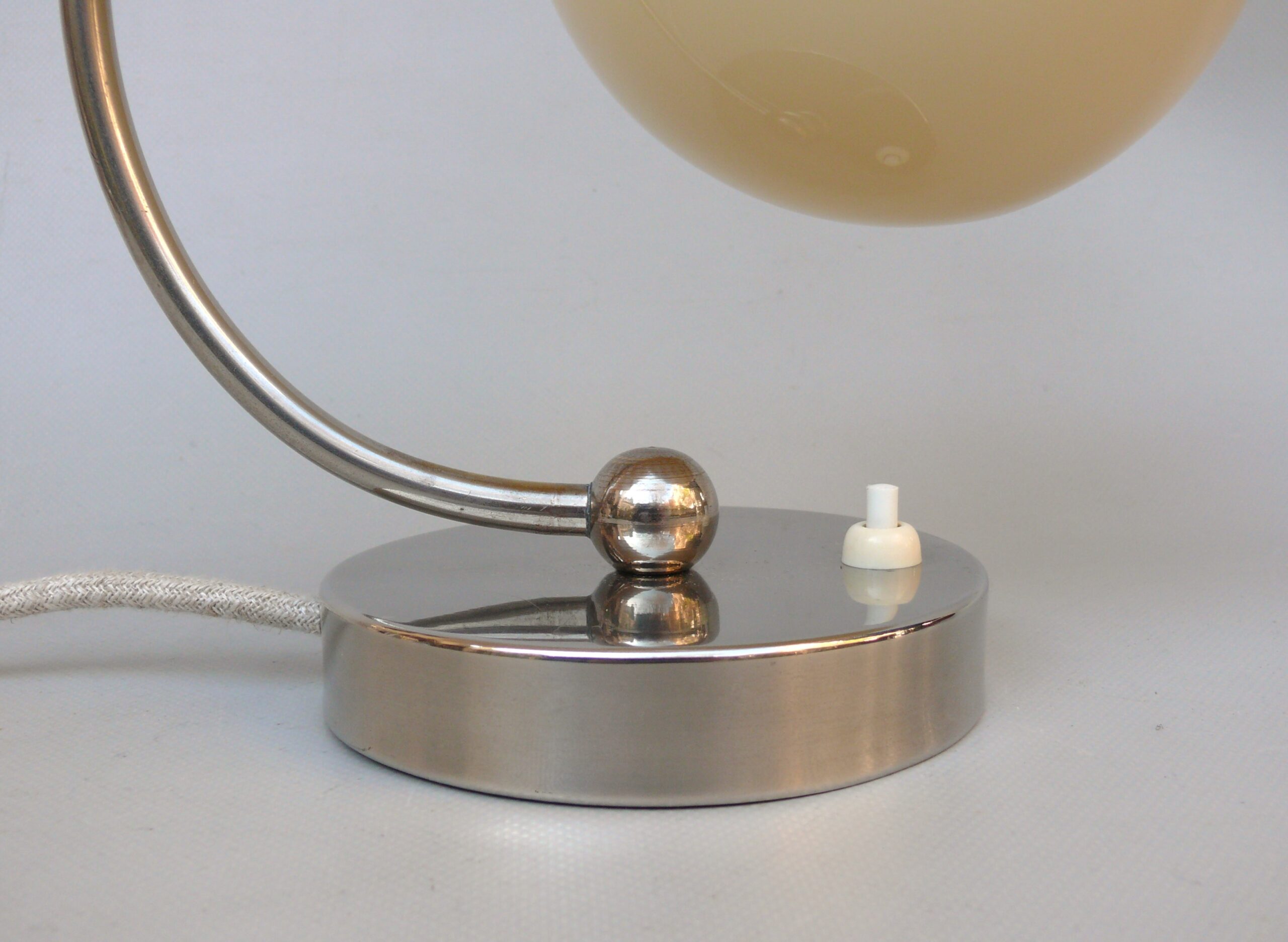 N23 – Nachttischleuchte, Art Deco, verchromt, Überfangglasschirm beige