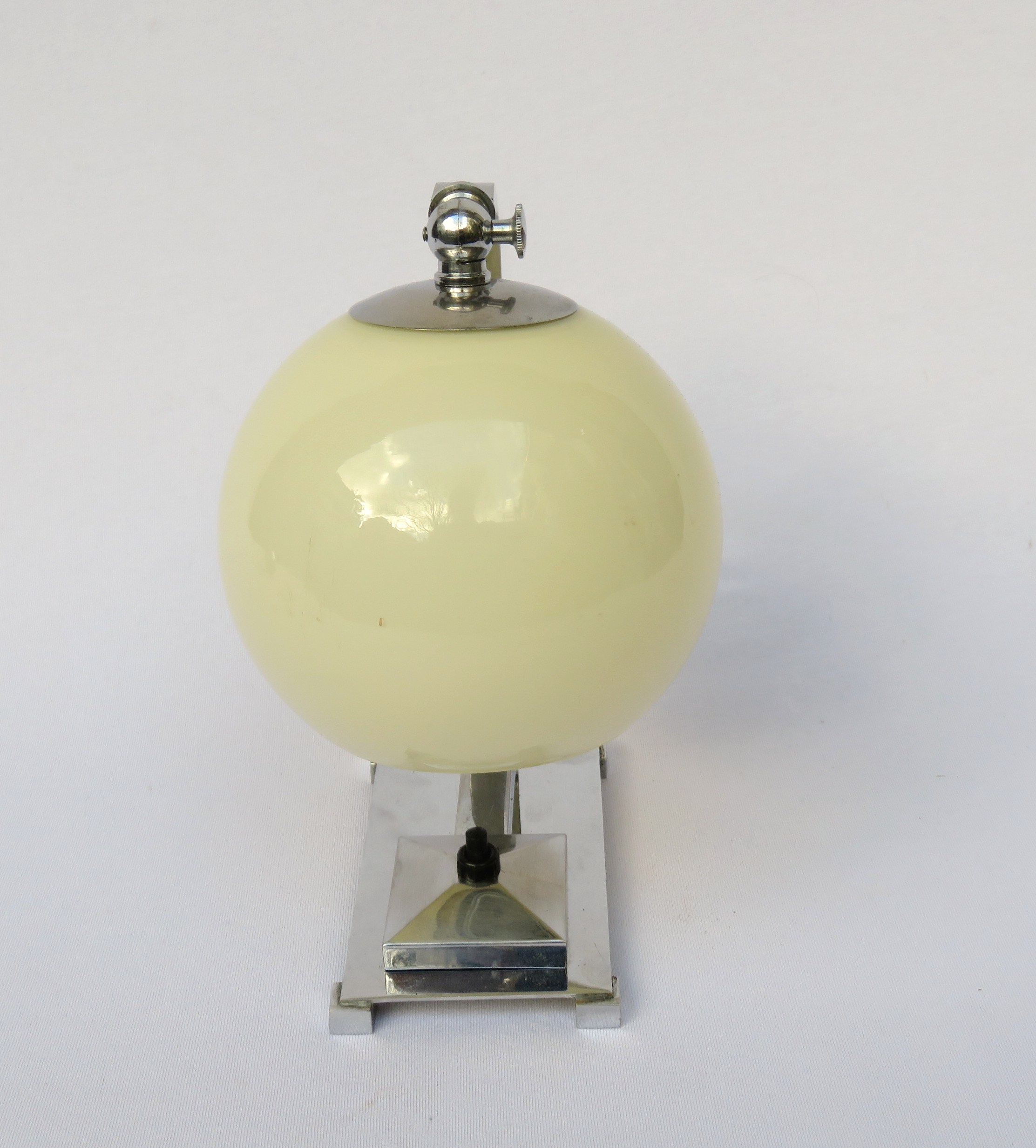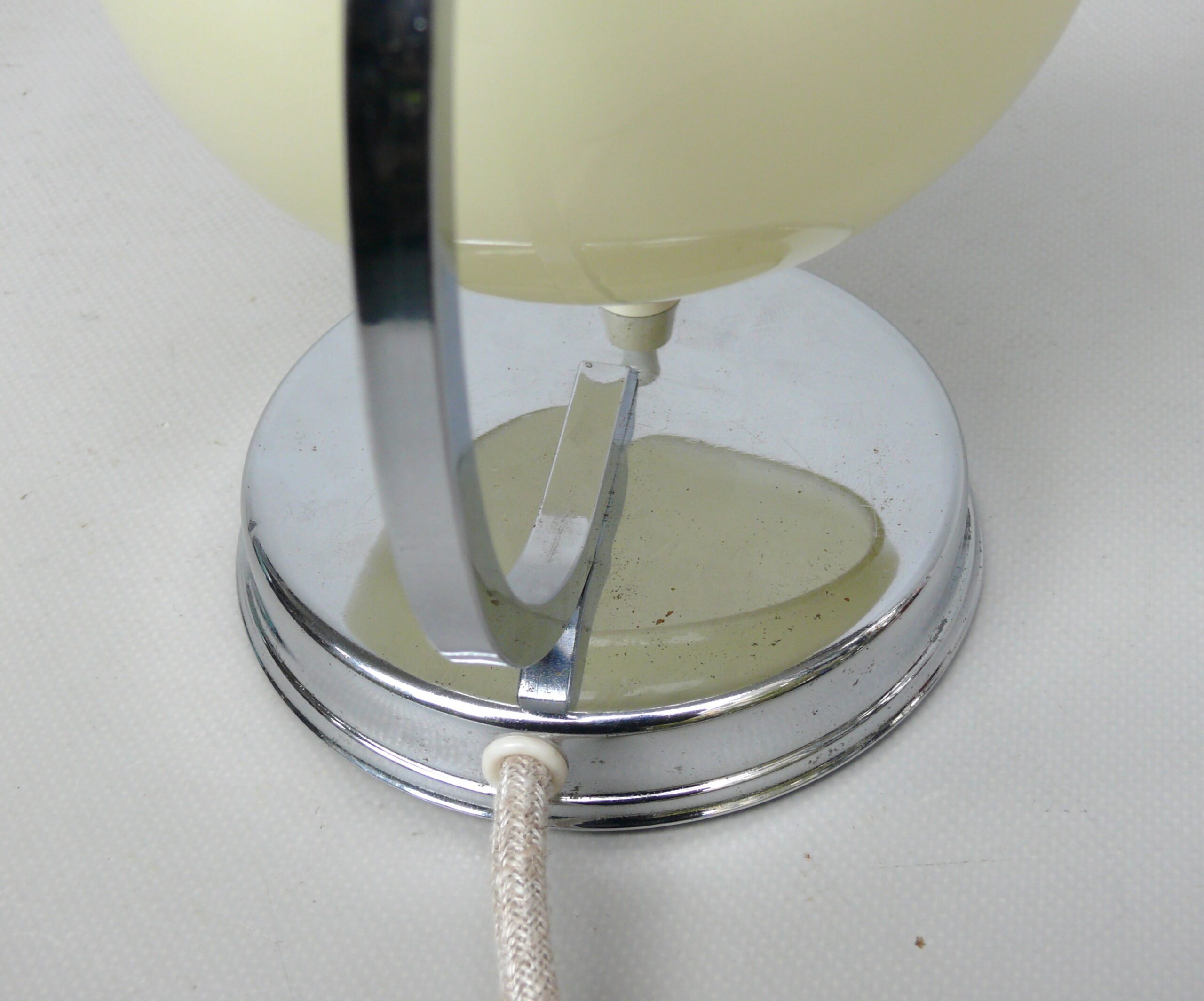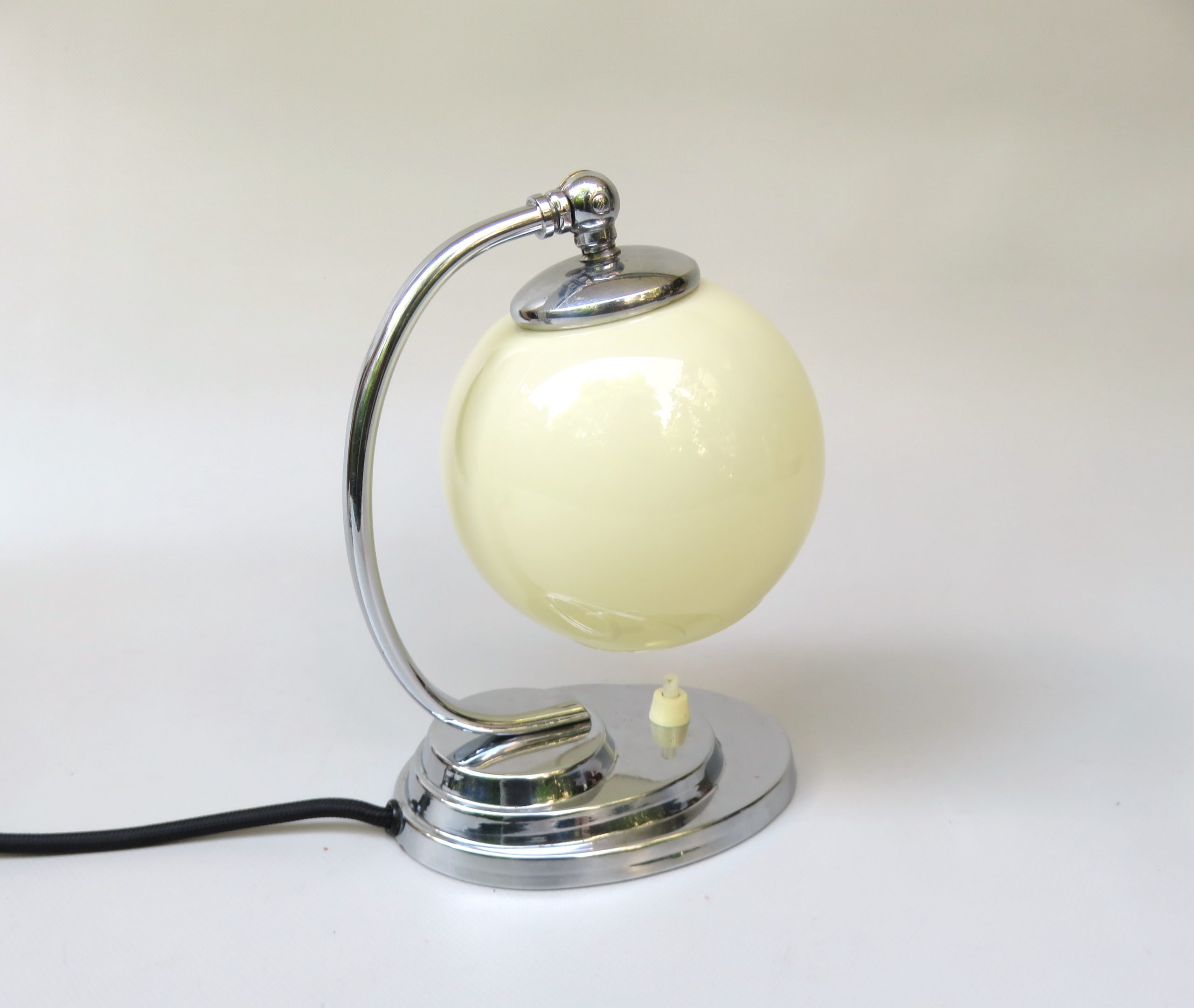 N23 – Nachttischleuchte, Art Deco, verchromt, Überfangglasschirm beige
