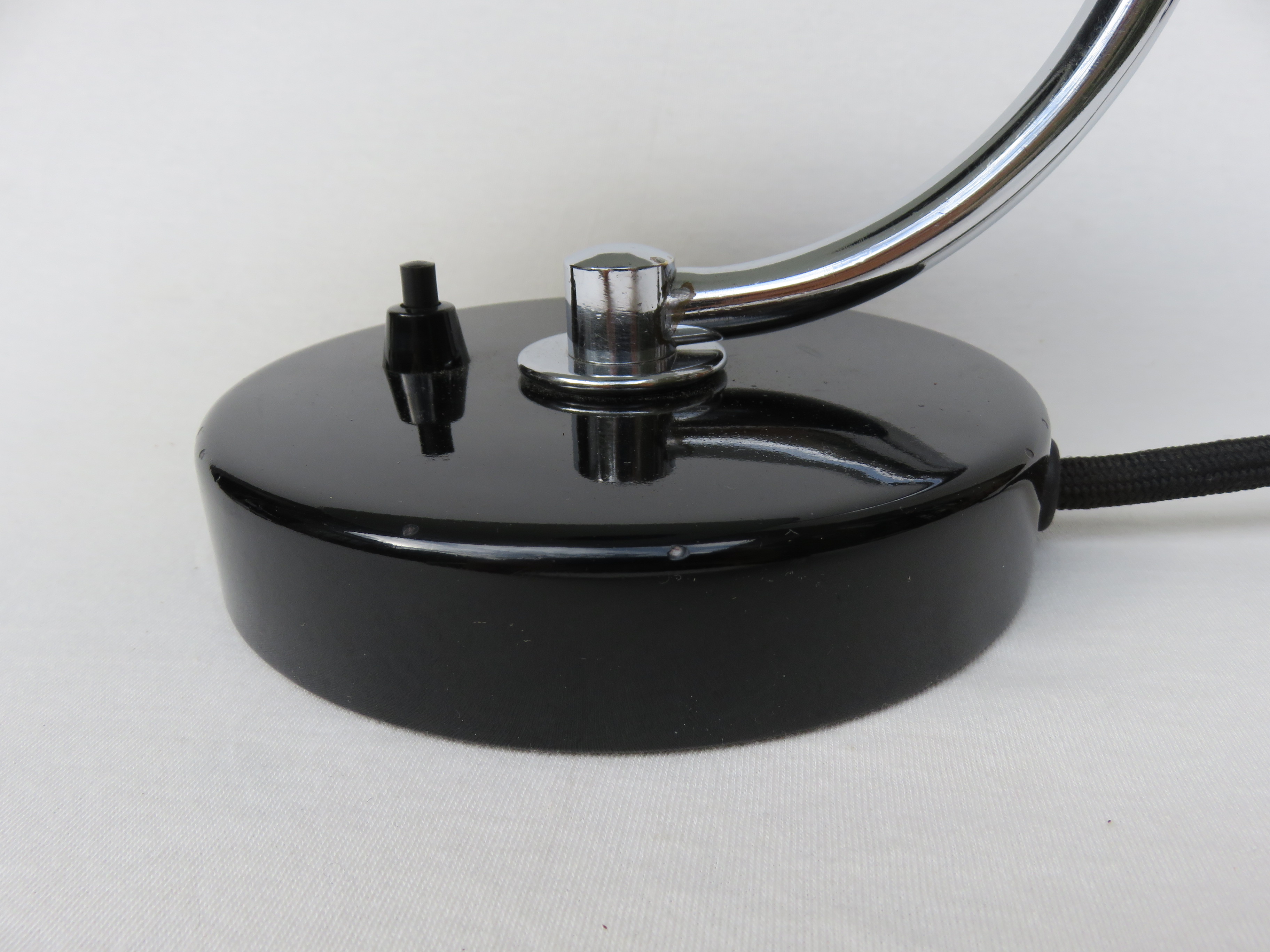 N76 – Nachttischleuchte, Art Deco, verchromt, schwarz