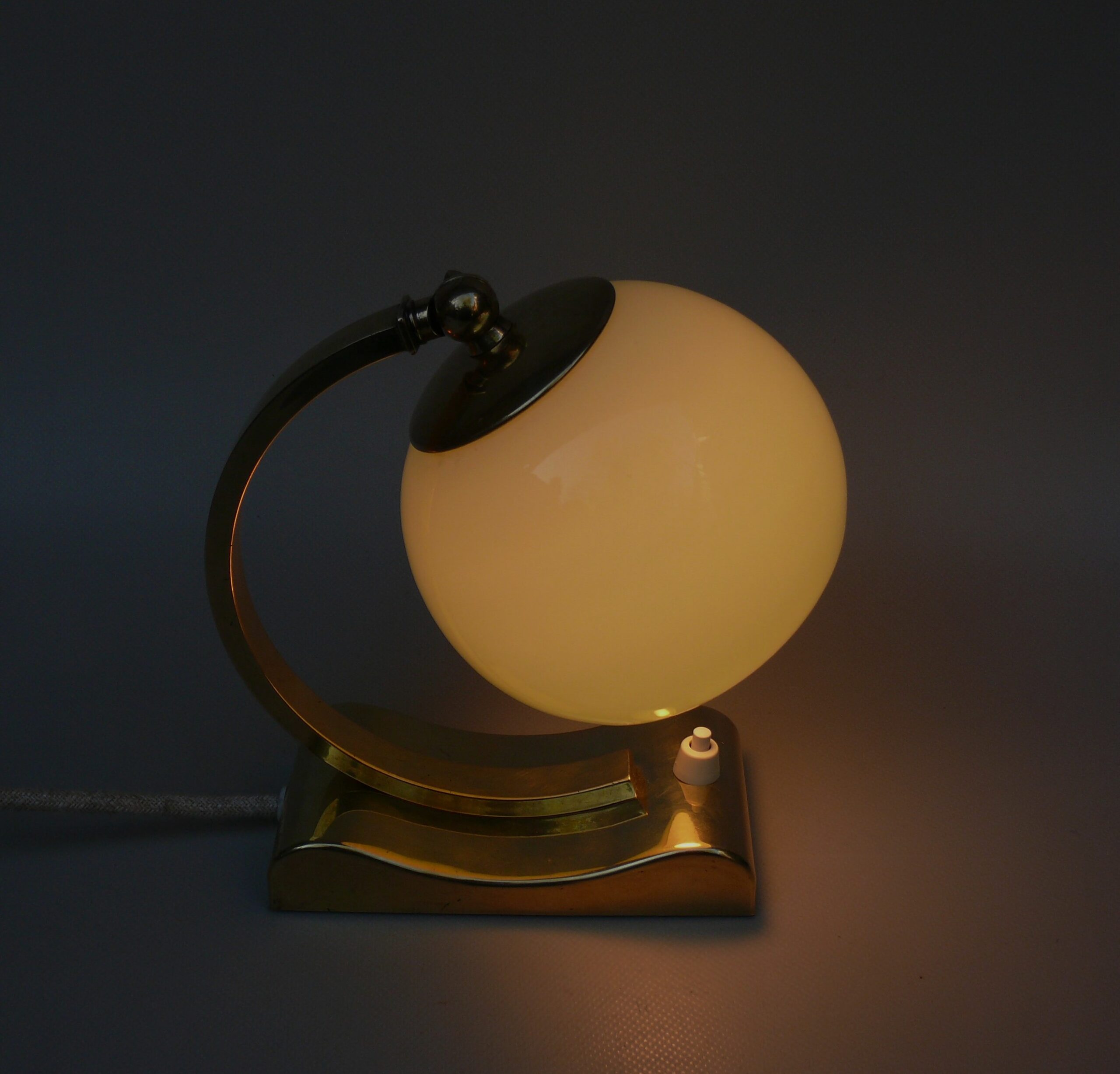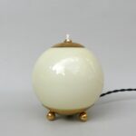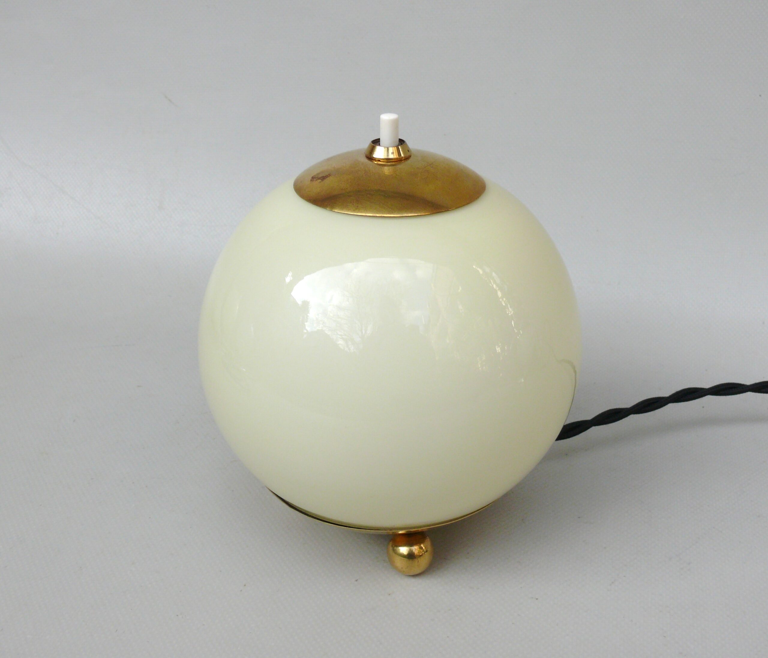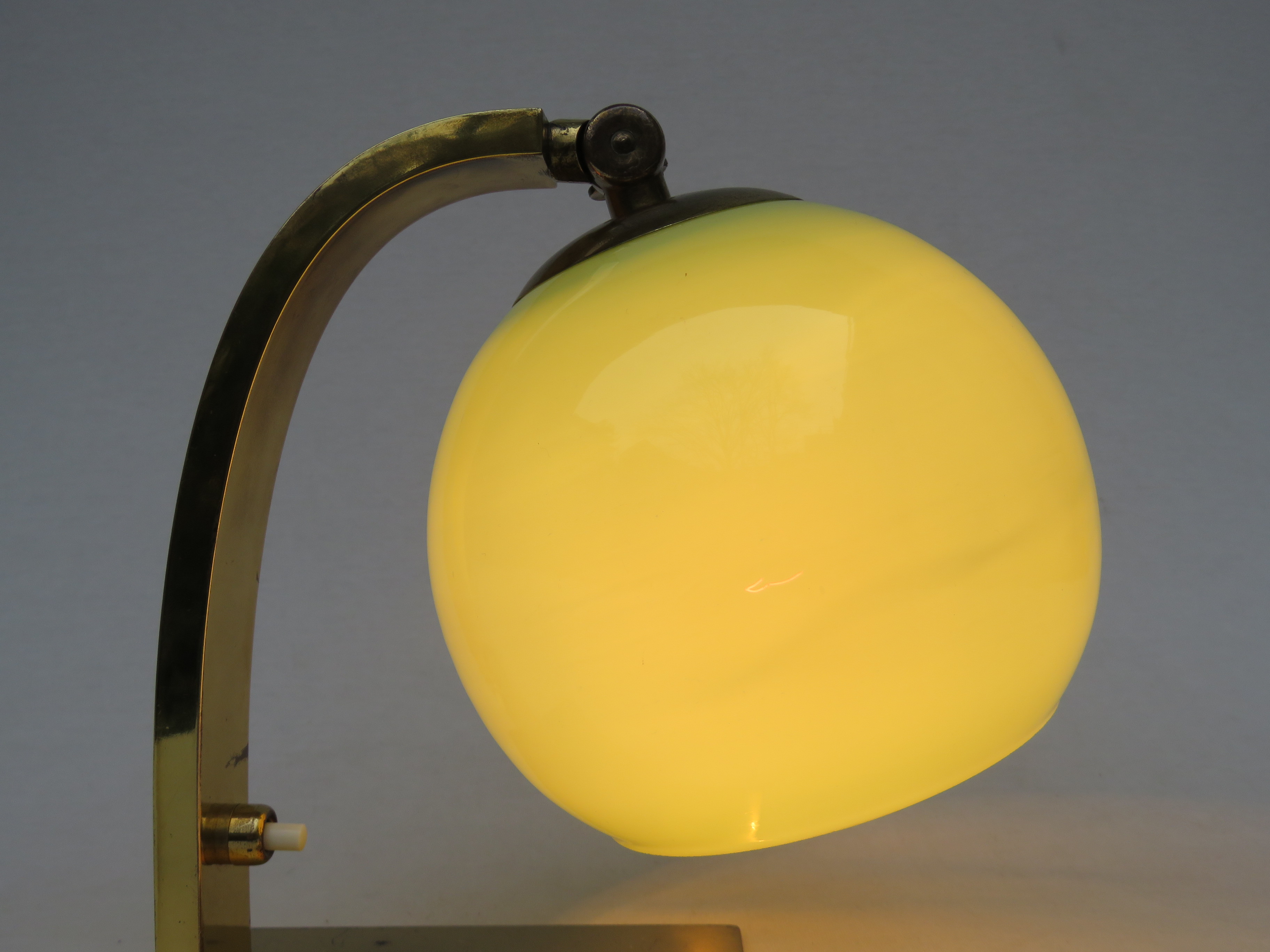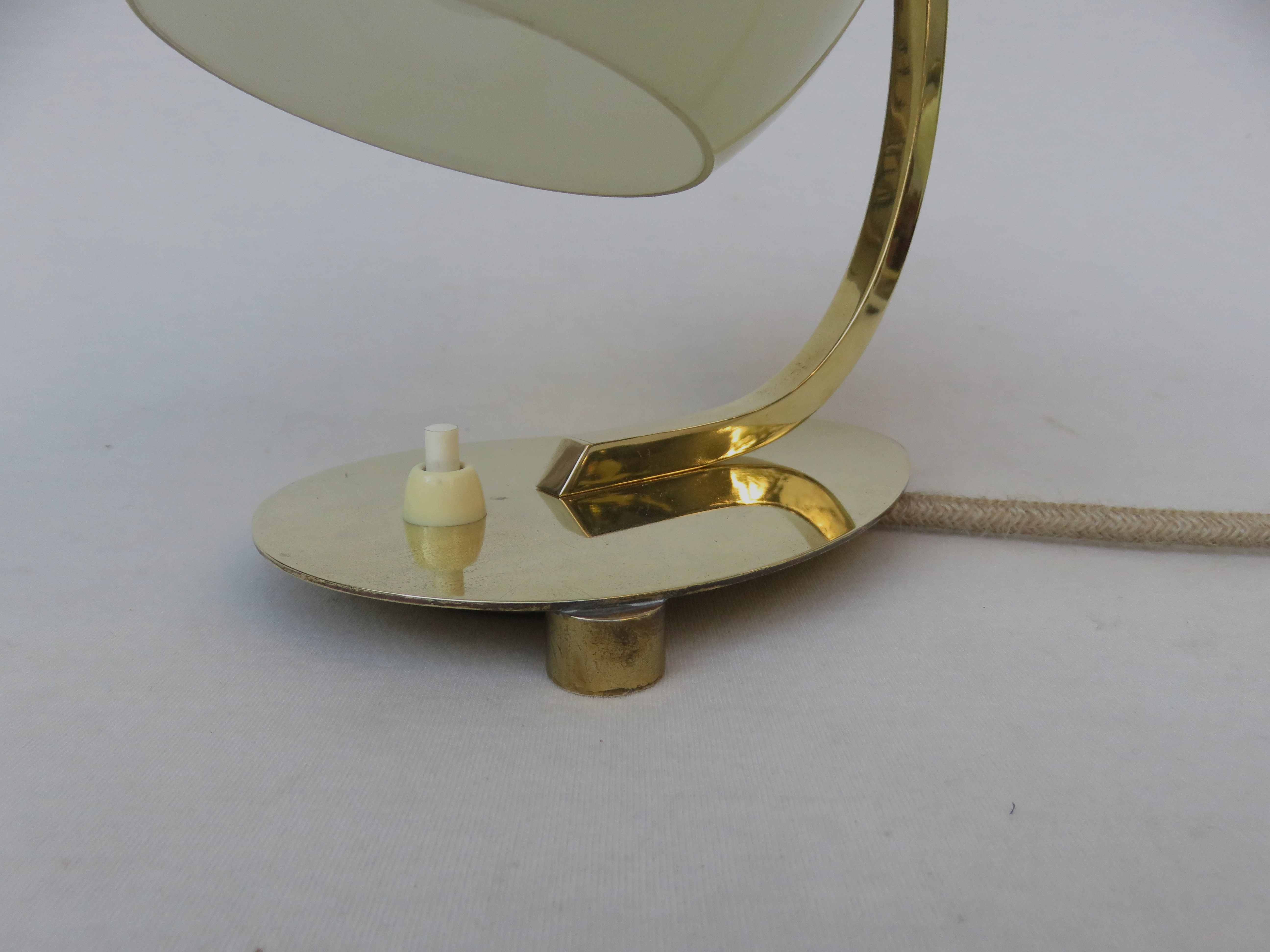 N88 – Nachttischleuchte, kleine Tischleuchte, Bauhaus-Ära, Messing, Überfangglas beige