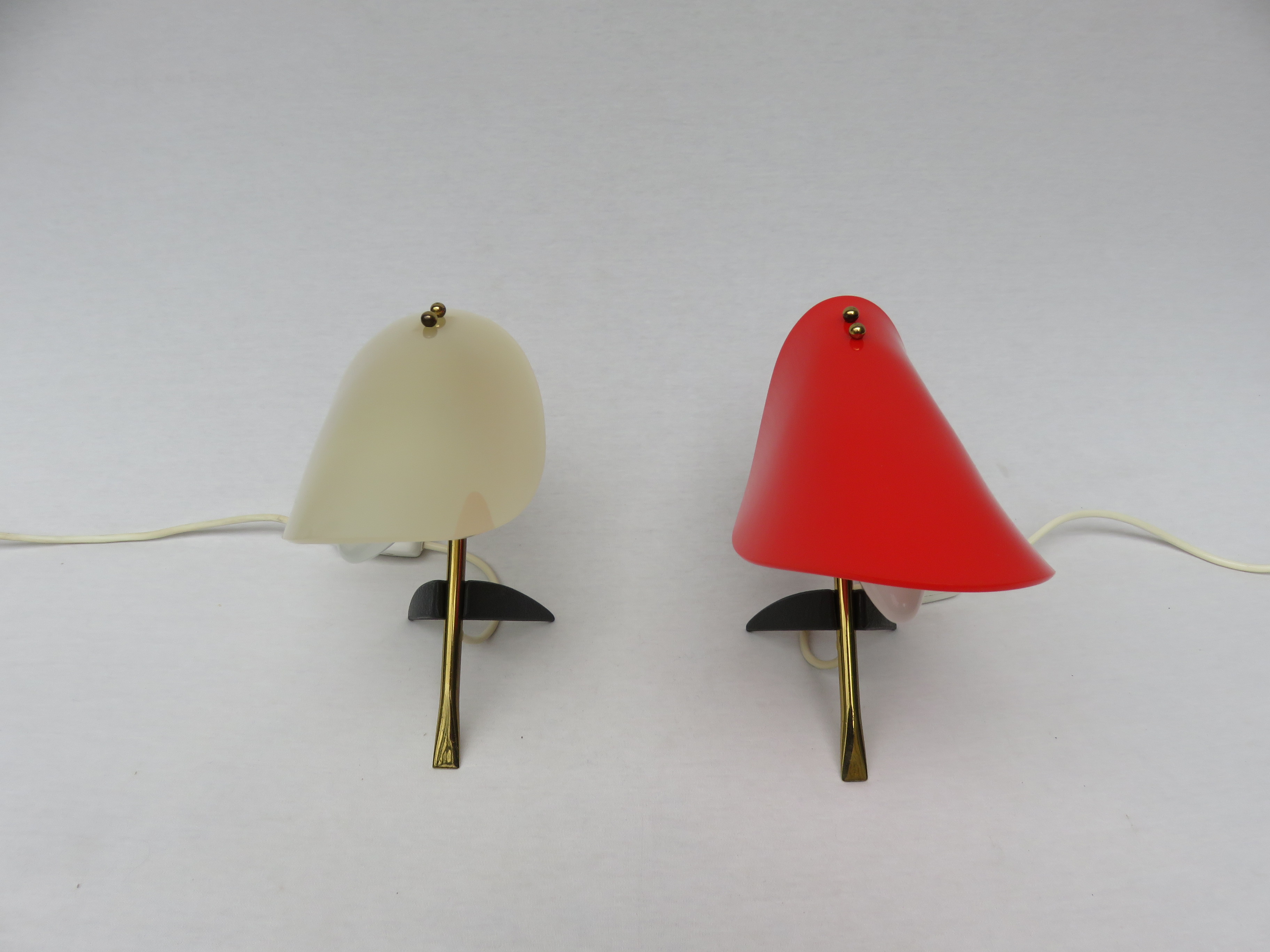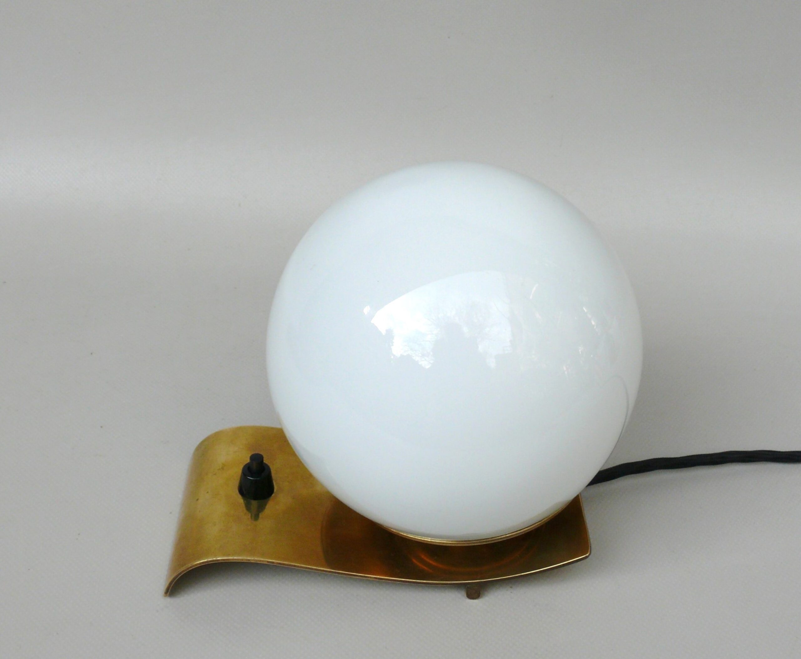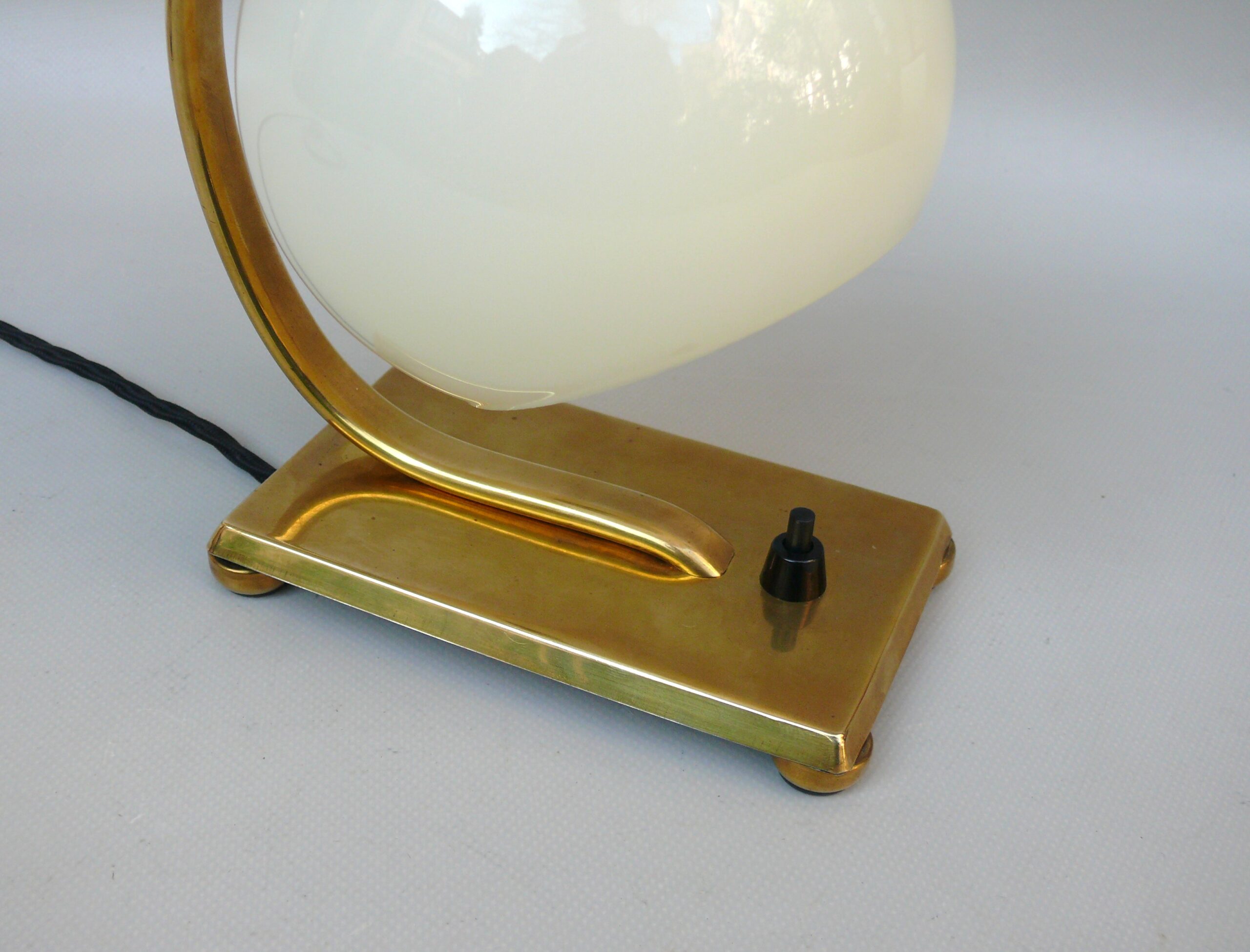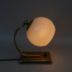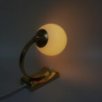 N88 – Nachttischleuchte, kleine Tischleuchte, Bauhaus-Ära, Messing, Überfangglas beige