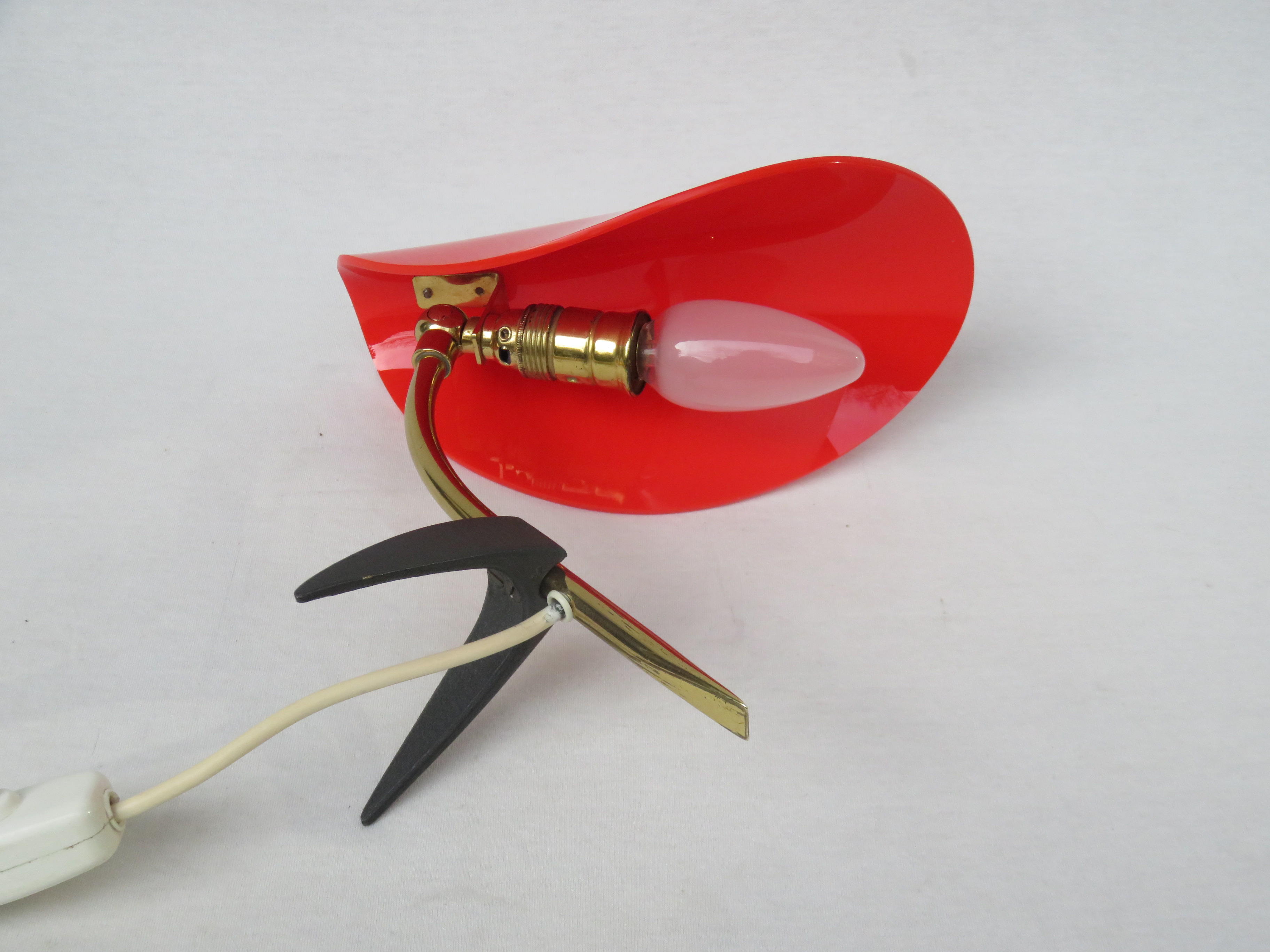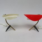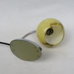 Die Vernickelung ist gering berieben, jedoch nicht störend. Die Leuchte hat eine E27-Fassung. Sie kann auch als Wandleuchte vewendet werden. Der Schirm wird dann durch das Gelenk eingestellt.