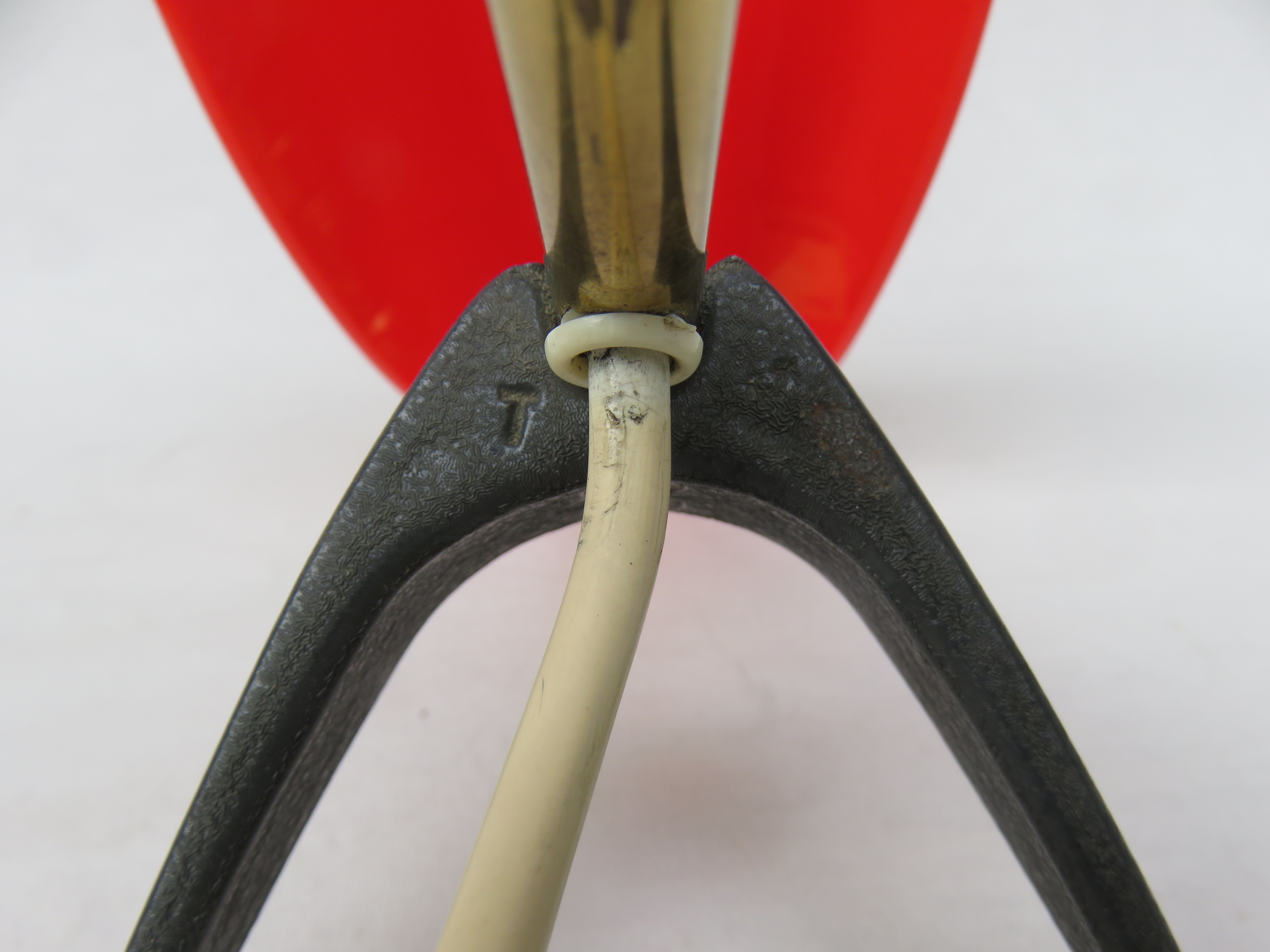 Die Leuchte ist in einem schönen Zustand. Sie hat eine E27-Fassung, der Schirm kann geschwenkt werden.