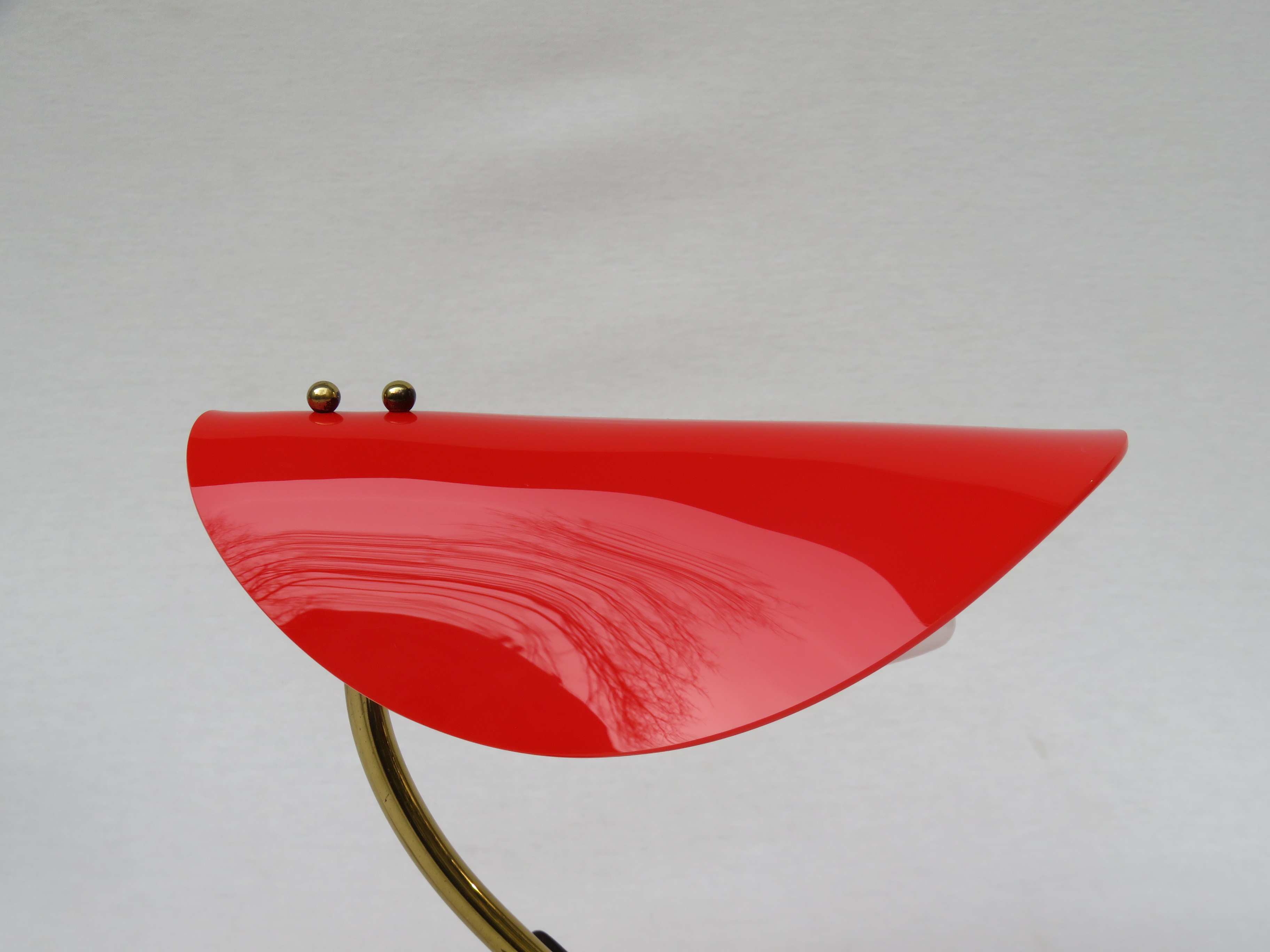 N87 – Nachttischleuchte, kleine Tischleuchte, Österreich, 50er Jahre, Messing, original Lampenschirm