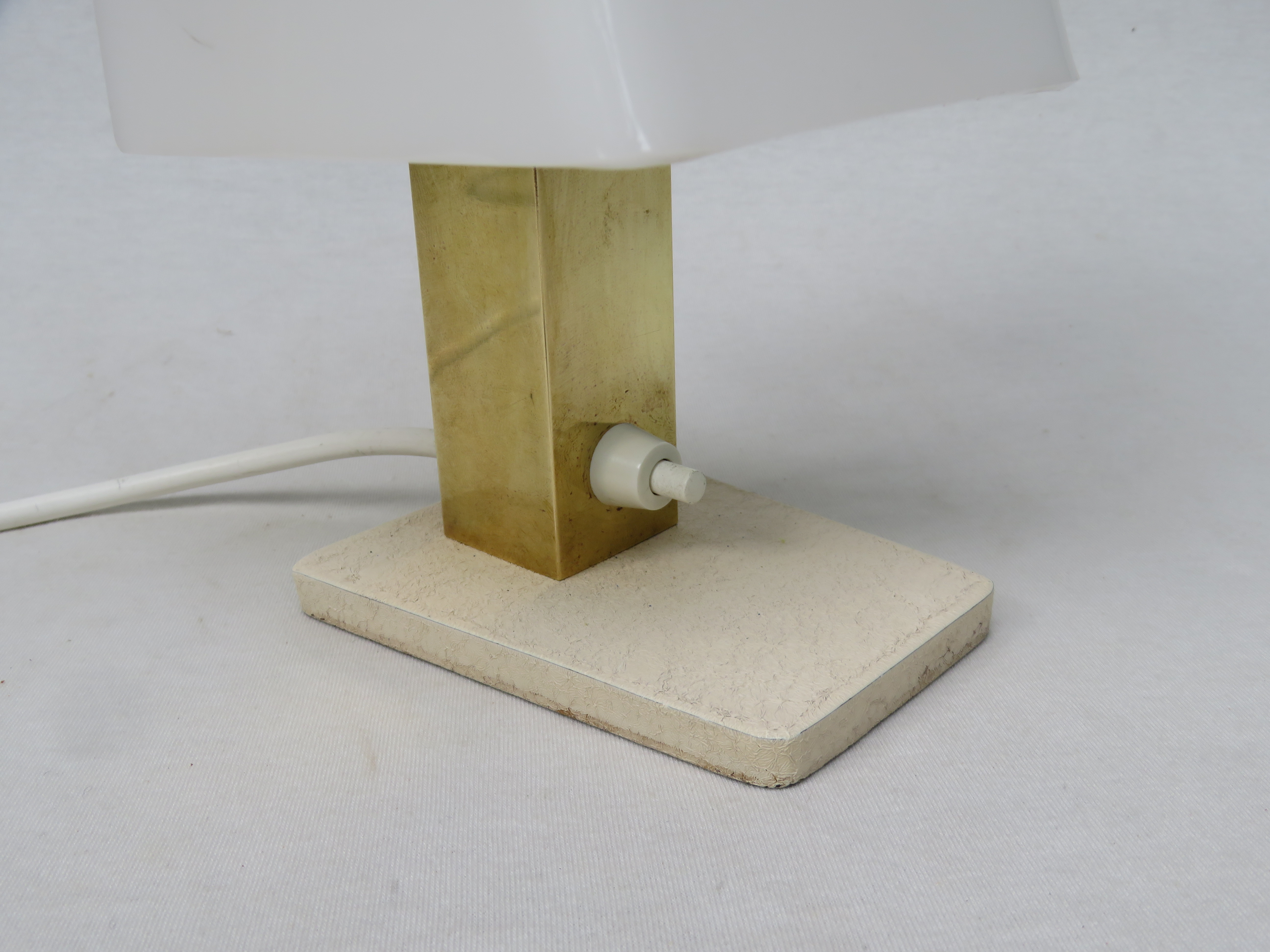 N83 – Nachttischleuchte, 60er Jahre, Hillebrand Leuchten, Messing, Plexiglas weiß
