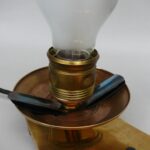 Die Leuchte verfügt über eine Fassung E27. Der original Lampenschirm ist mit Kunststoff bespannt. Es handelt sich um einen Aufsteck-Lampenschirm. Dieser kann variabel auf die Leuchte aufgesetzt – gedreht und geneigt – werden, so daß eine individuelle Beleuchtung geschaffen werden kann.