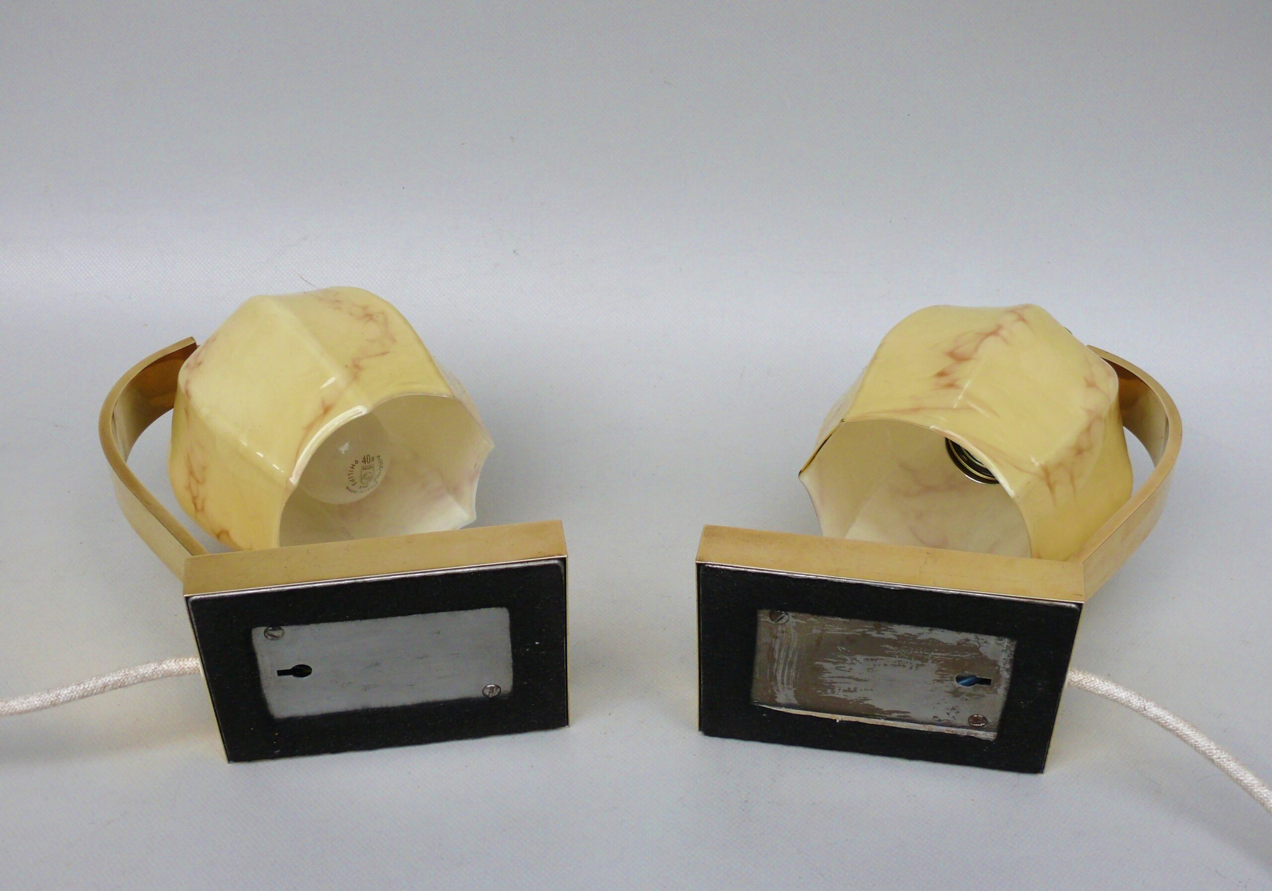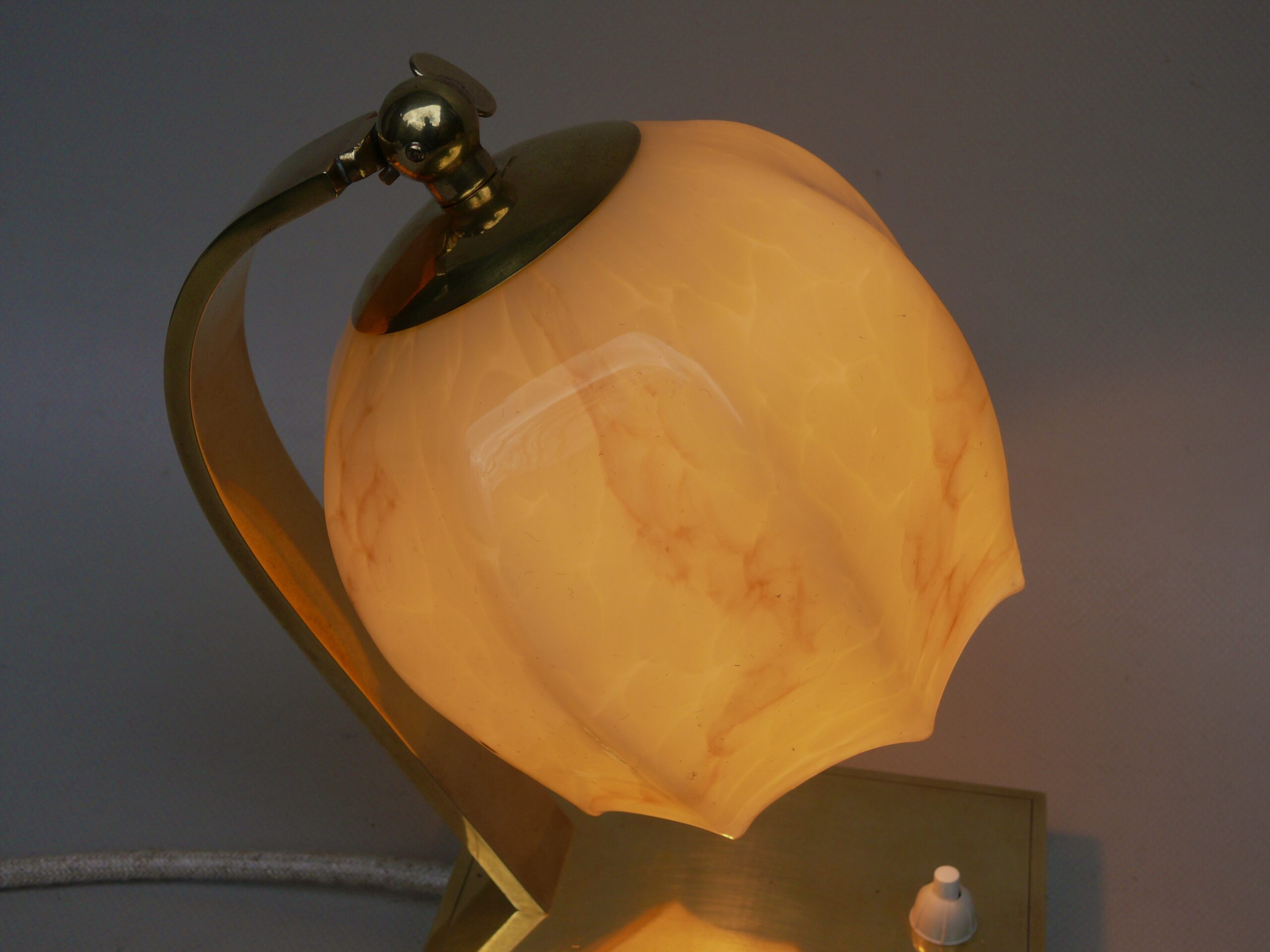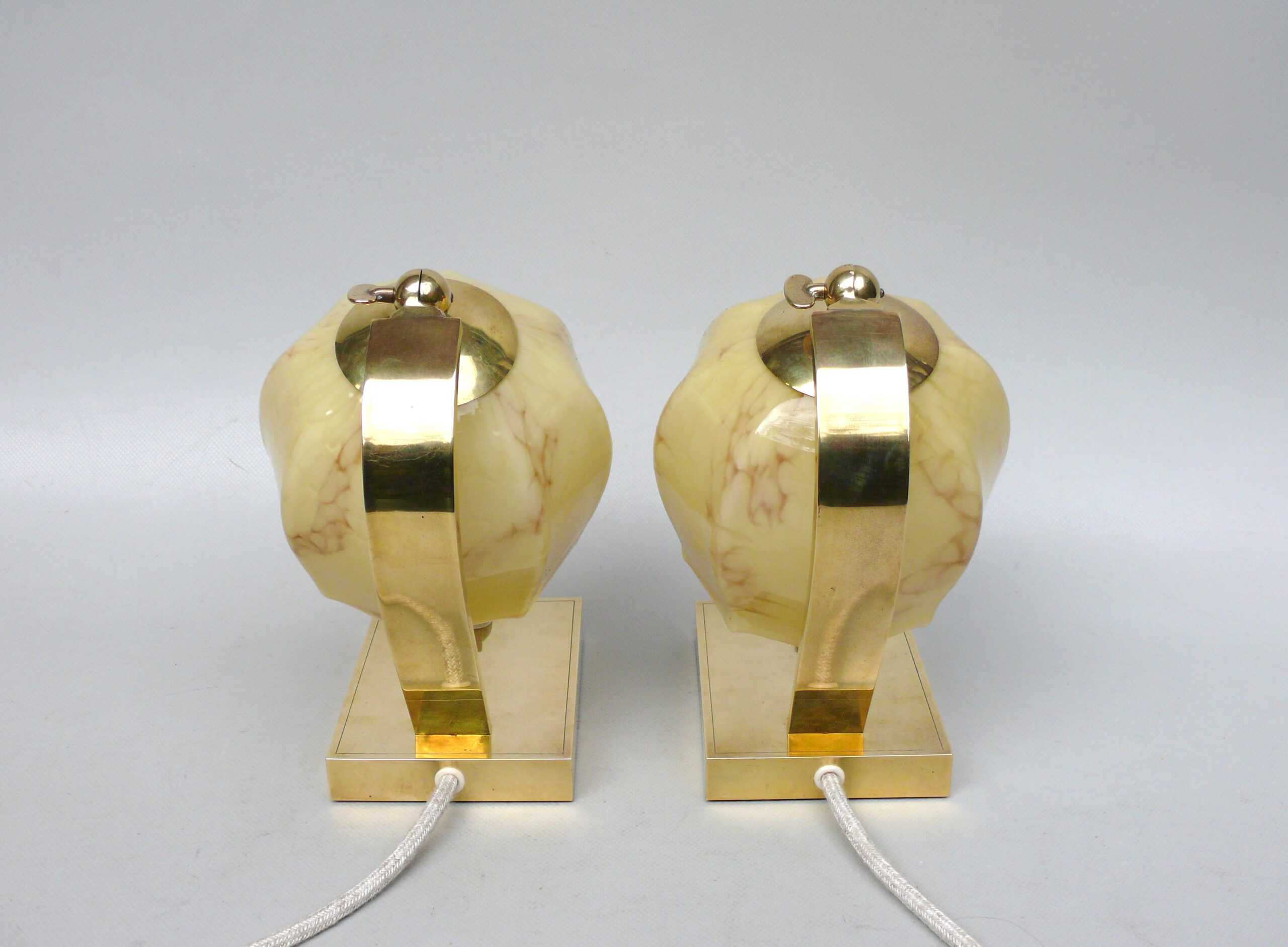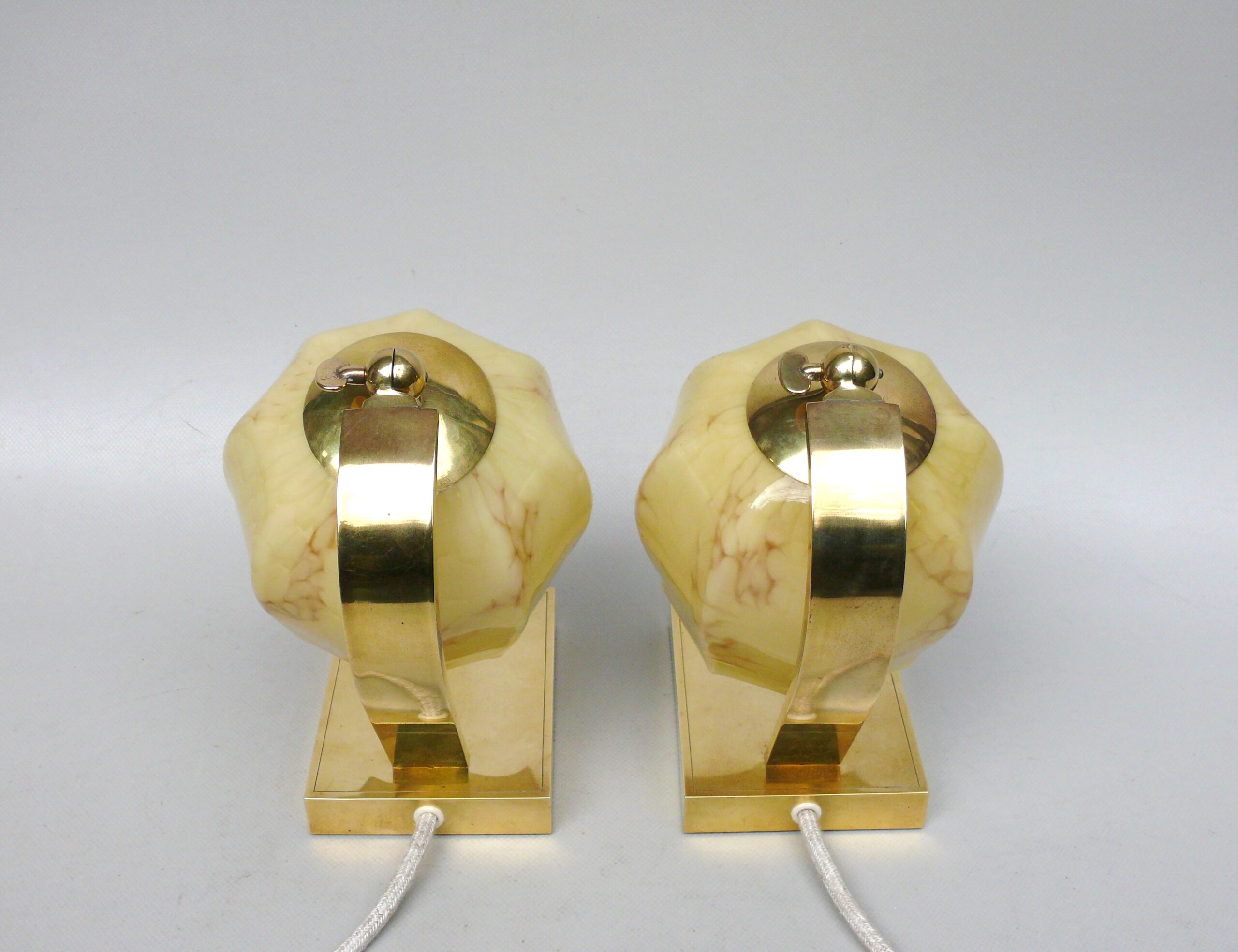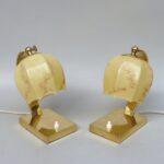 NP16 – 1 Paar Nachttischleuchten, Art Deco, Messing, Überfanglasschirme beige