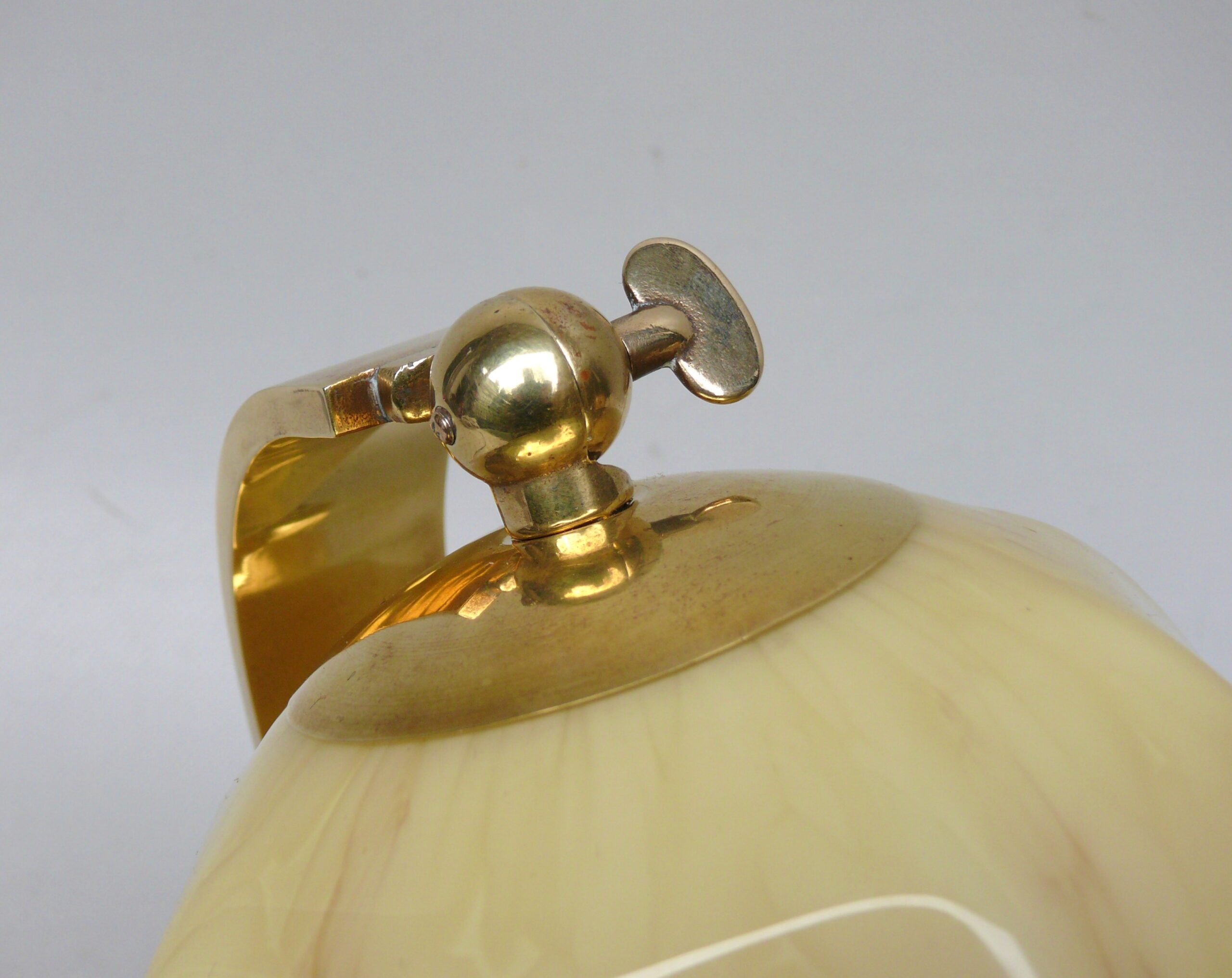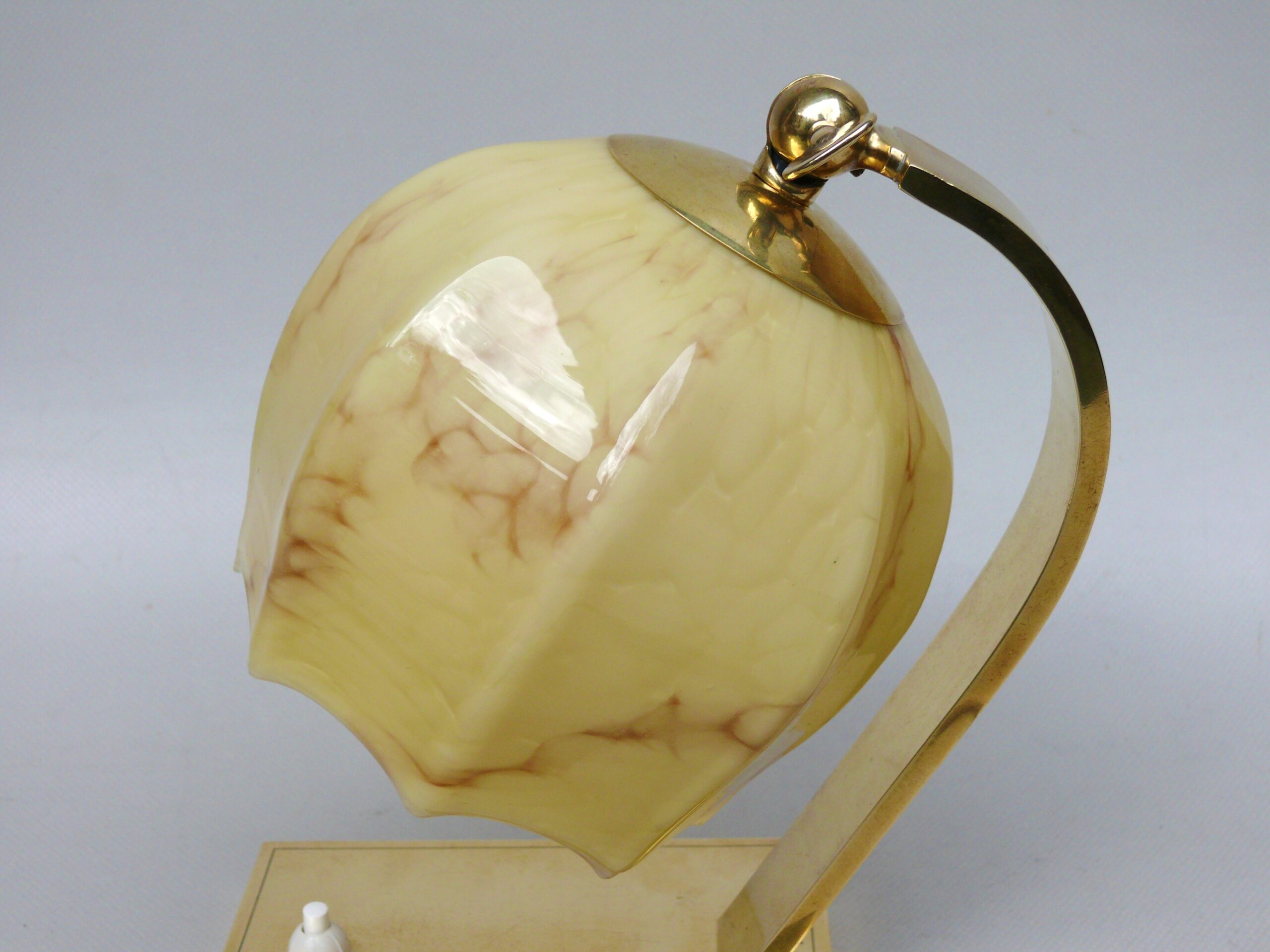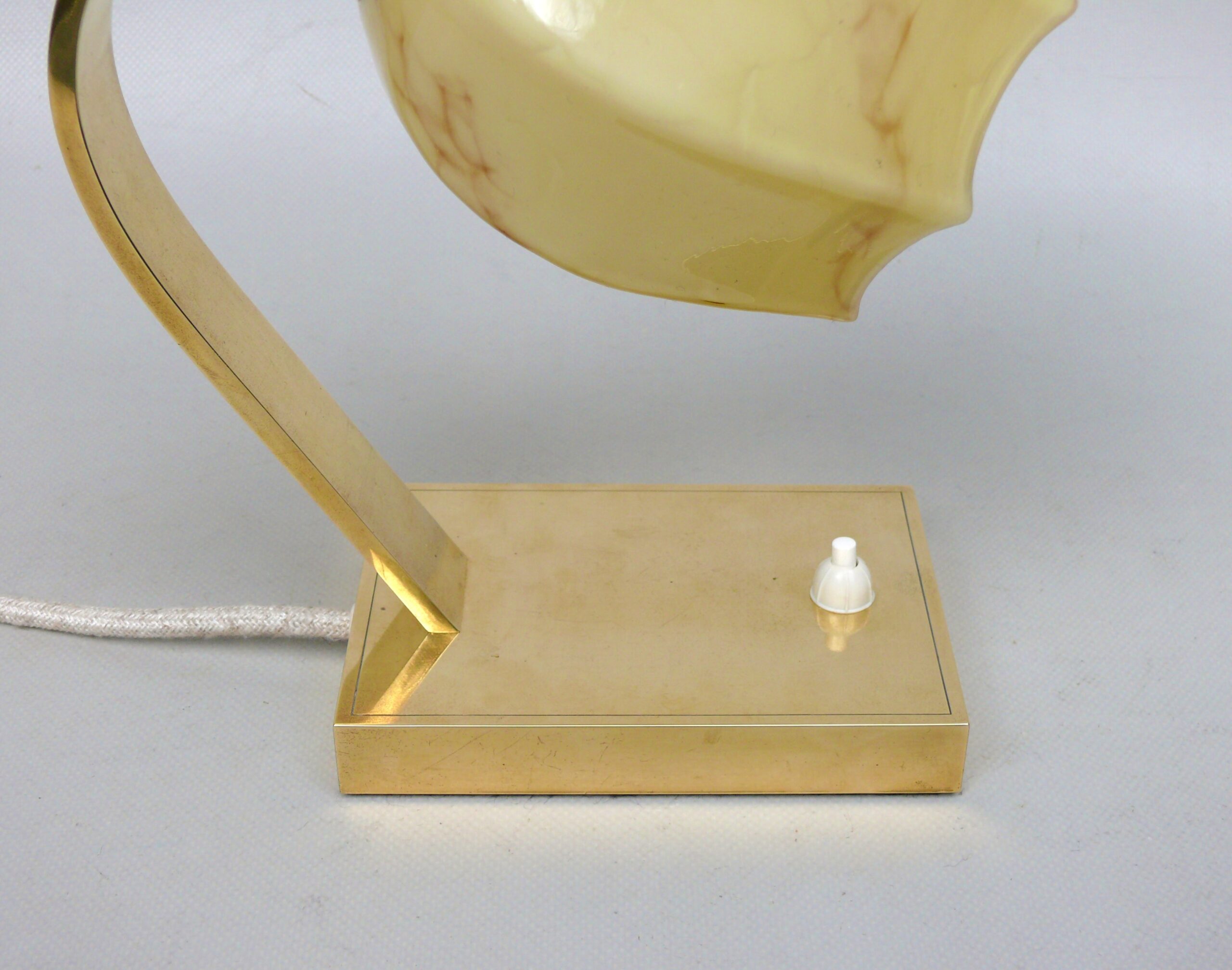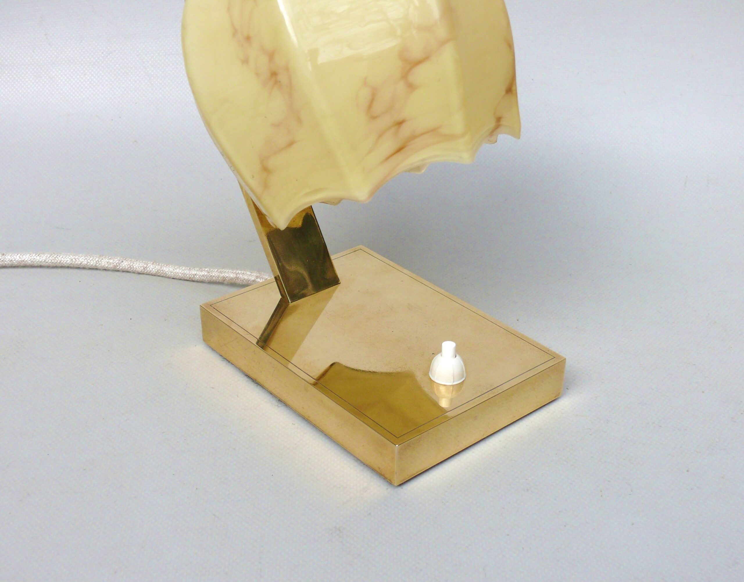 NP16 – 1 Paar Nachttischleuchten, Art Deco, Messing, Überfanglasschirme beige