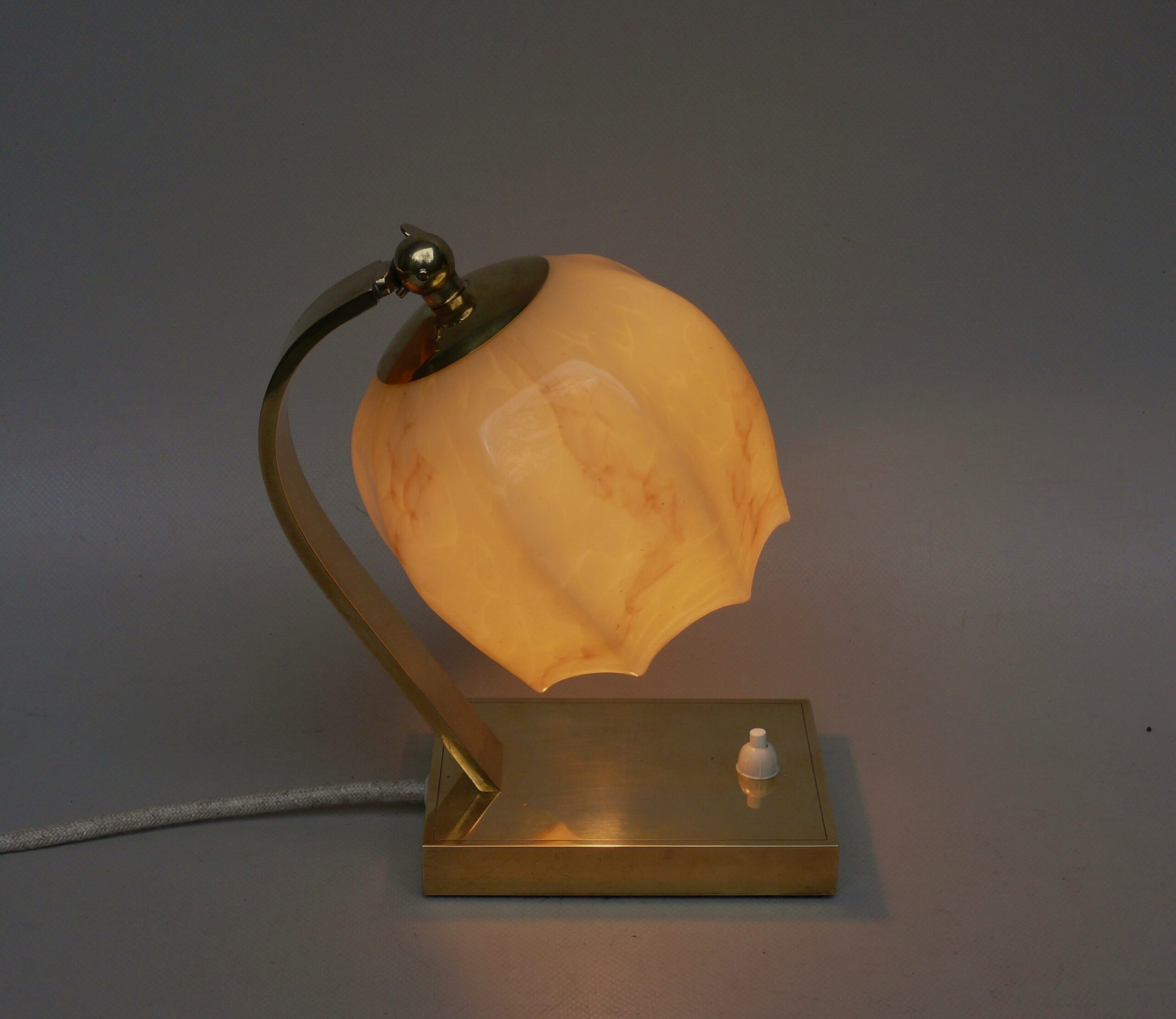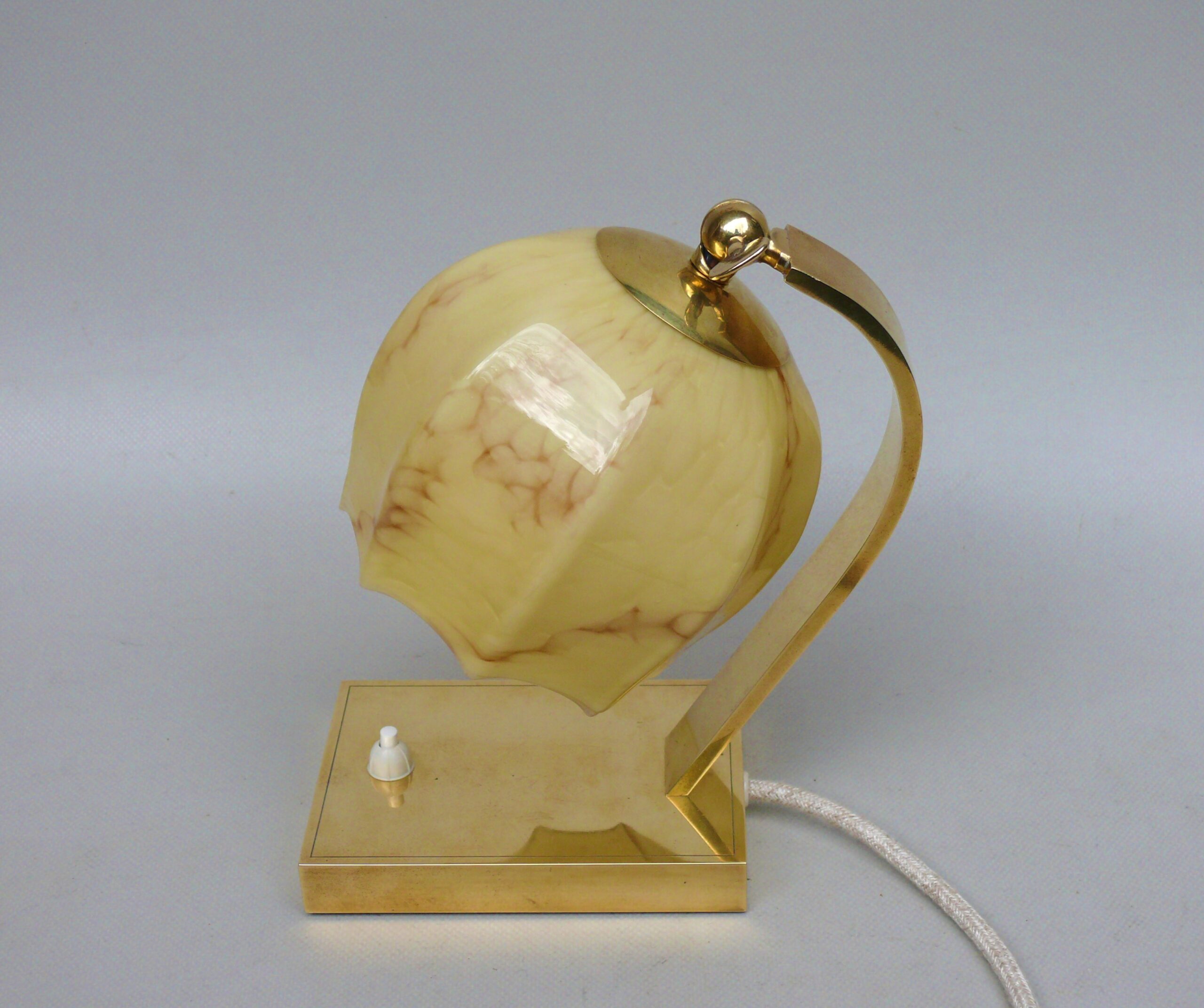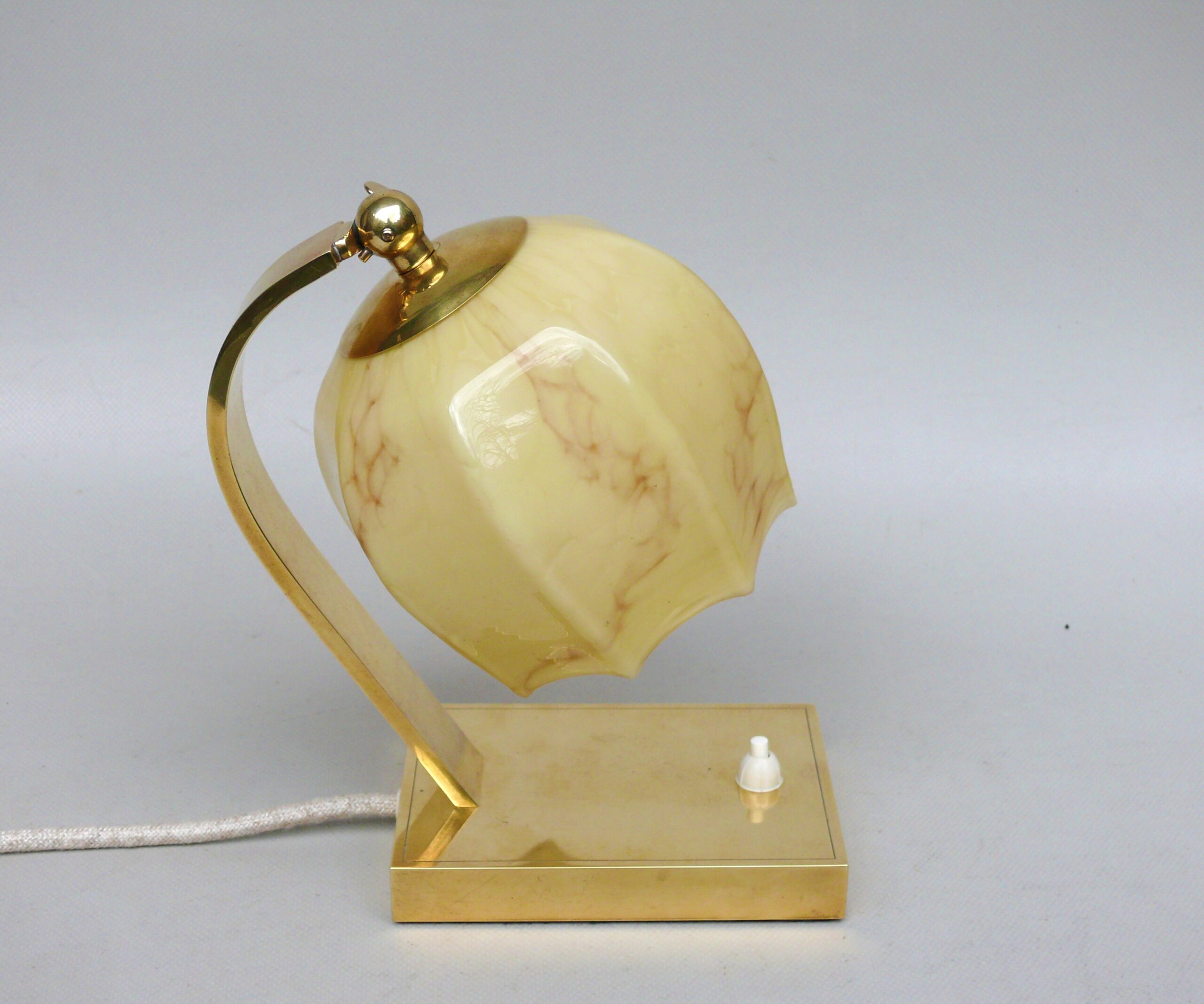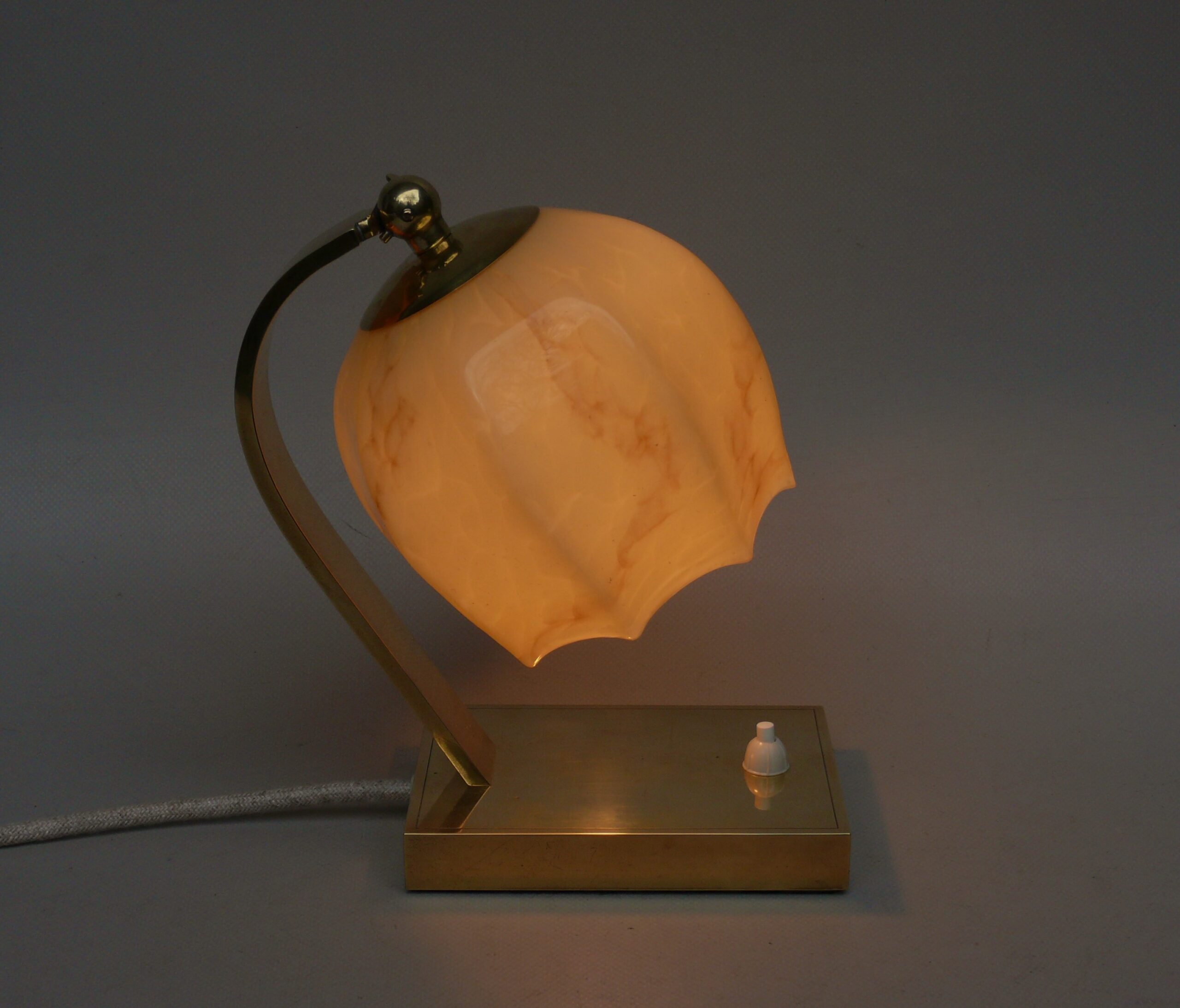 NP142 – 1 Paar Nachttischleuchten, Art Deco, Deutschland, Messing patiniert, Überfangglas beige