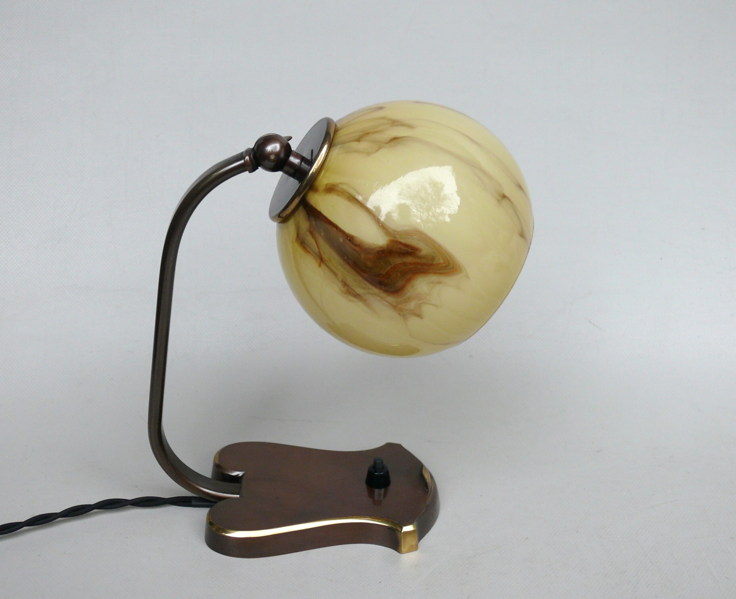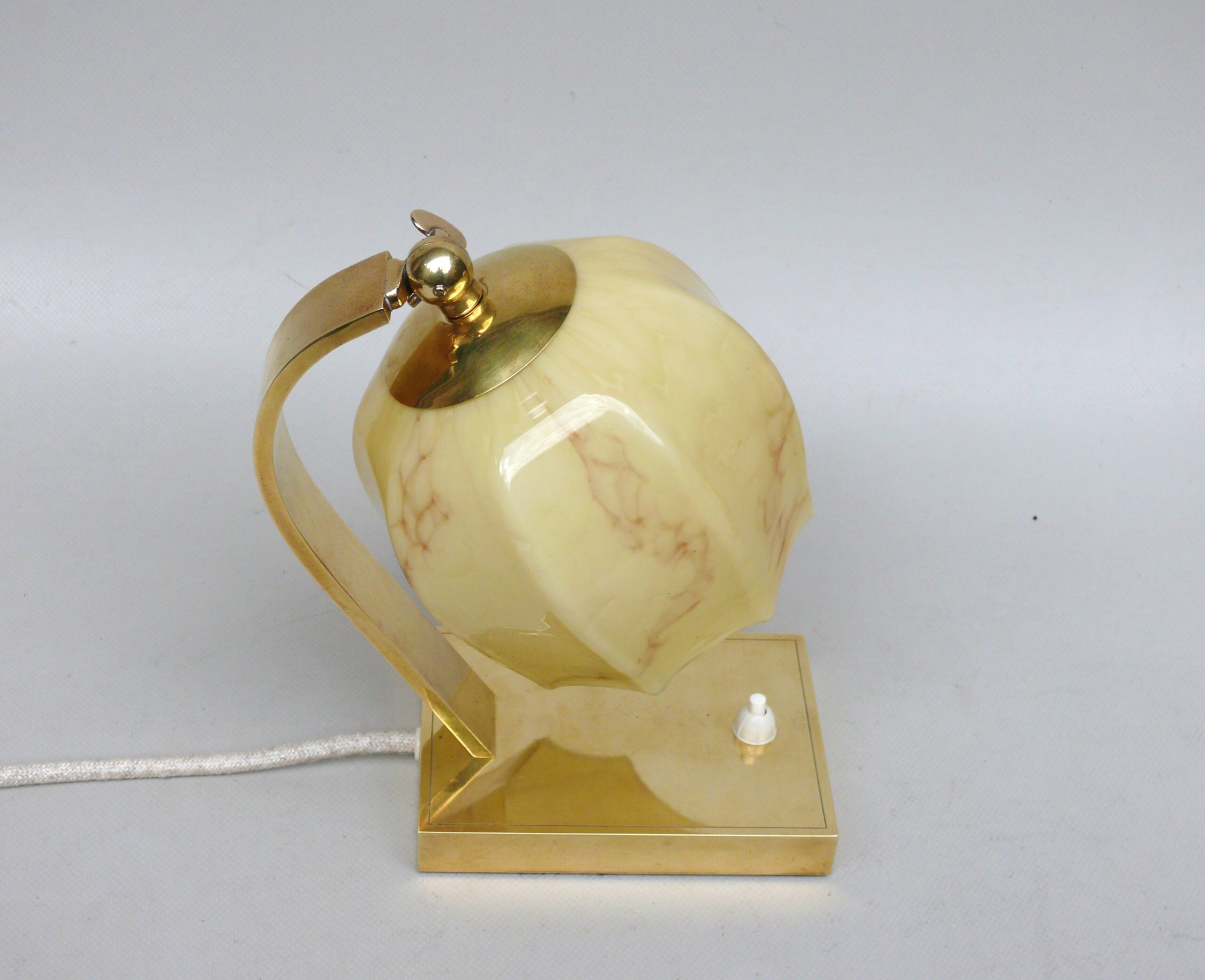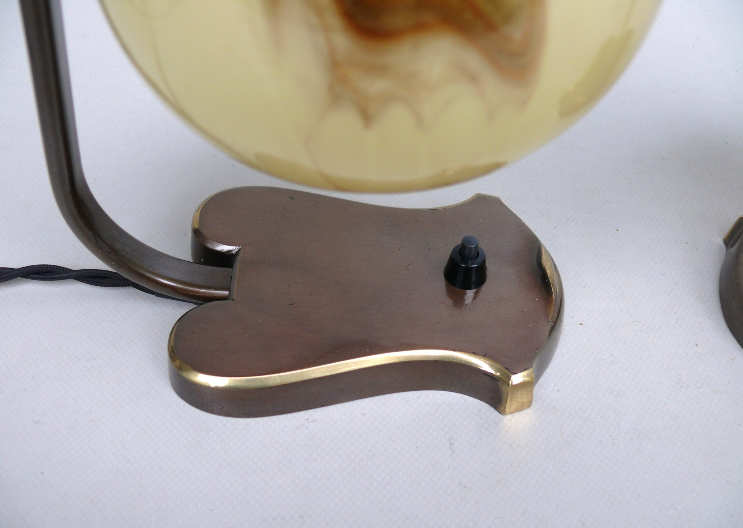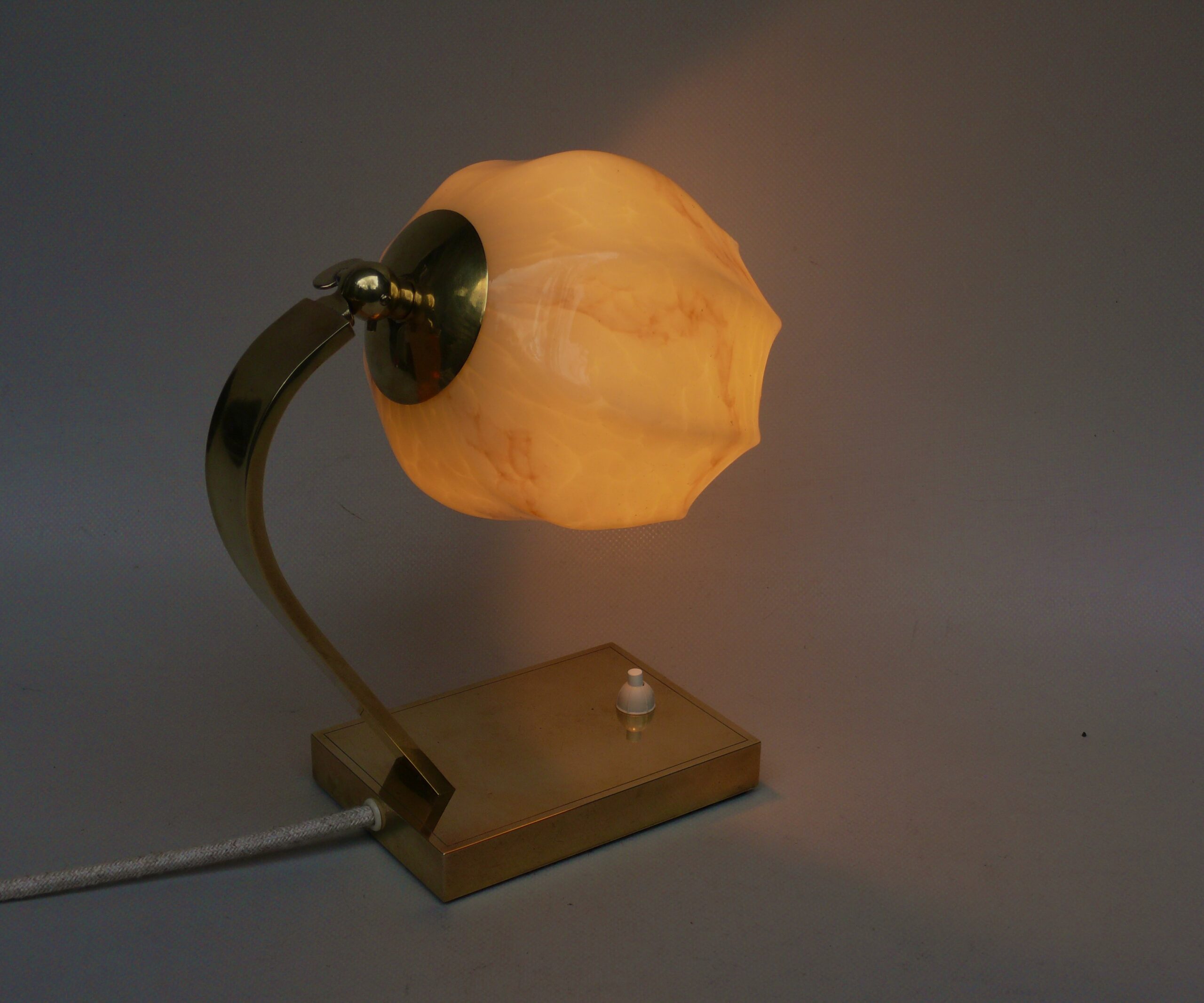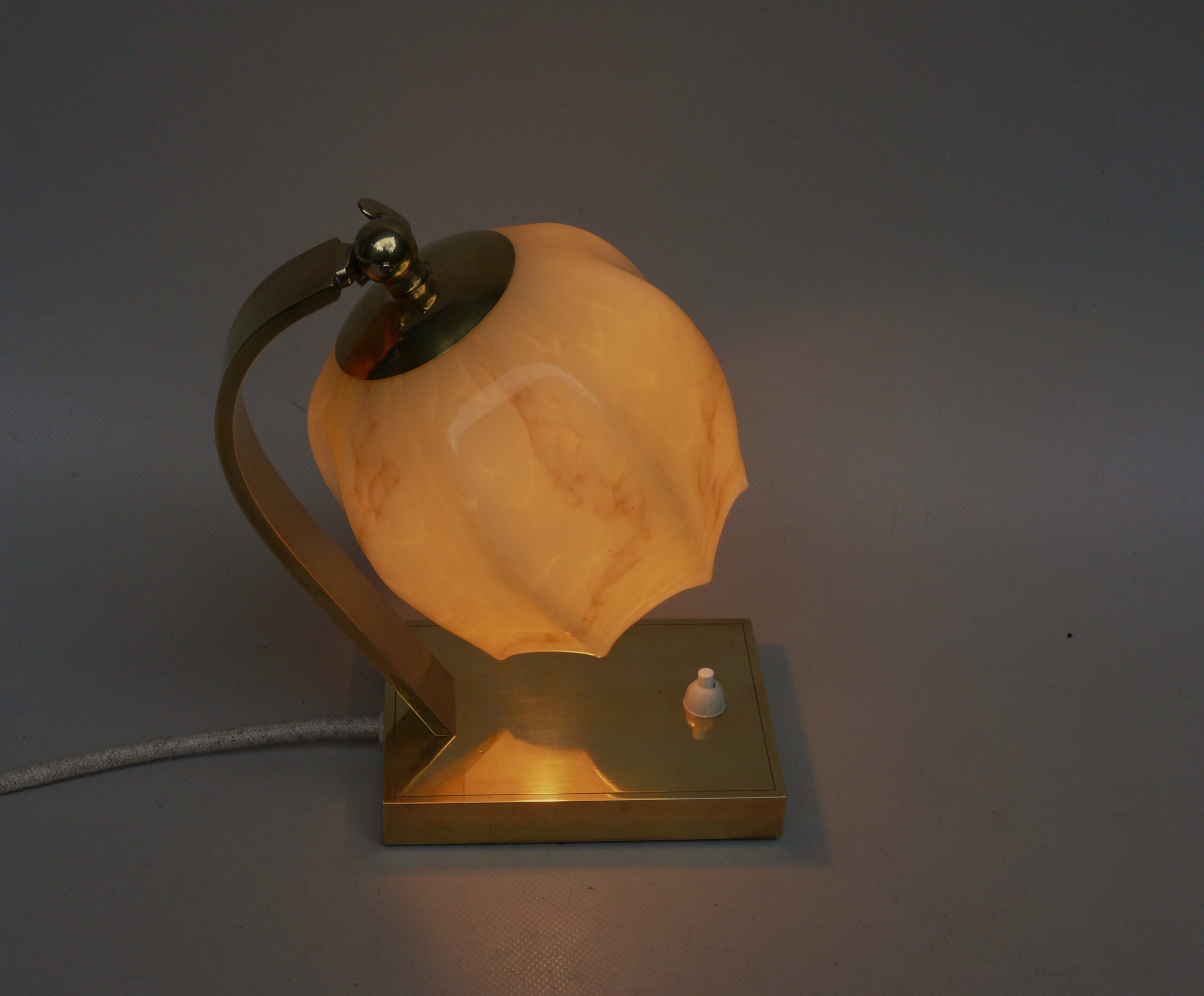 NP142 – 1 Paar Nachttischleuchten, Art Deco, Deutschland, Messing patiniert, Überfangglas beige