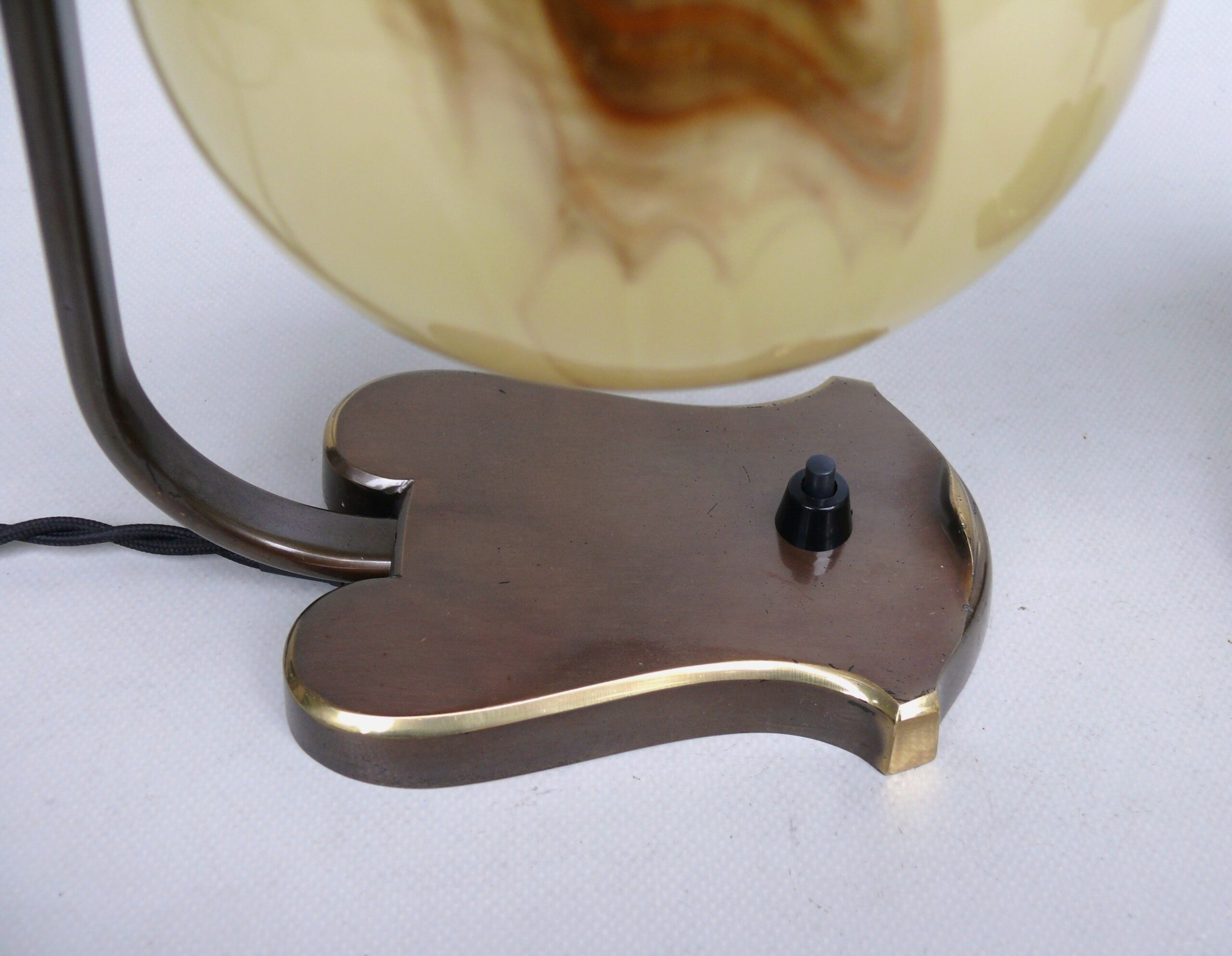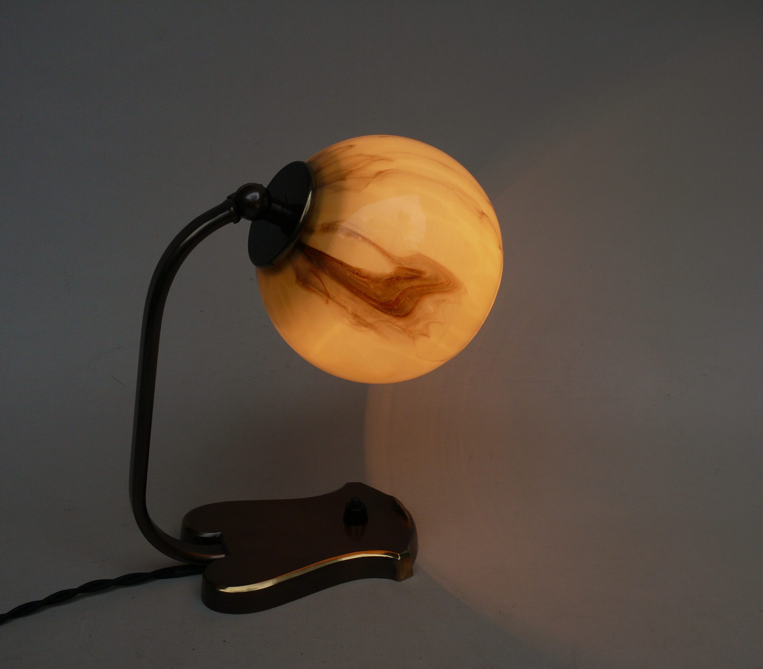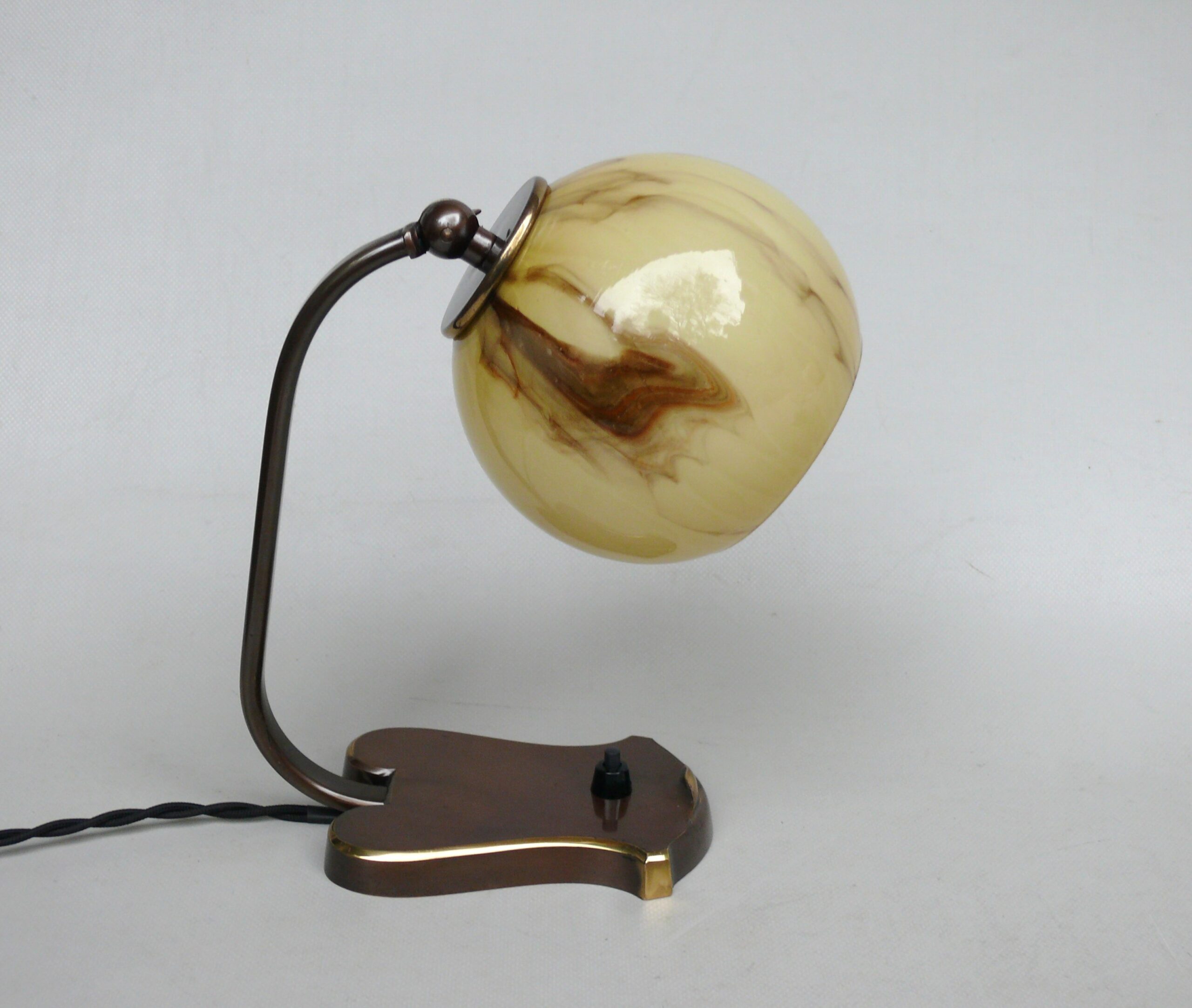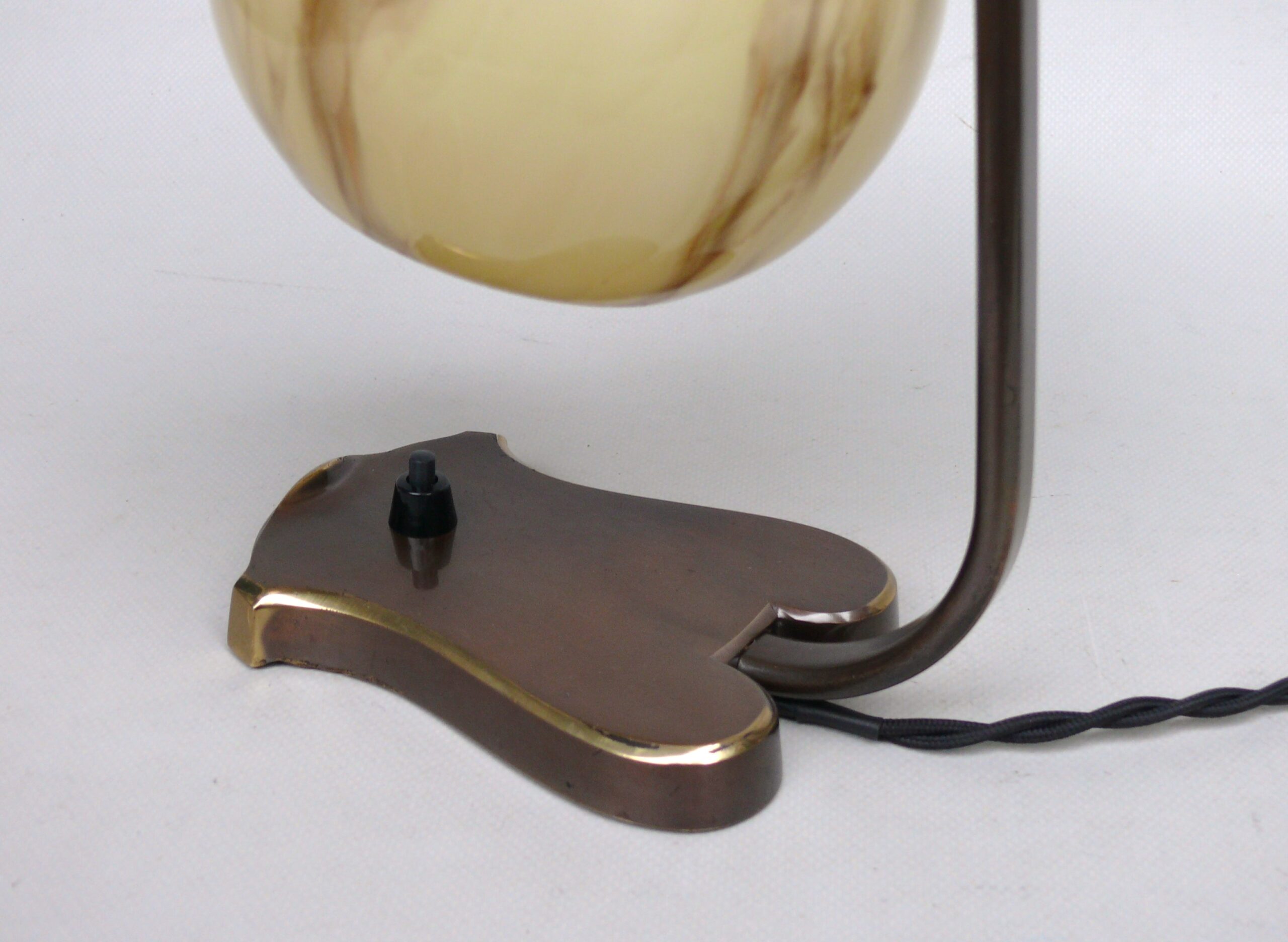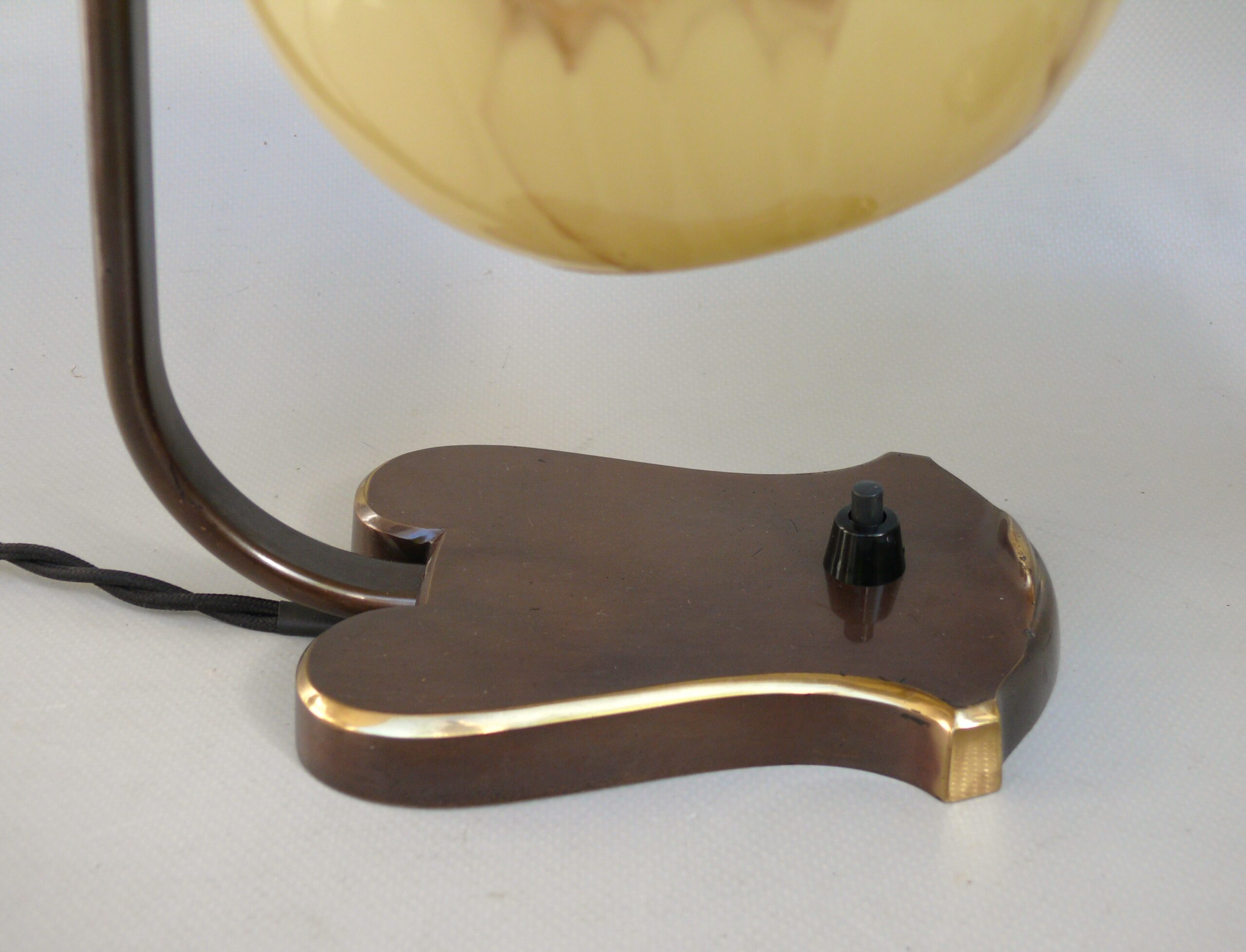 NP142 – 1 Paar Nachttischleuchten, Art Deco, Deutschland, Messing patiniert, Überfangglas beige