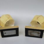 Beide Leuchten tragen ein original Hersteller-Etikett, eines noch lesbar (Aufkleber).