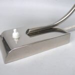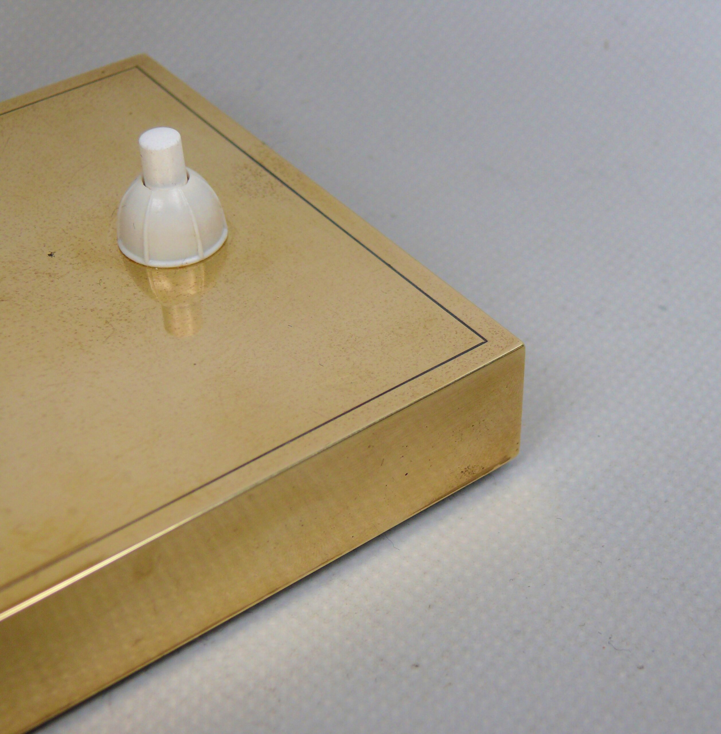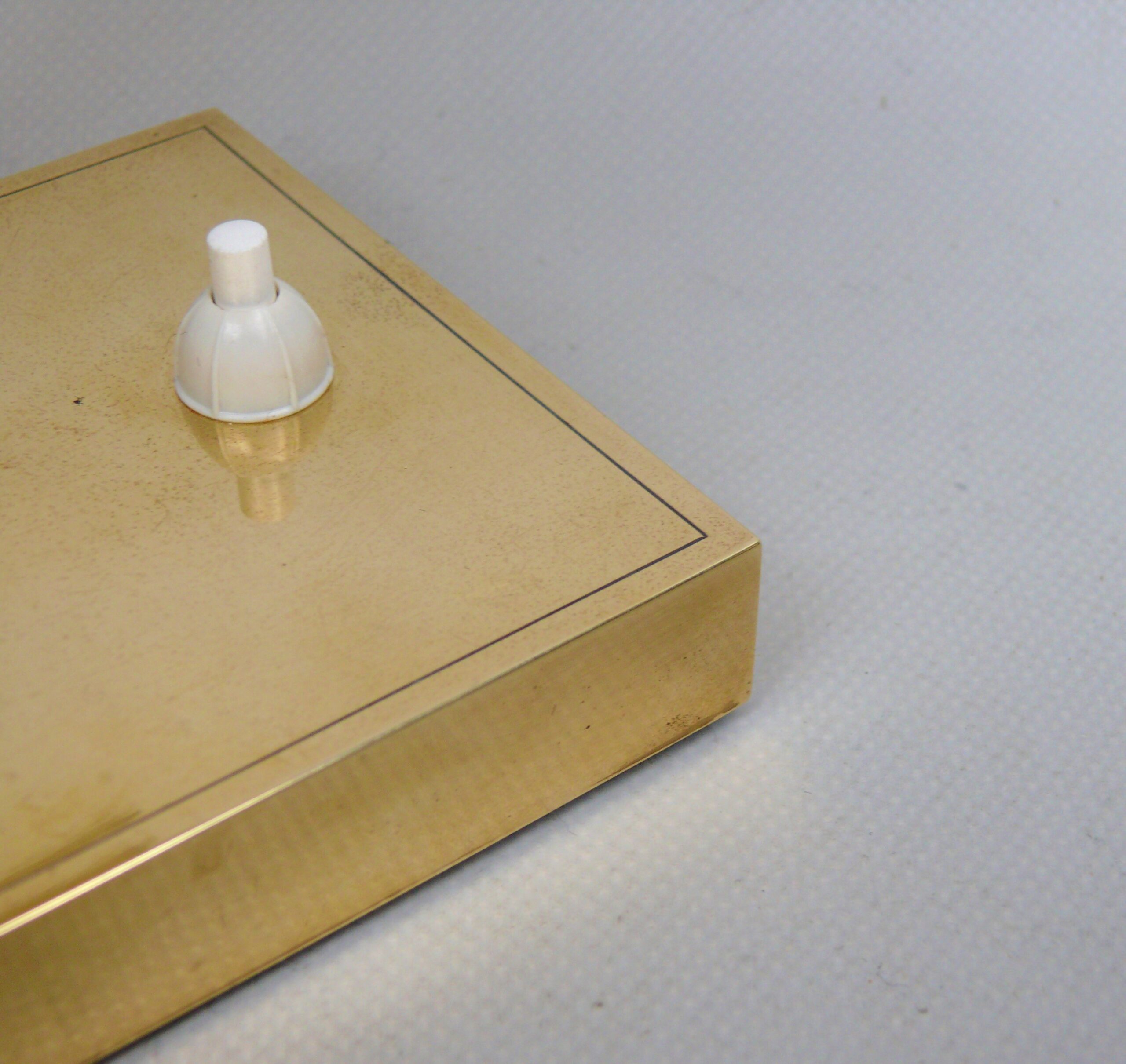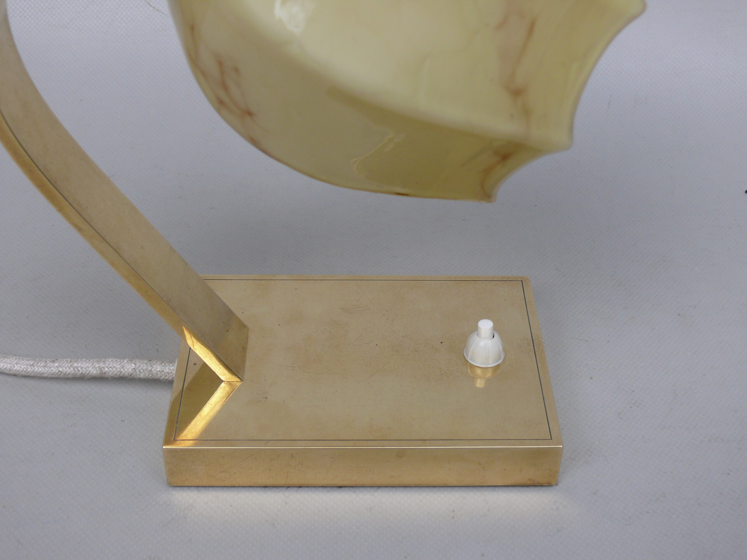 Die Leuchten sind hochwertig aus Messing hergestellt. Der Lampenarm ist aus rechteckigem Messingrohr, der Sockel hat ebenfalls eine rechteckige Grundform.