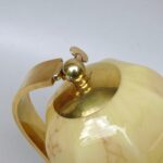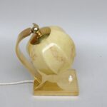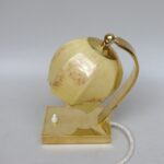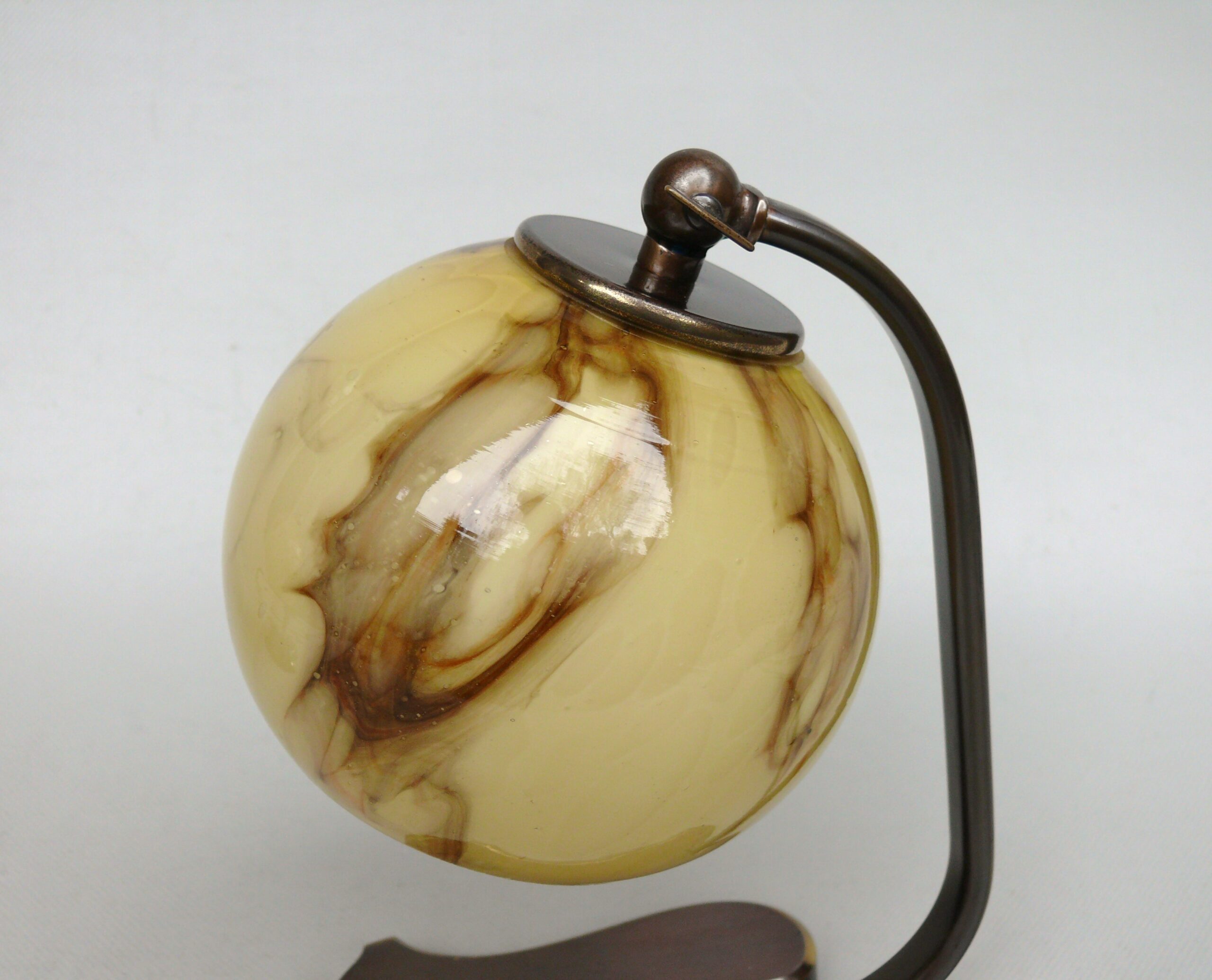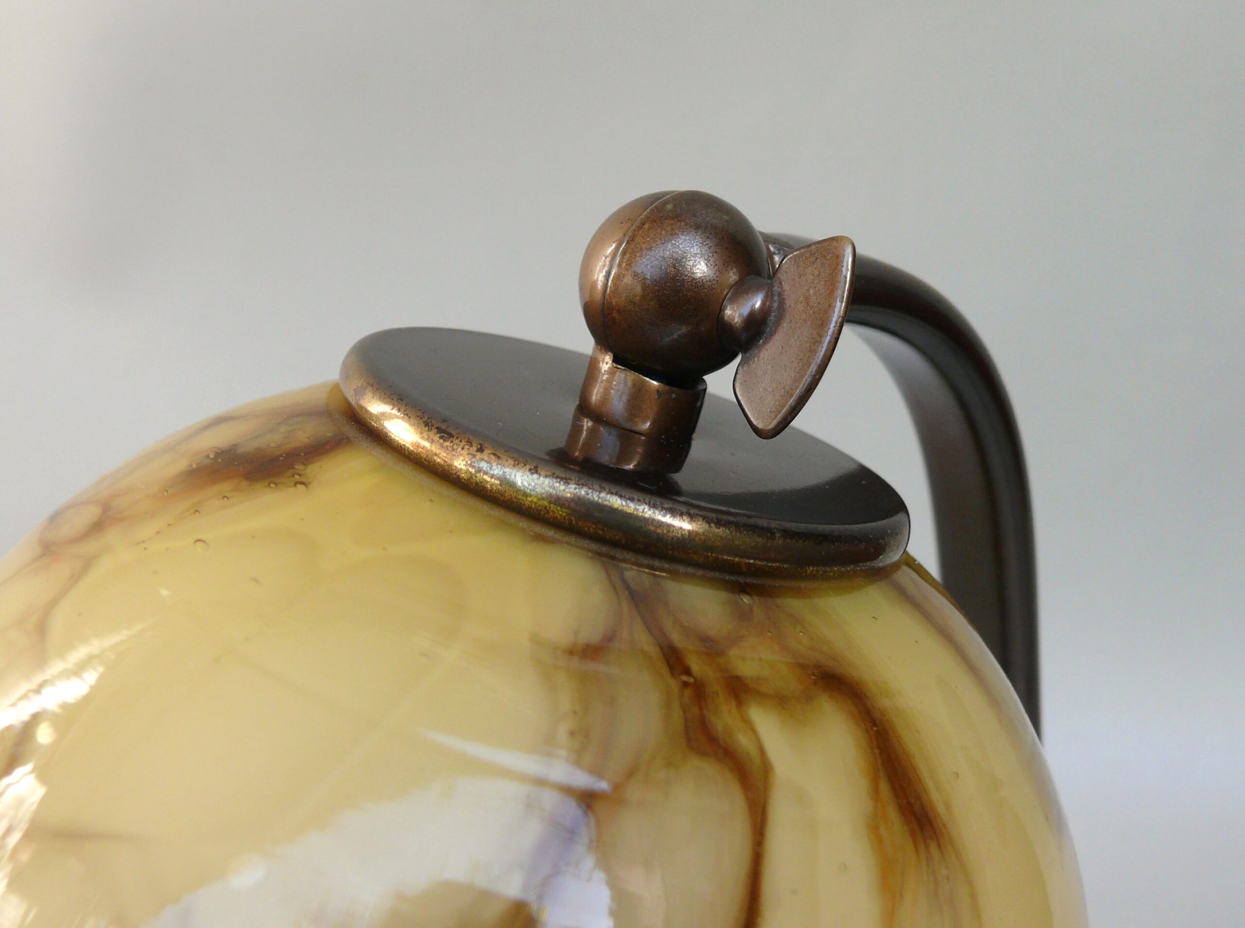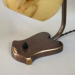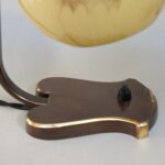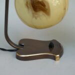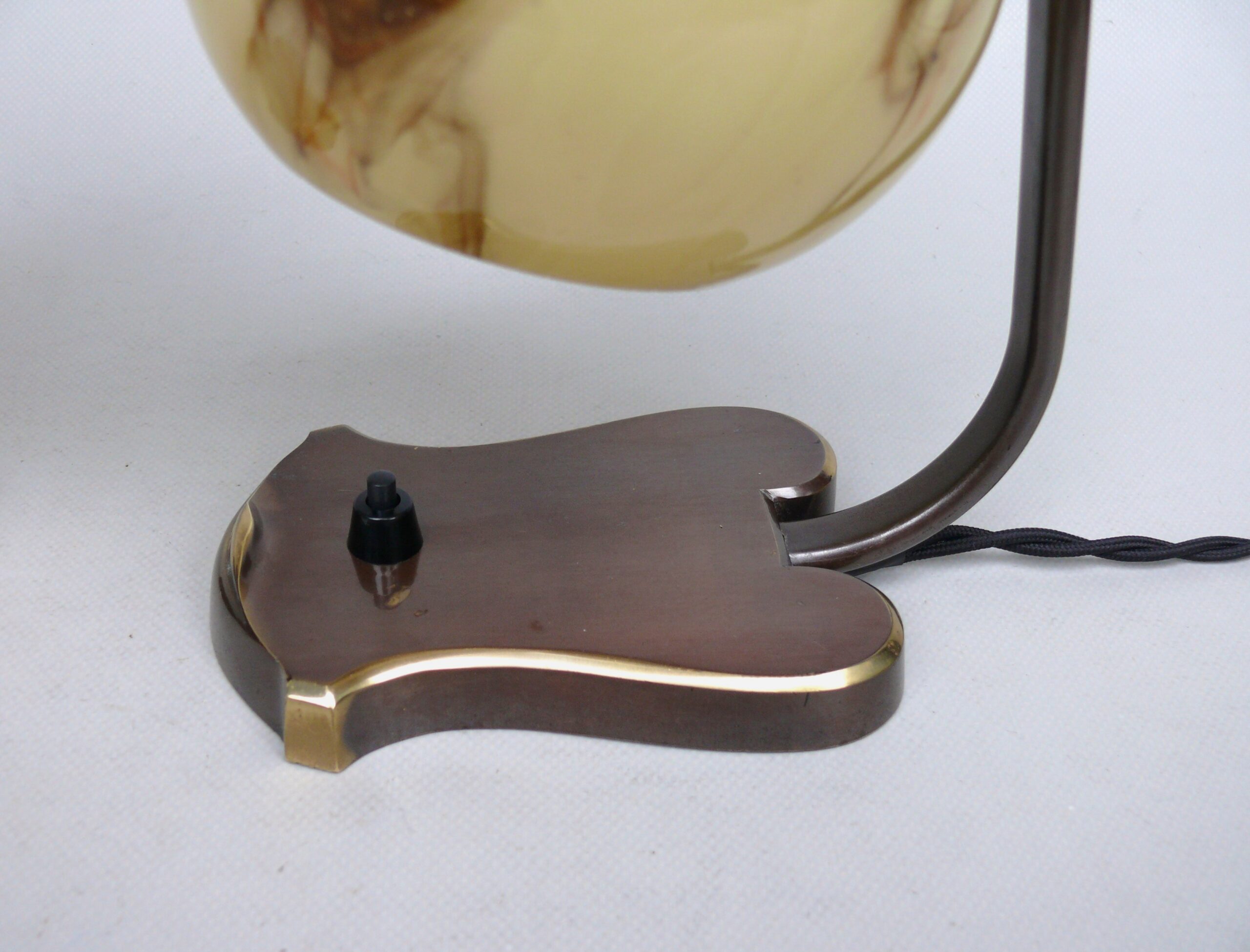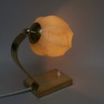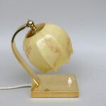 NP145 – 1 Paar Nachttischleuchten, Bauhaus-Ära, Messing, Lampenschirm „Blüte“ Überfangglas beige-hellbraun geflammt