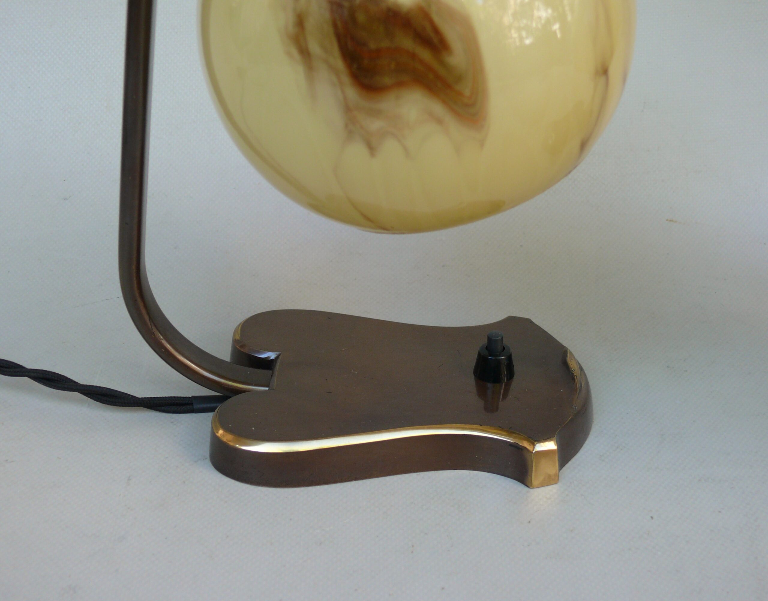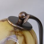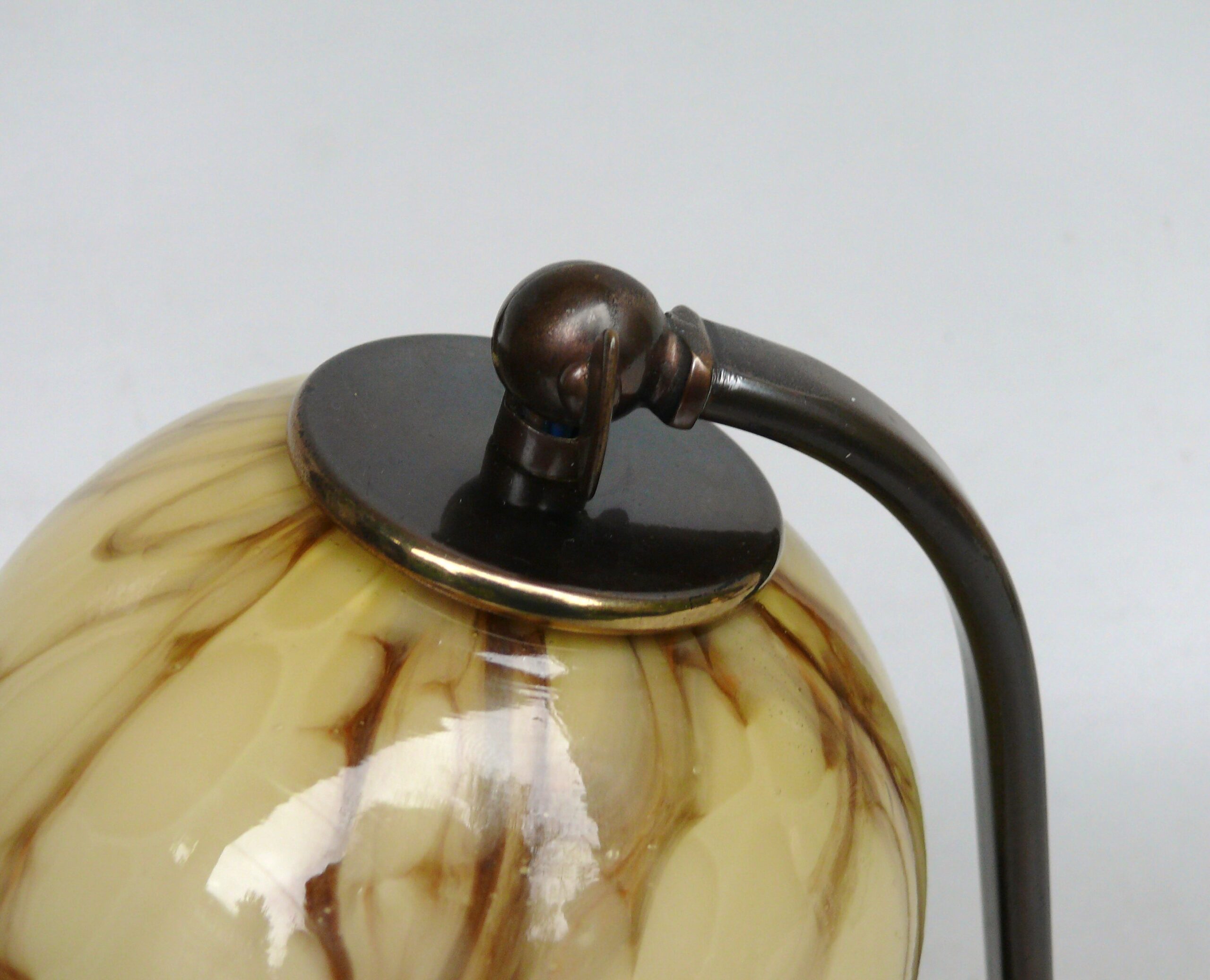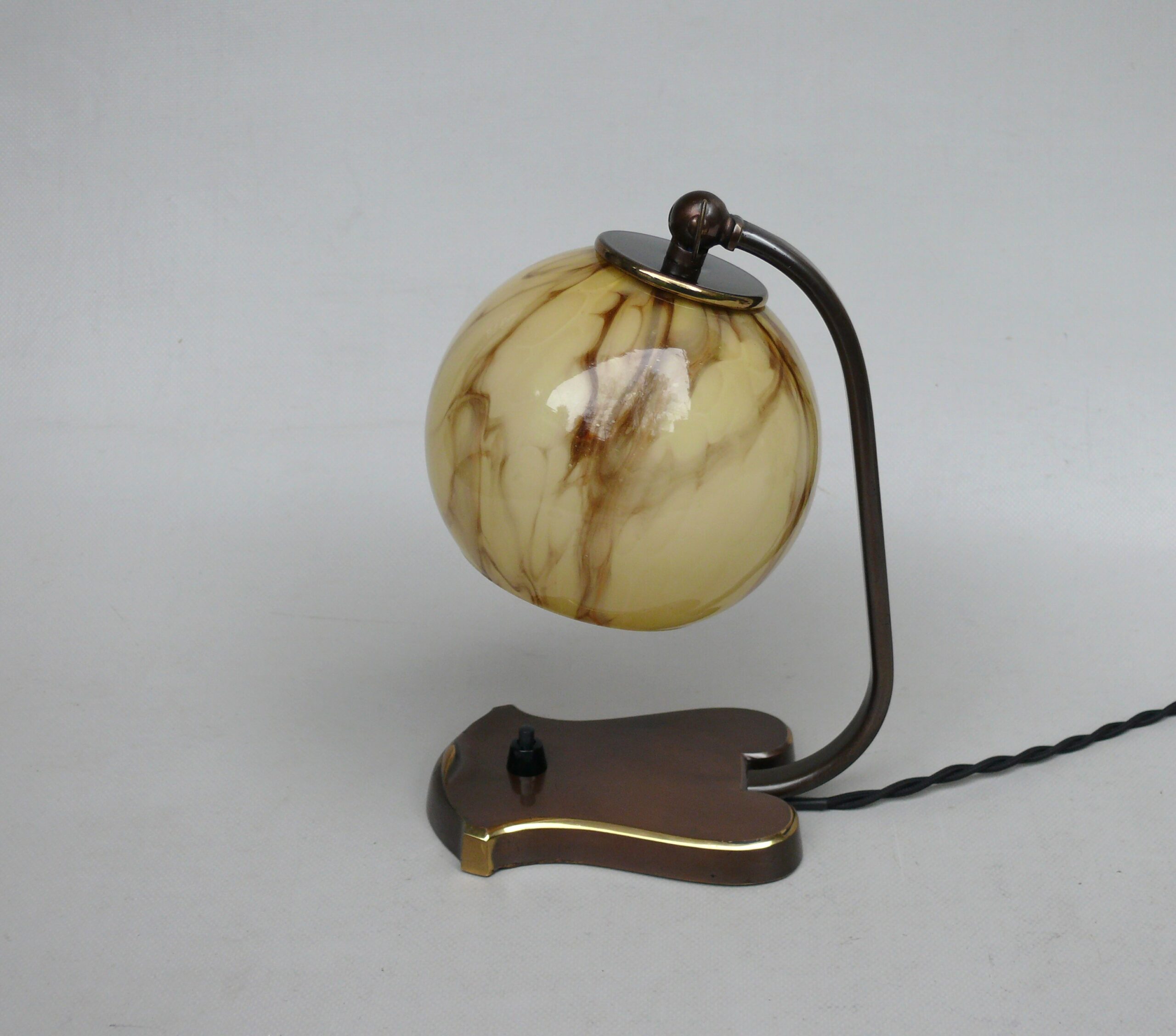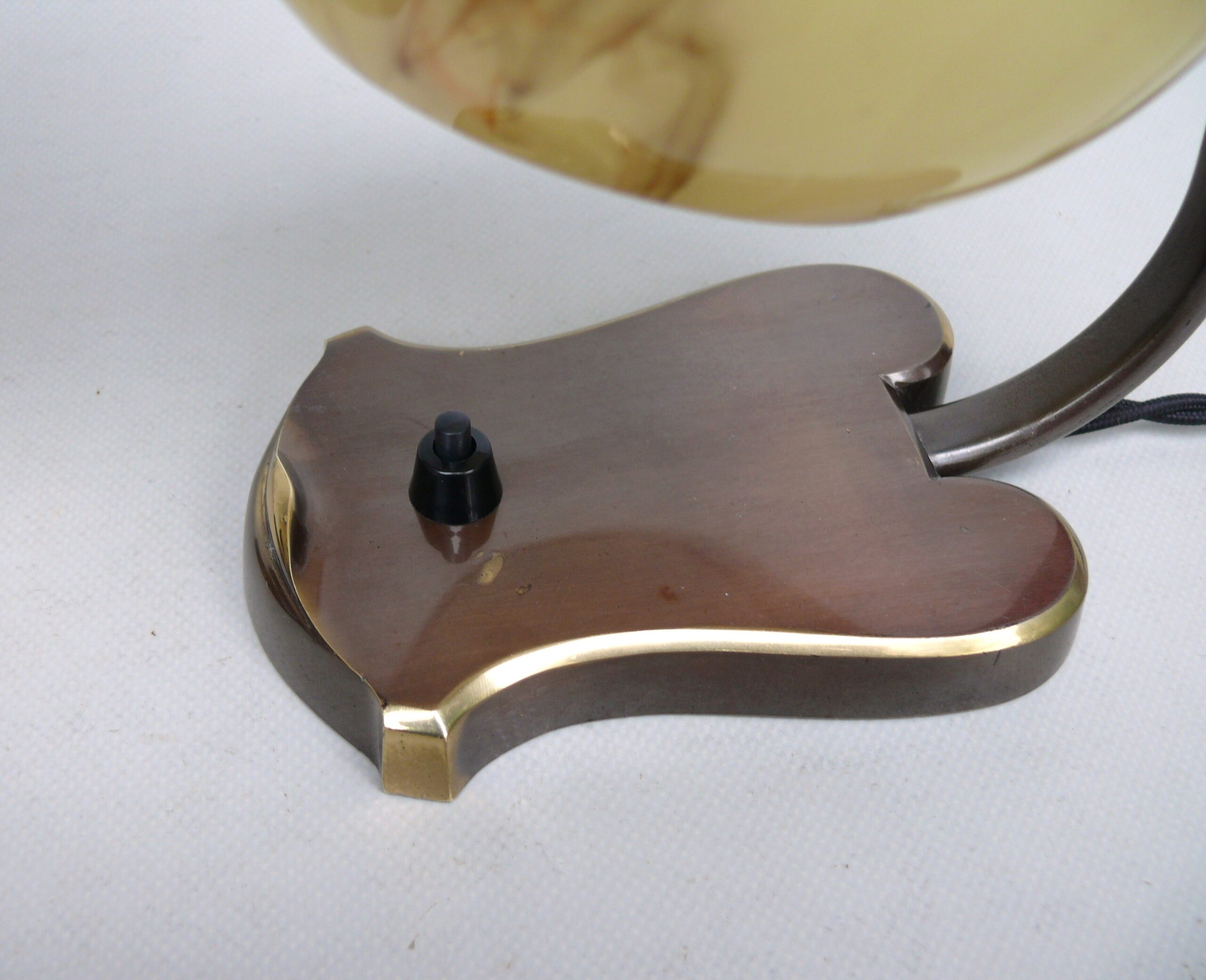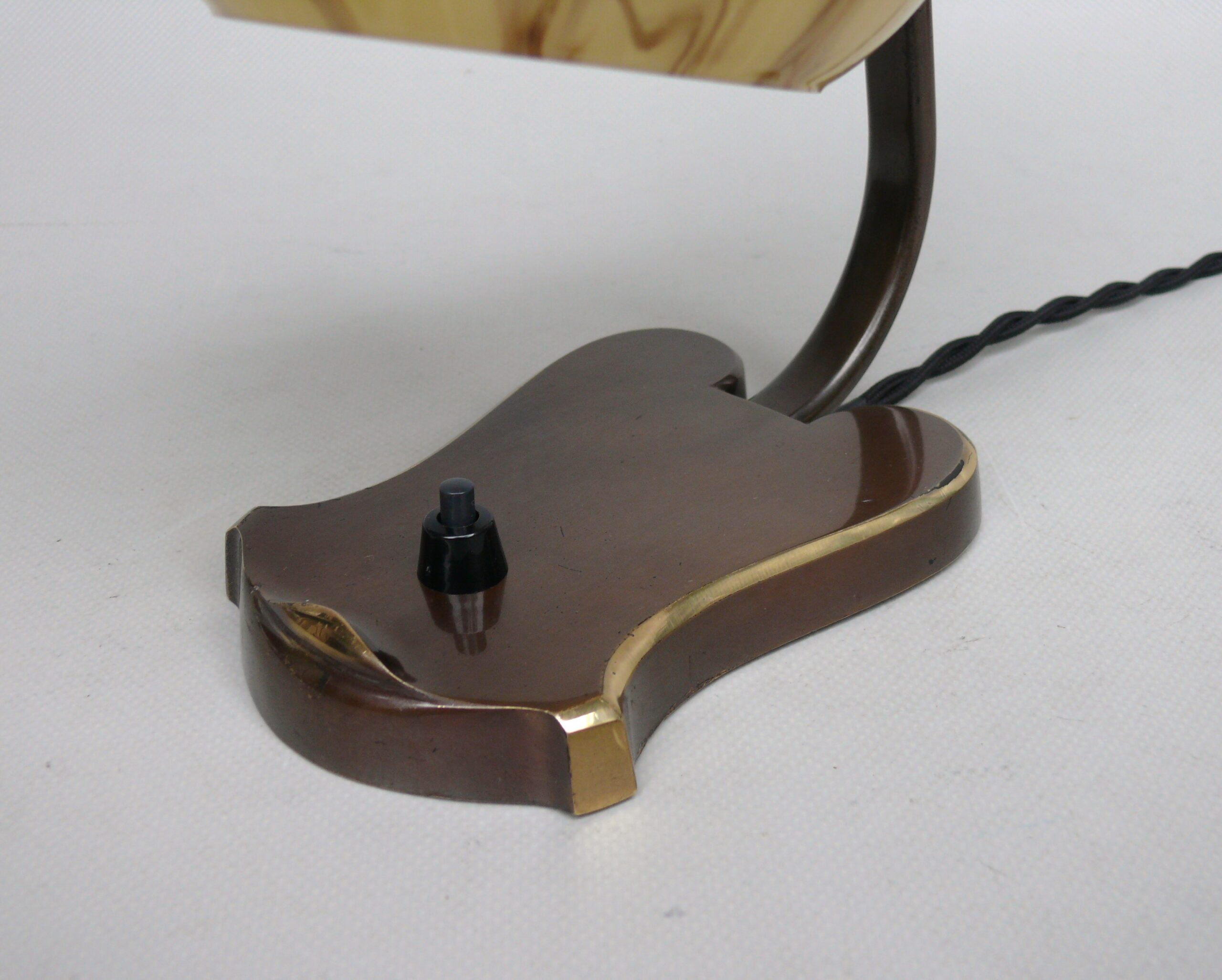 NP7 – 1 Paar Nachttischleuchten, Art Deco, Messing, Lampenschirme Überfangglas beige/braun geflammt