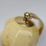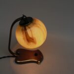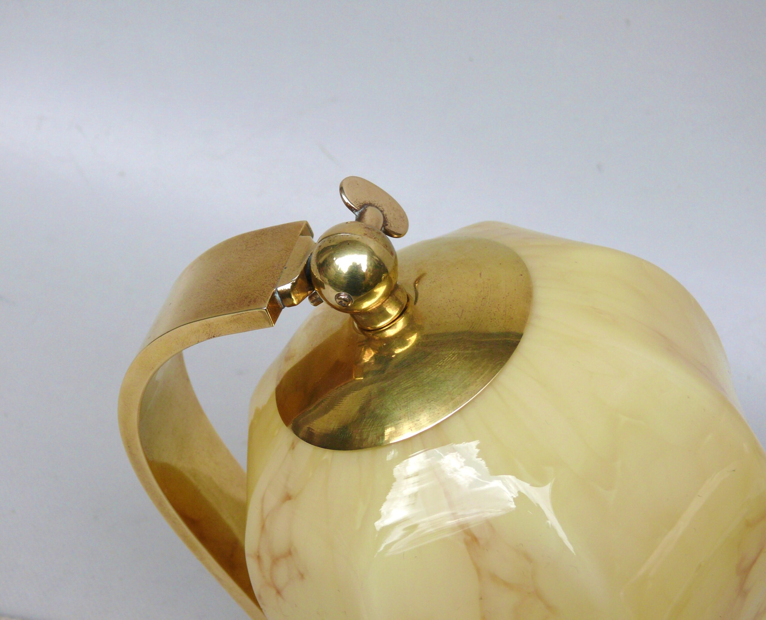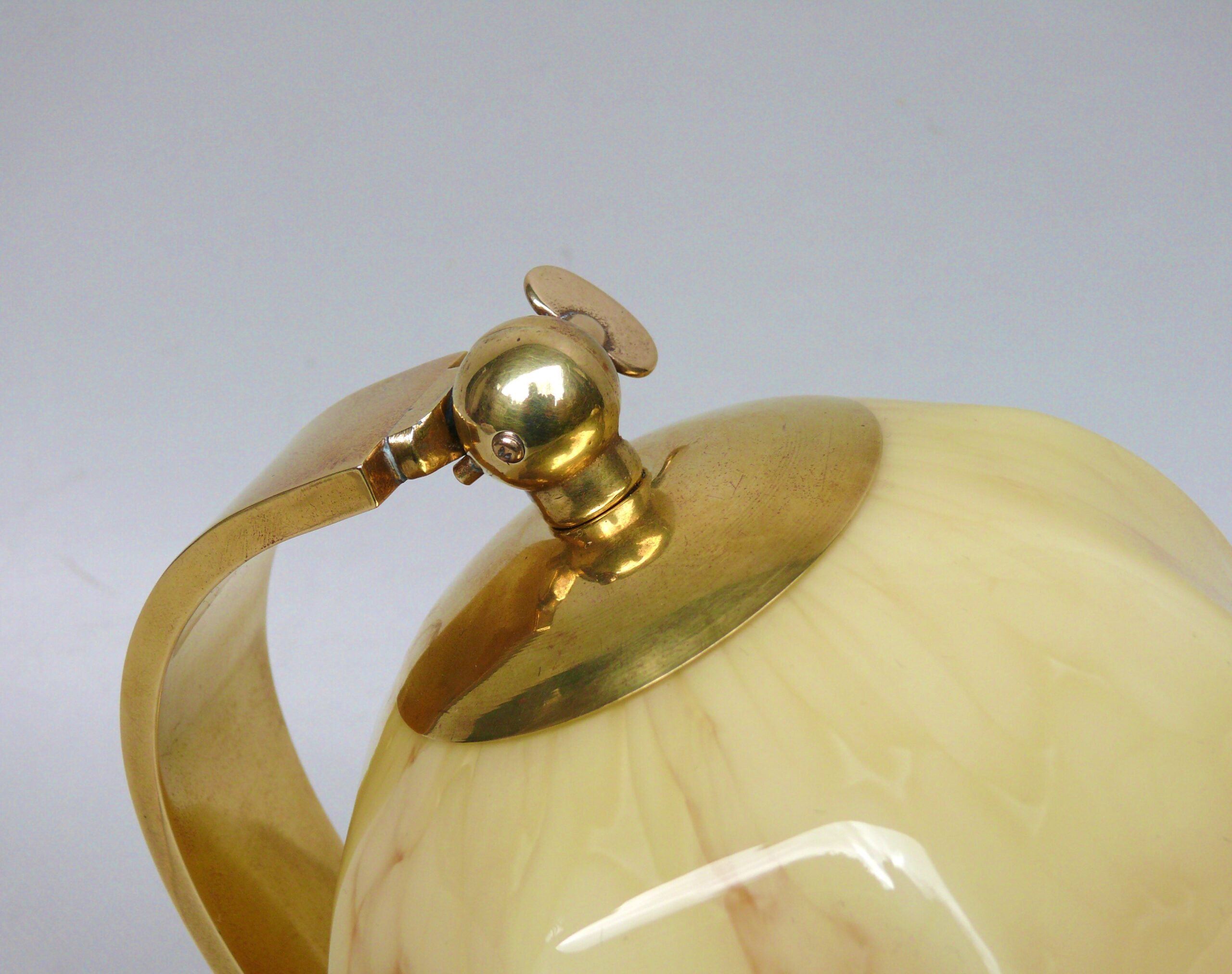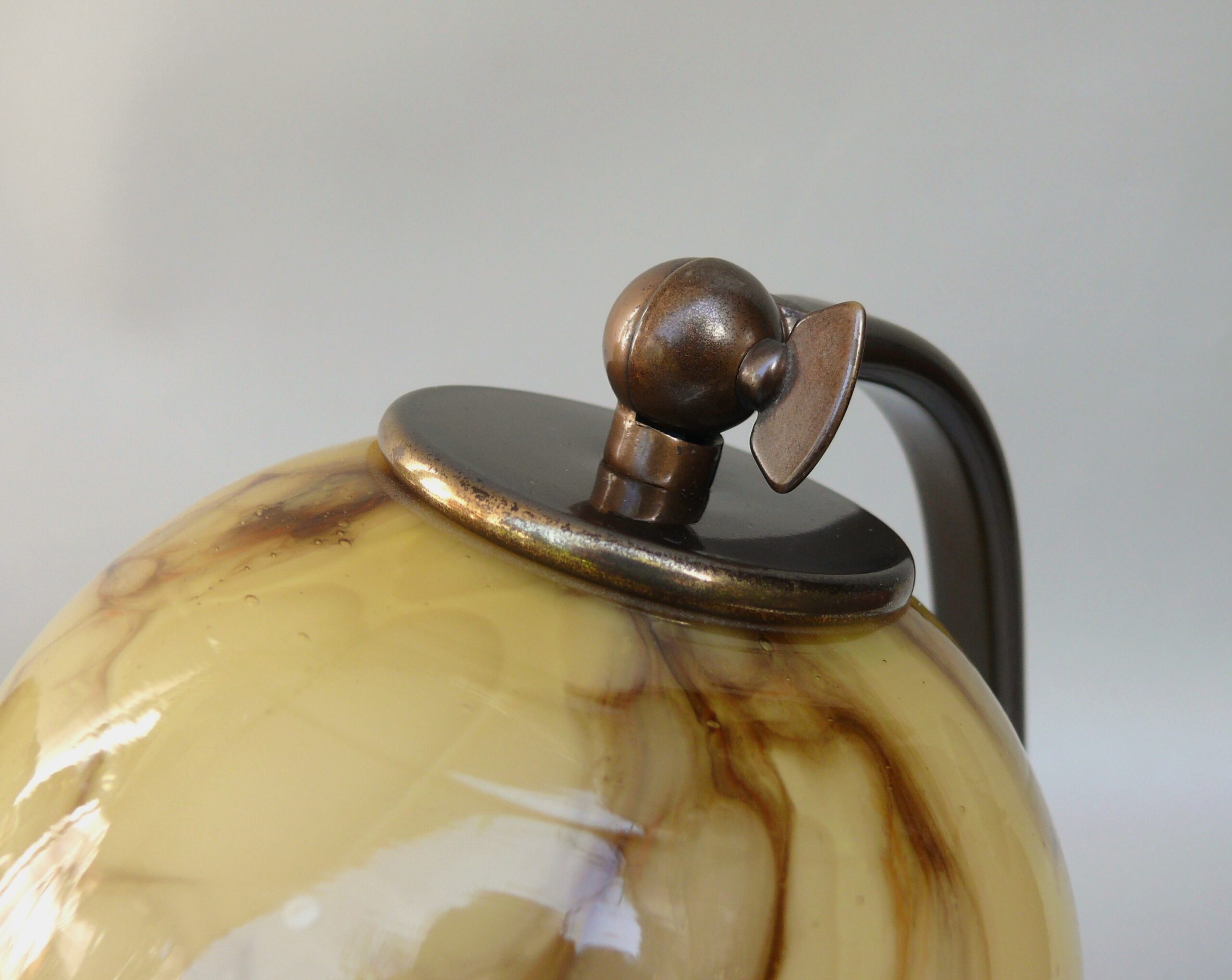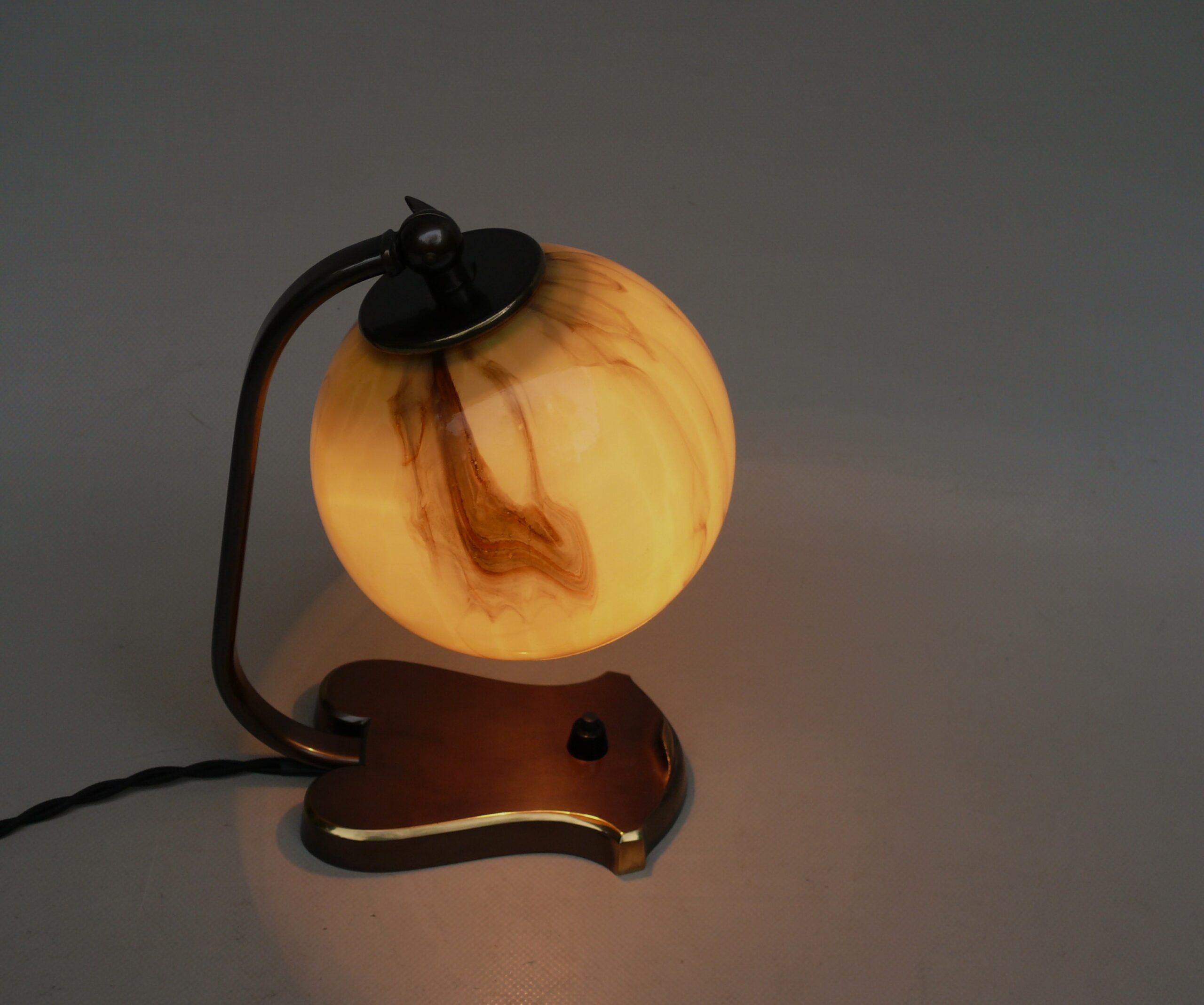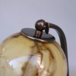 NP7 – 1 Paar Nachttischleuchten, Art Deco, Messing, Lampenschirme Überfangglas beige/braun geflammt