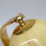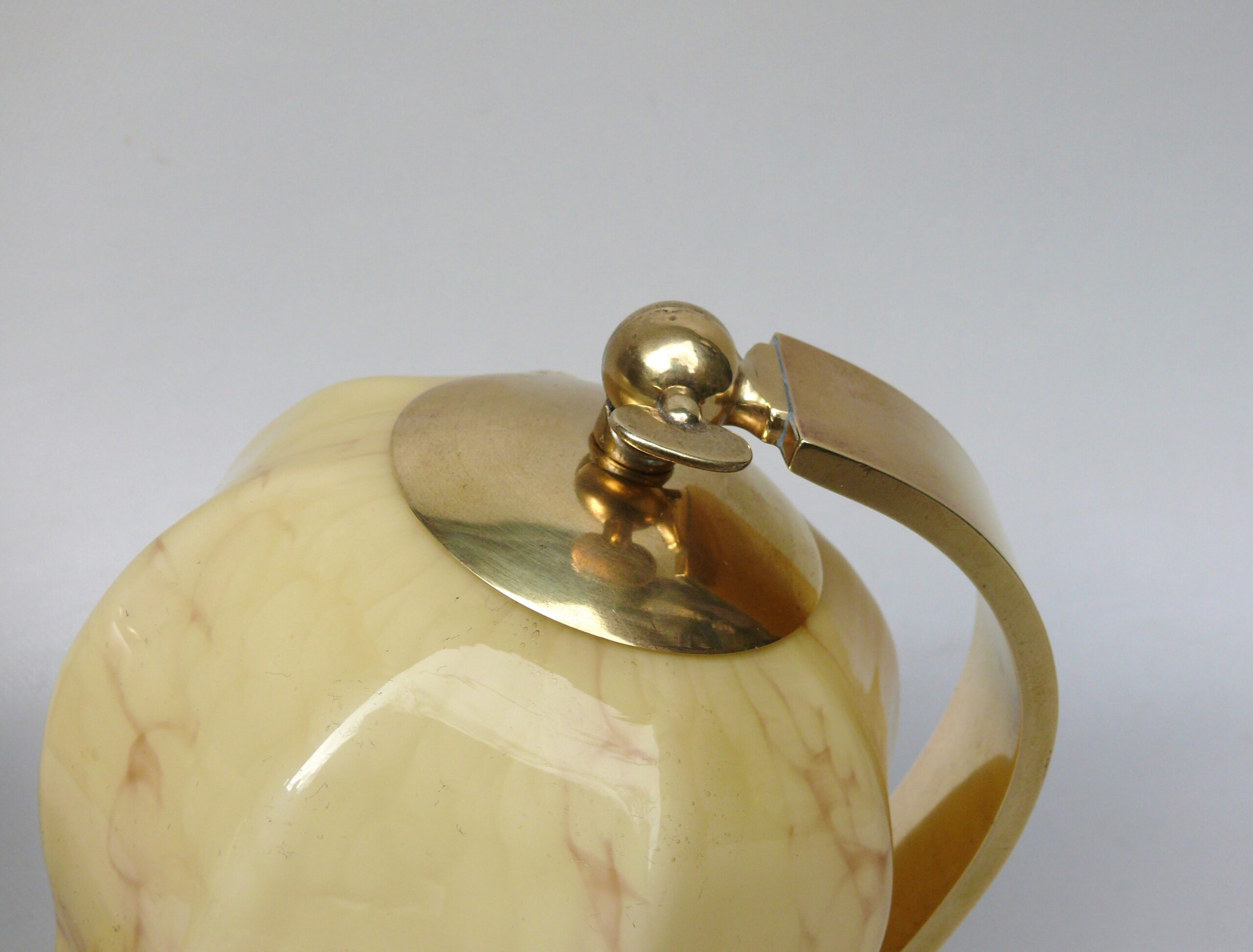 Die beige Originallackierung zeigt leichte Spuren der Zeit. Das Messing hat eine authentische Patina.