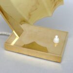 Die Leuchte ist hochwertig und detailverliebt aus poliertem Messing gearbeitet. Der Lampenarm ist aus Rechteckrohr, die Sockelplatte aus einer rechteckigen Messingplatte, welche auf 4 Scheibenfüßen ruht.