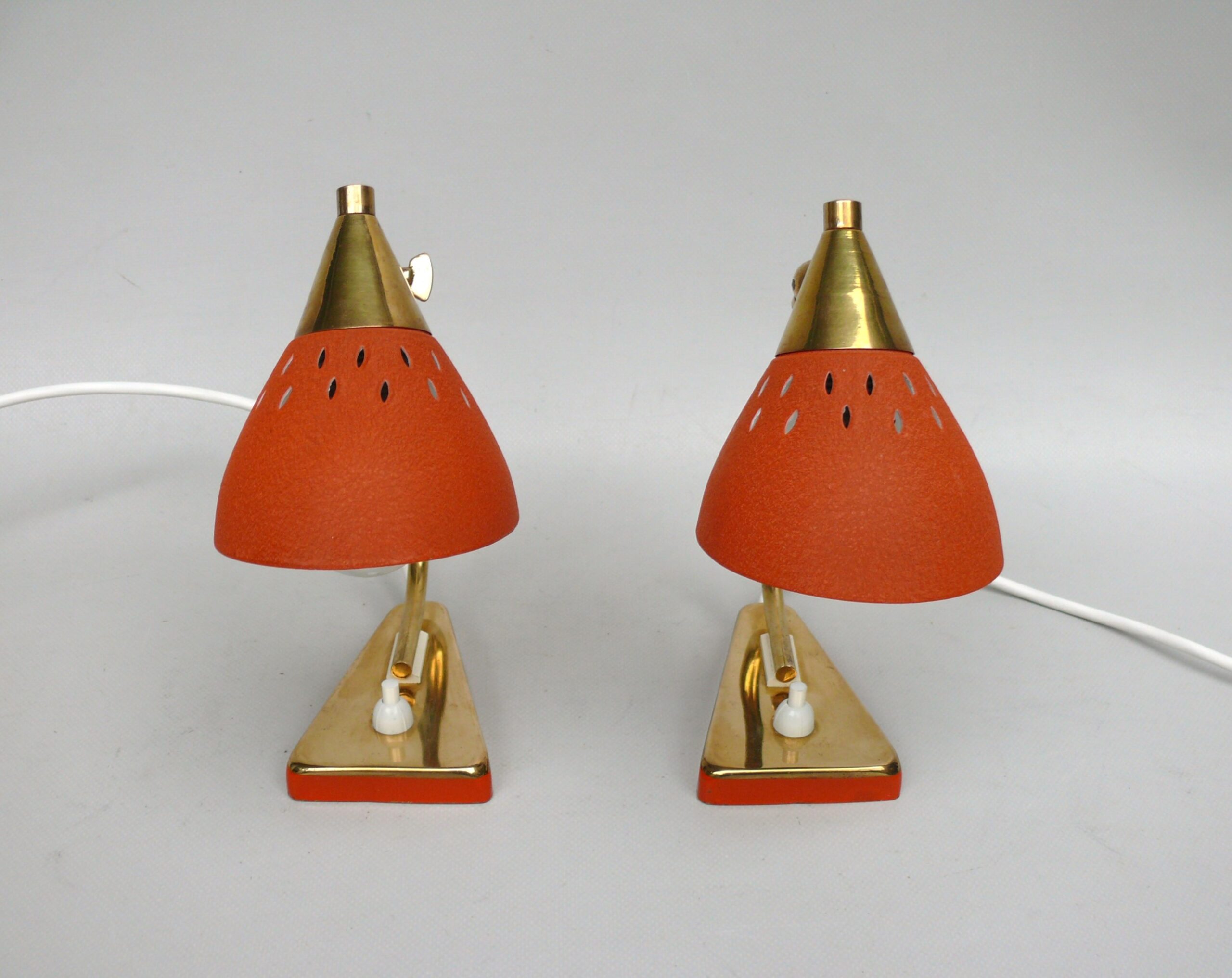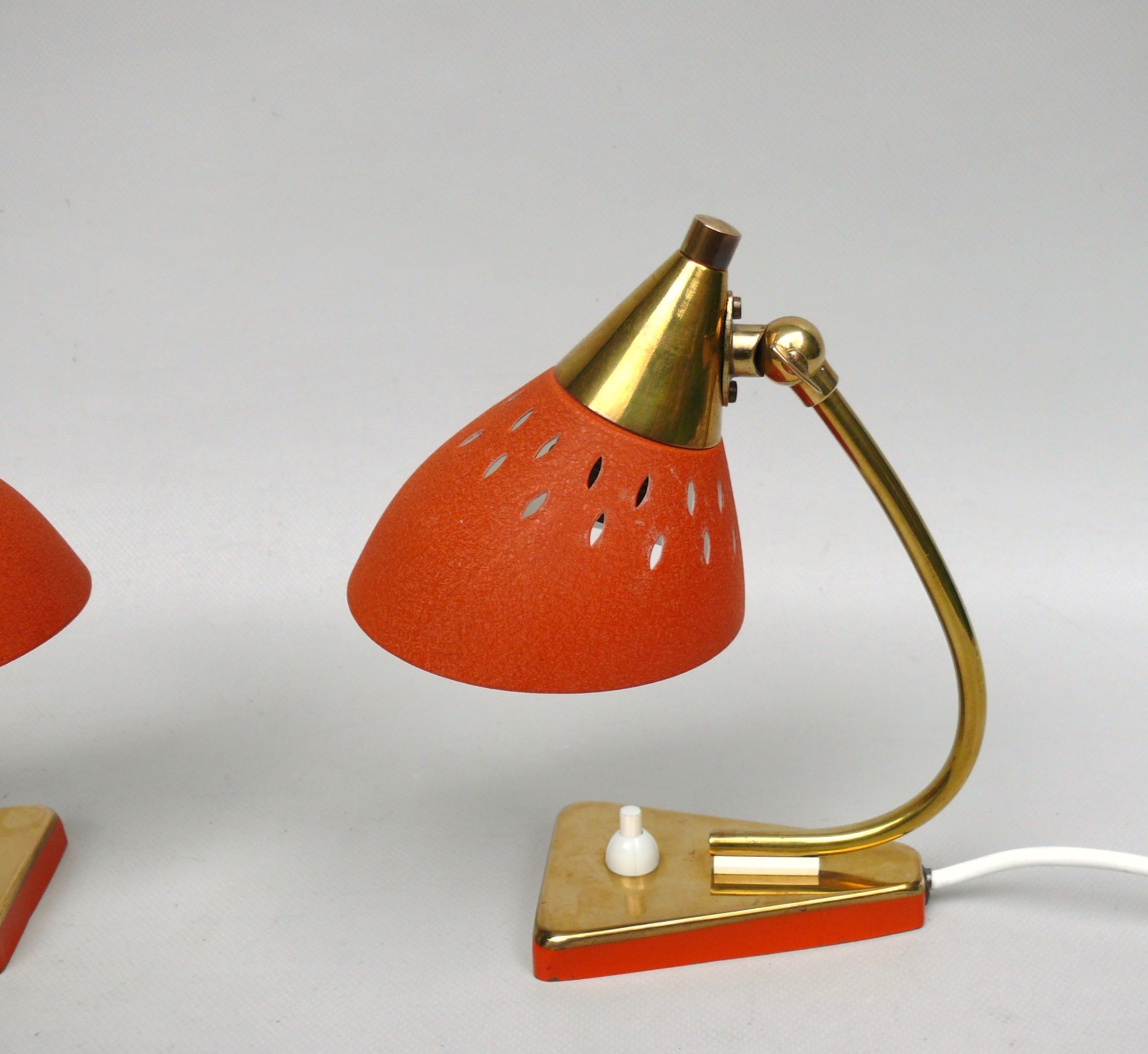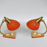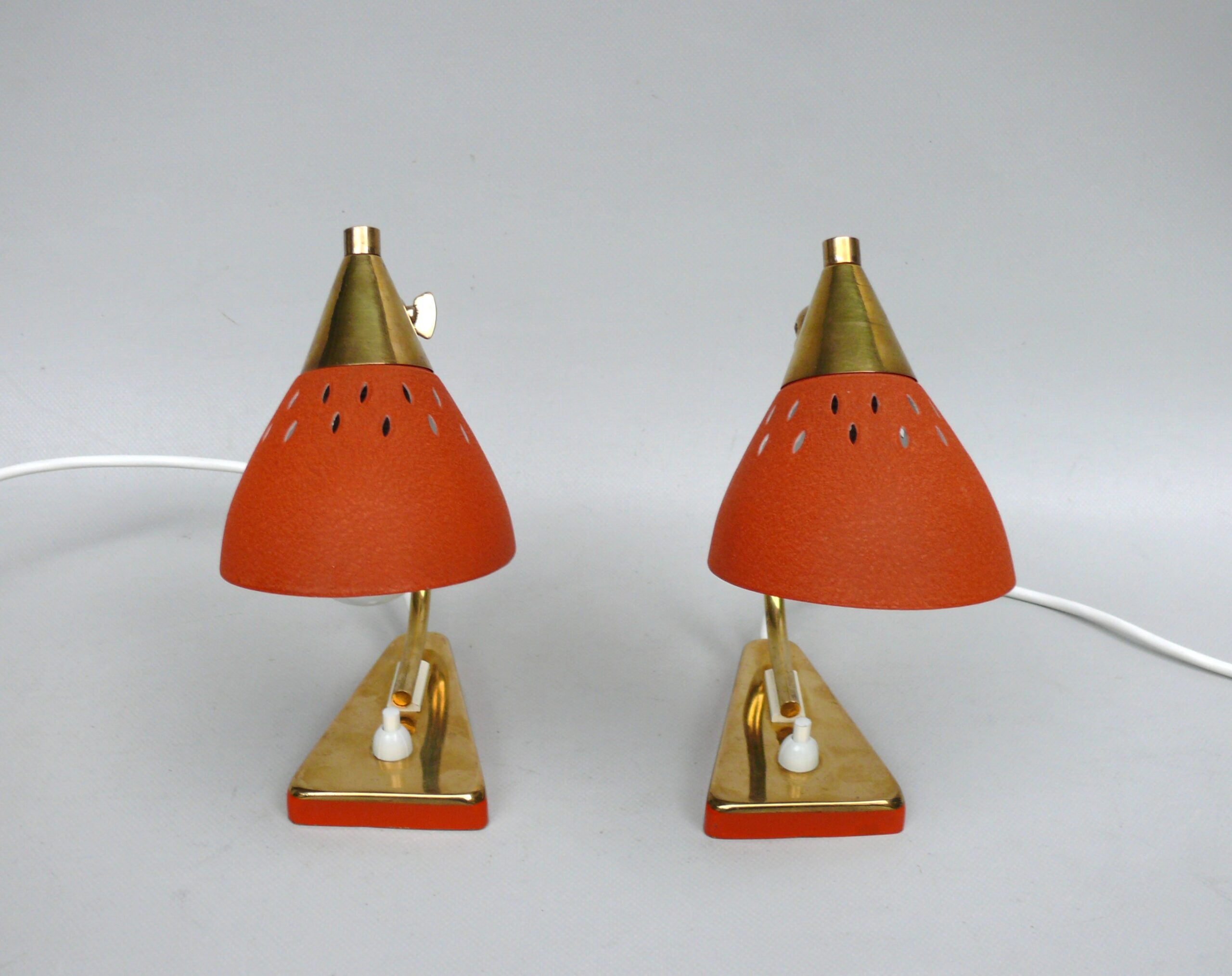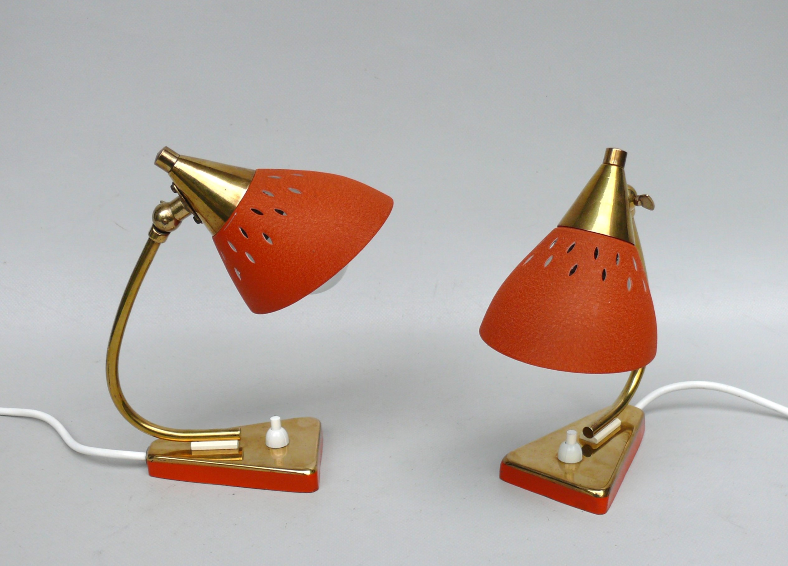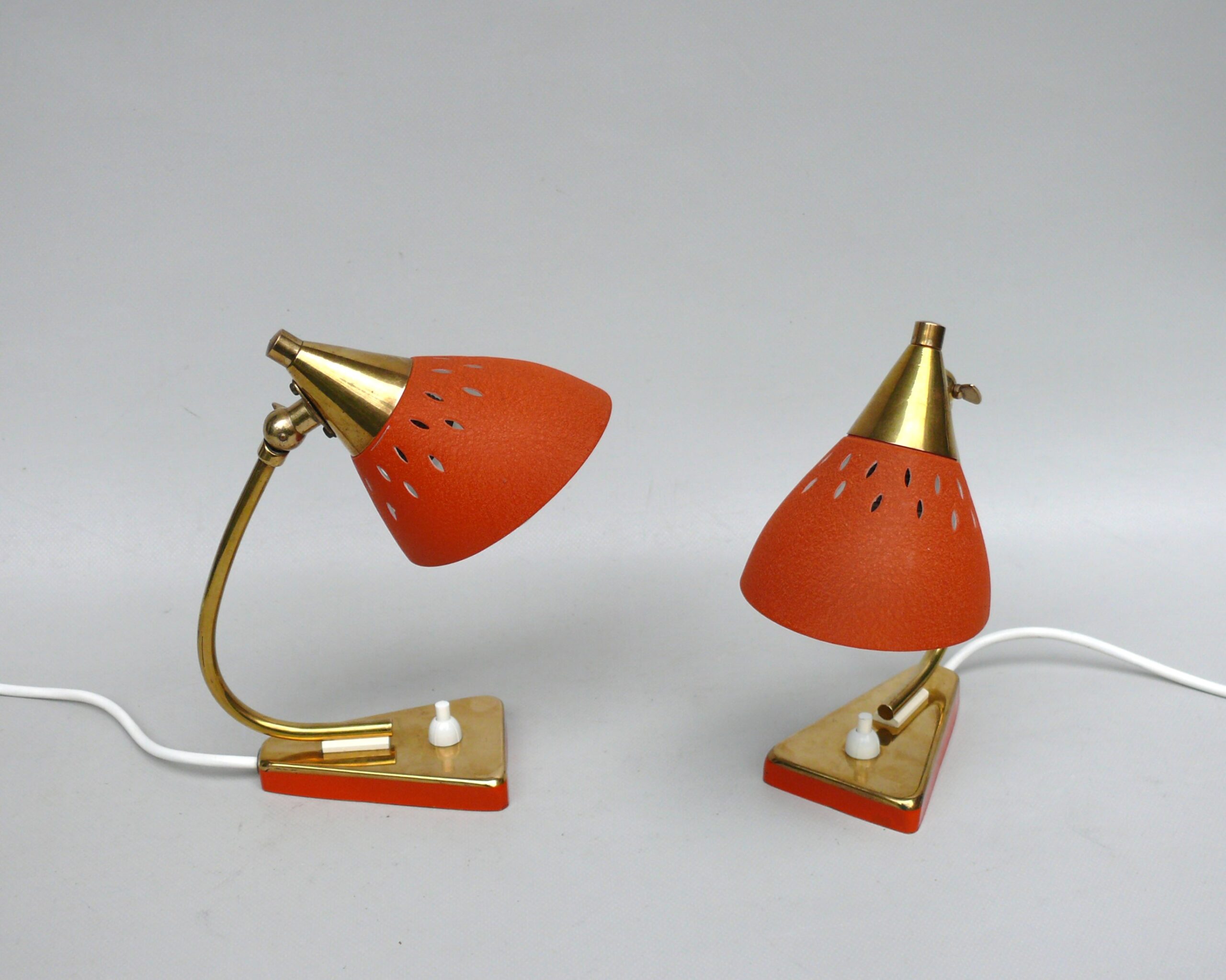NP19 – 1 Paar Nachttischleuchten, 50er Jahre, Deutschland, orange, weiß, Messing, zugeschrieben Gebr. Cosack, Neheim-Hüsten