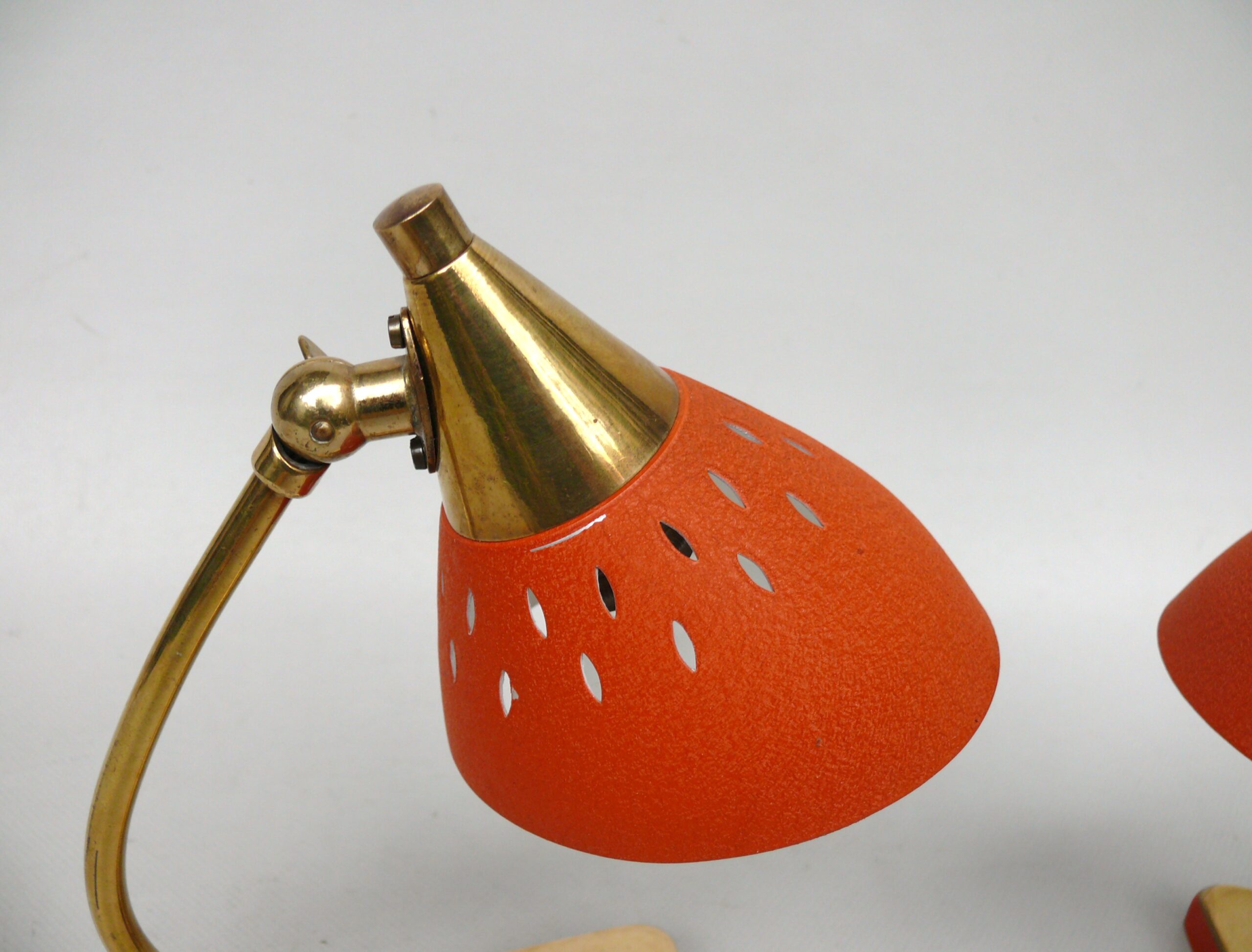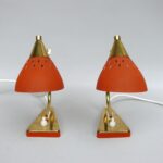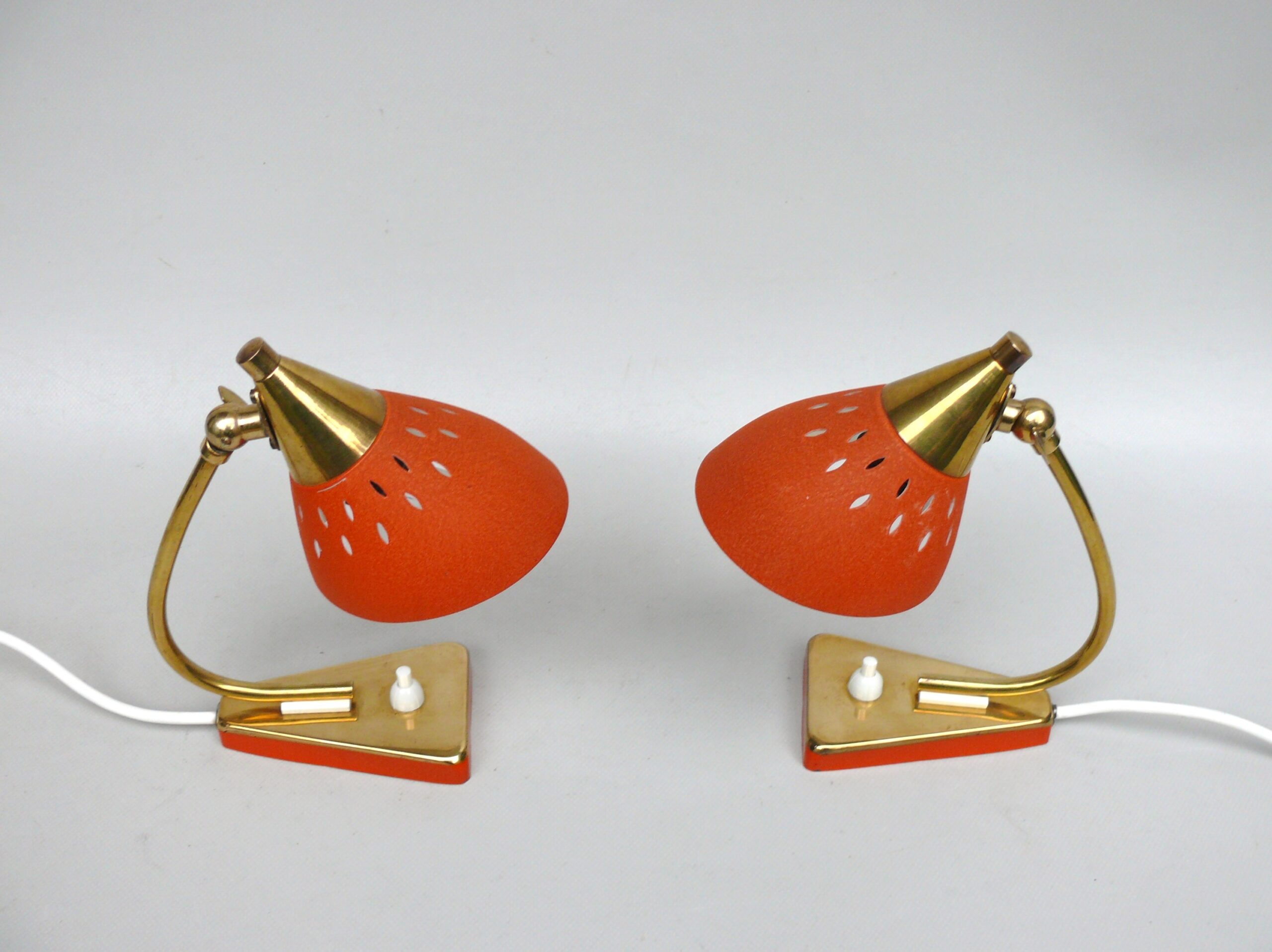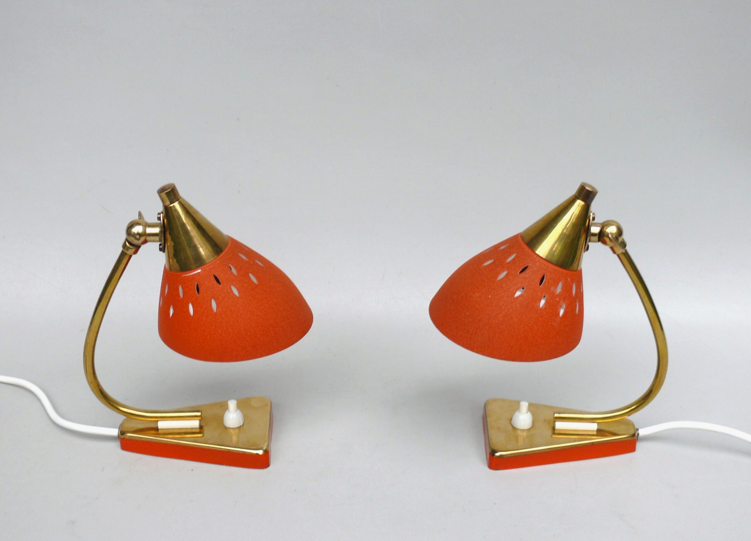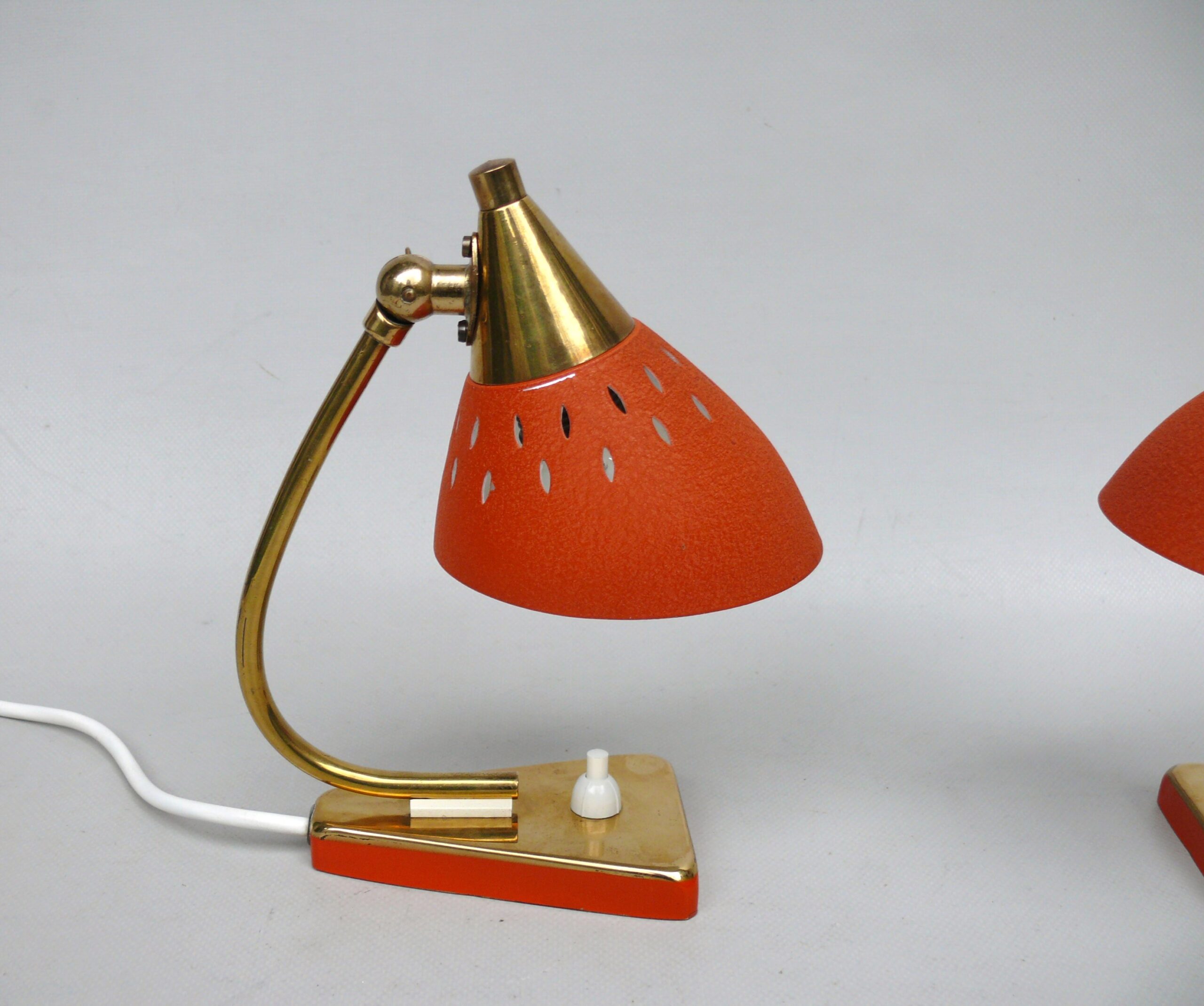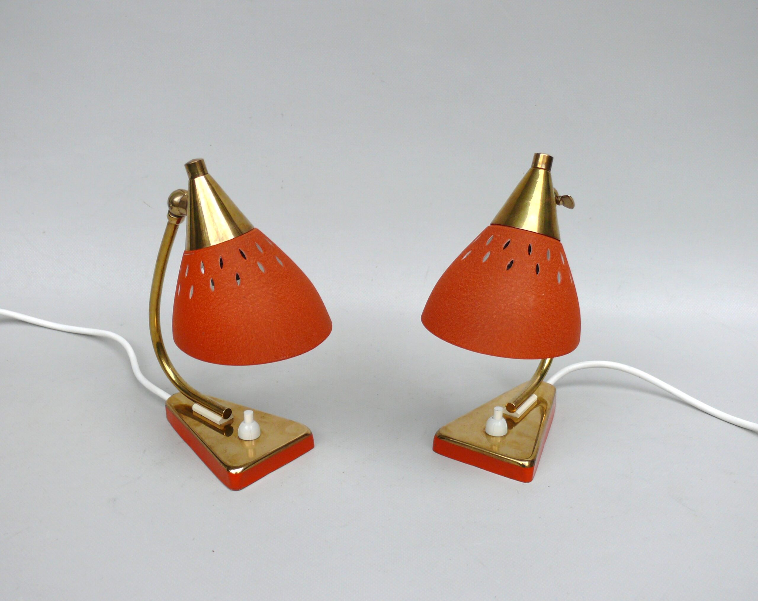 NP19 – 1 Paar Nachttischleuchten, 50er Jahre, Deutschland, orange, weiß, Messing, zugeschrieben Gebr. Cosack, Neheim-Hüsten