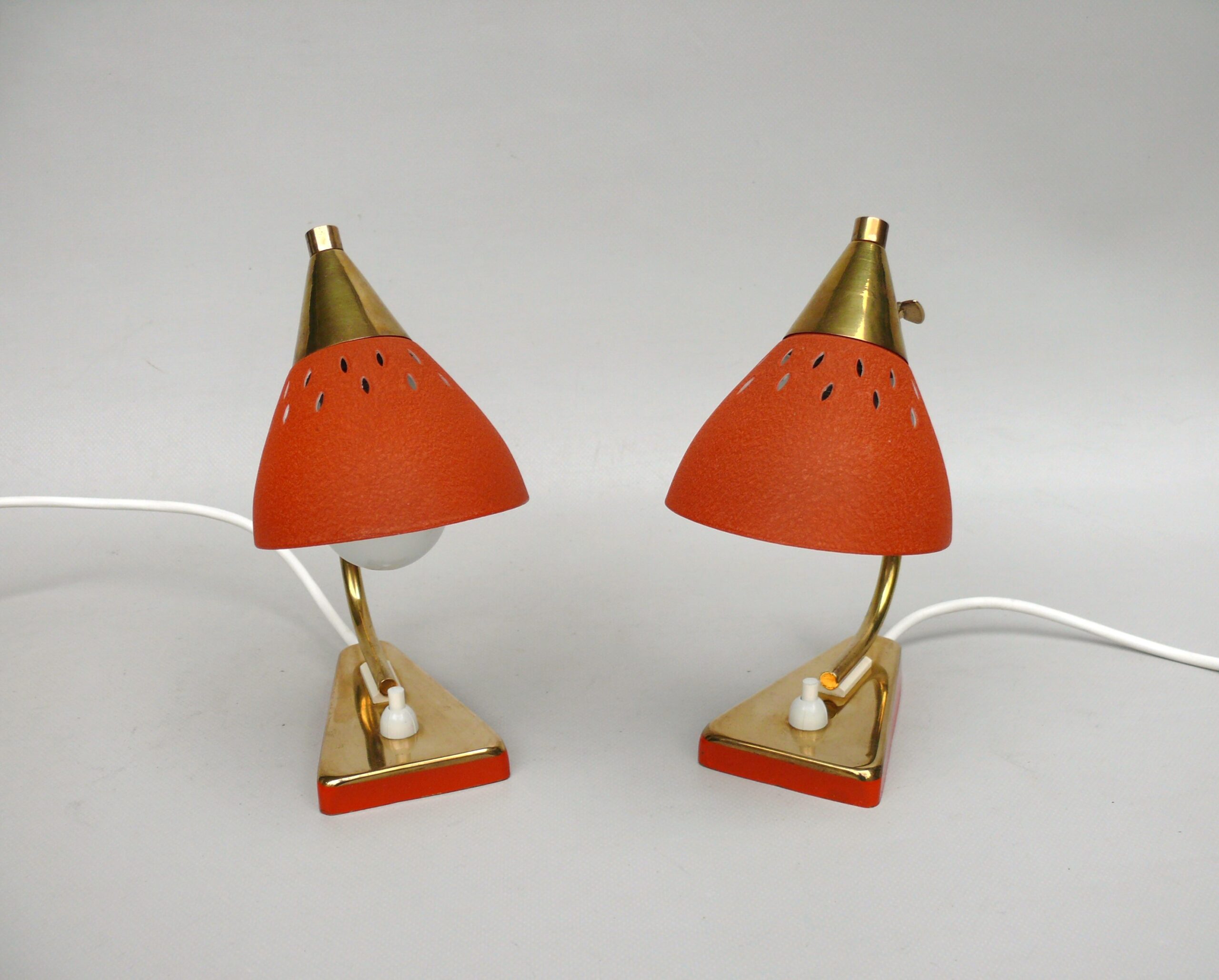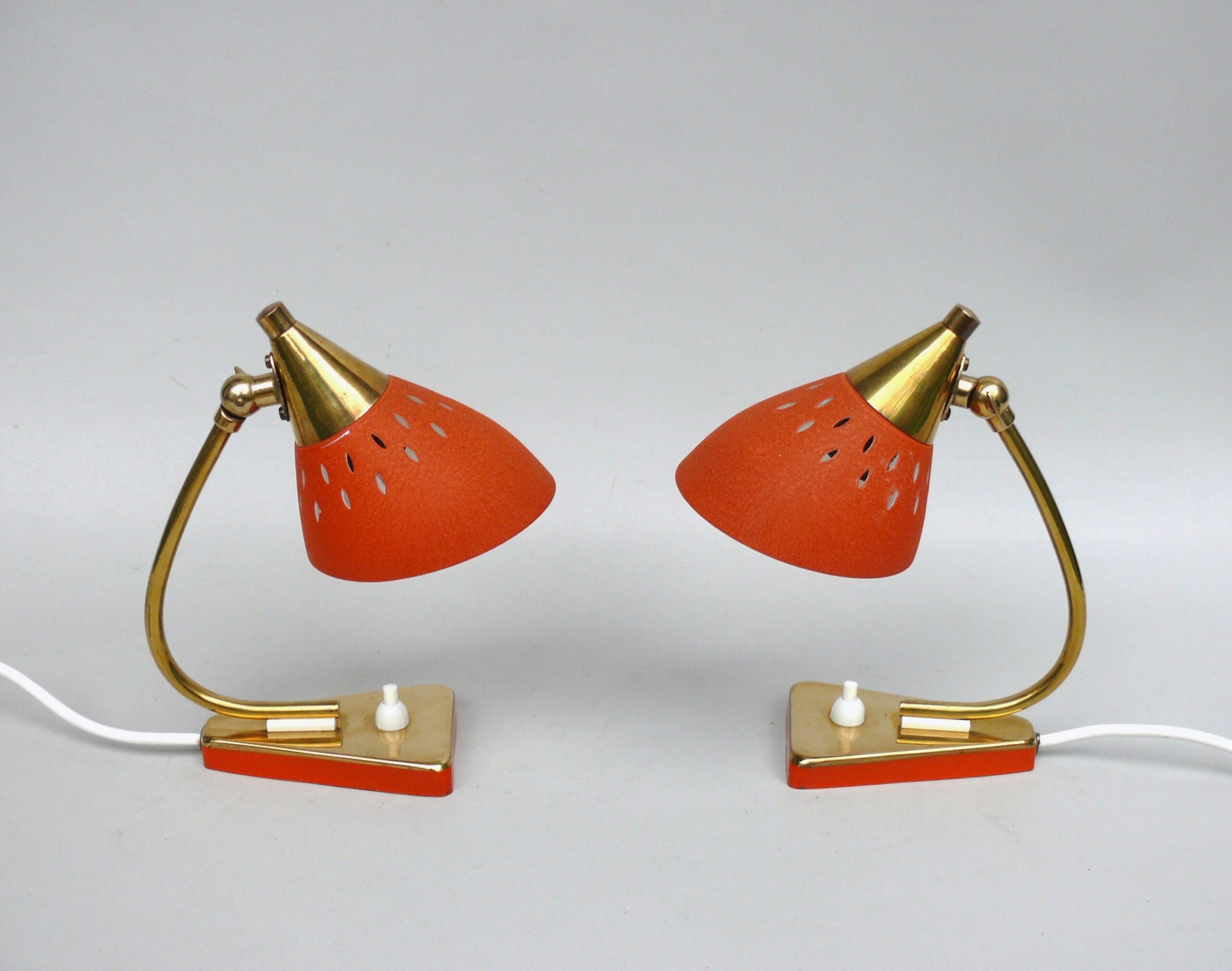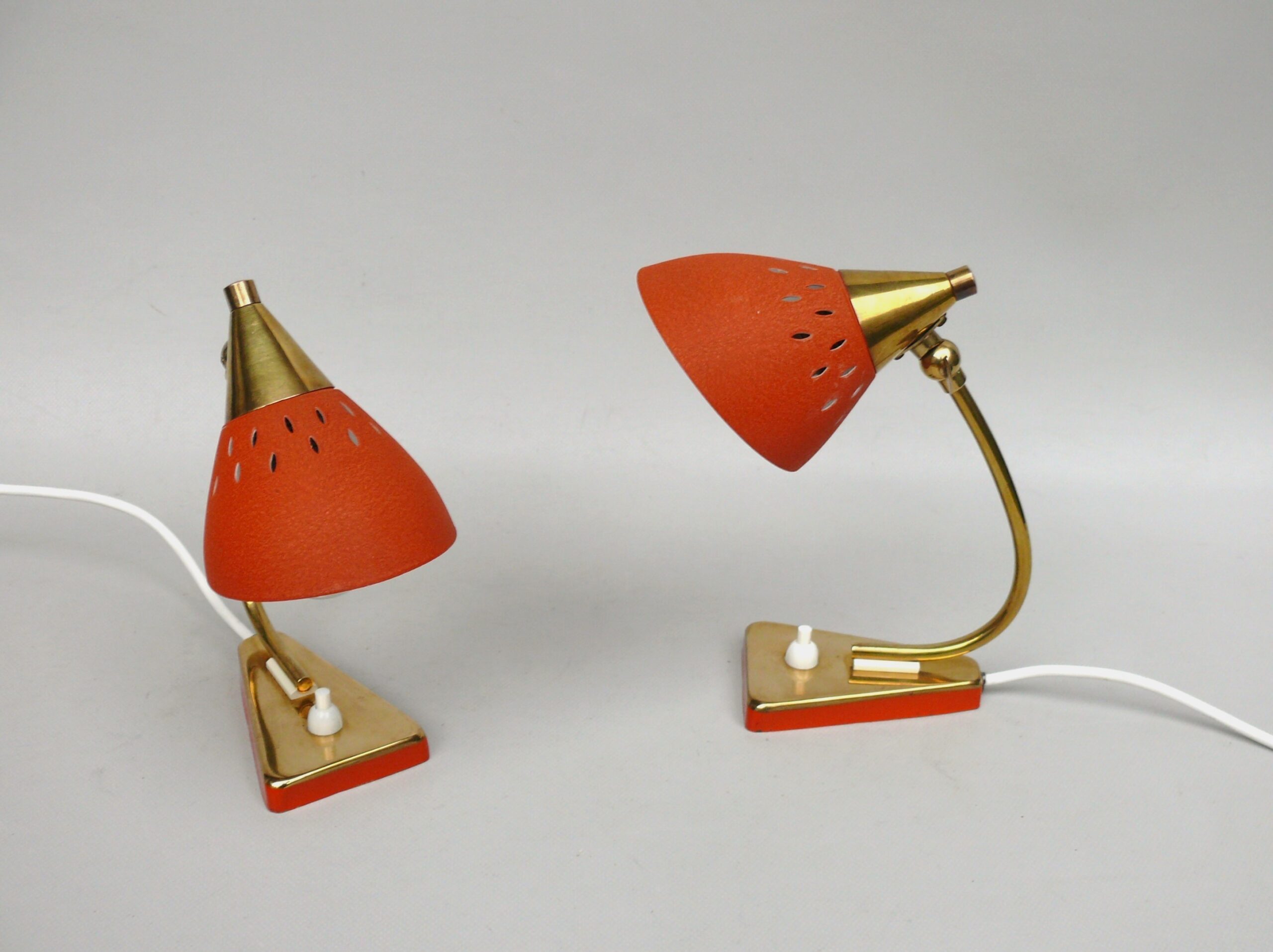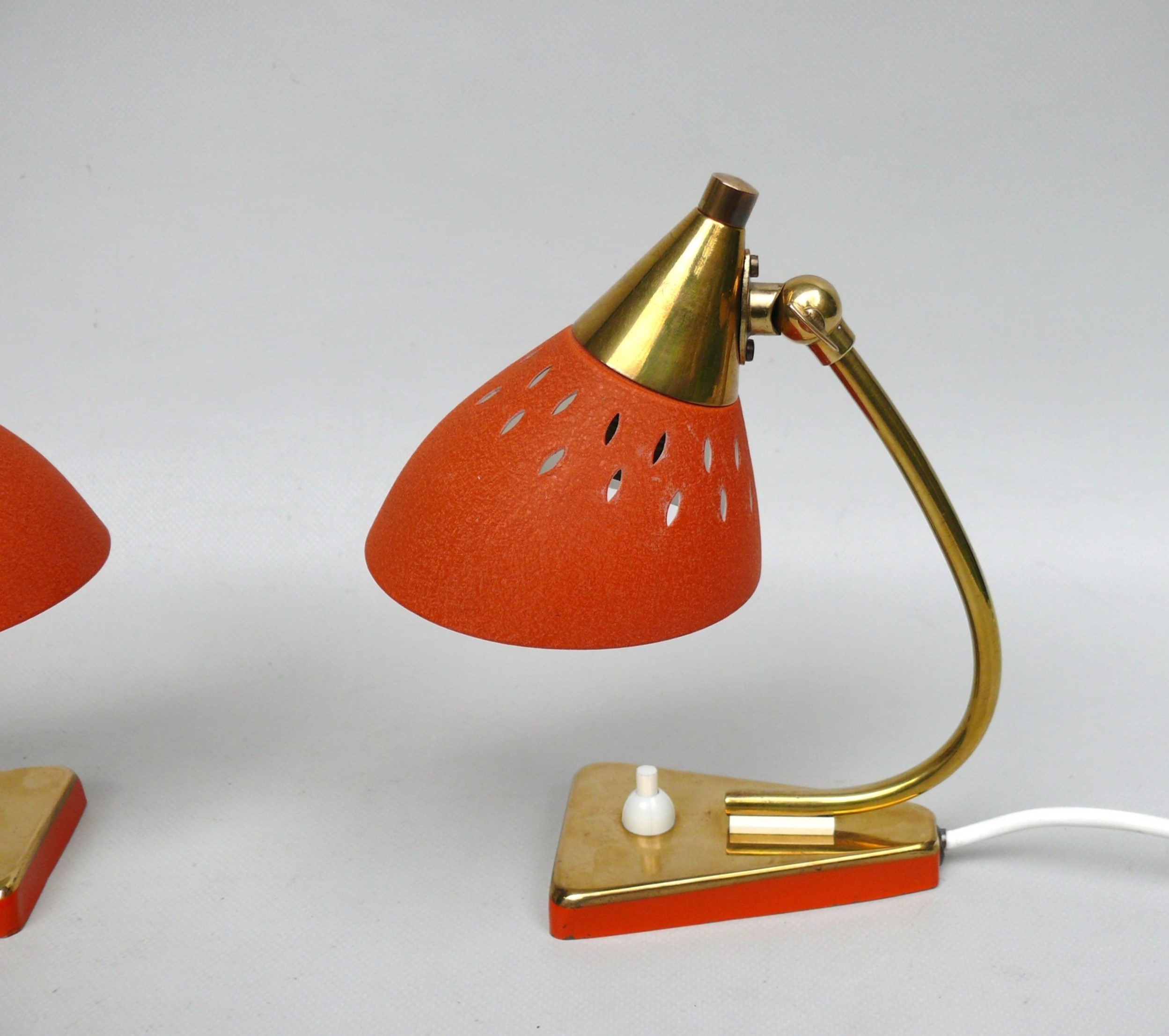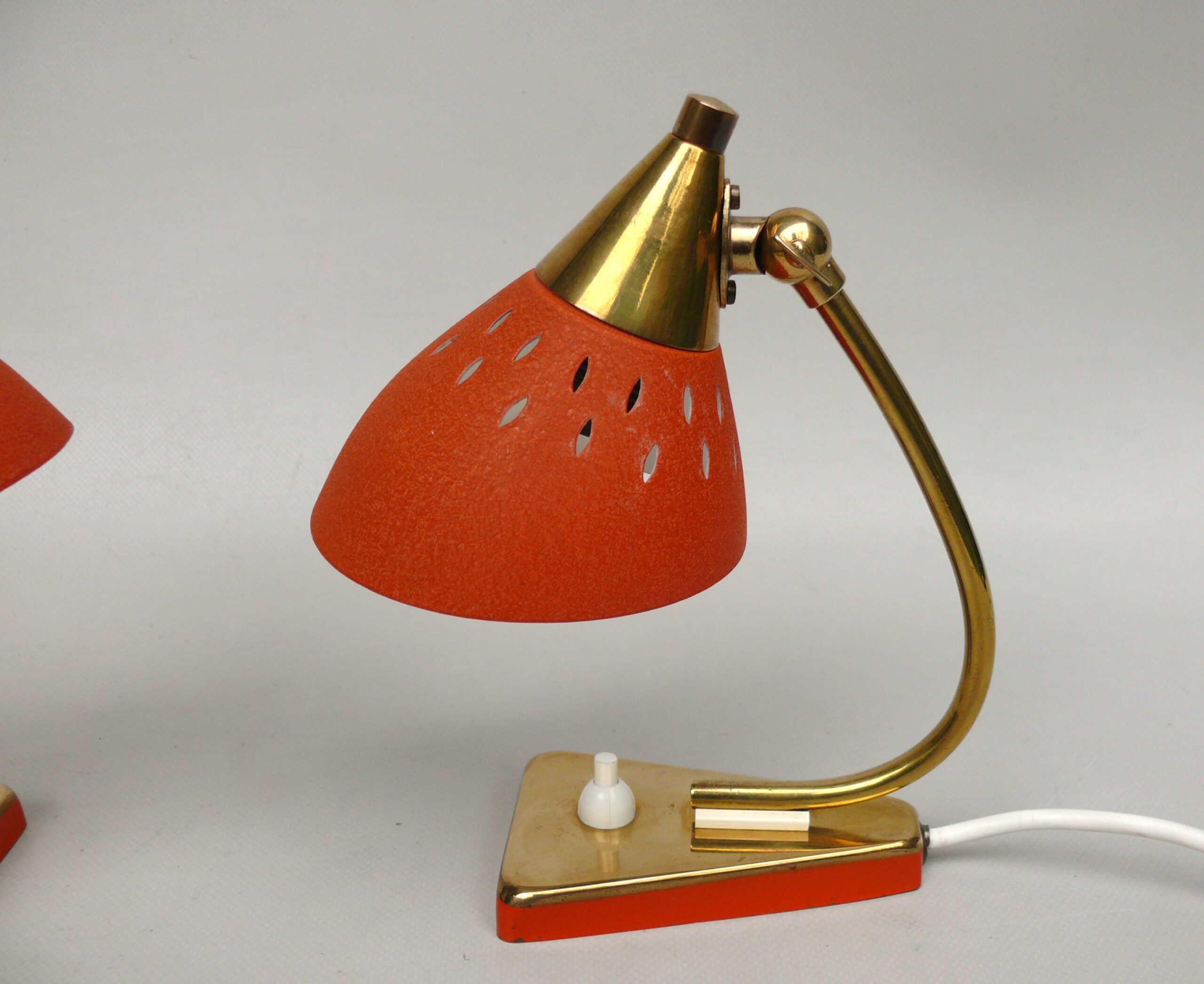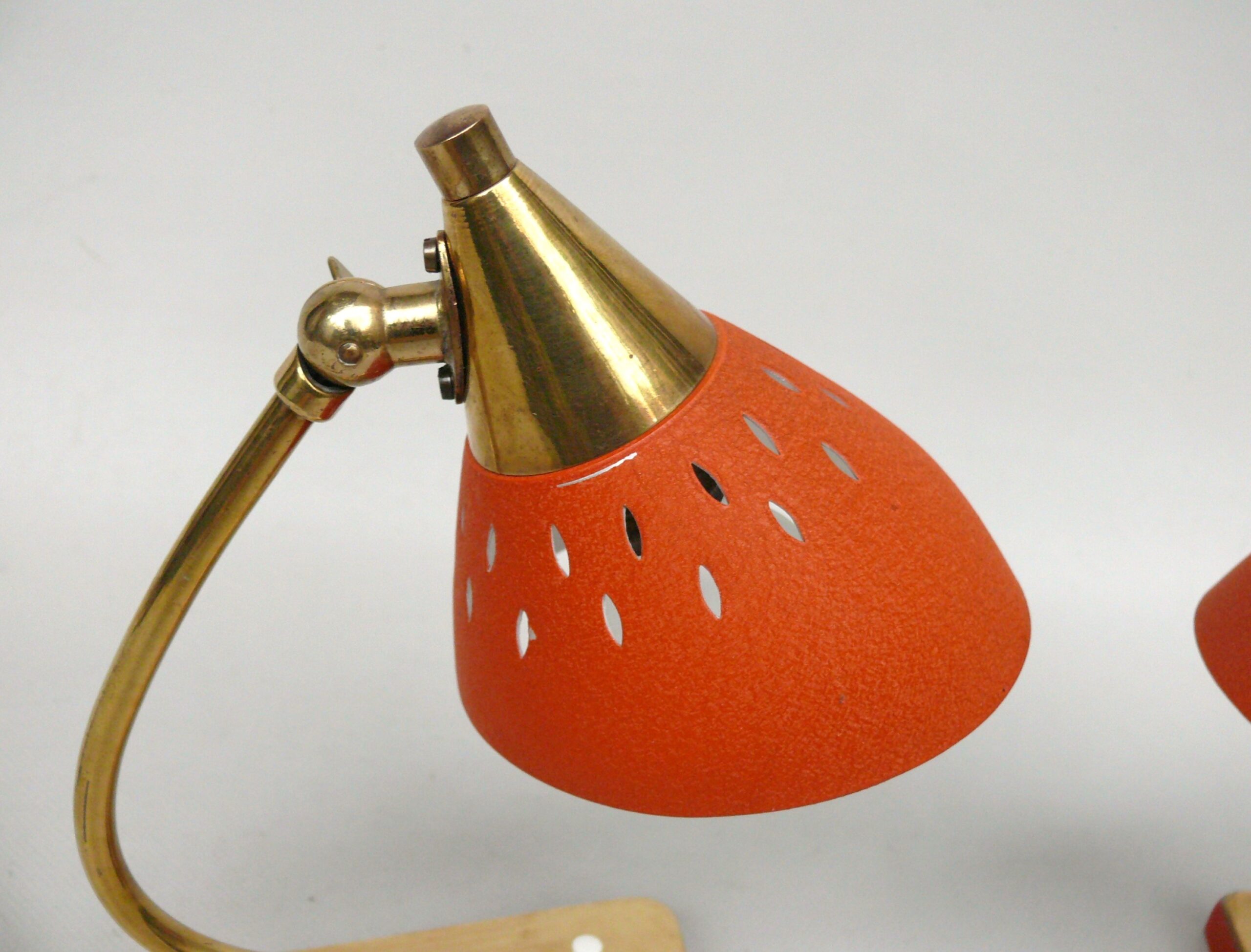 NP19 – 1 Paar Nachttischleuchten, 50er Jahre, Deutschland, orange, weiß, Messing, zugeschrieben Gebr. Cosack, Neheim-Hüsten