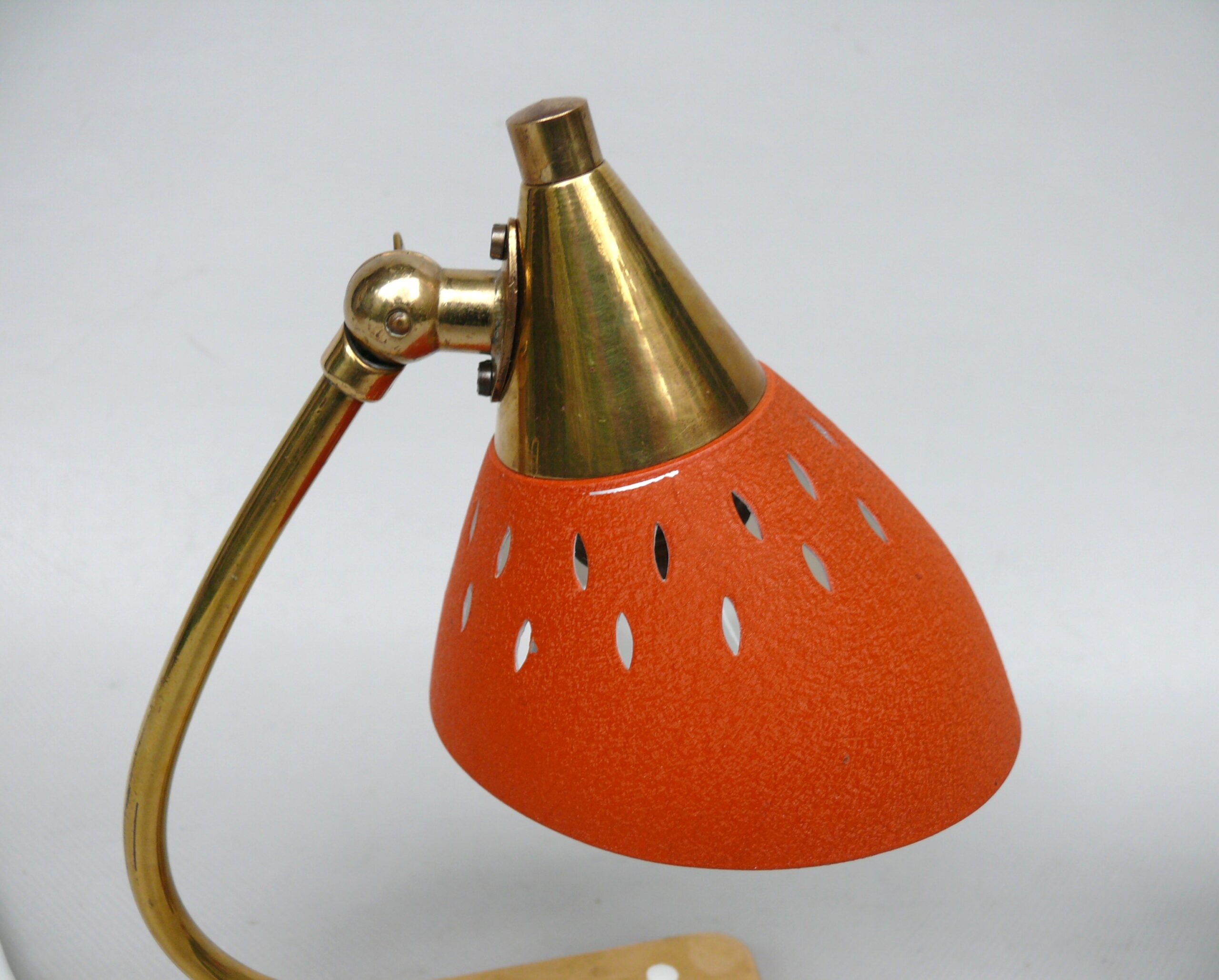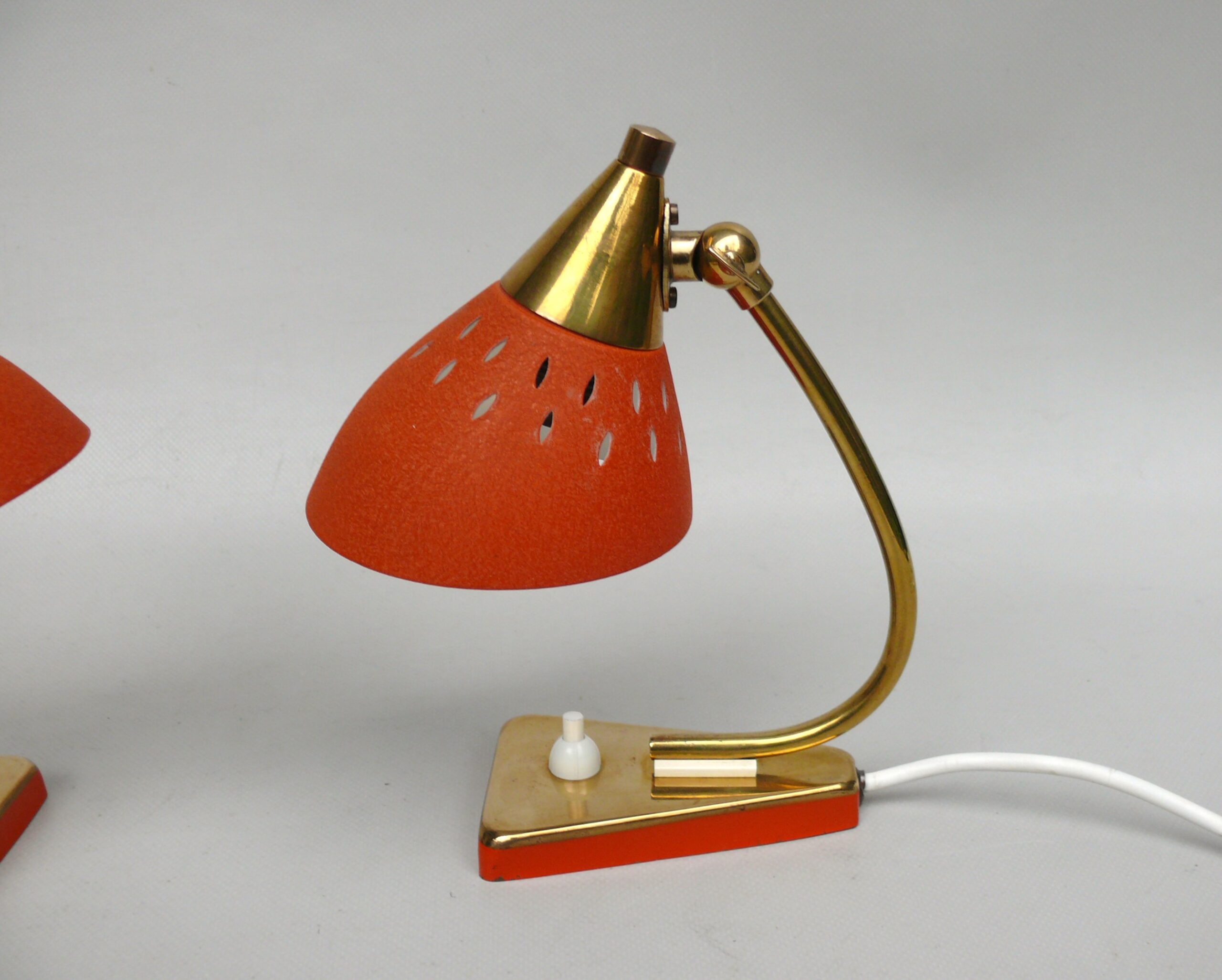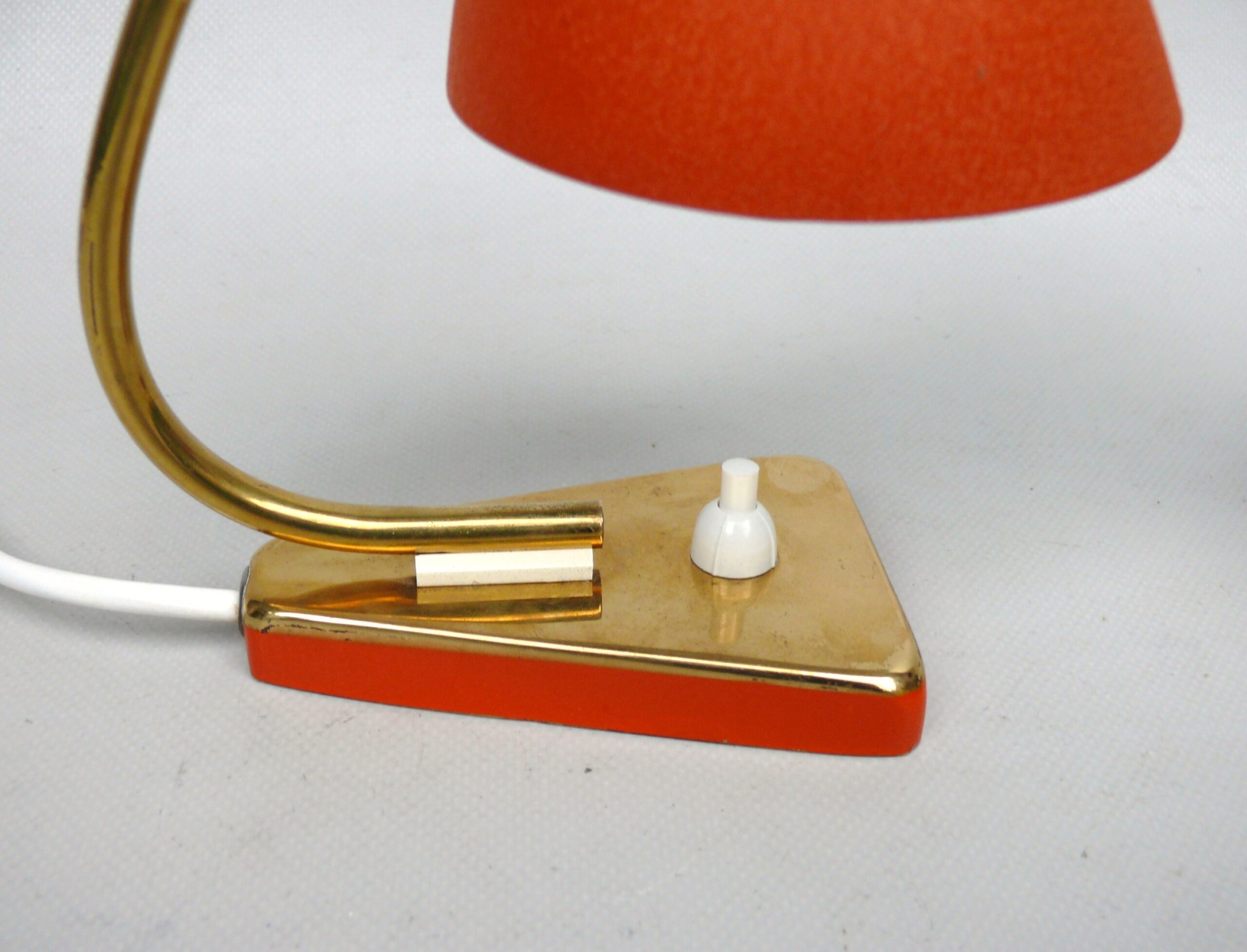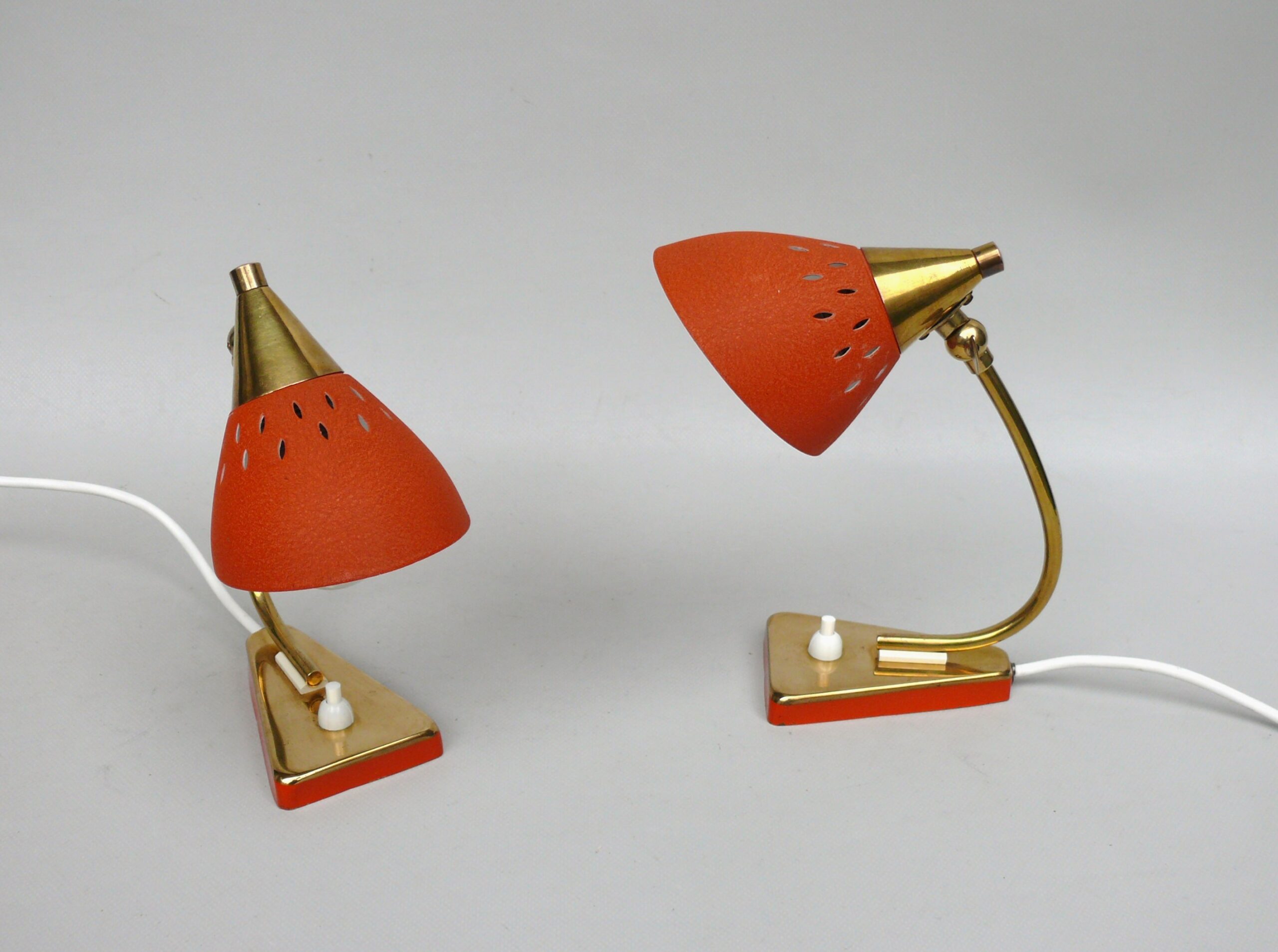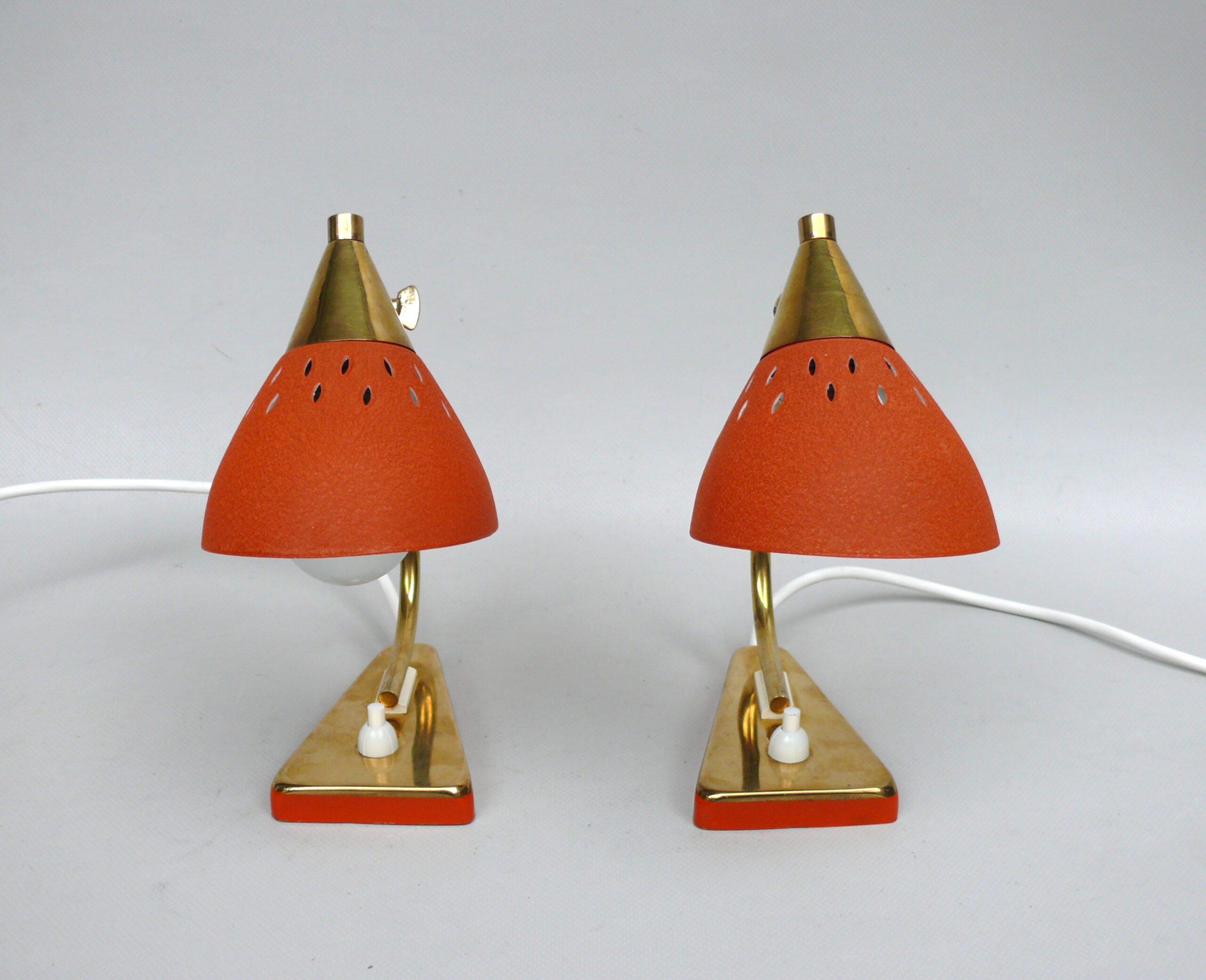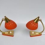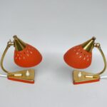 NP19 – 1 Paar Nachttischleuchten, 50er Jahre, Deutschland, orange, weiß, Messing, zugeschrieben Gebr. Cosack, Neheim-Hüsten