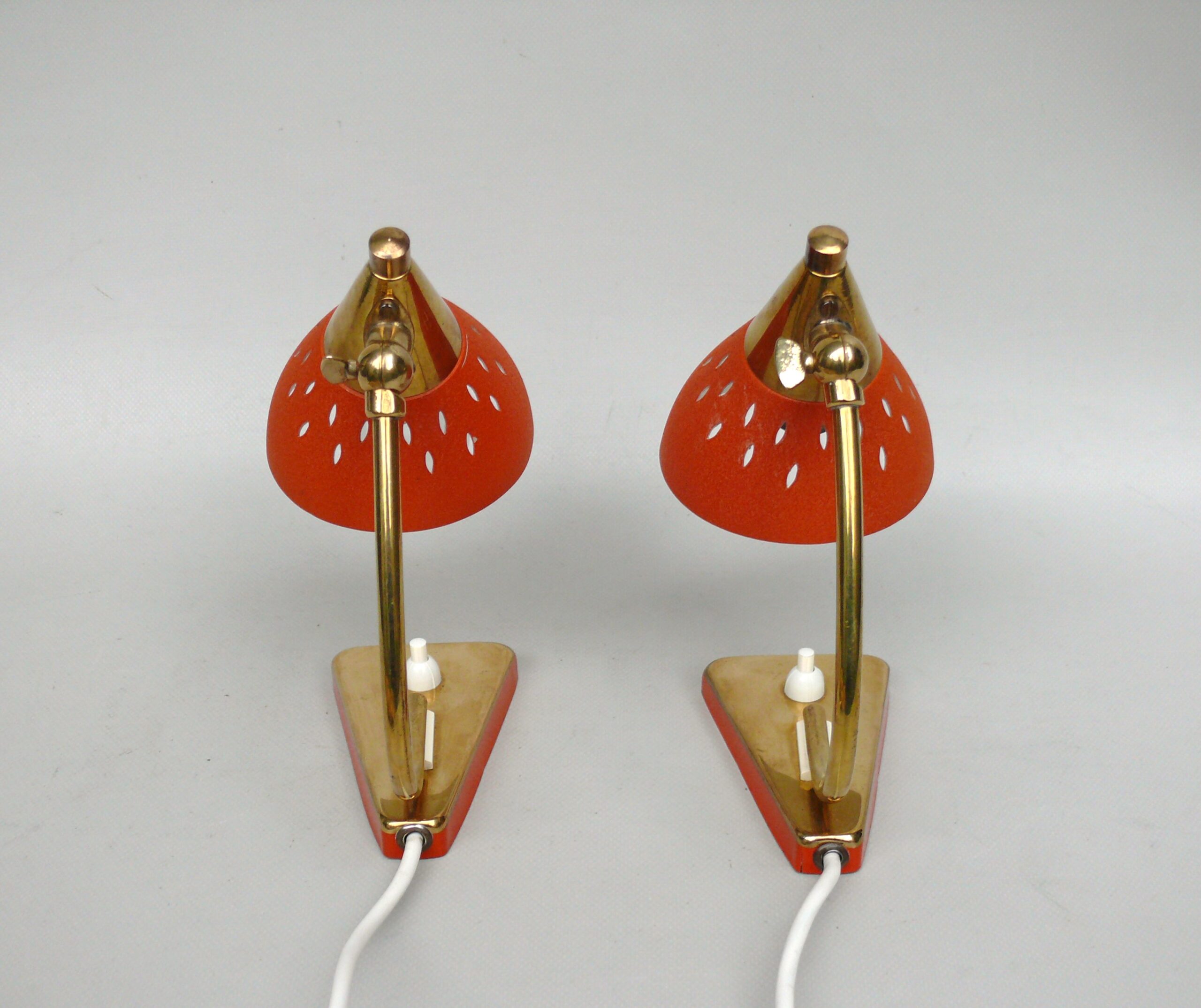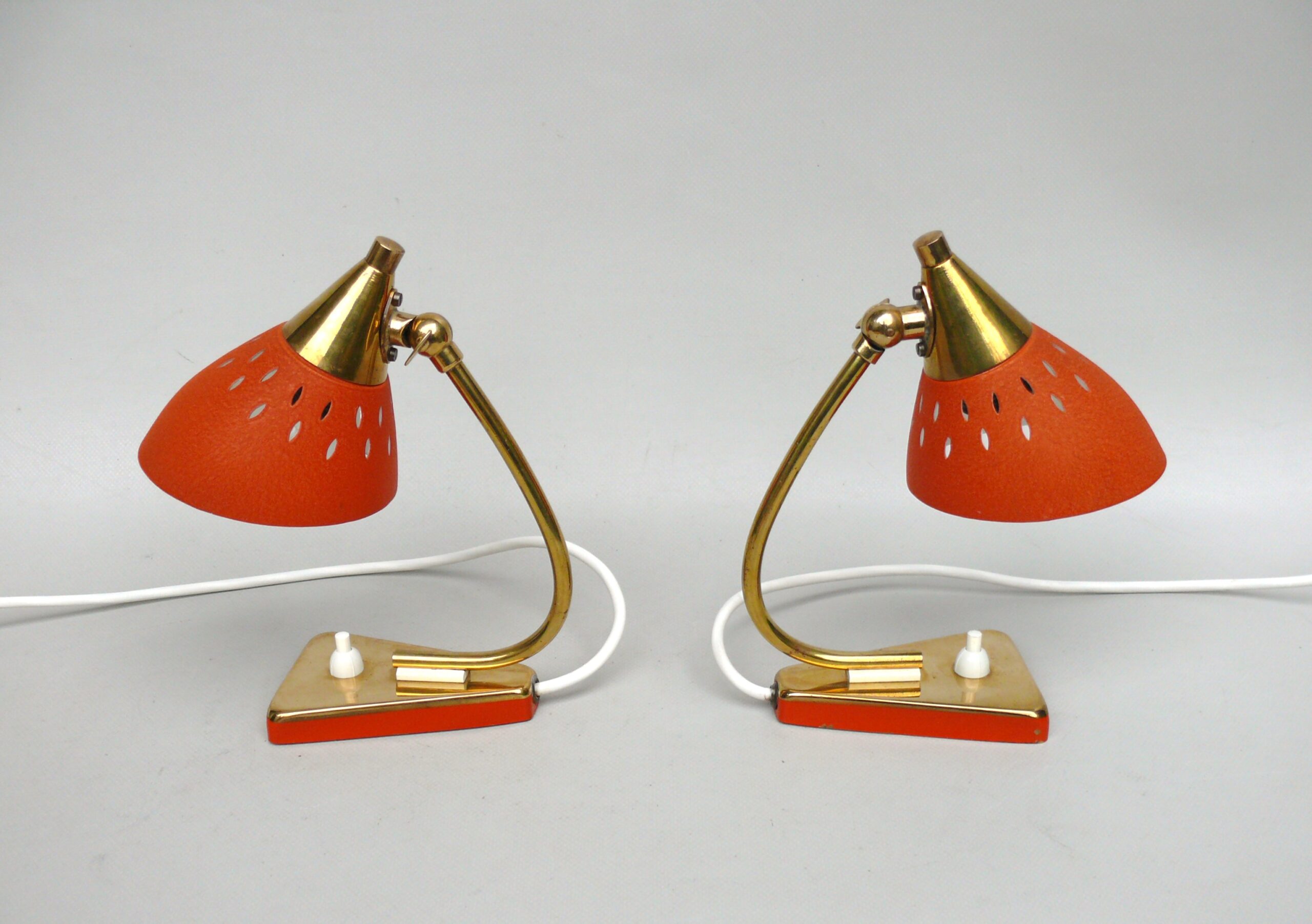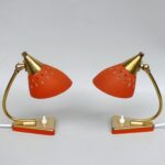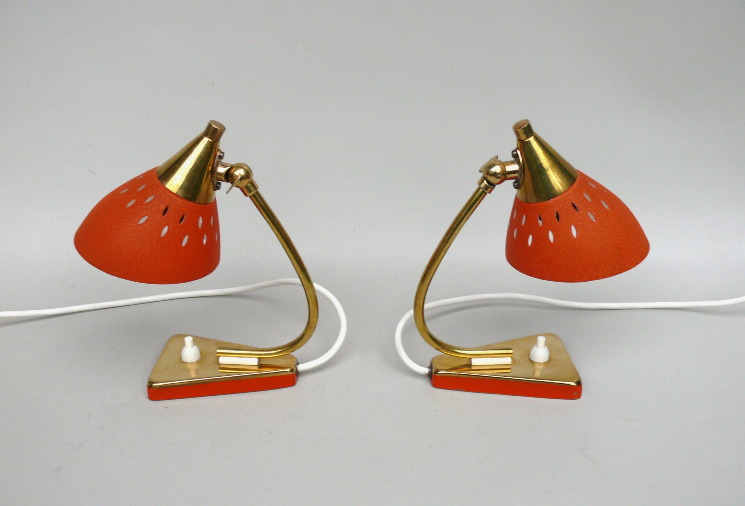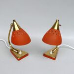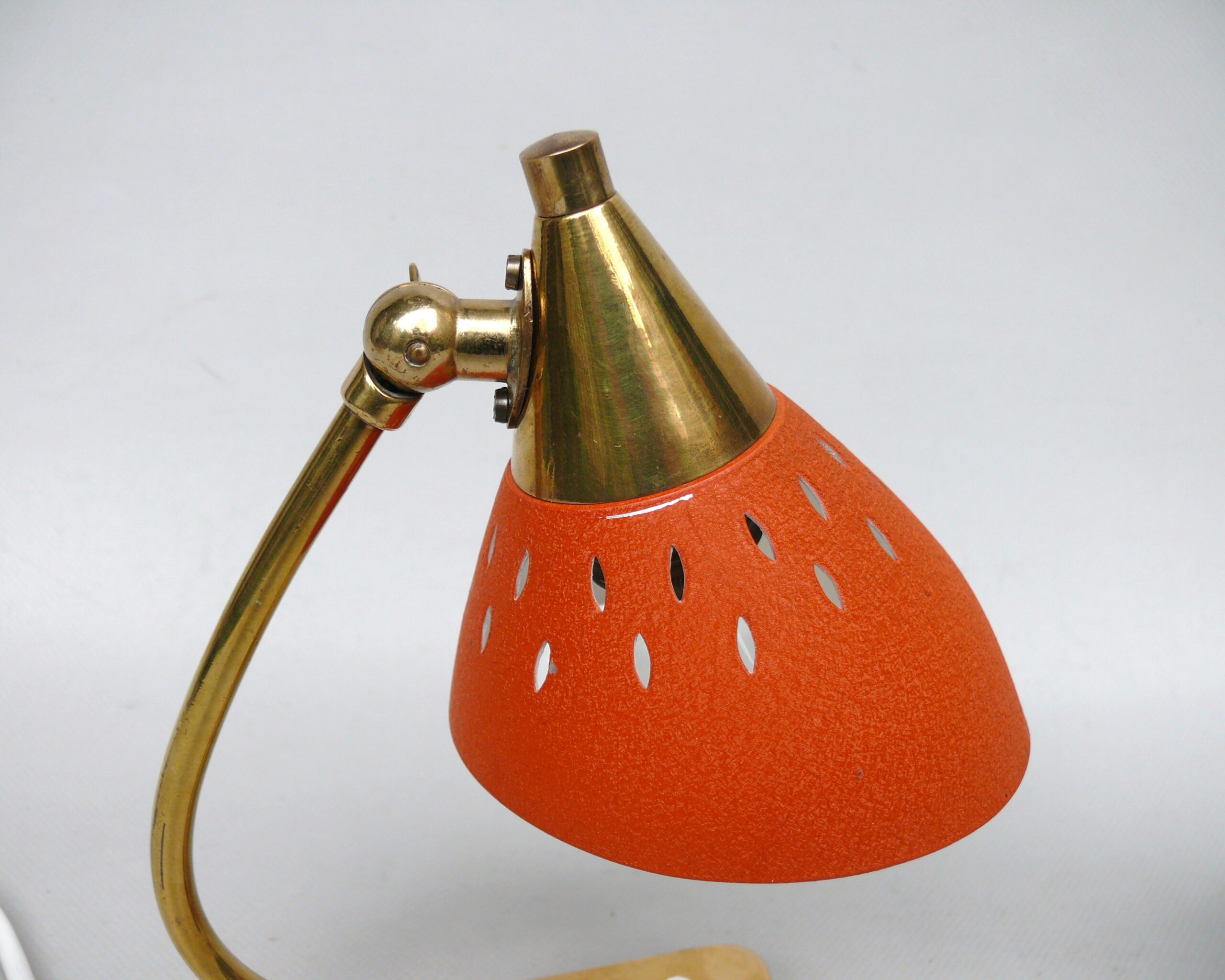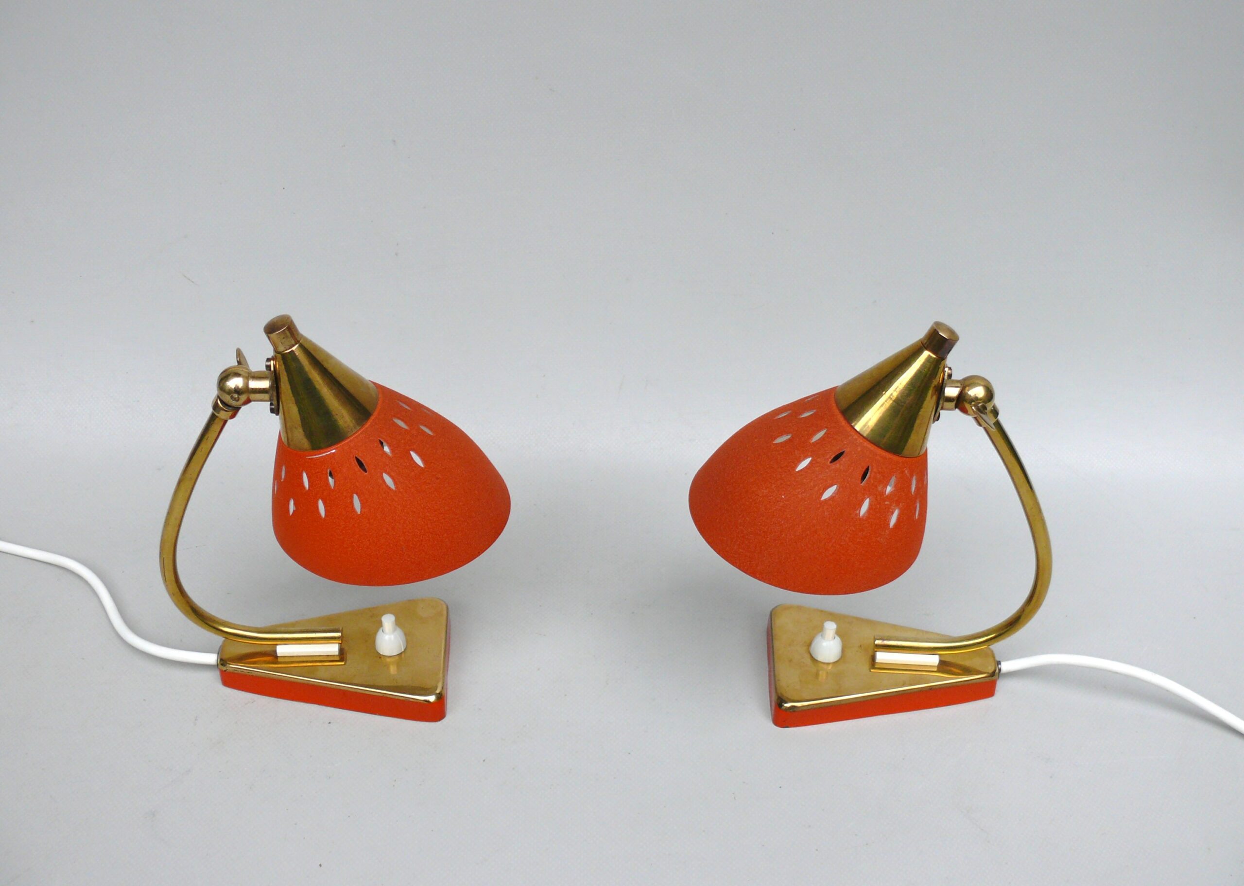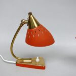 NP19 – 1 Paar Nachttischleuchten, 50er Jahre, Deutschland, orange, weiß, Messing, zugeschrieben Gebr. Cosack, Neheim-Hüsten