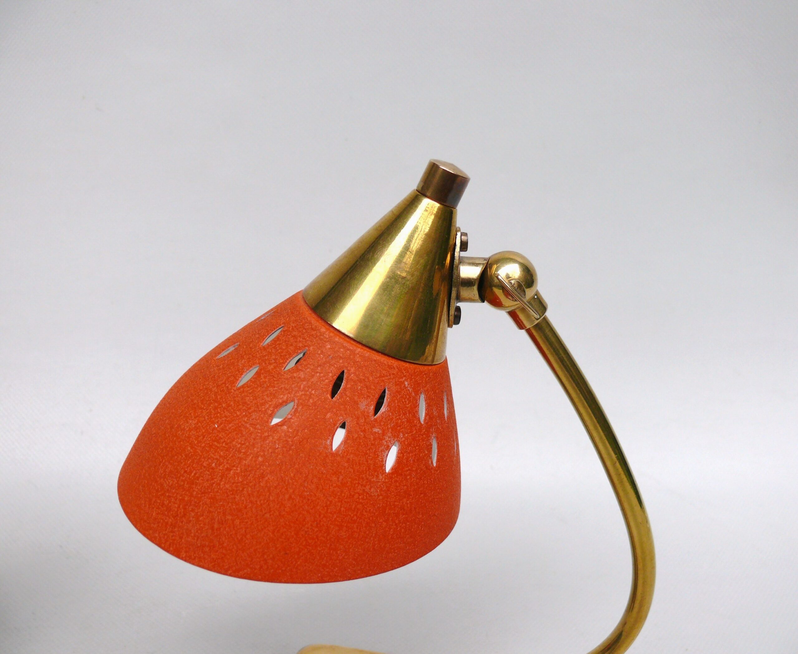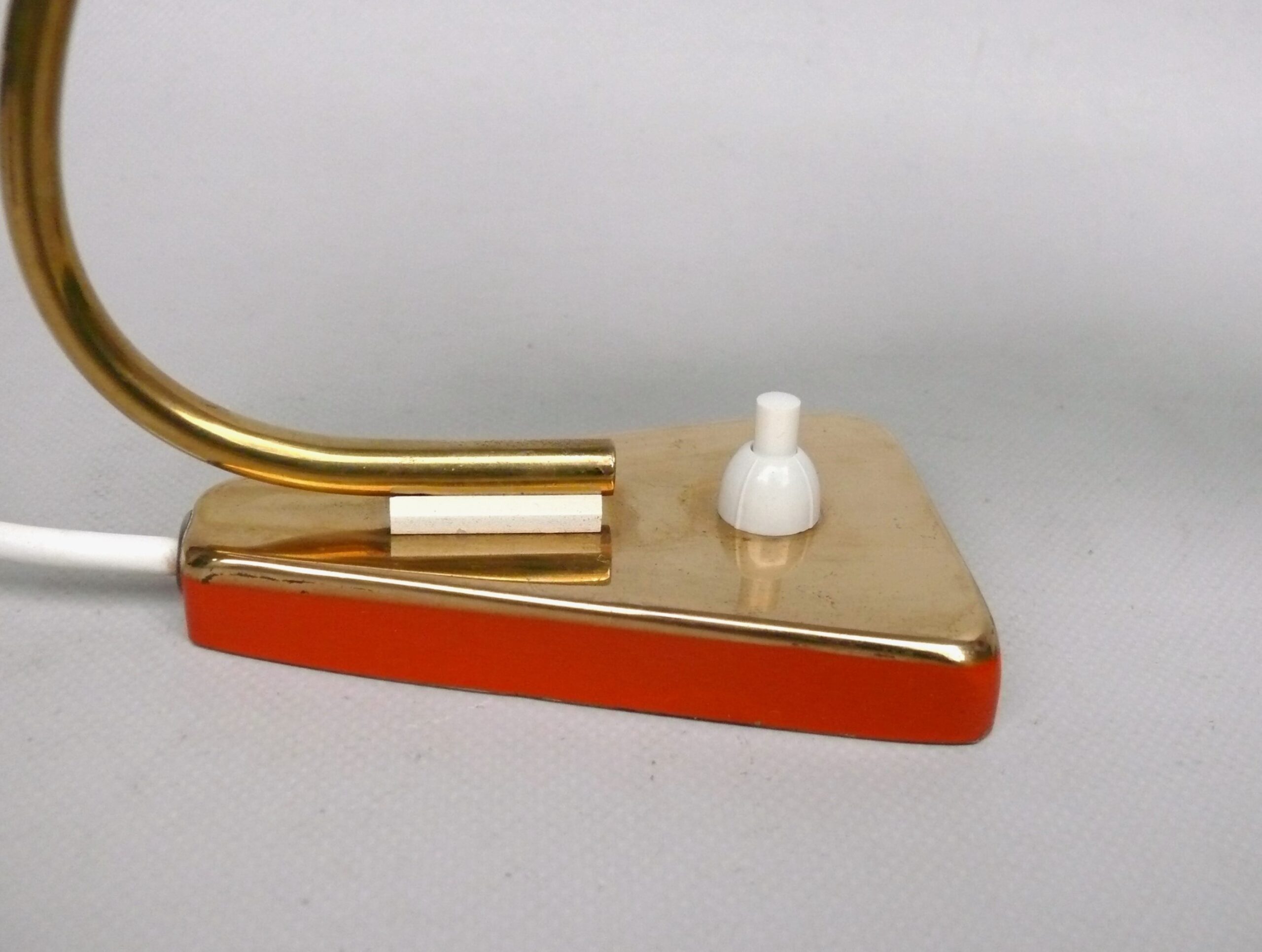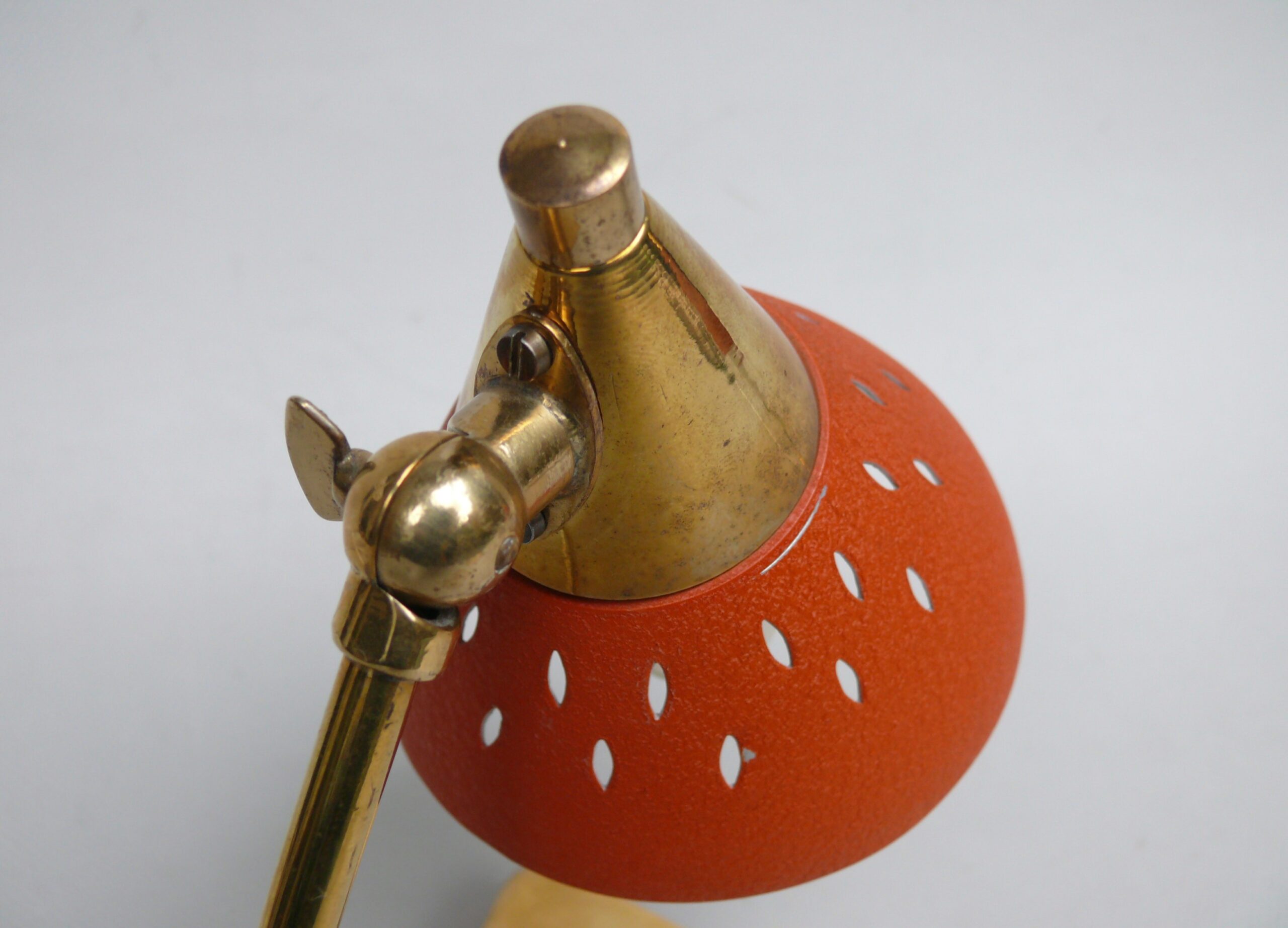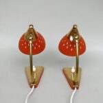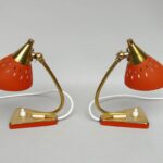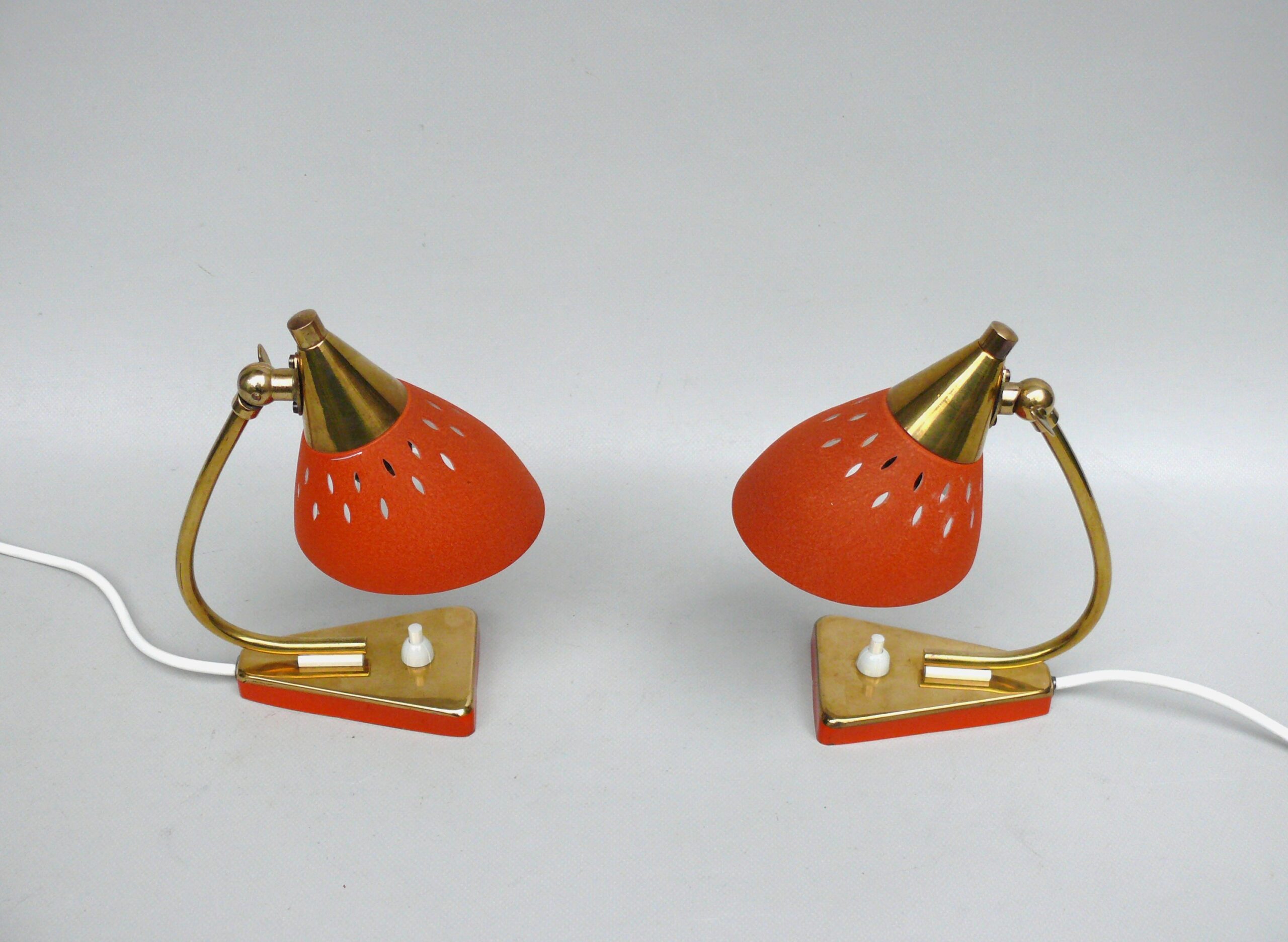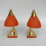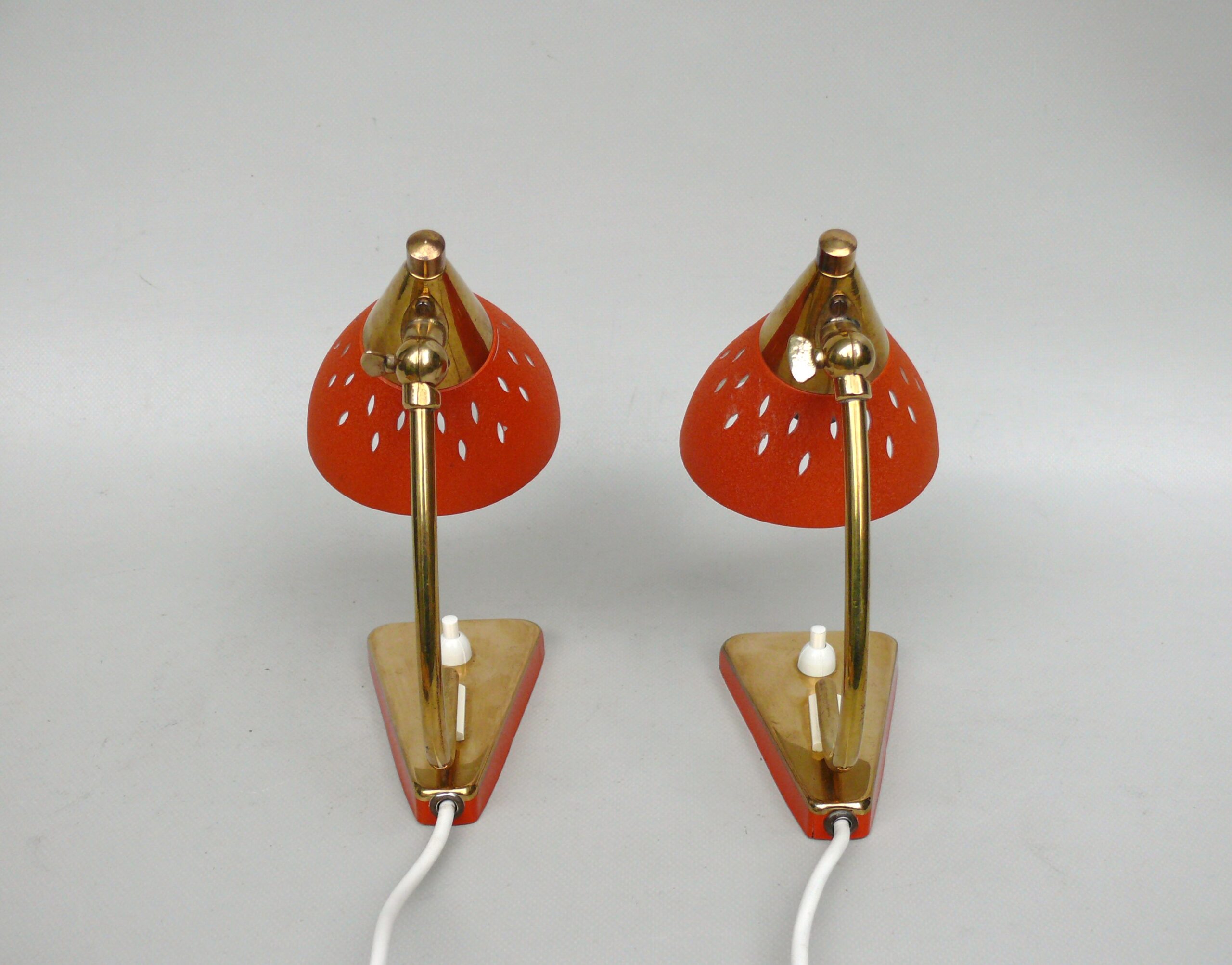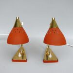 NP19 – 1 Paar Nachttischleuchten, 50er Jahre, Deutschland, orange, weiß, Messing, zugeschrieben Gebr. Cosack, Neheim-Hüsten