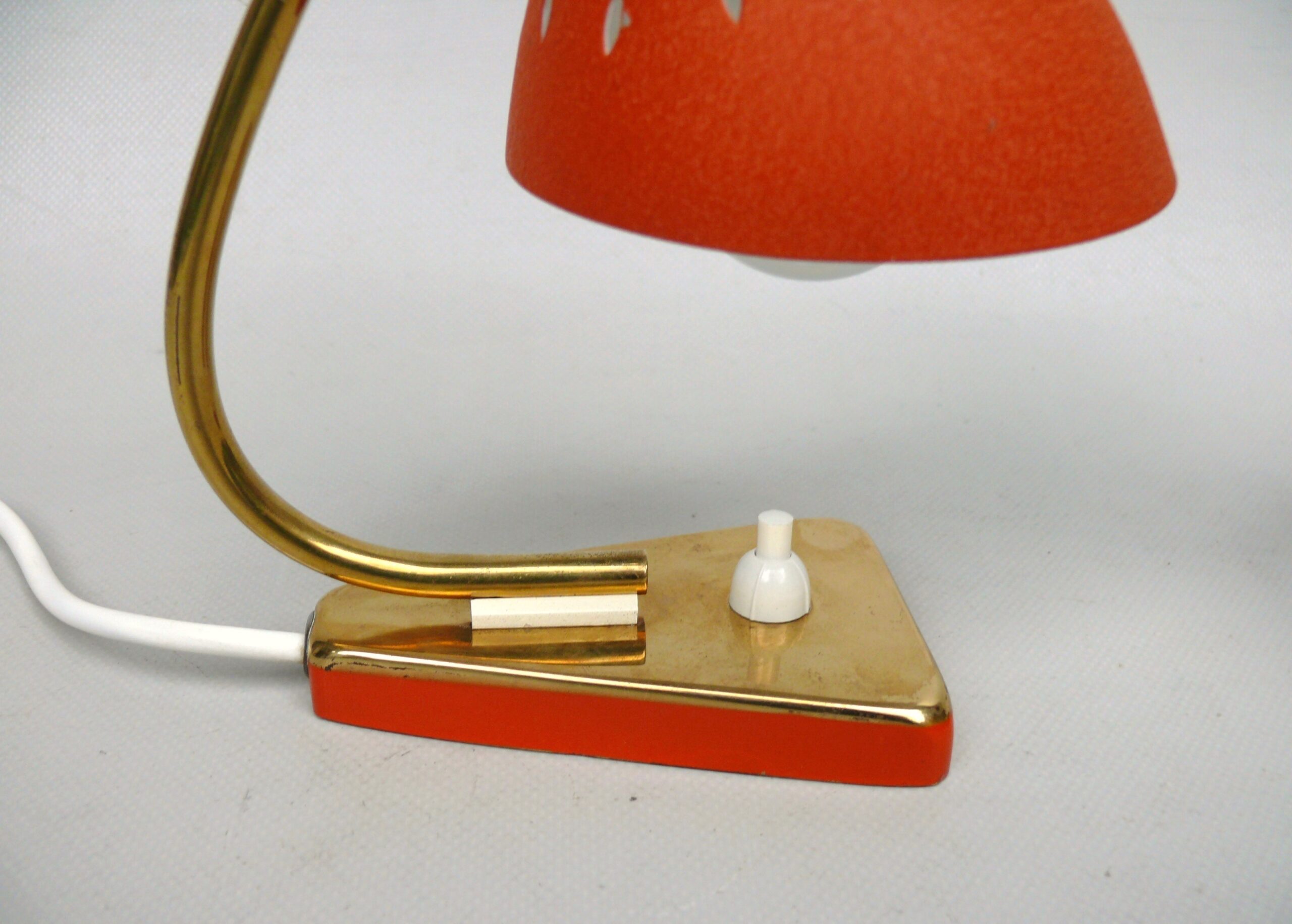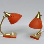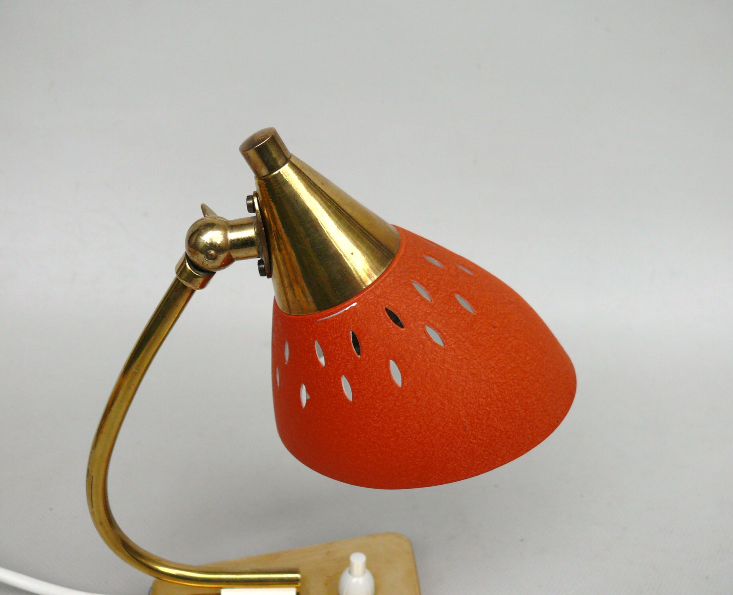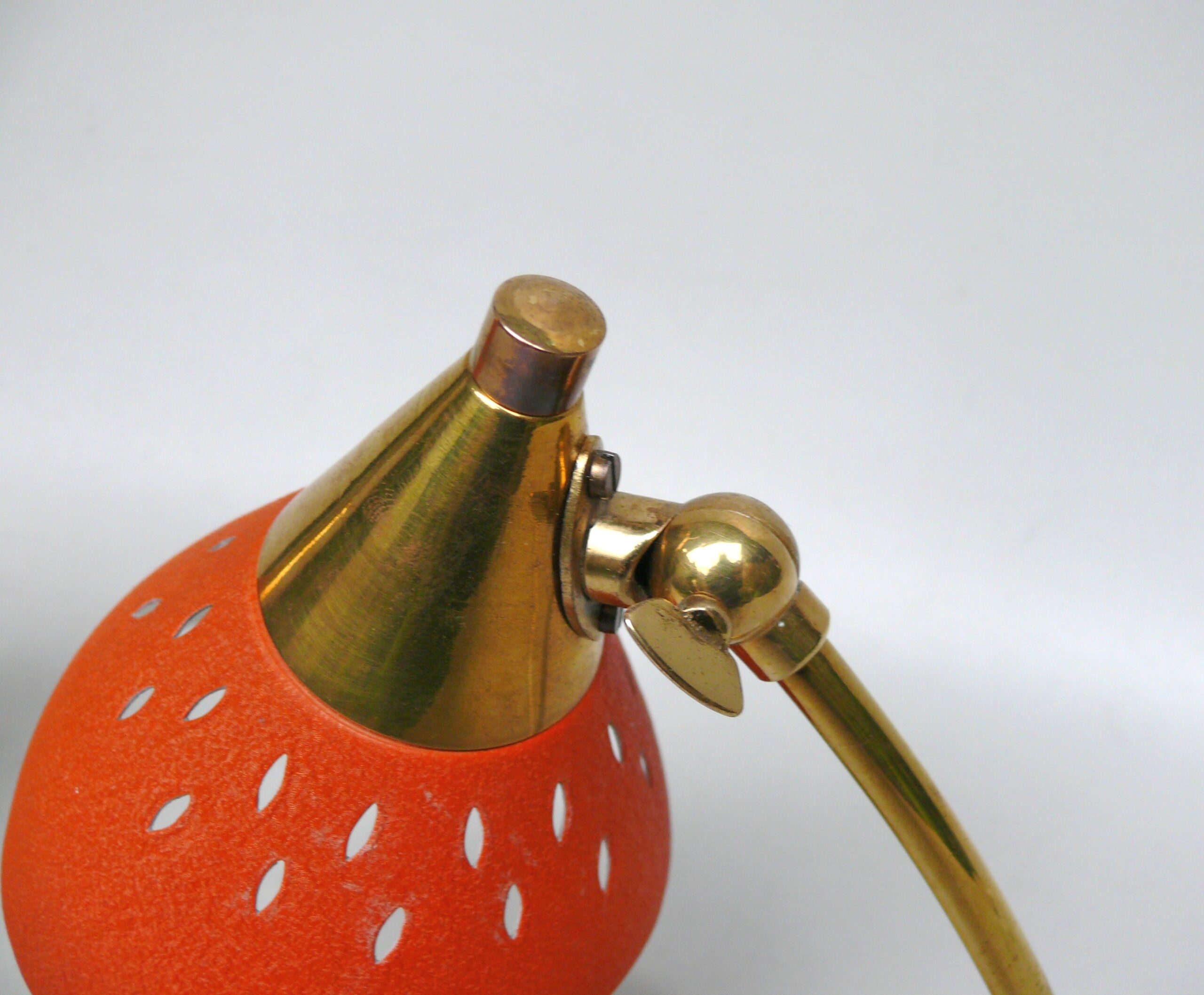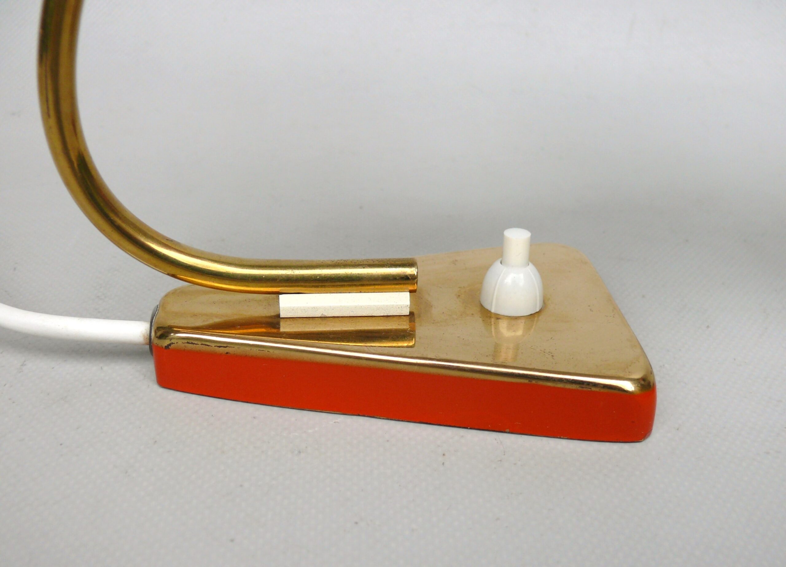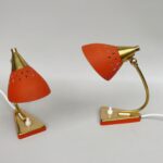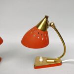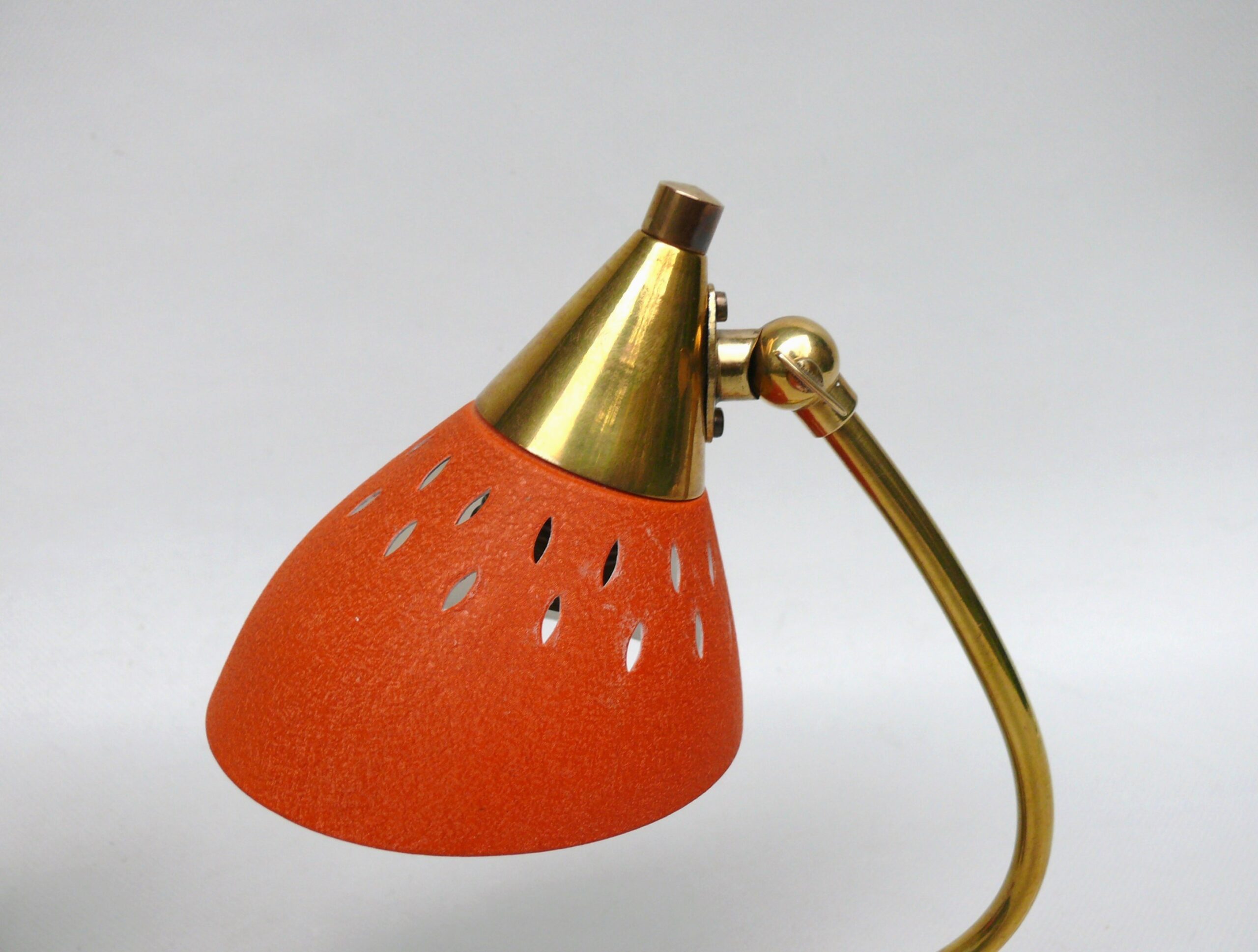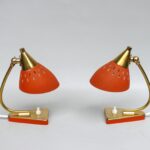 NP19 – 1 Paar Nachttischleuchten, 50er Jahre, Deutschland, orange, weiß, Messing, zugeschrieben Gebr. Cosack, Neheim-Hüsten