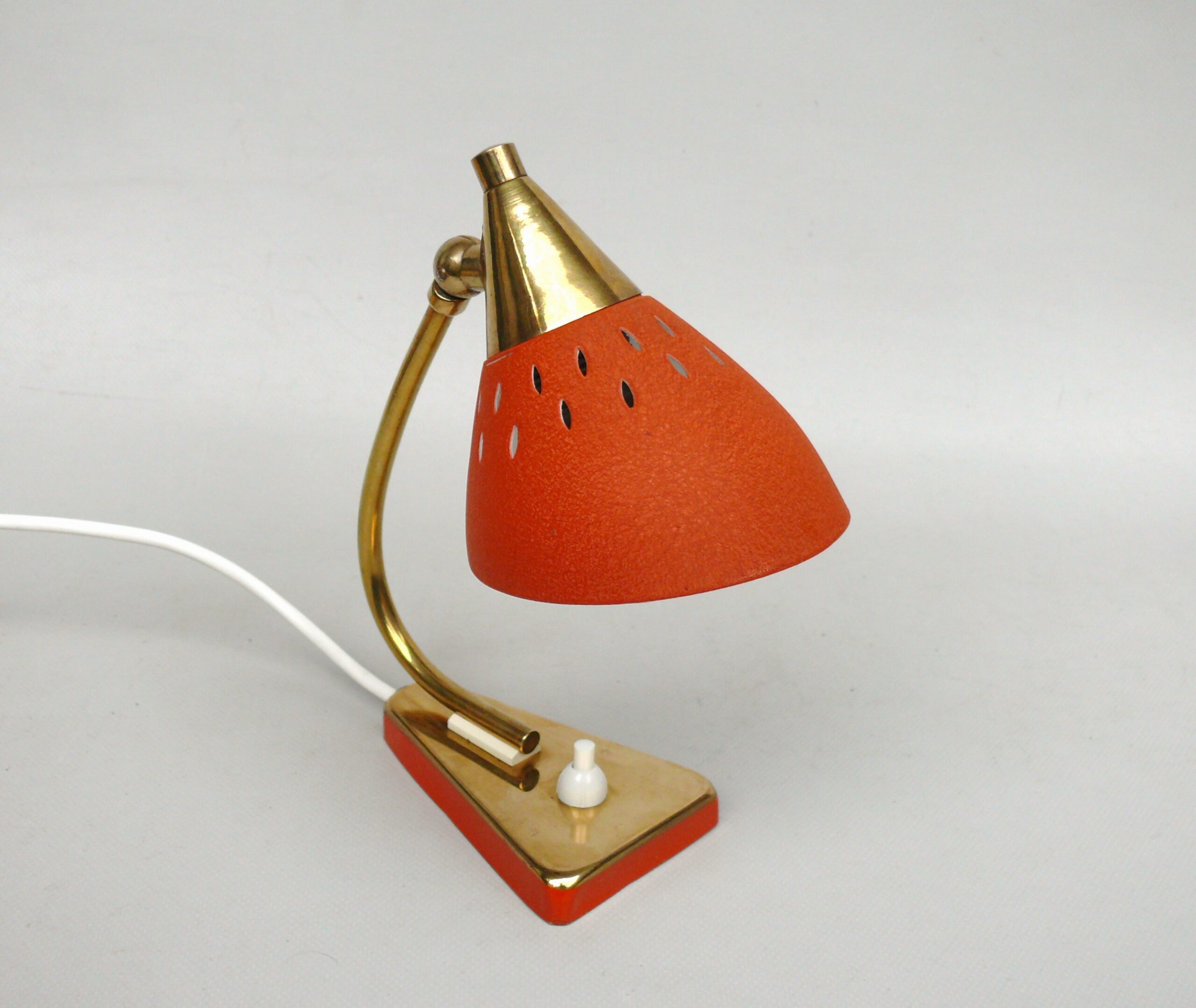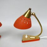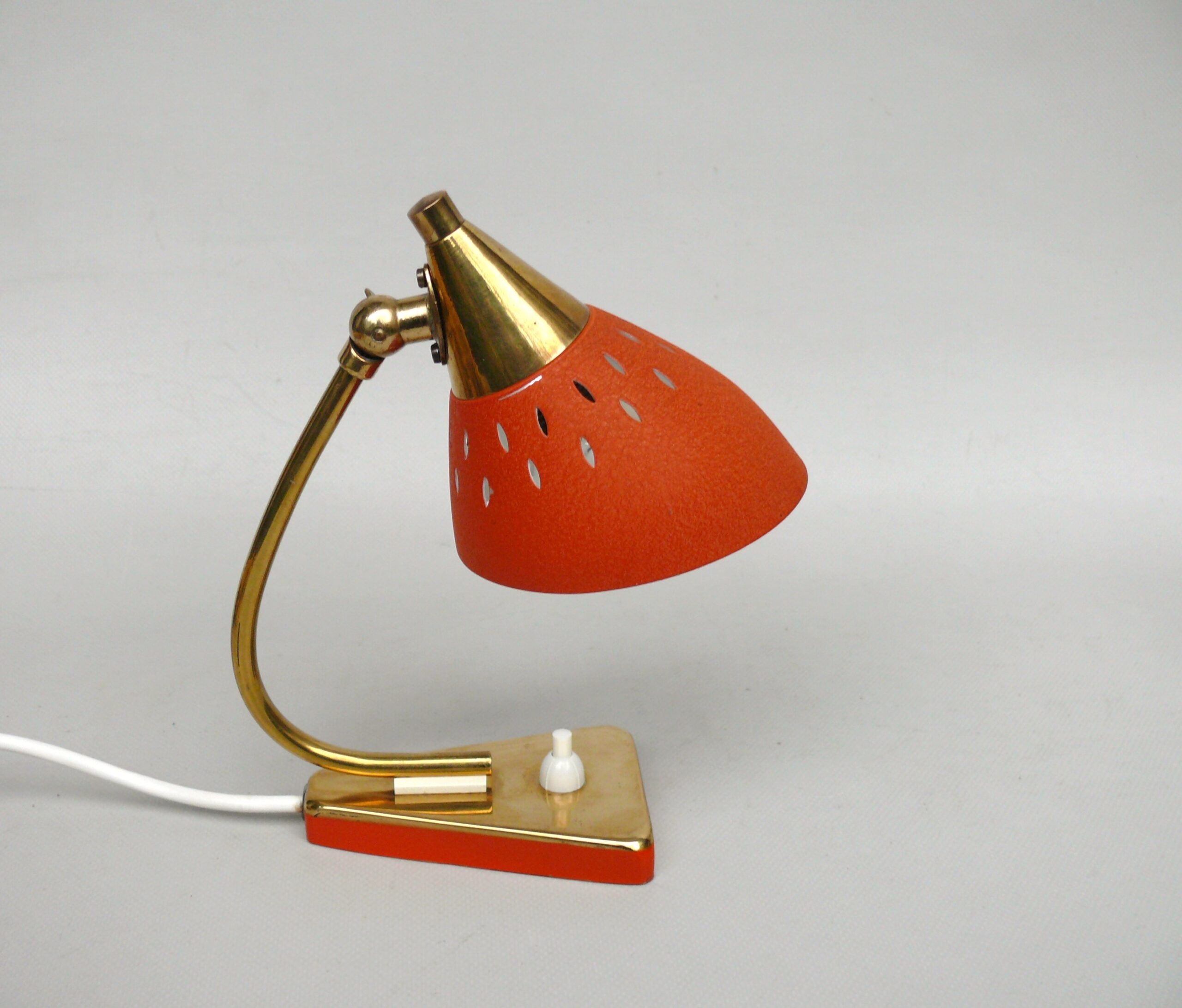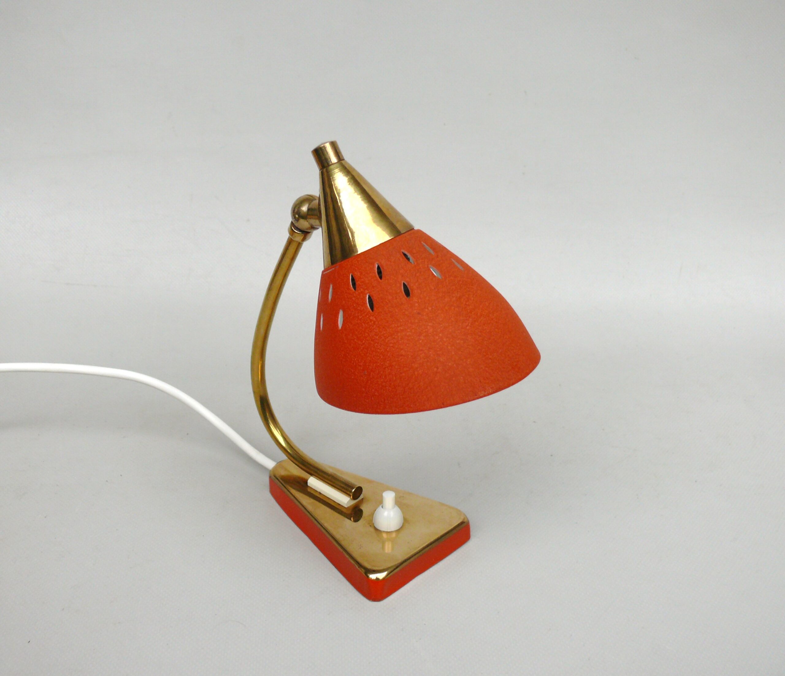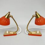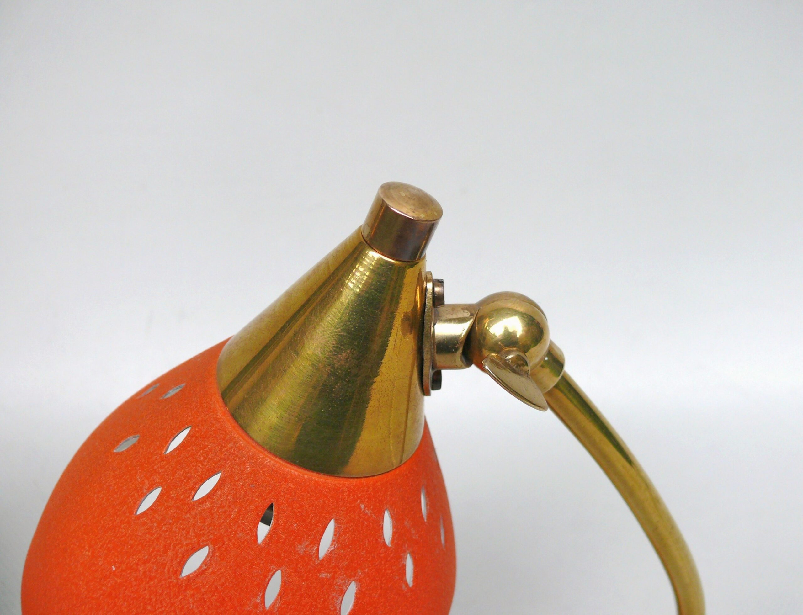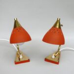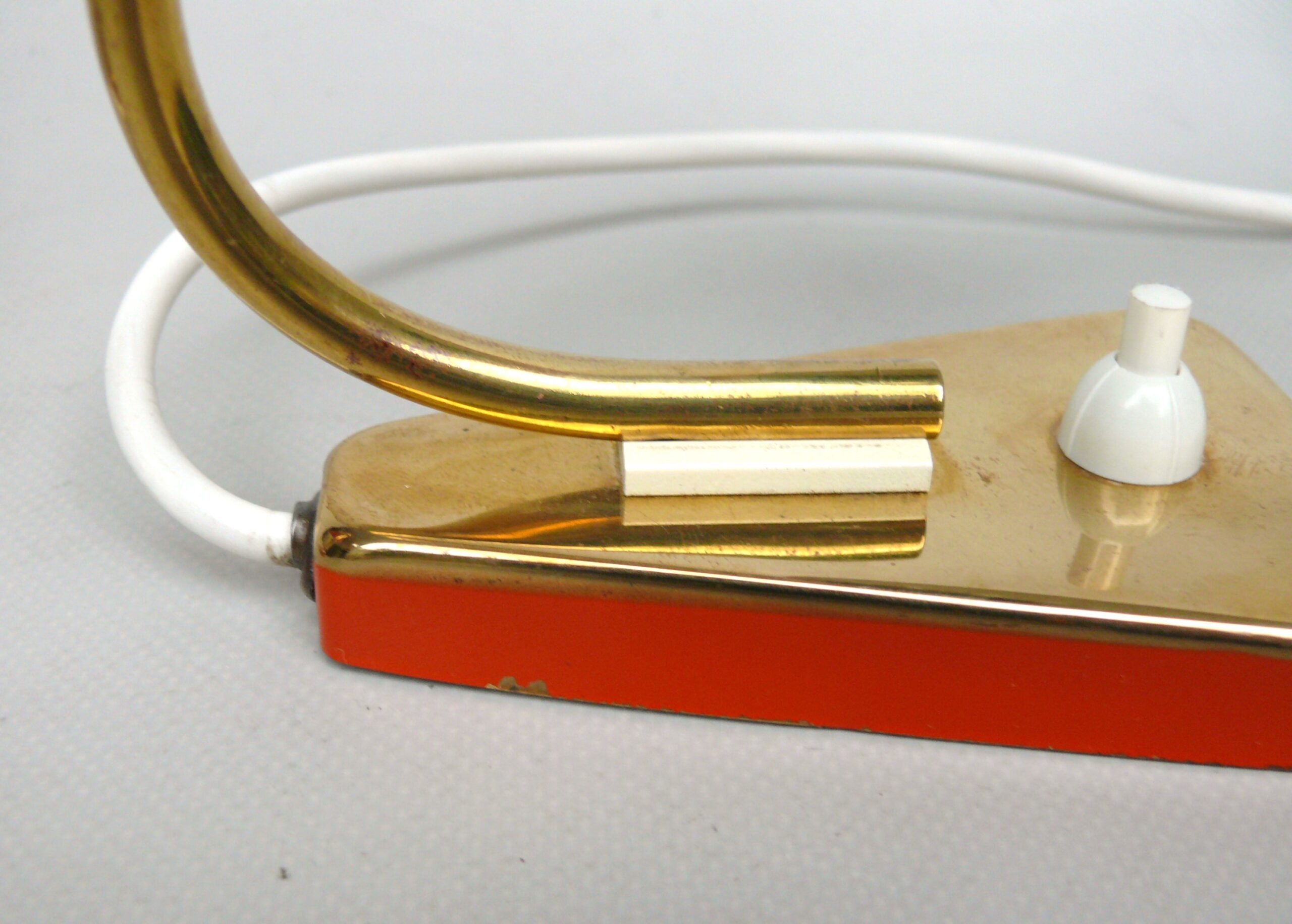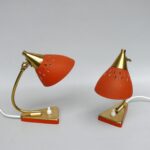 NP19 – 1 Paar Nachttischleuchten, 50er Jahre, Deutschland, orange, weiß, Messing, zugeschrieben Gebr. Cosack, Neheim-Hüsten