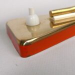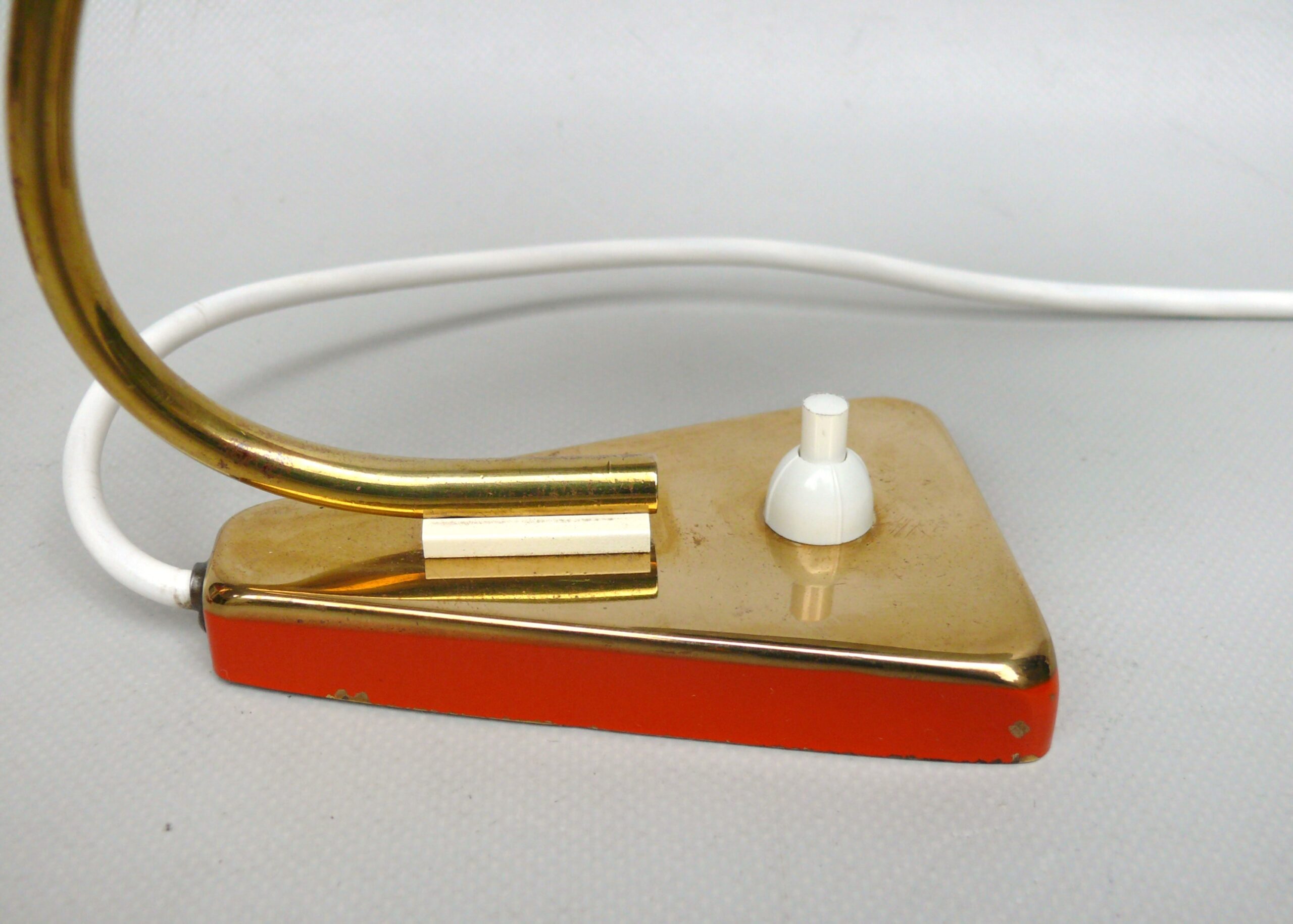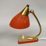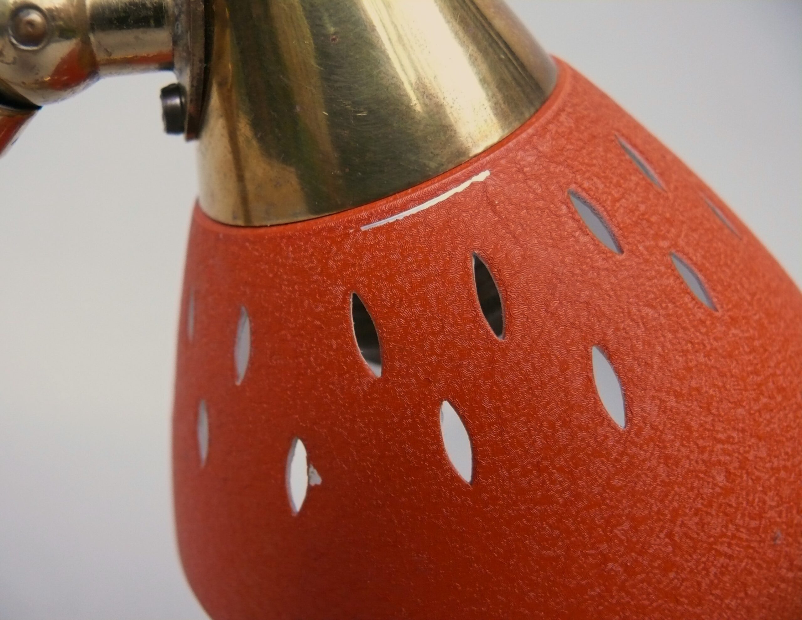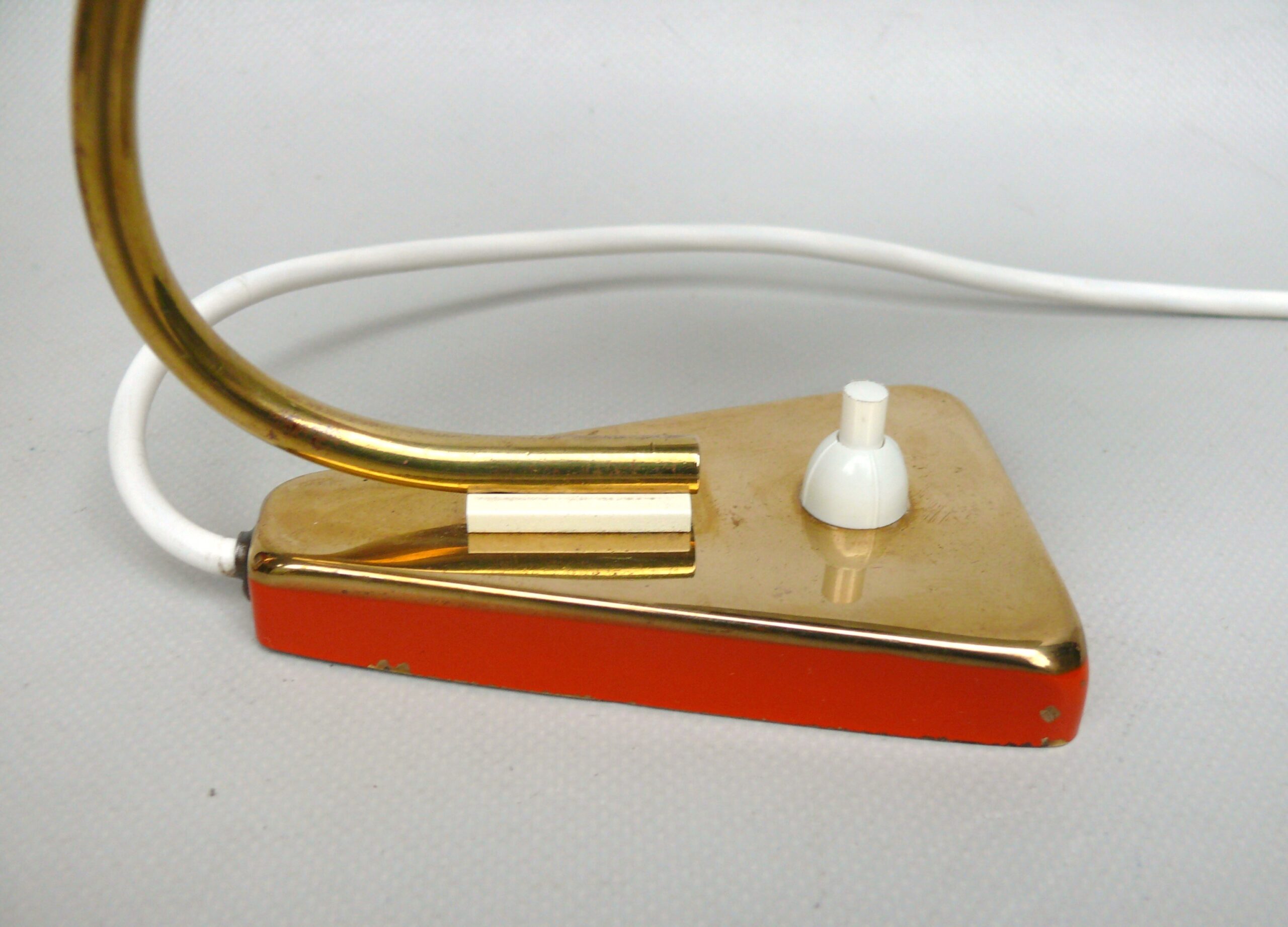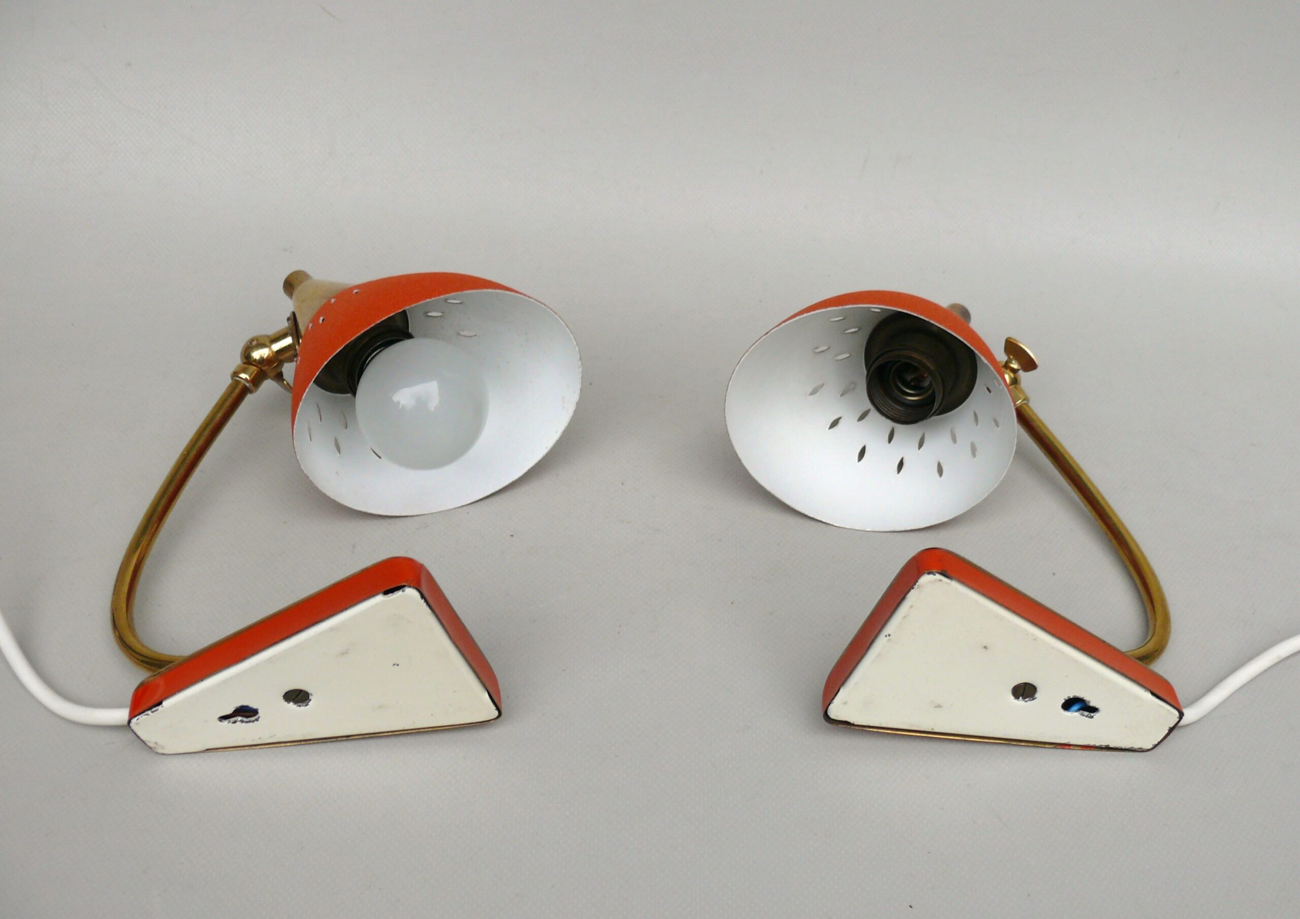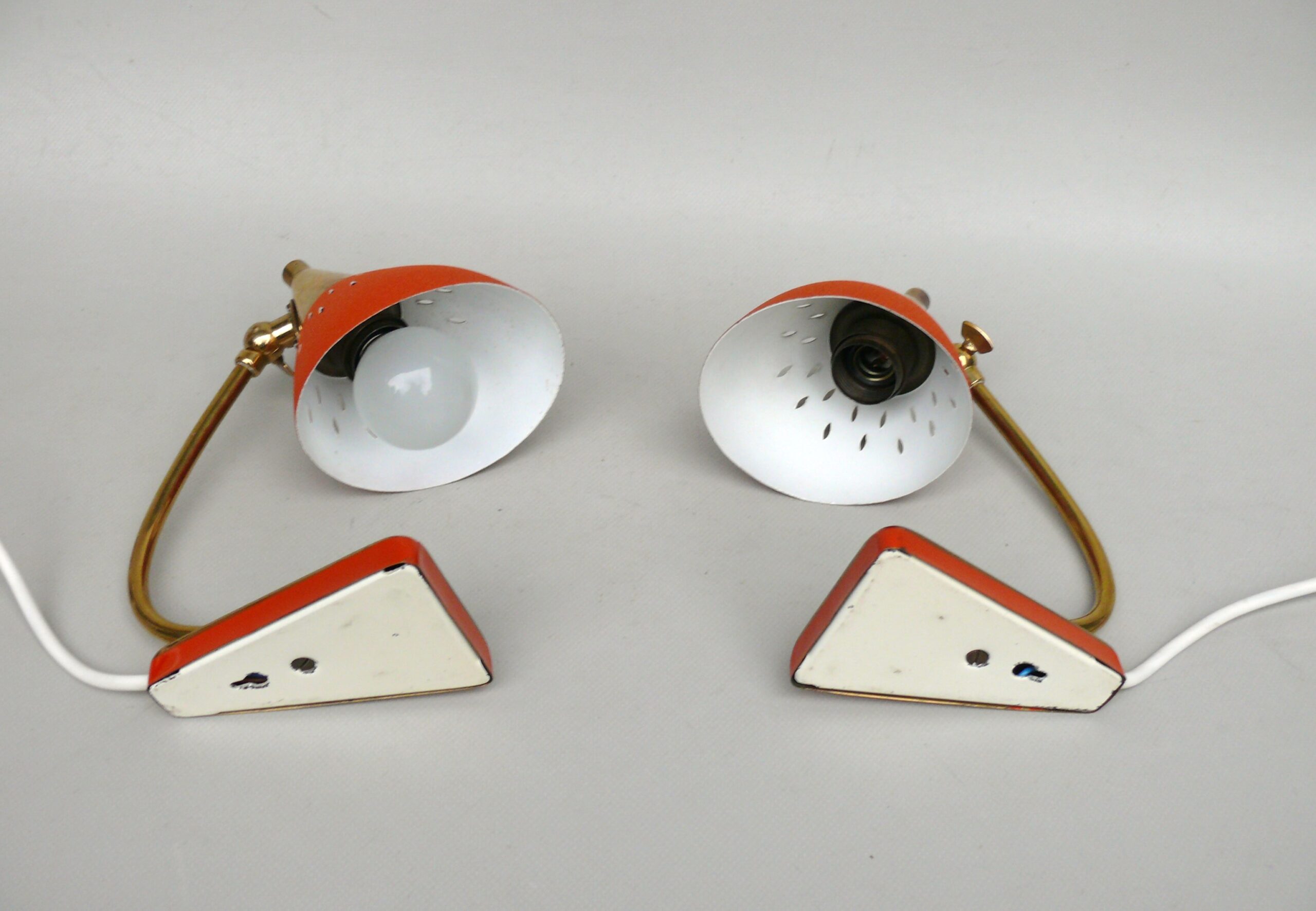 NP19 – 1 Paar Nachttischleuchten, 50er Jahre, Deutschland, orange, weiß, Messing, zugeschrieben Gebr. Cosack, Neheim-Hüsten