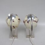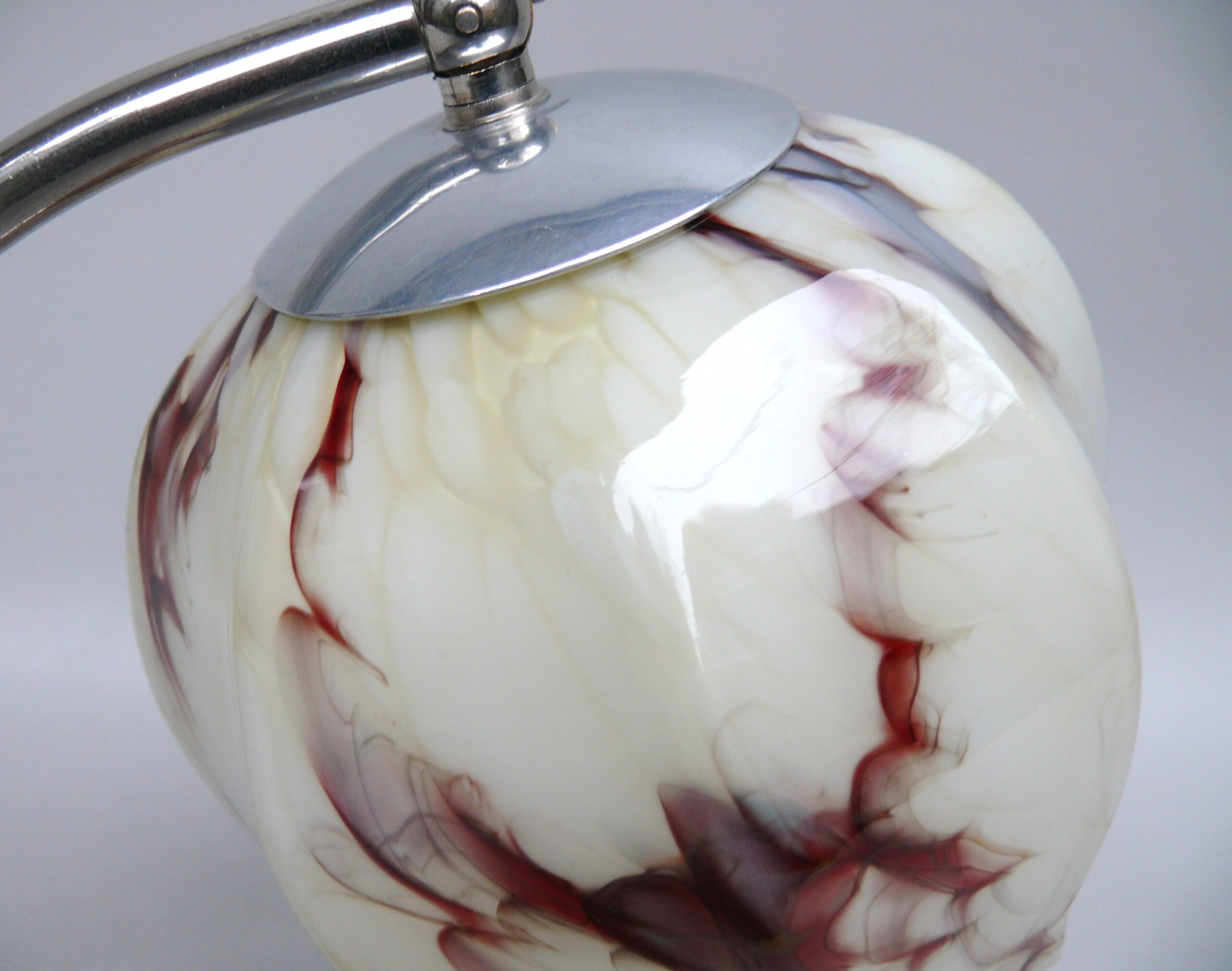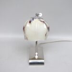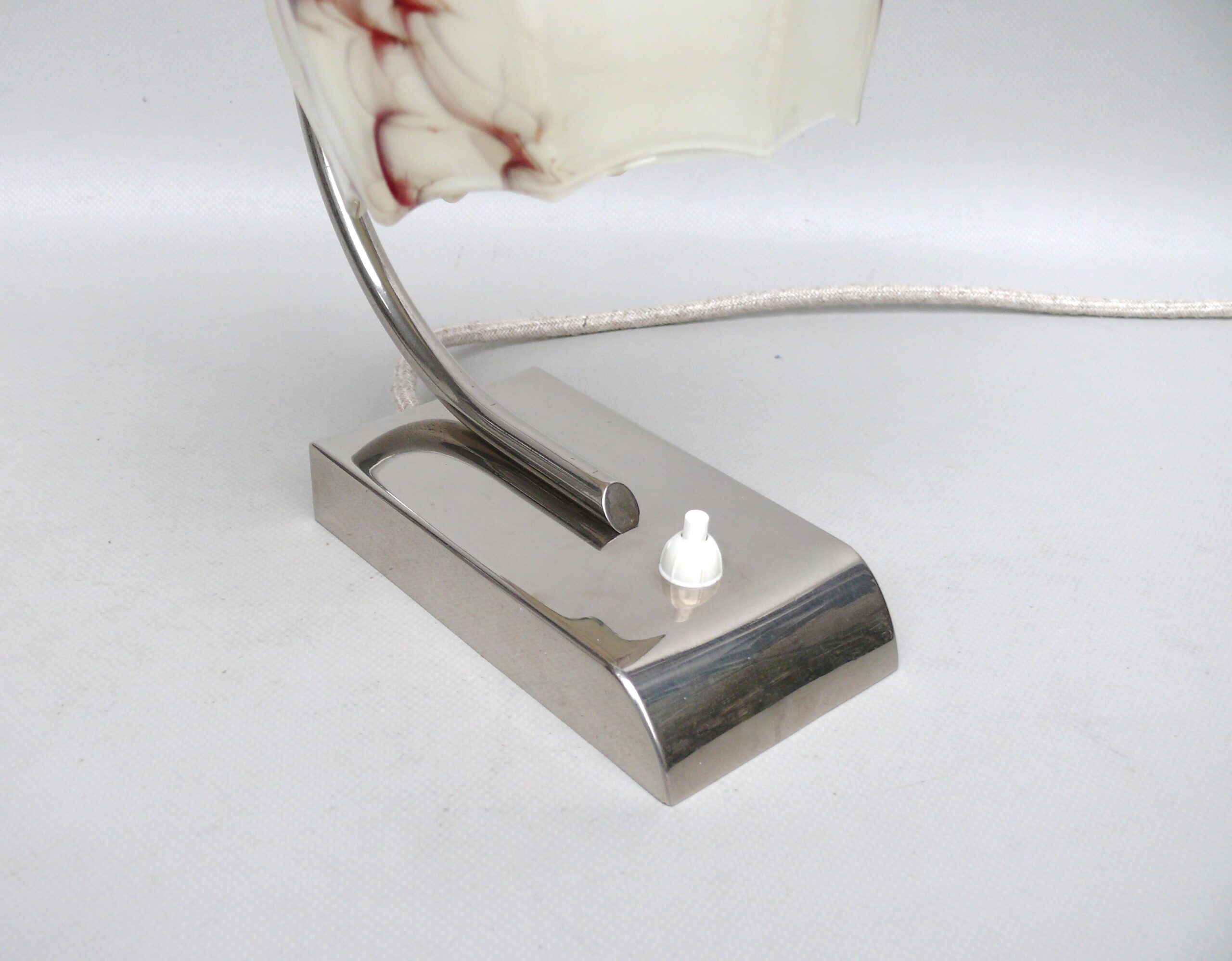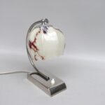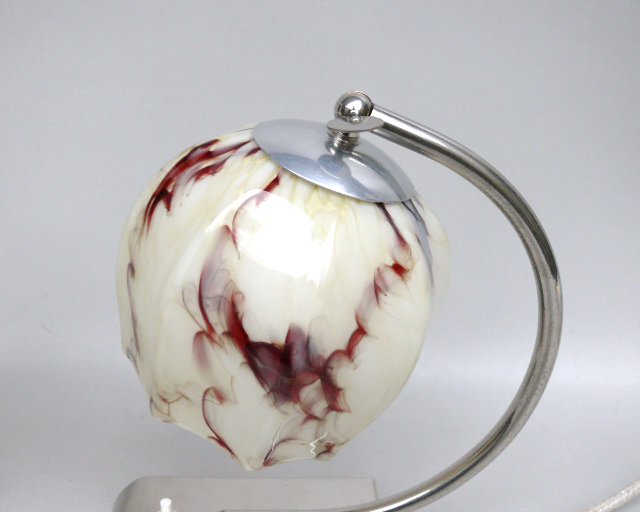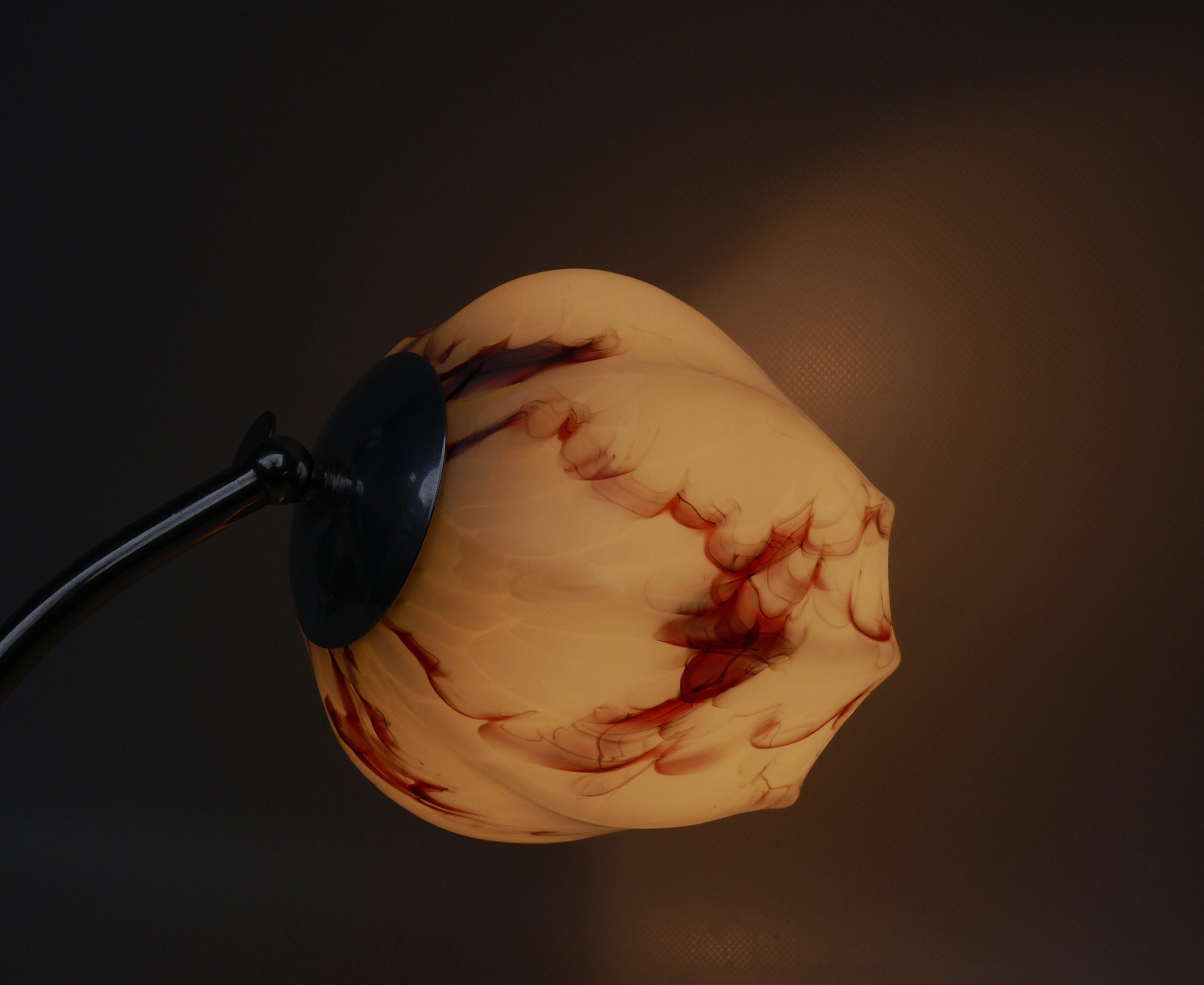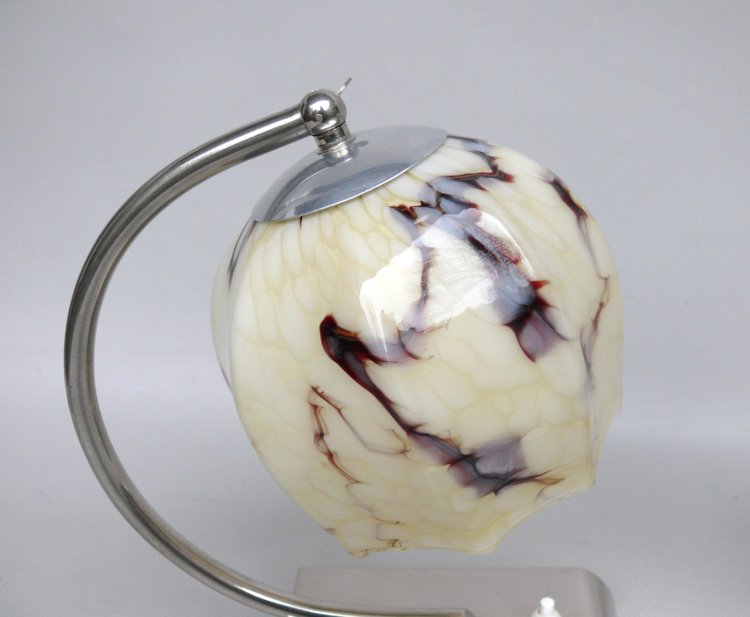 NP1 – 1 paif of bedside lamps, Art Deco, chromed, light beige flashed glass lampshade, extraordinary shape