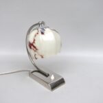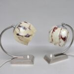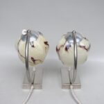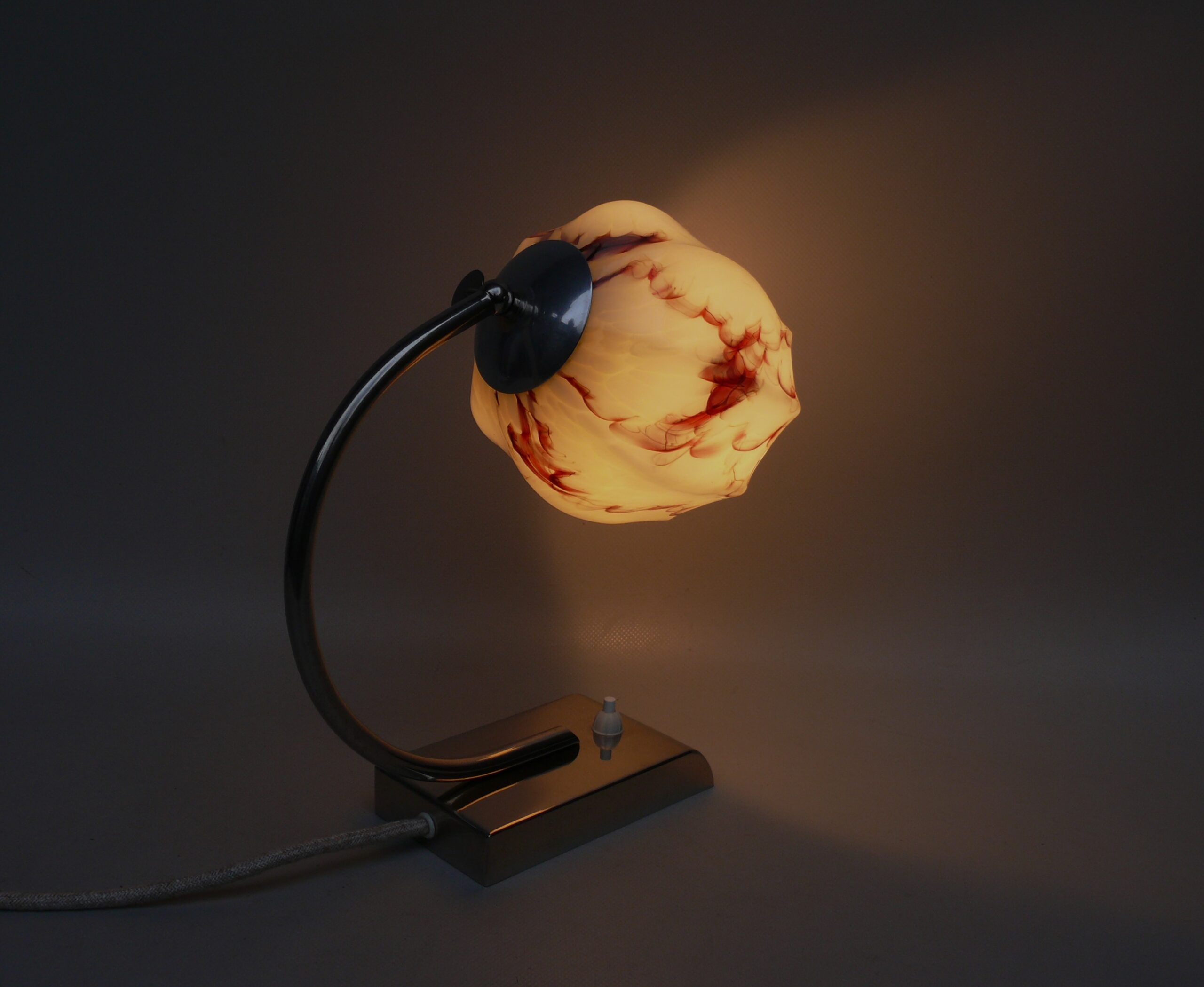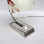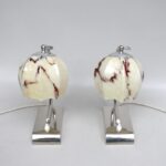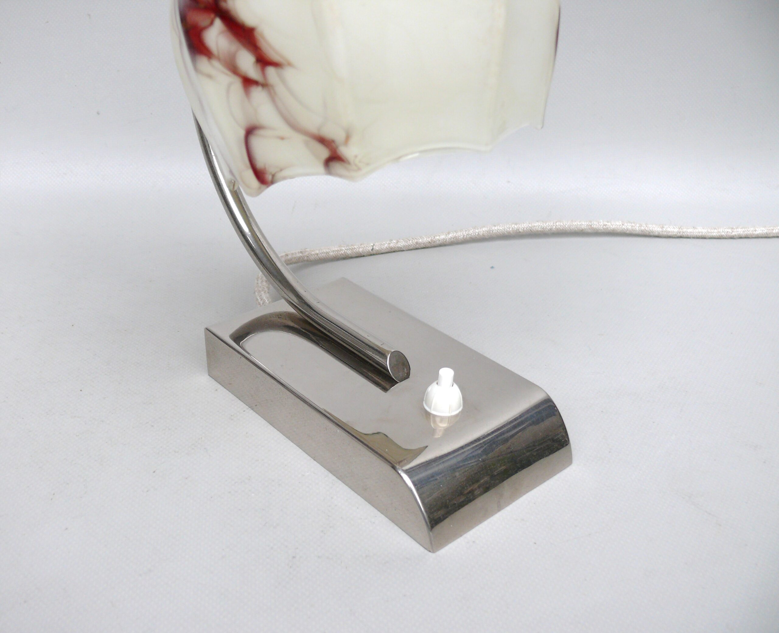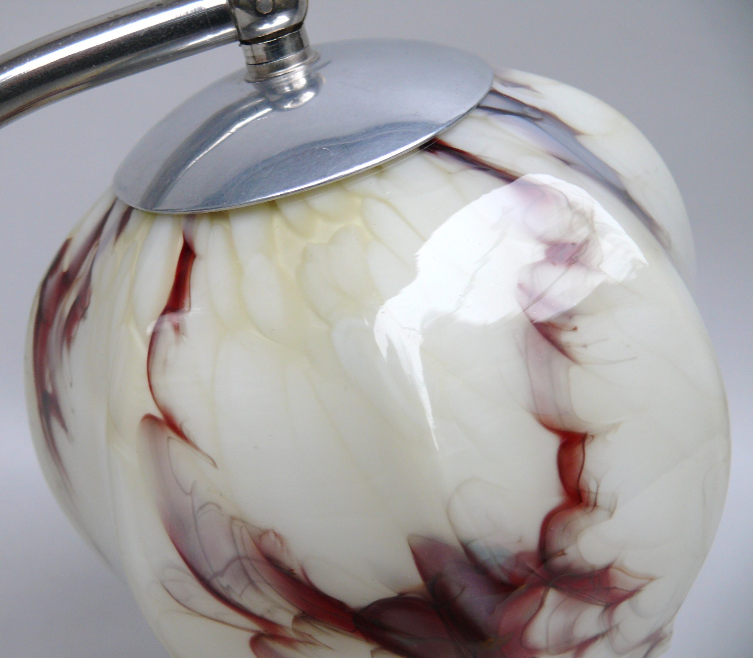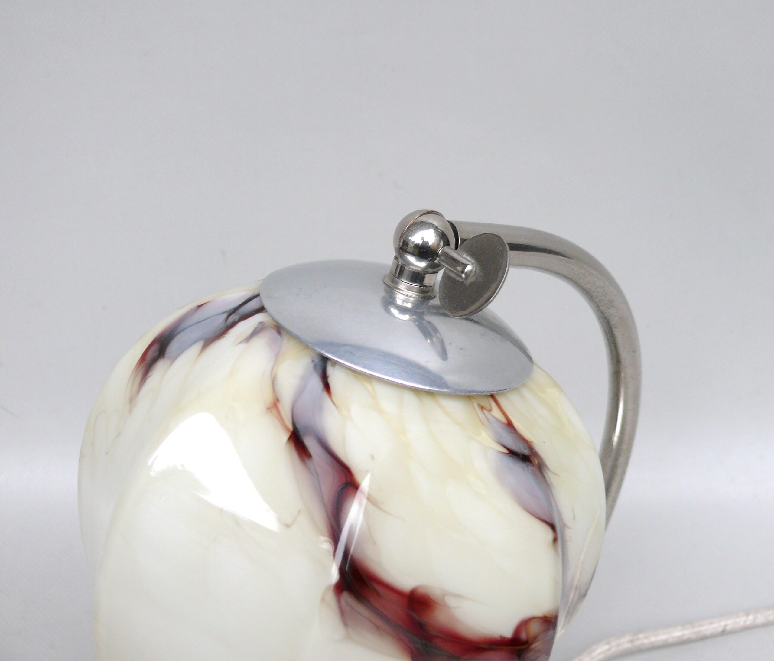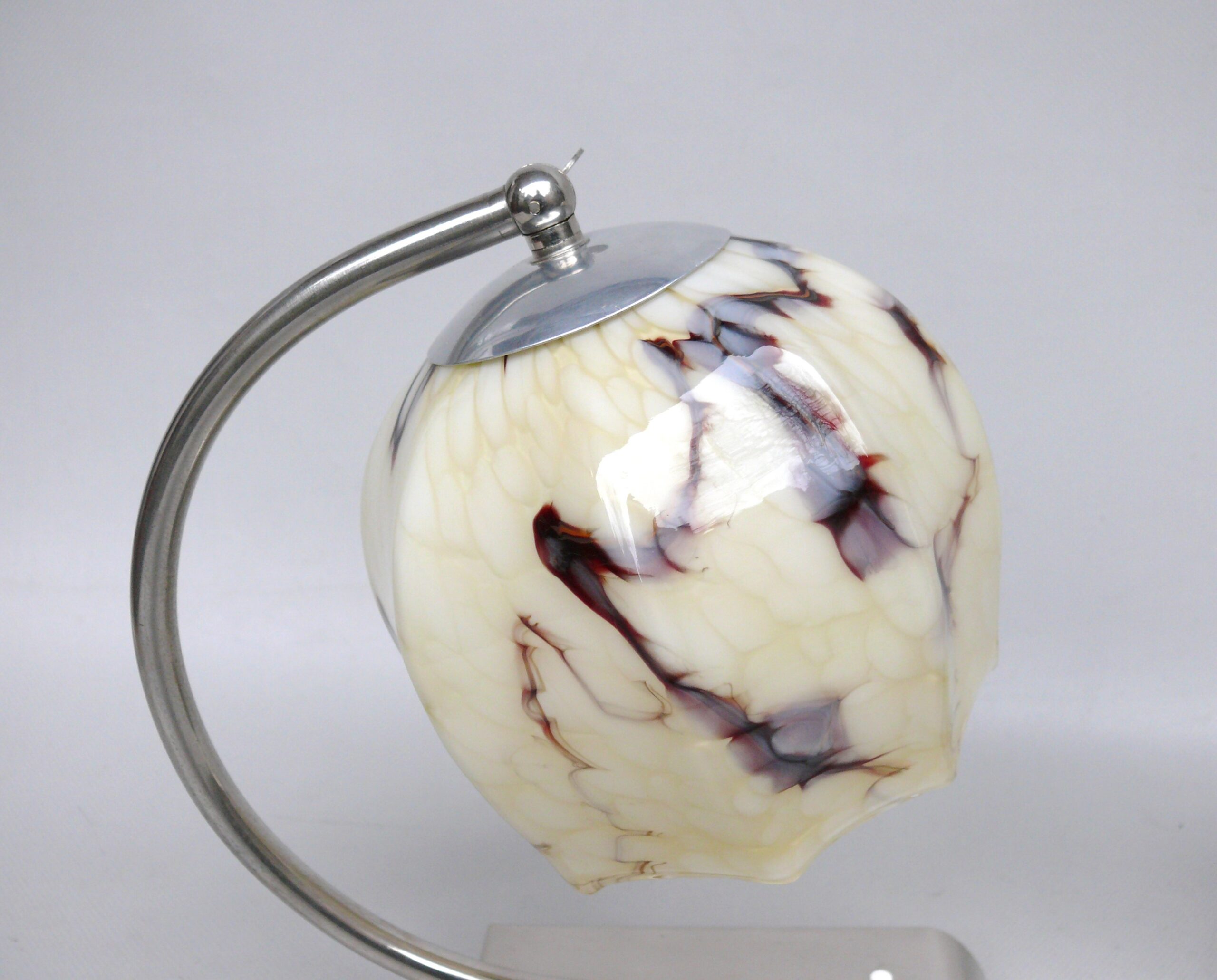 NP1 – 1 paif of bedside lamps, Art Deco, chromed, light beige flashed glass lampshade, extraordinary shape