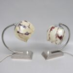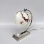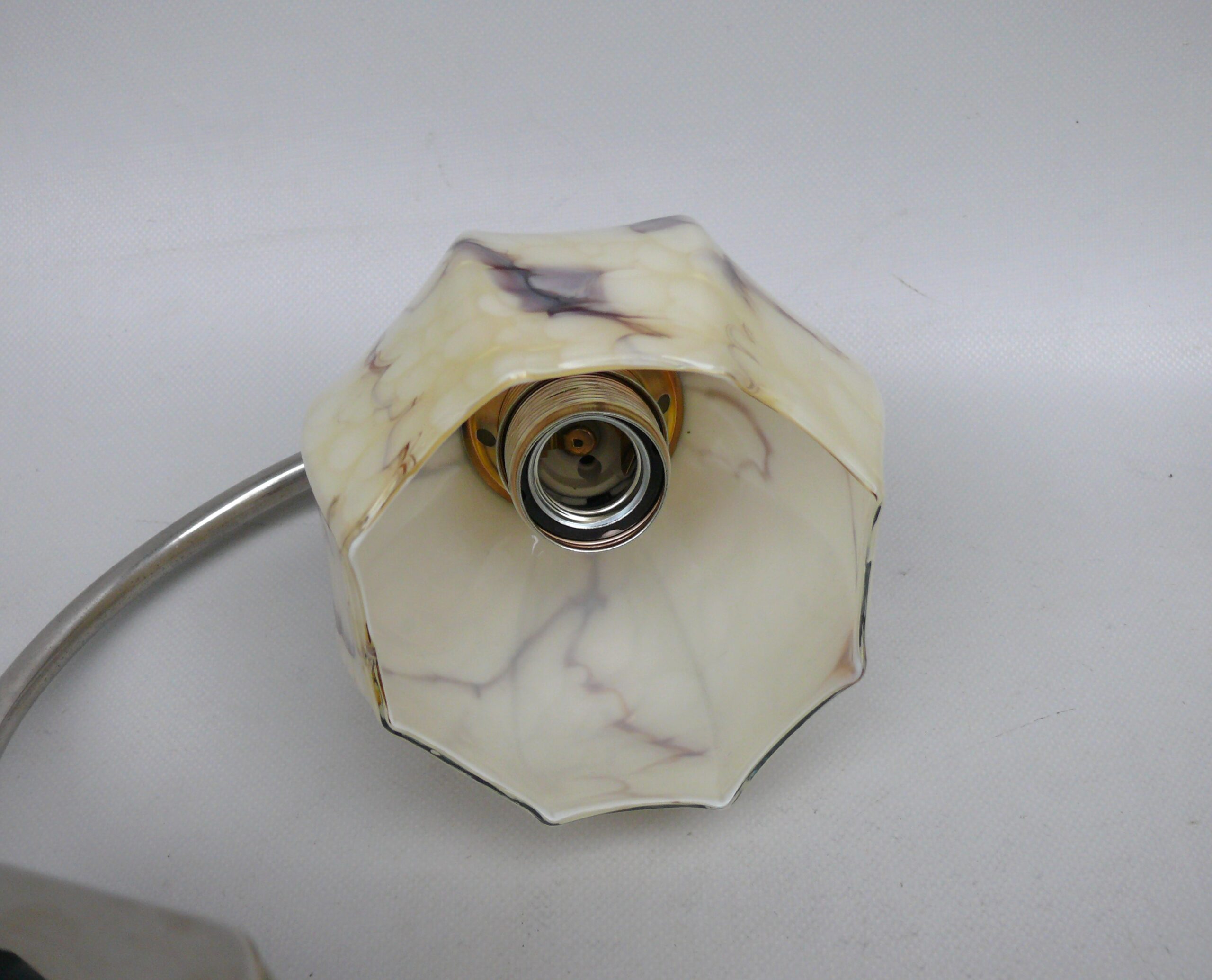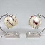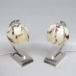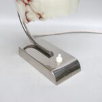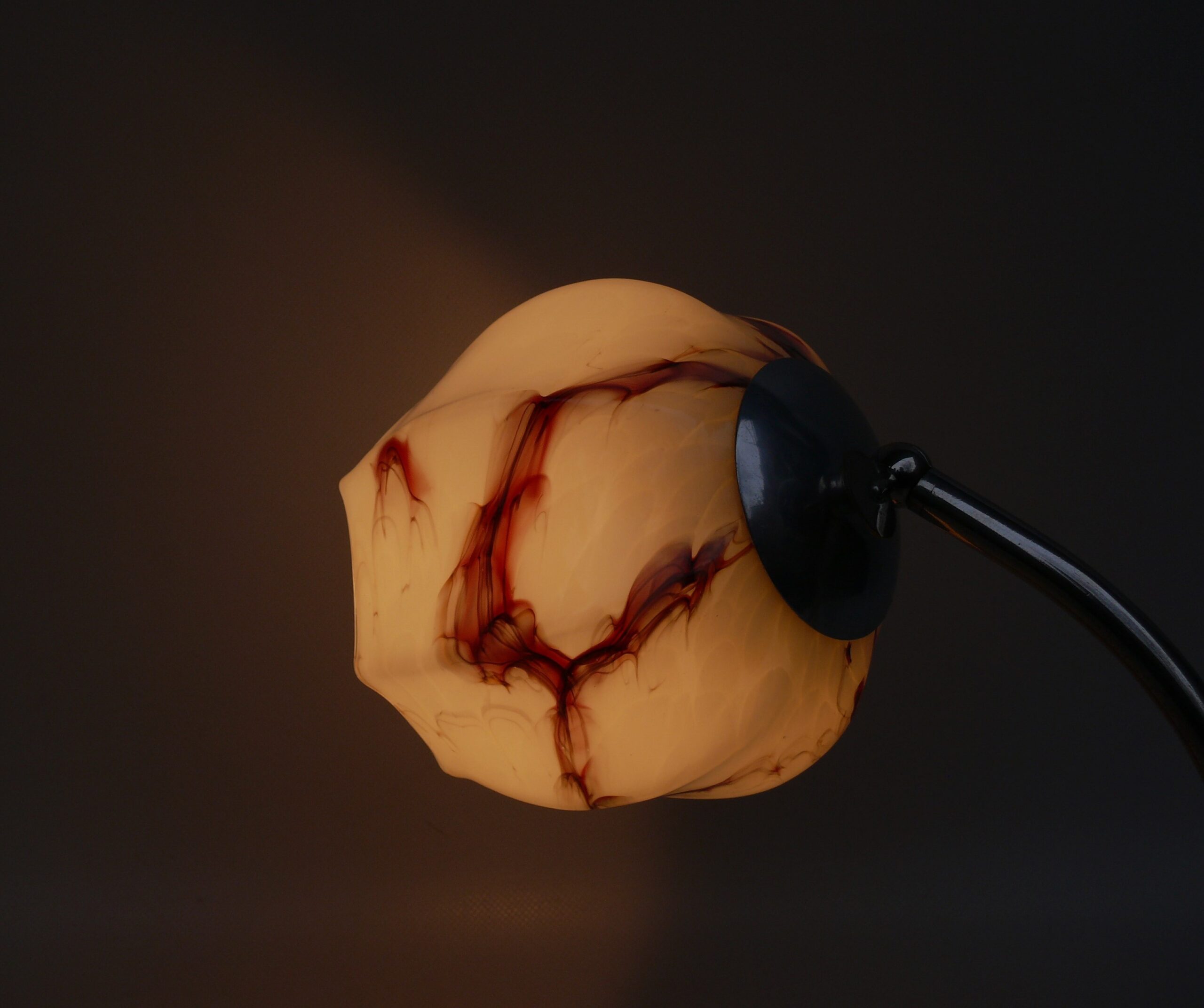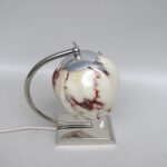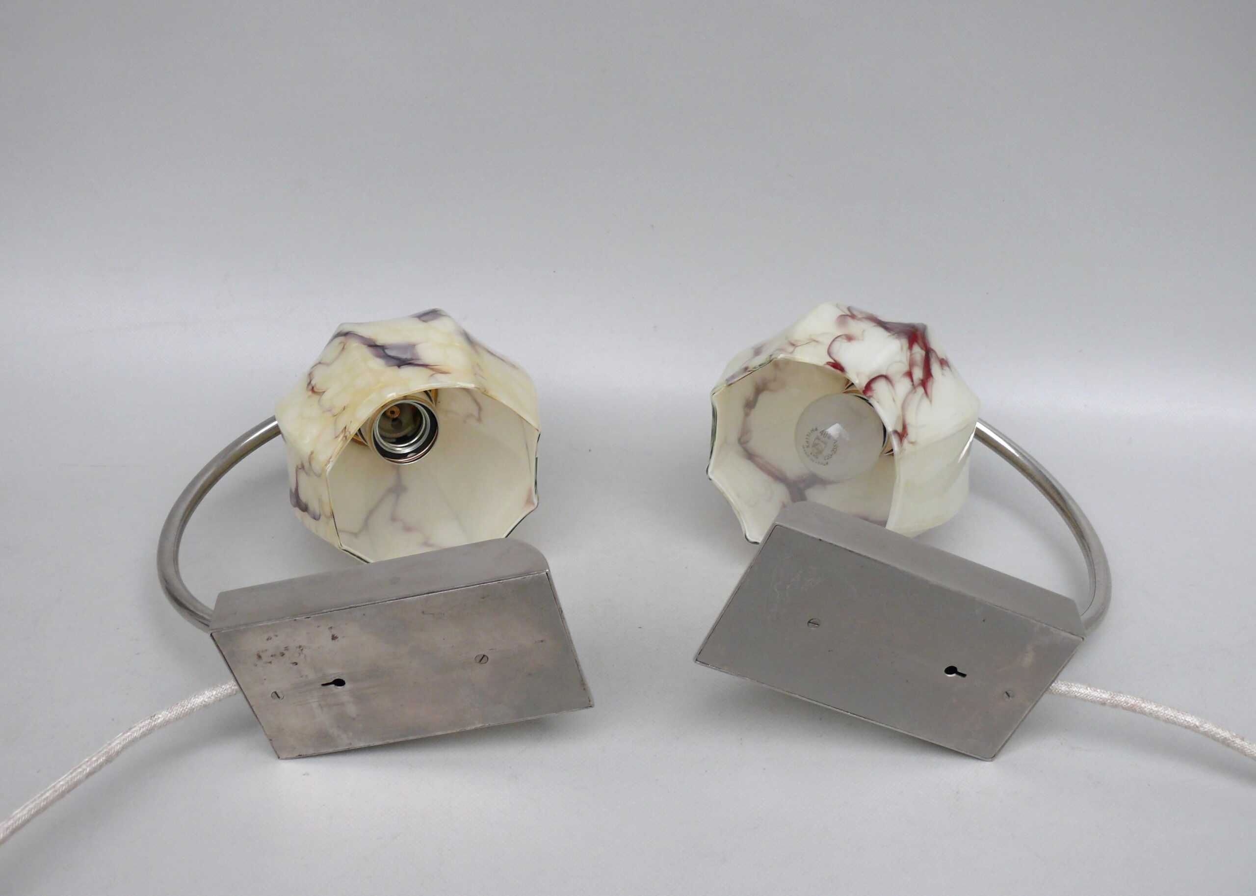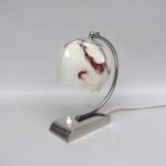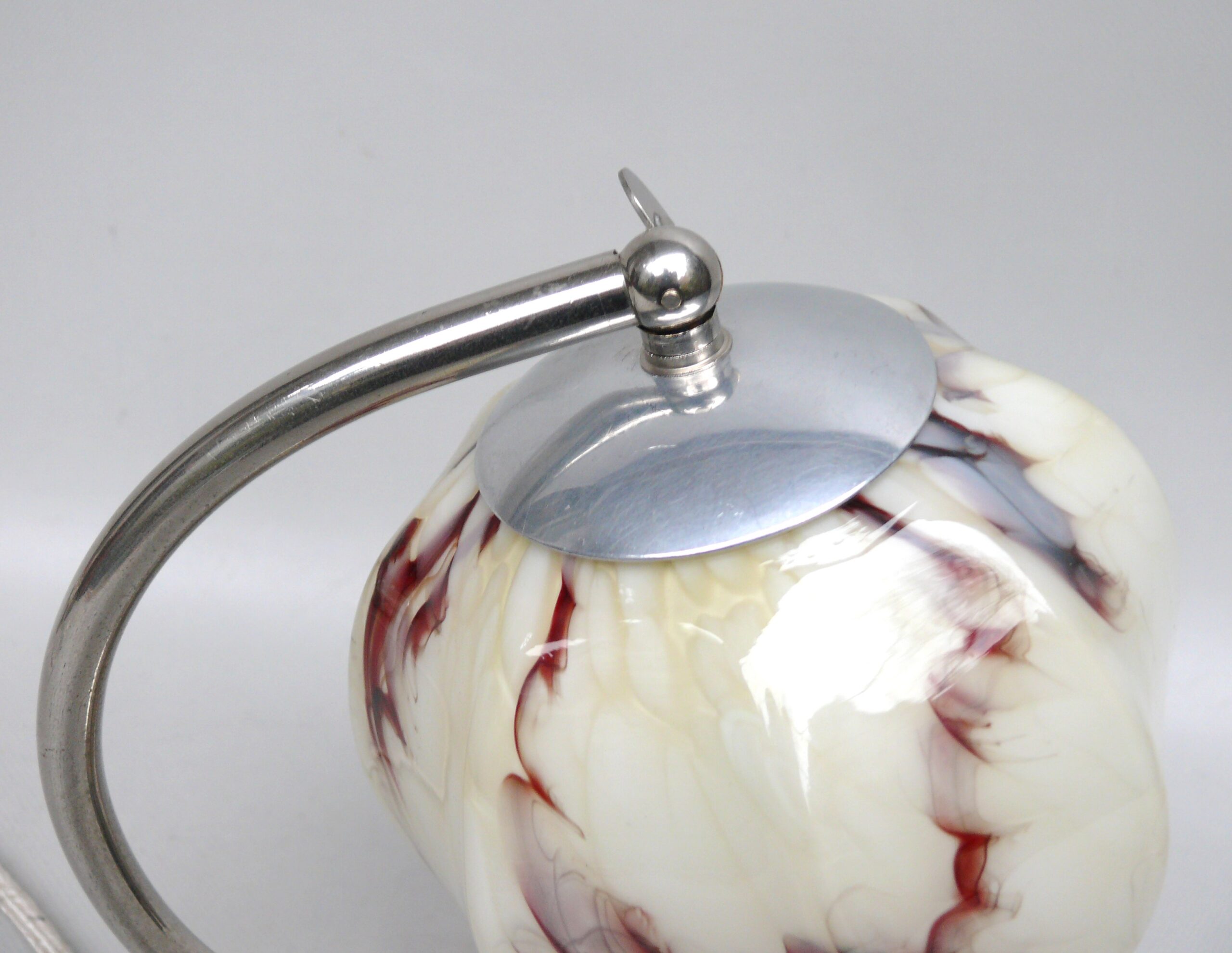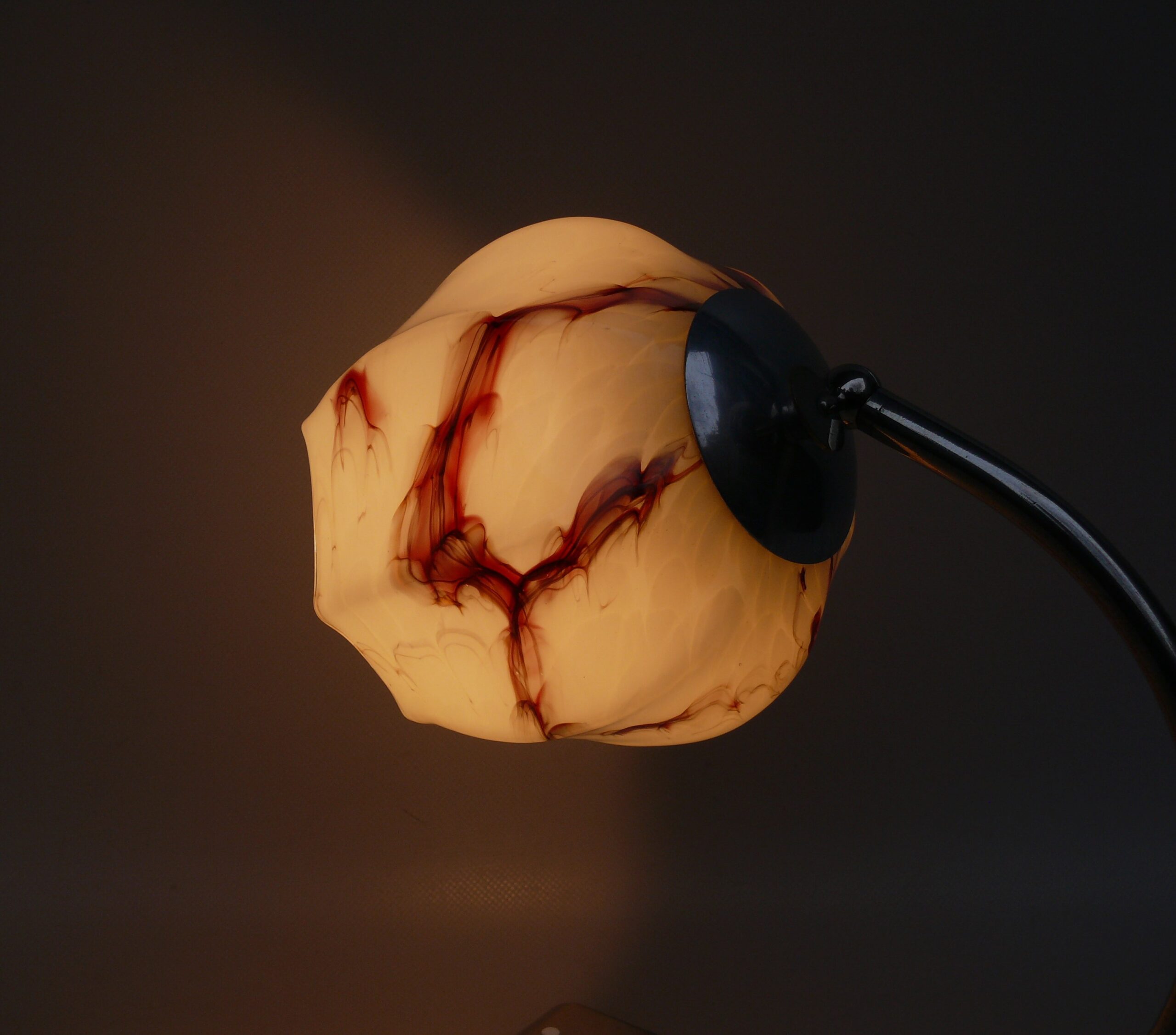 NP1 – 1 paif of bedside lamps, Art Deco, chromed, light beige flashed glass lampshade, extraordinary shape