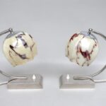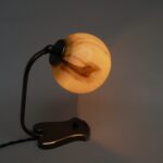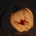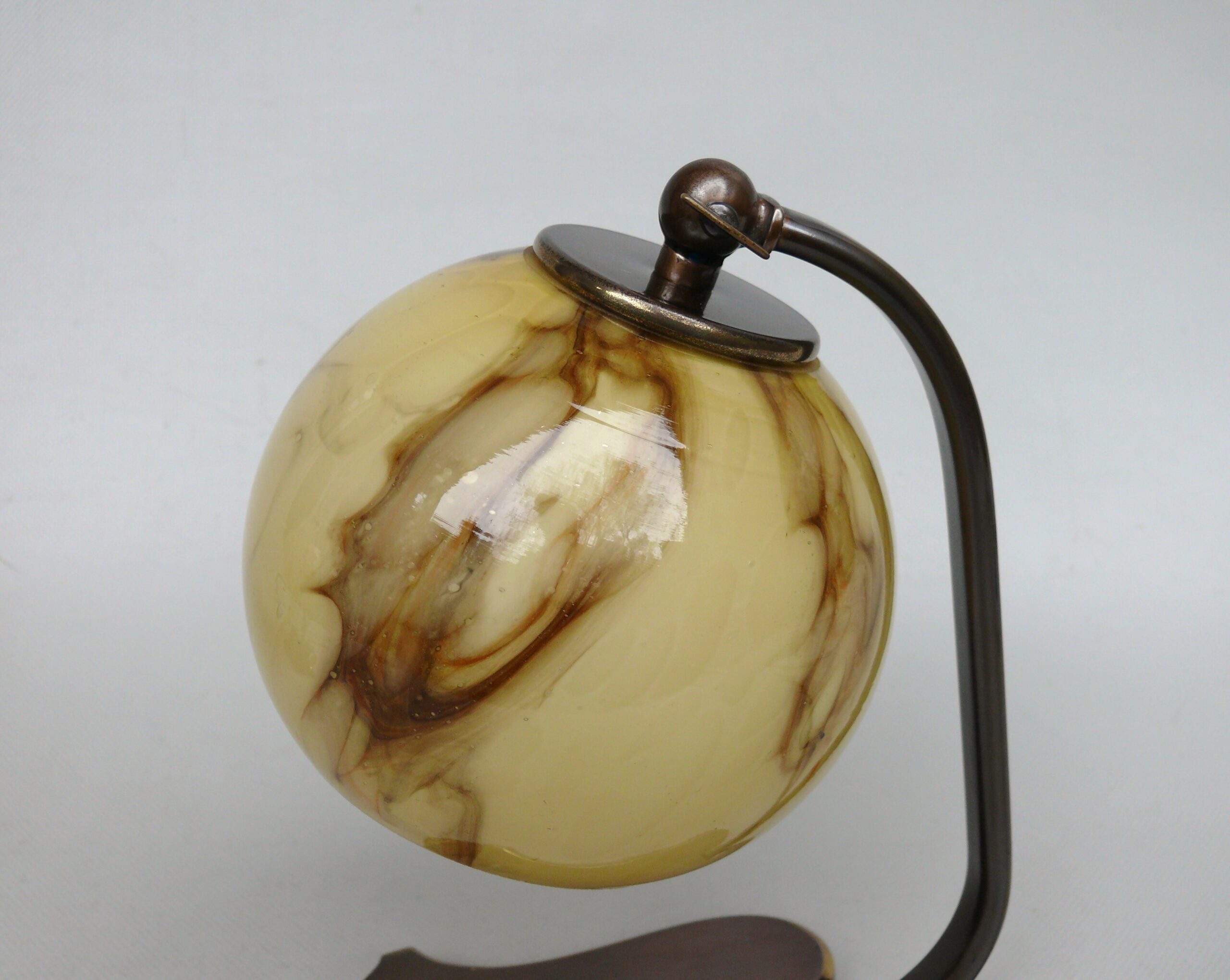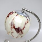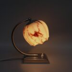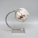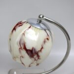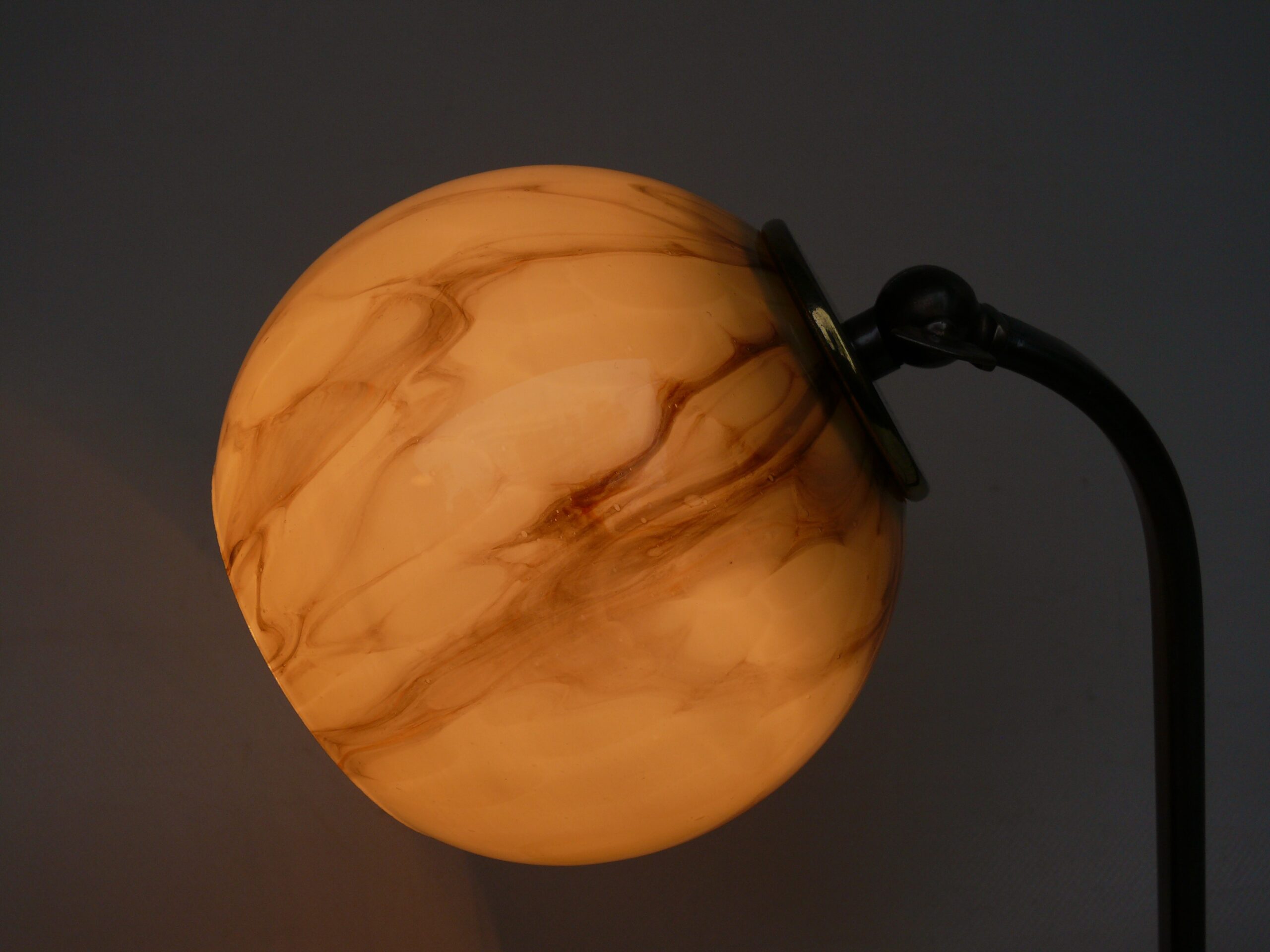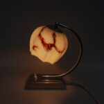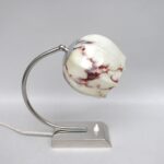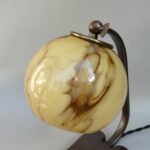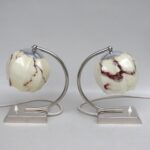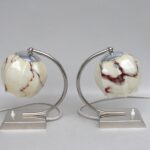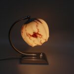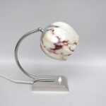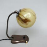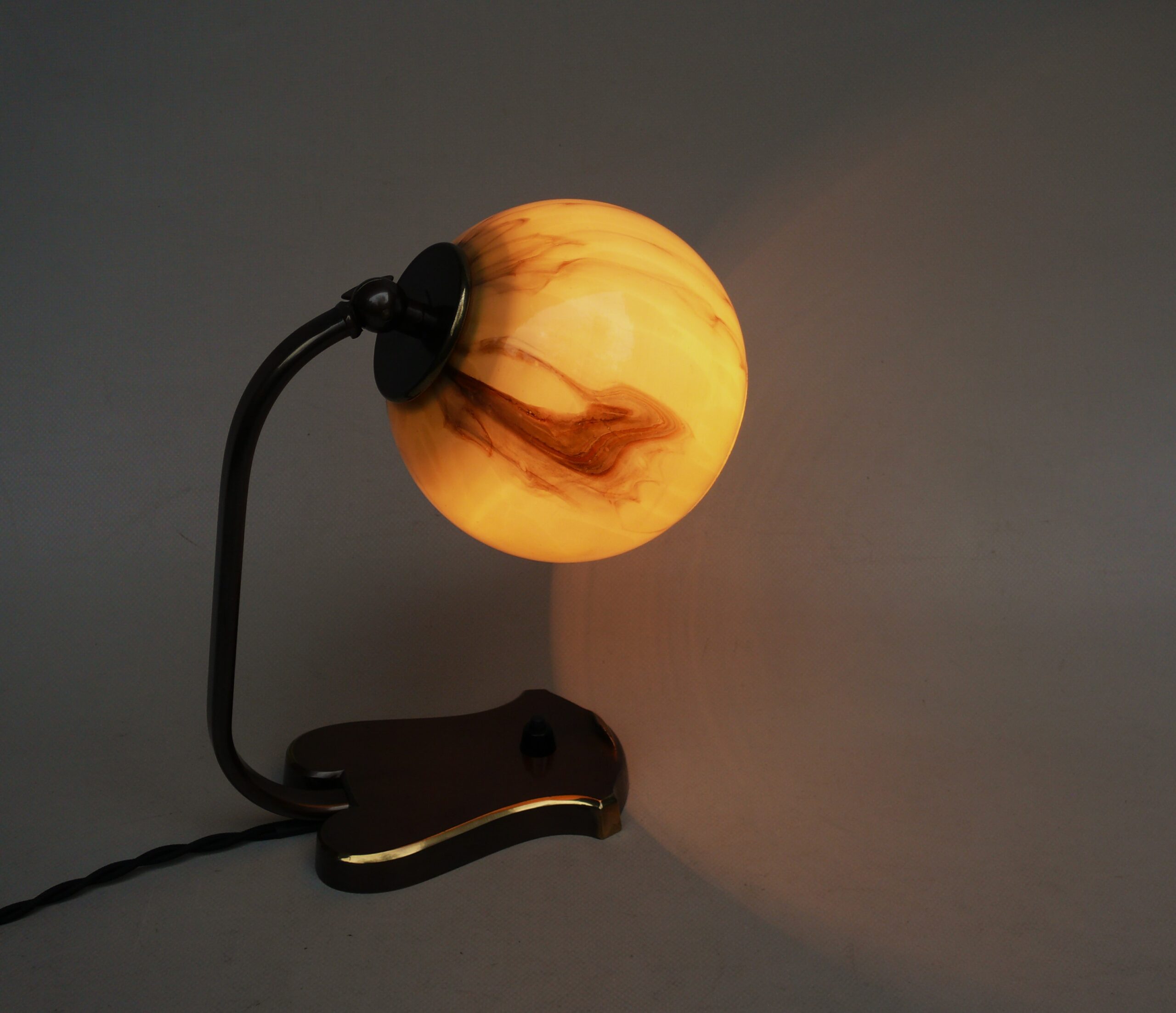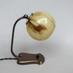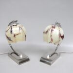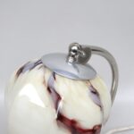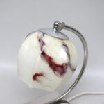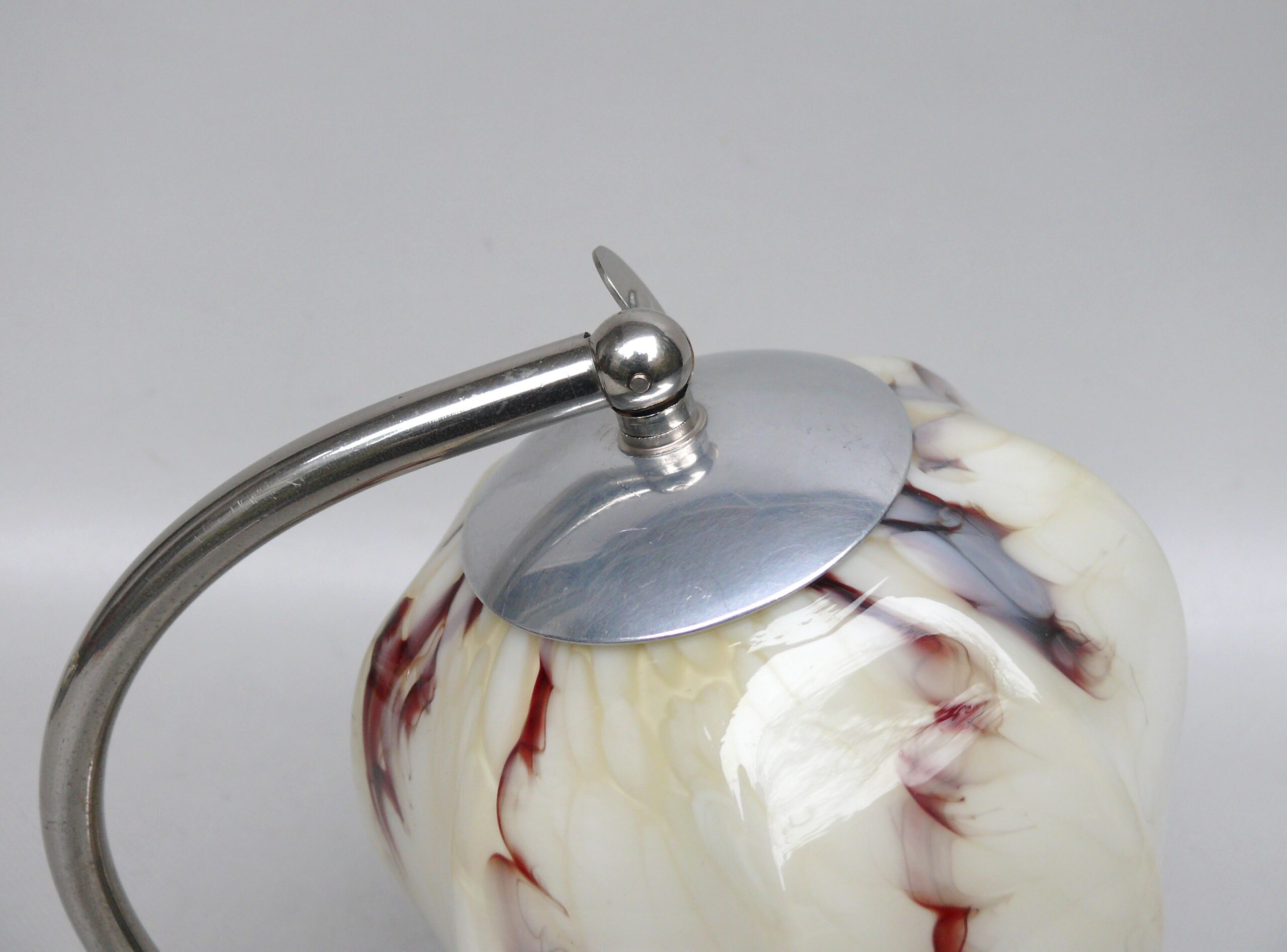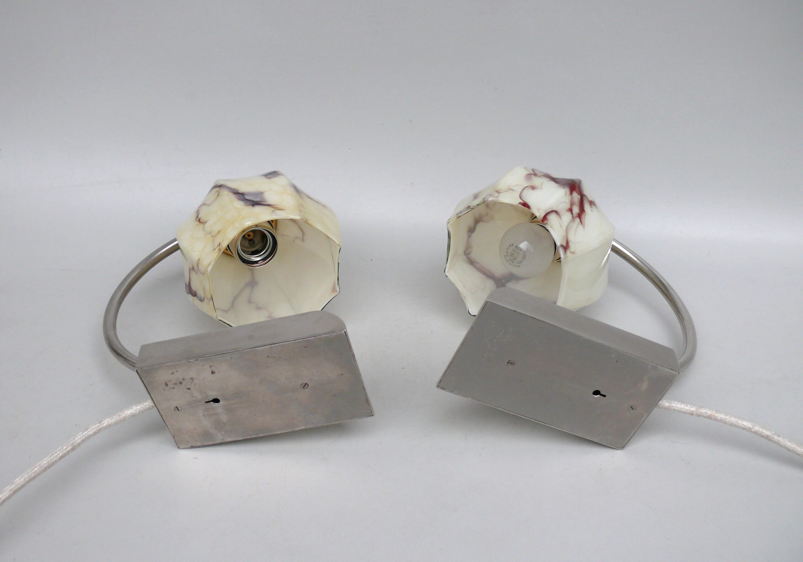 NP1 – 1 paif of bedside lamps, Art Deco, chromed, light beige flashed glass lampshade, extraordinary shape