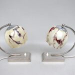 NP6 – 1 Paar Nachttischleuchten, Art Deco, verchromt, Lampenschirme Überfangglas hellgrün dunkelgrün/braun geflammt