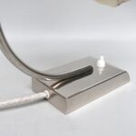 Die Lampenschirme können geneigt werden. Sie sind anthrazitfarben lackiert, der Stand ist vernickelt.