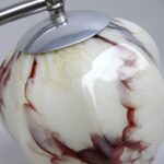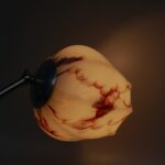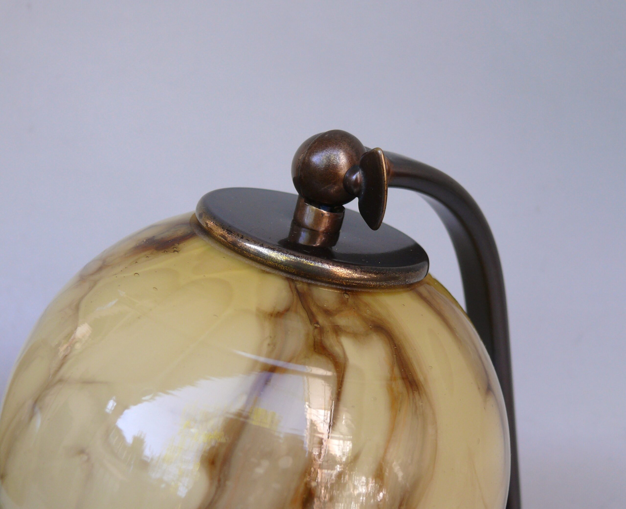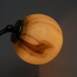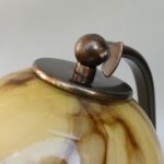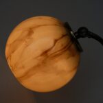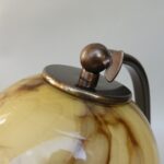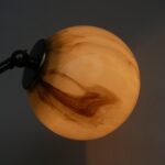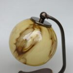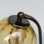 Die Farbgebung der Lampenschirme aus Überfangglas ist selten – beige in braun geflammt. Die Leuchten geben durch diese Lampenschirme ein angenehmes und blendfreies Licht ab.