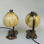 NP3 – 1 Paar Nachttischleuchten Jugendstil, Bespannung der Schirme erneuert, kupferfarben
