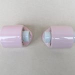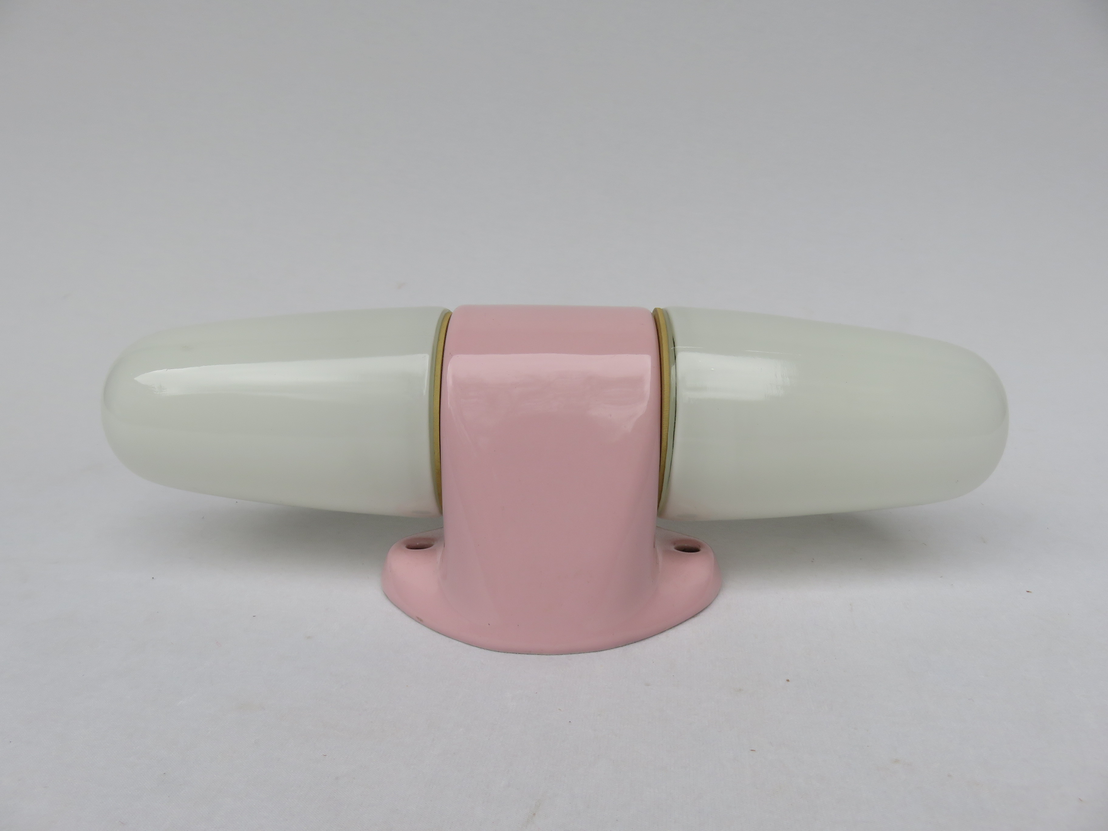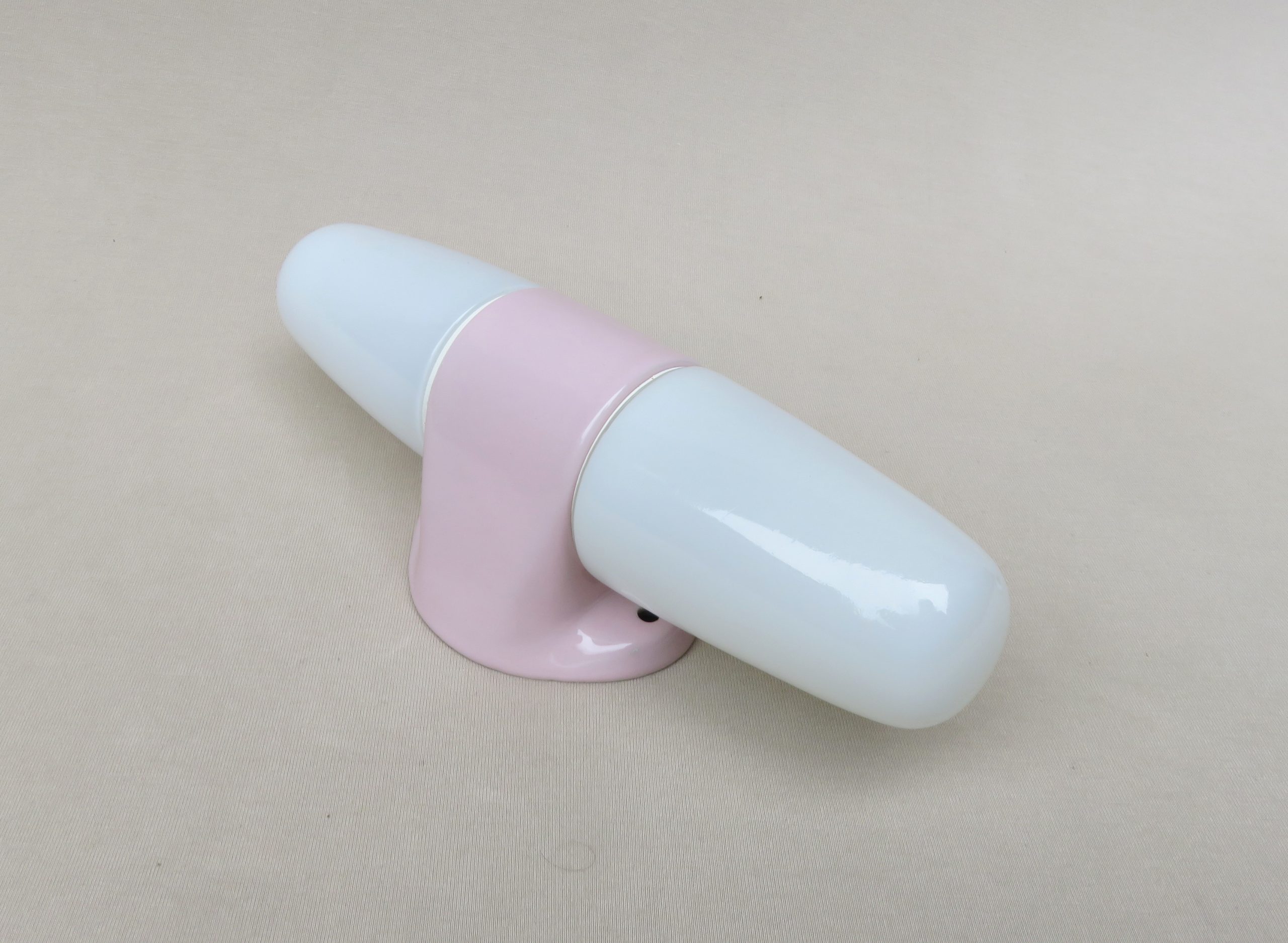 SP5 – 2 Paar Spiegelleuchten, Entwurf Wilhelm Wagenfeld für Lindner GmbH, Bamberg, WVZ 380, Entwurf 1960, H 272, L 95, in rosa – Die Kleinen