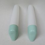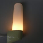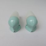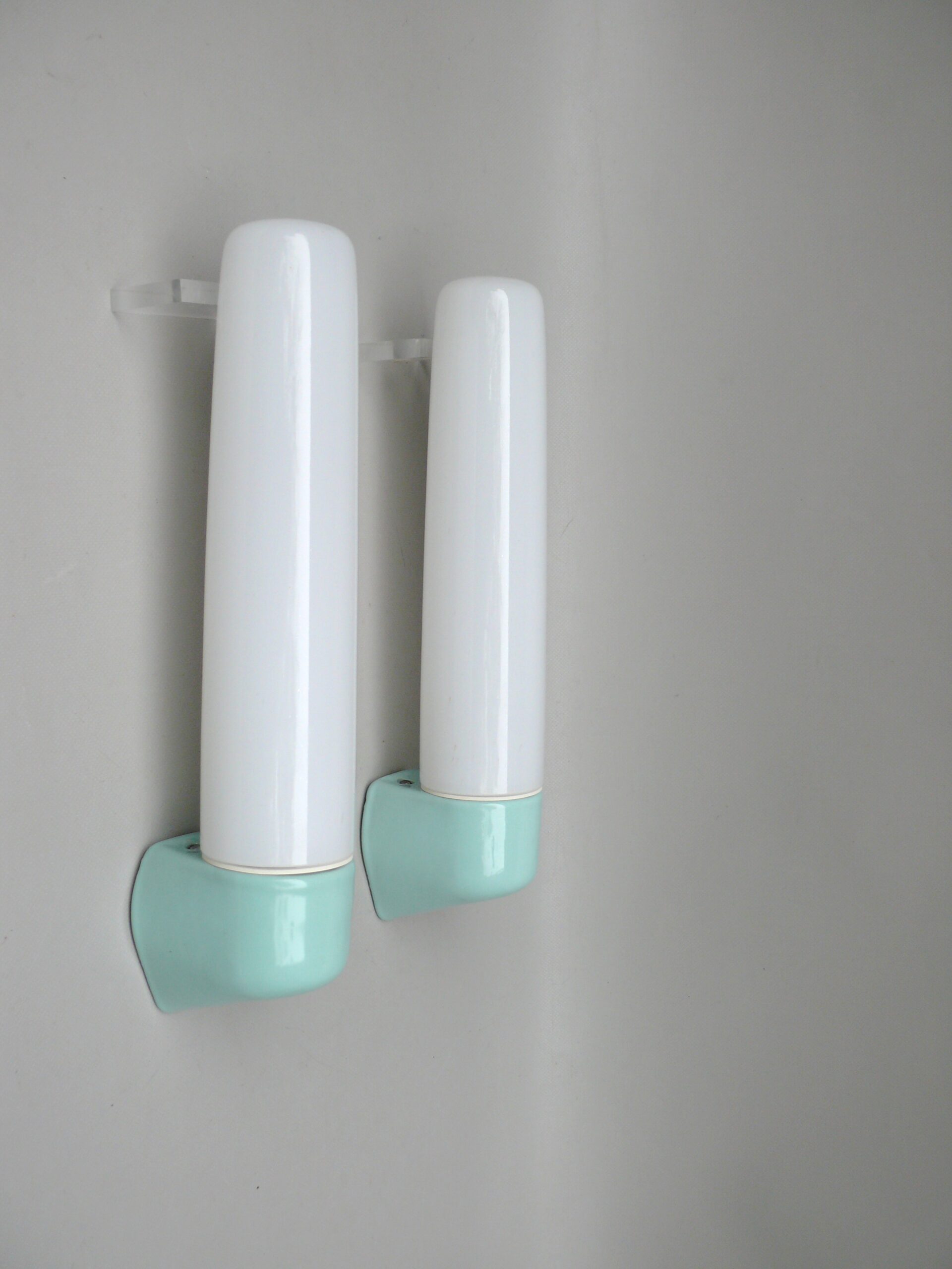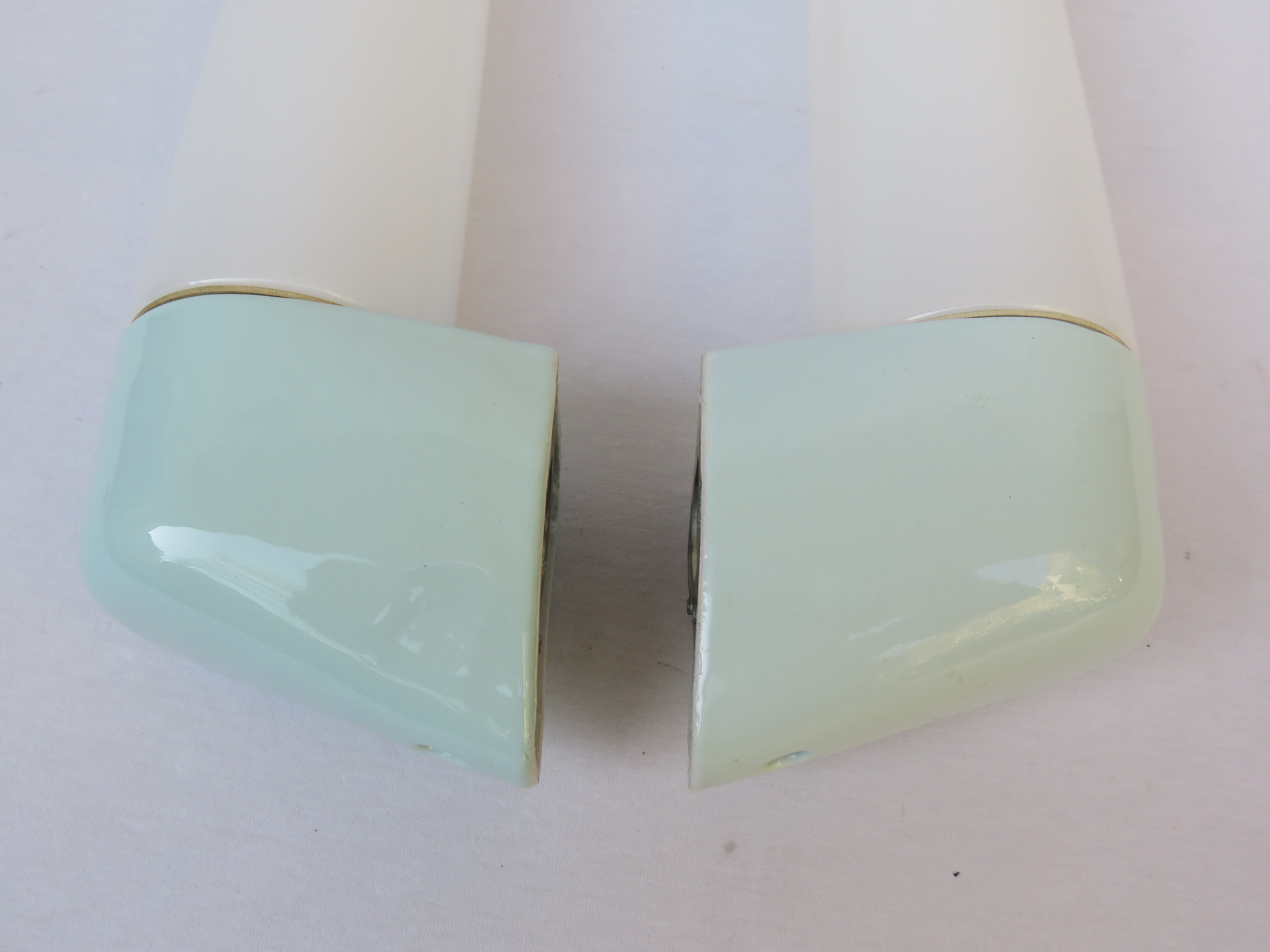 SP13 – 1 Paar Spiegelleuchten, Entwurf Wilhelm Wagenfeld für Lindner GmbH, Bamberg, WVZ 380, Entwurf 1960, H 365, L 95, in mintgrün – „Die Großen“