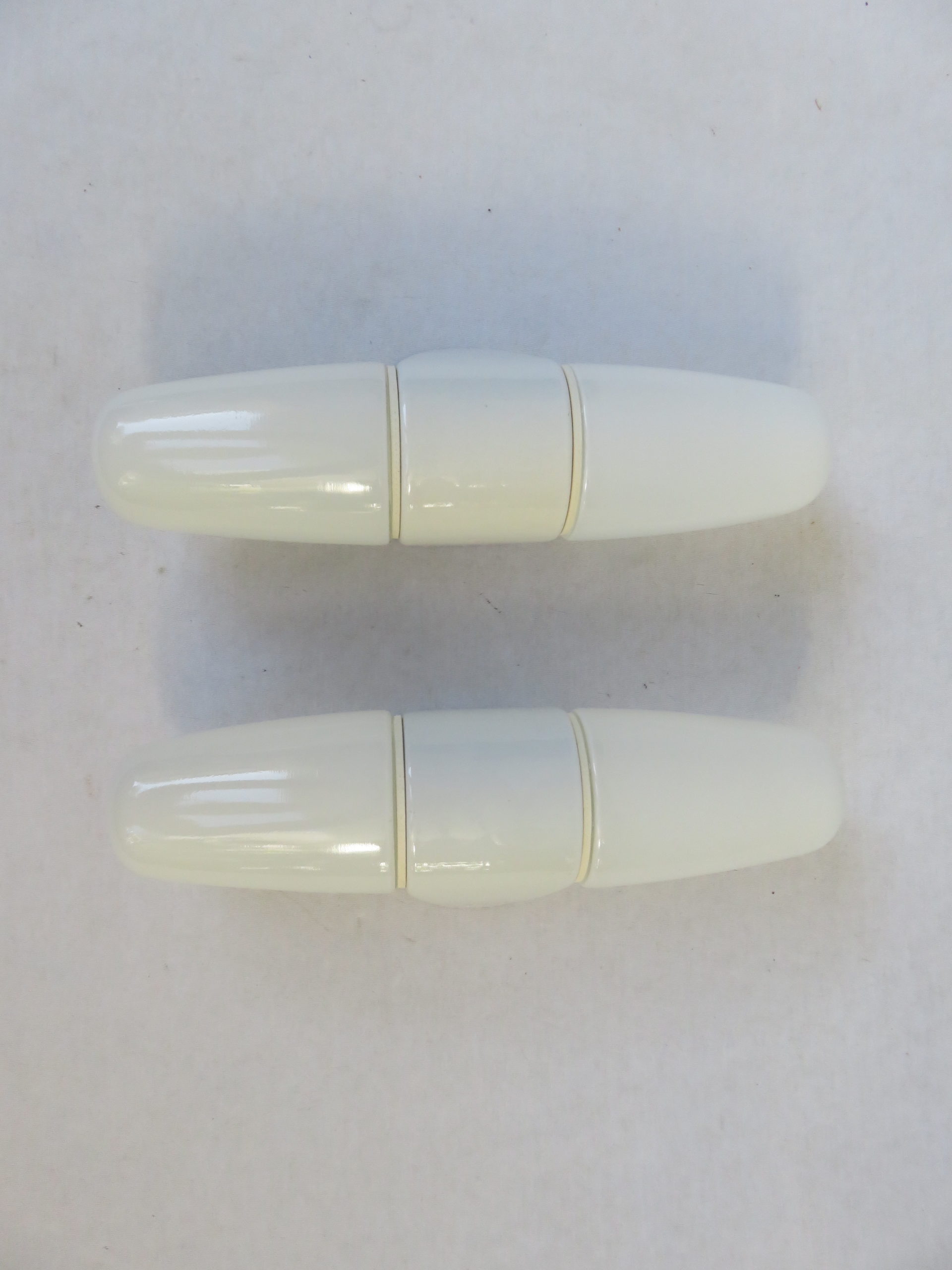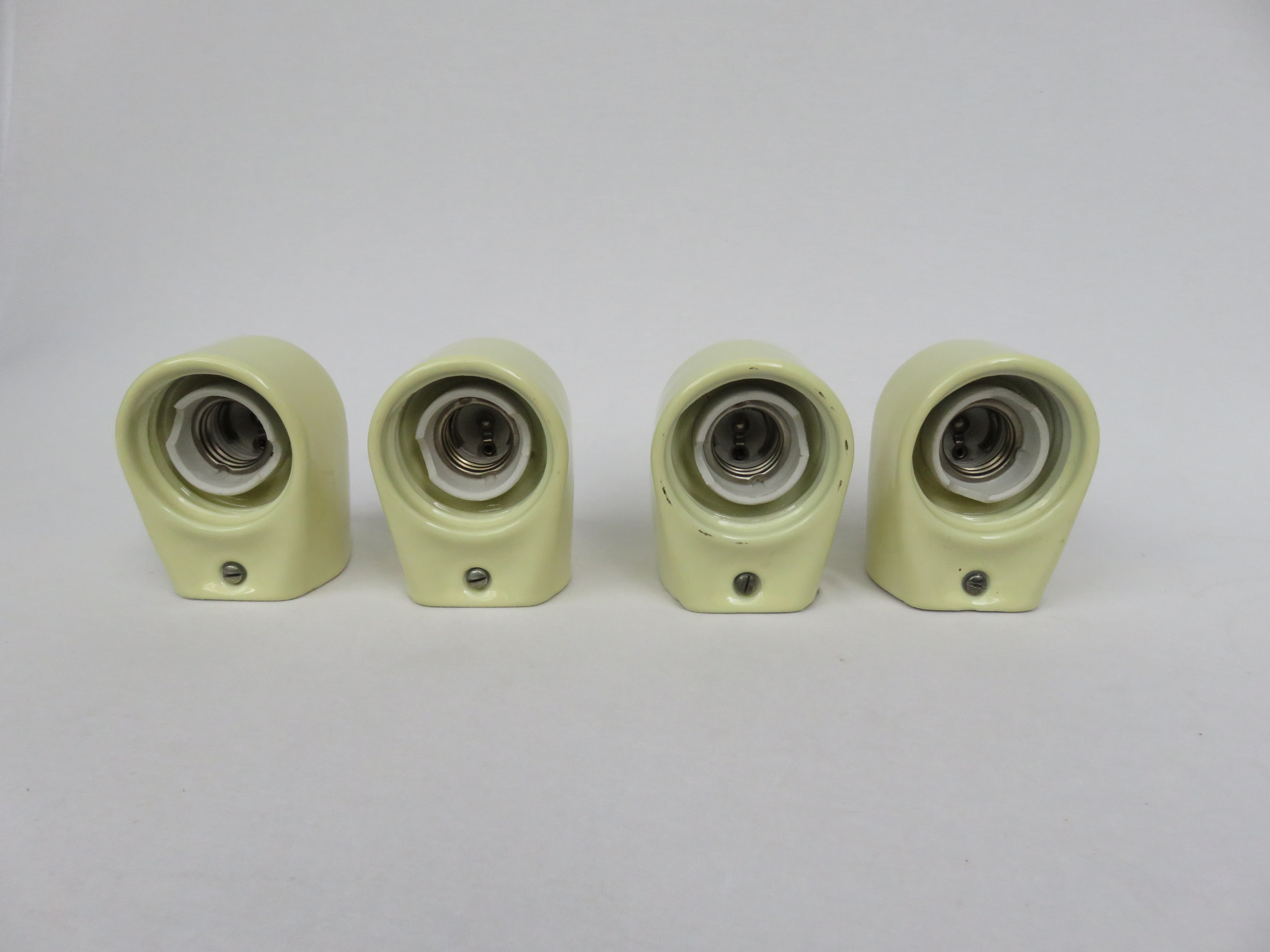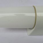 Die hellgelben Porzellanspockel zeigen an einigen Stellen an der Wandseite Unregelmäßigkeiten in der Lasur – 1 Sockel an zwei Stellen.