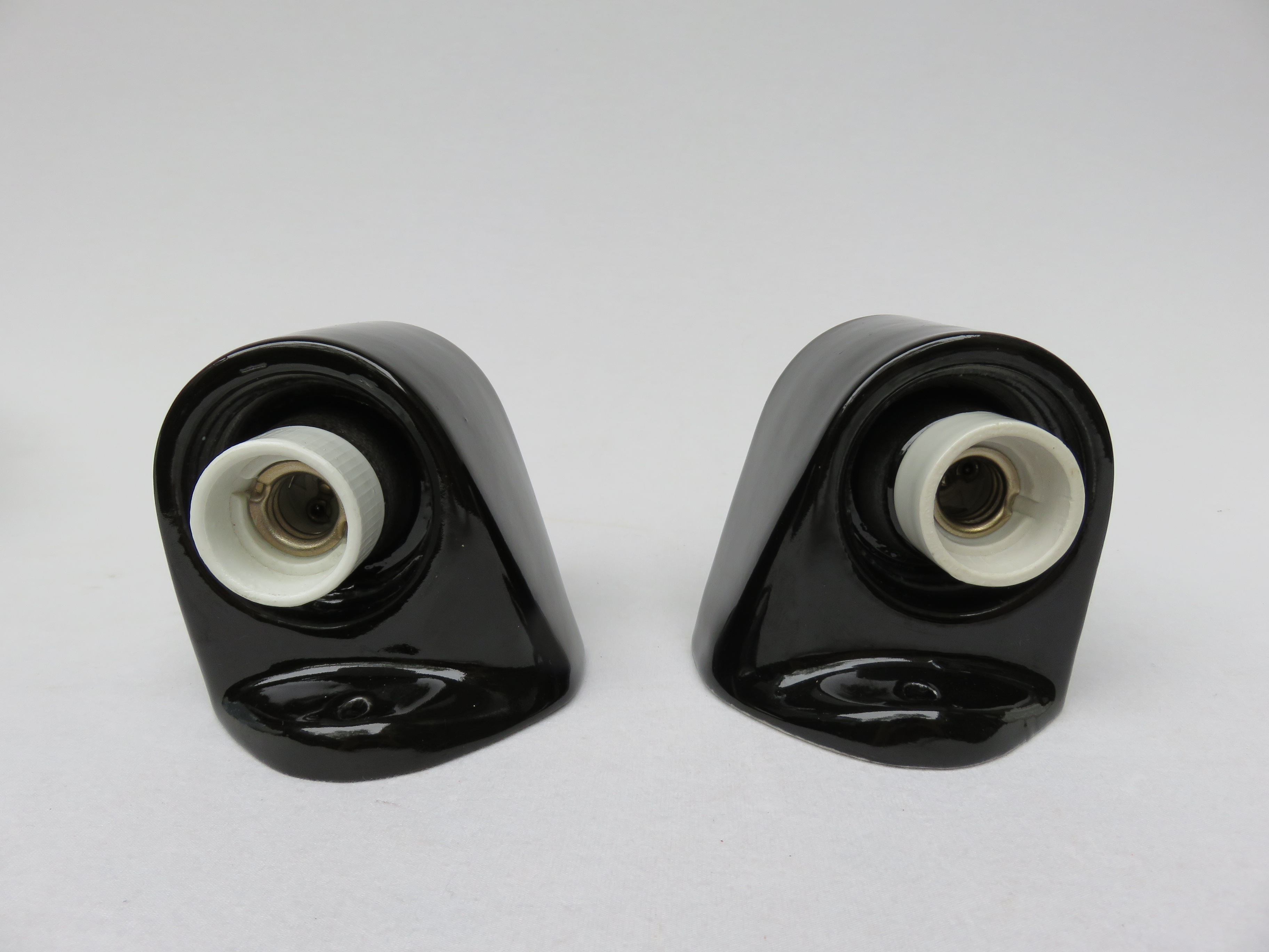 SP12 – 1 Paar Spiegelleuchten, Entwurf Wilhelm Wagenfeld für Lindner GmbH, Bamberg, WVZ 380, Entwurf 1960, H 365, L 95, in schwarz – Die Großen